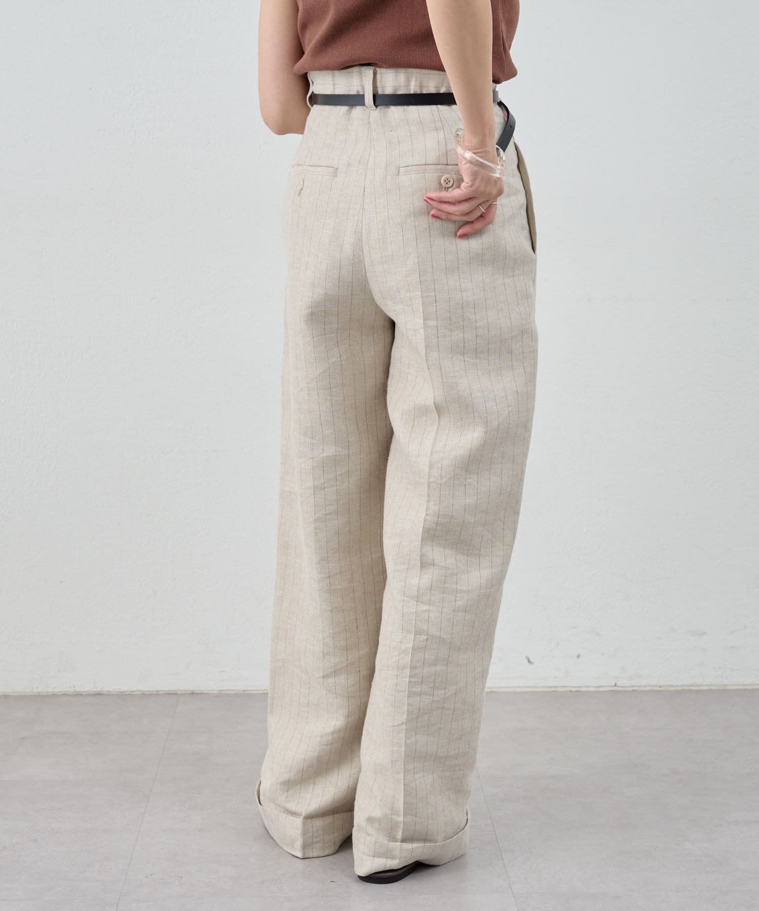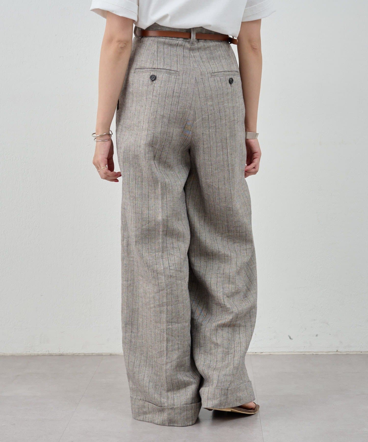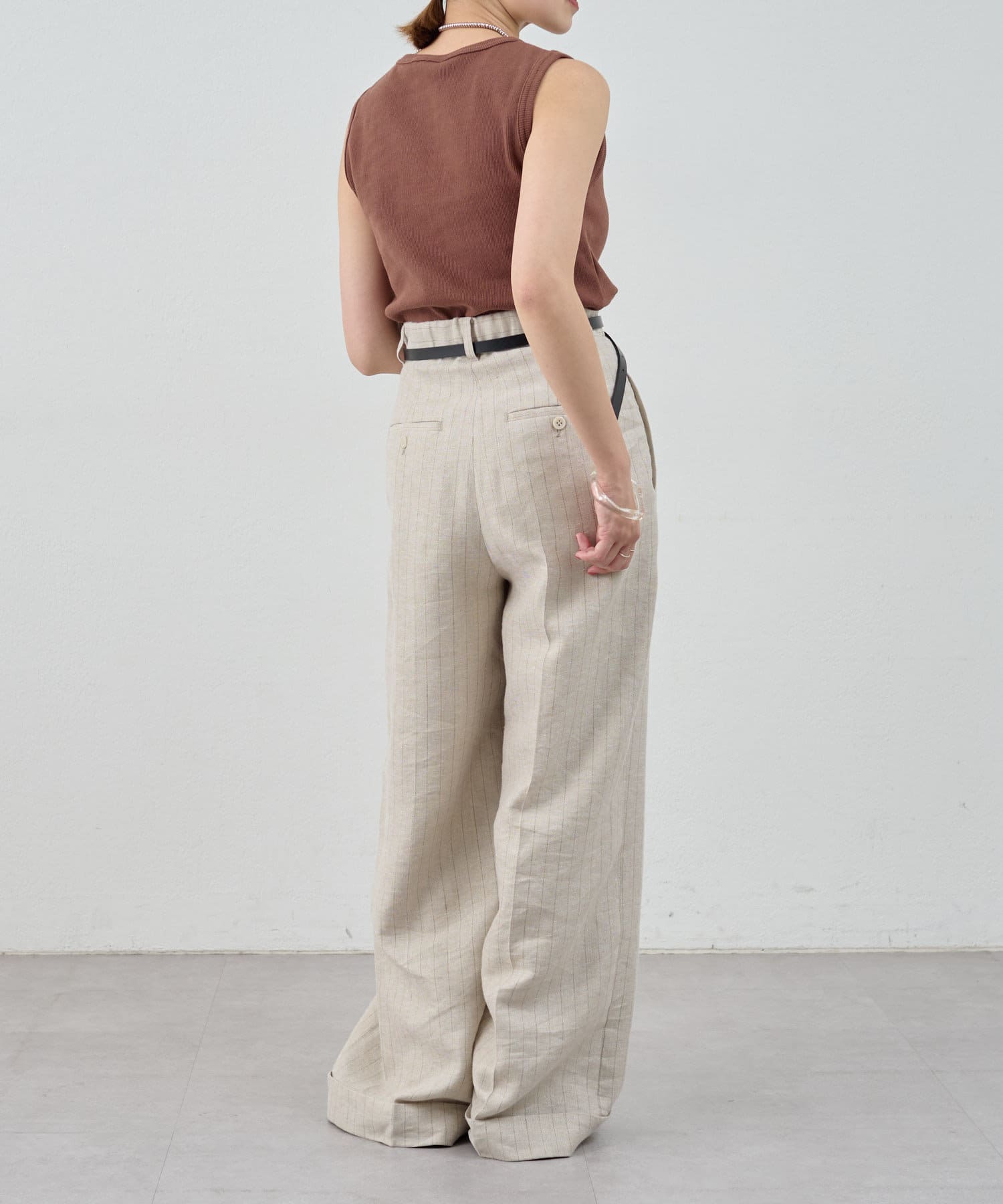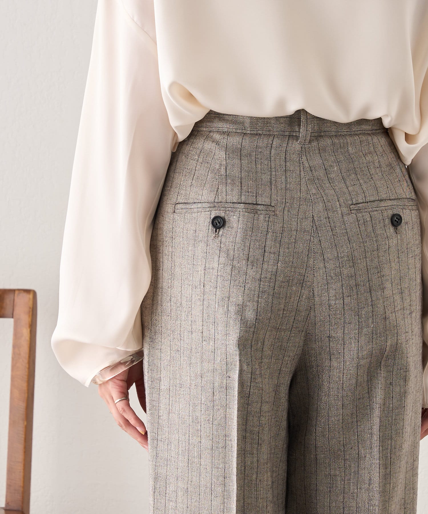 《涼しいリネン素材》ラメリネンストライプパンツ