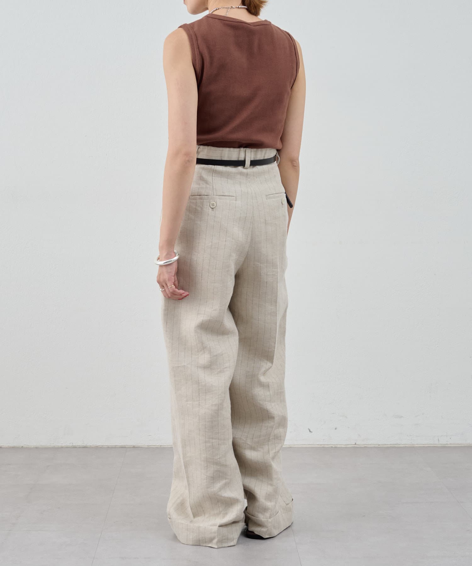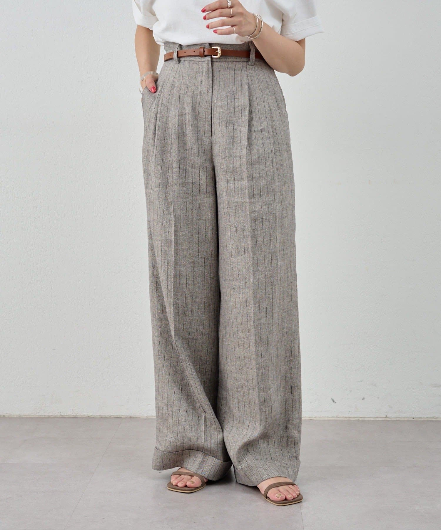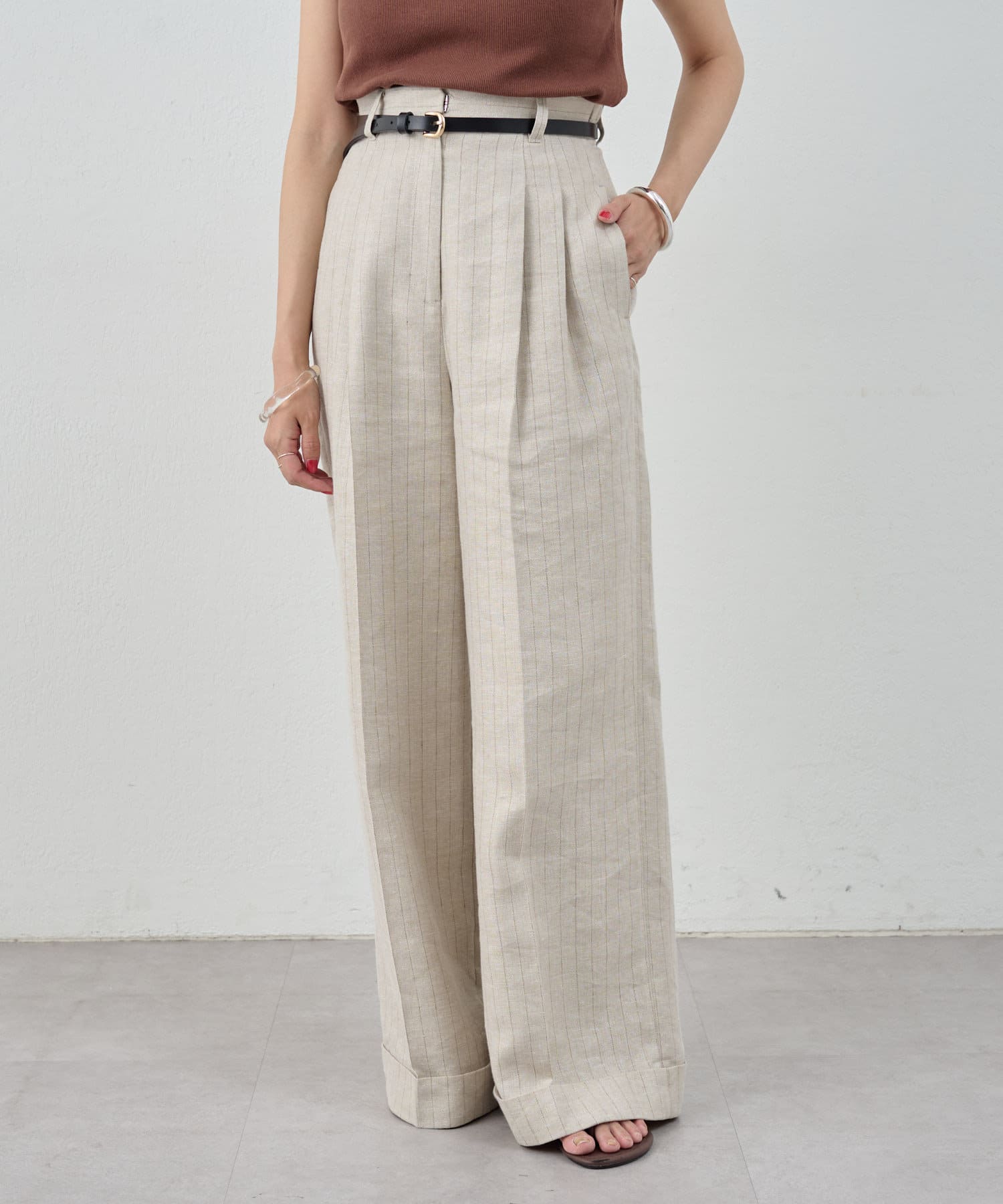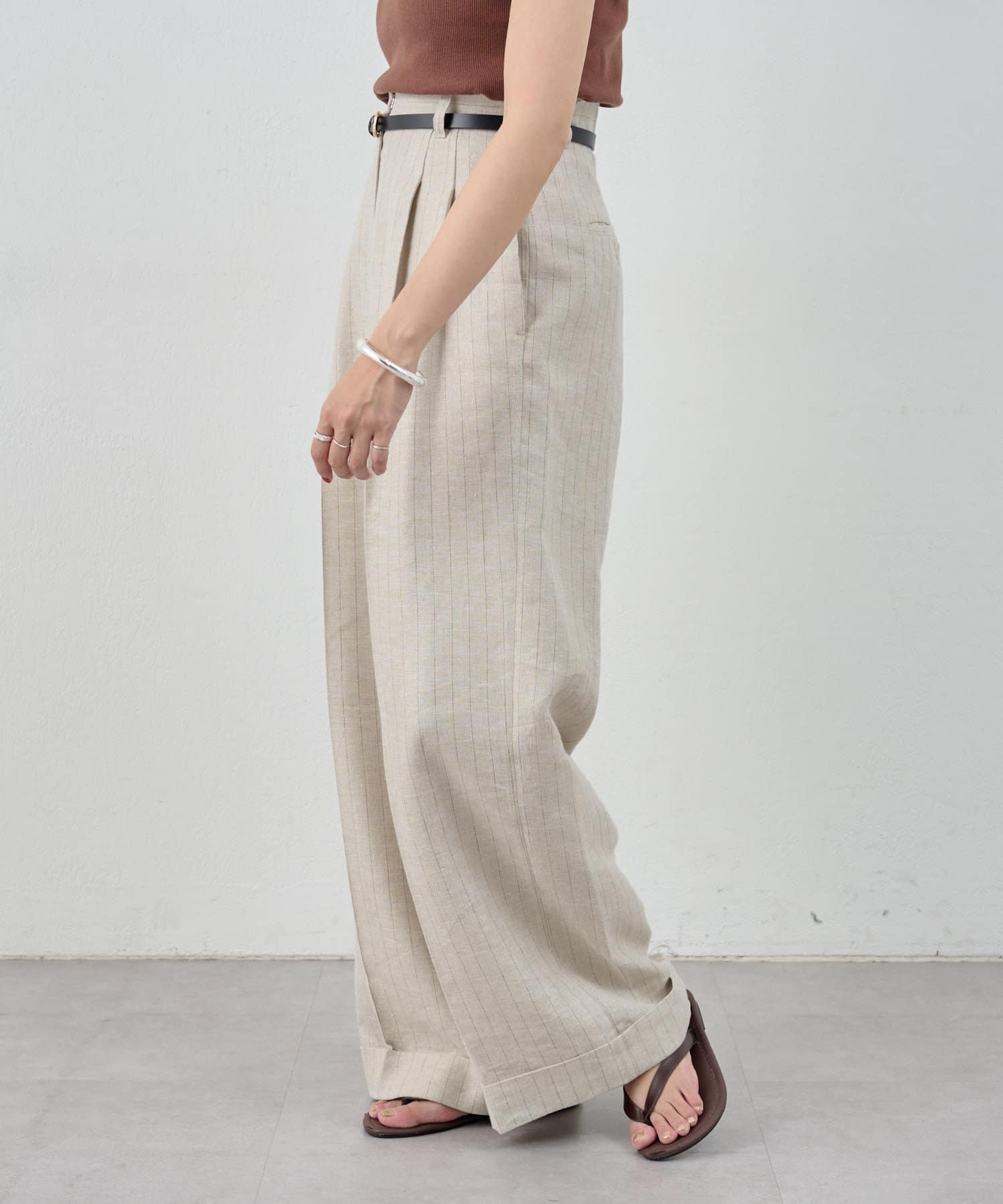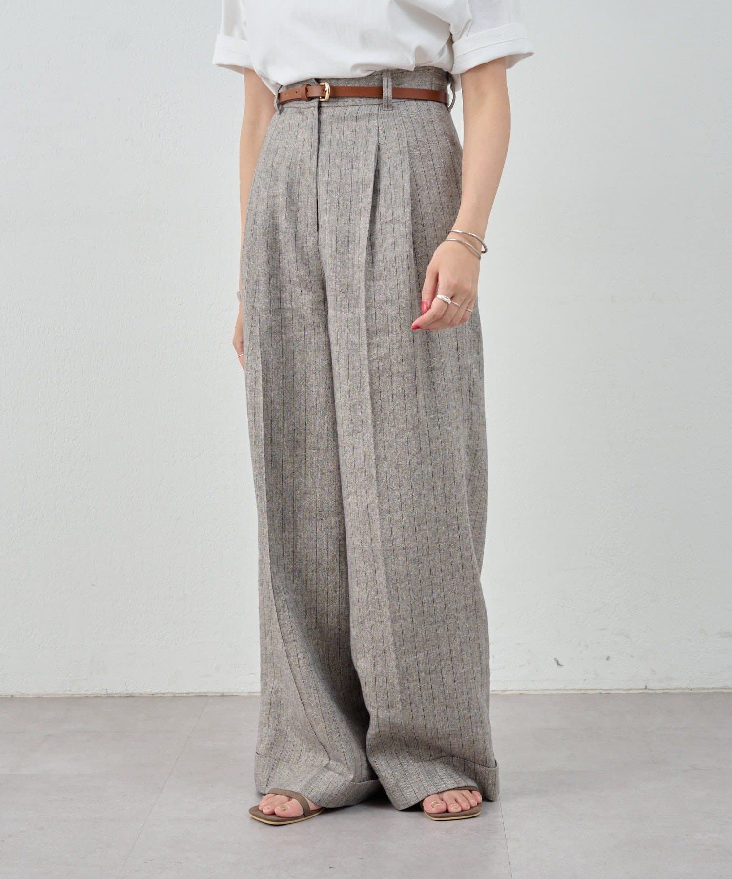 《涼しいリネン素材》ラメリネンストライプパンツ