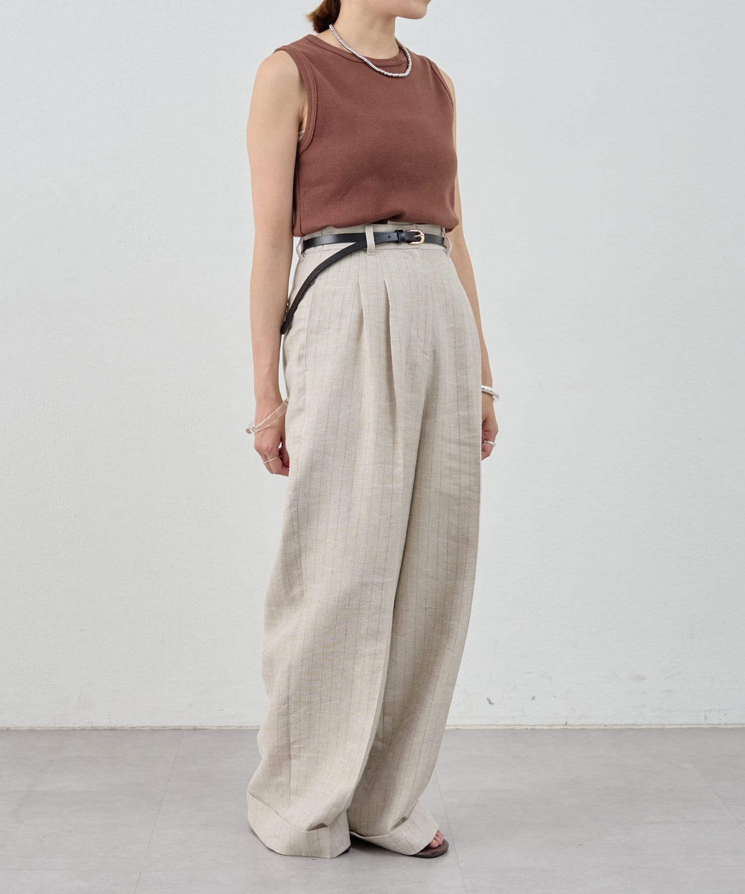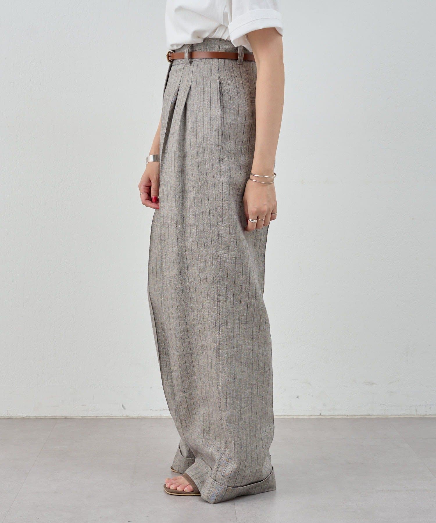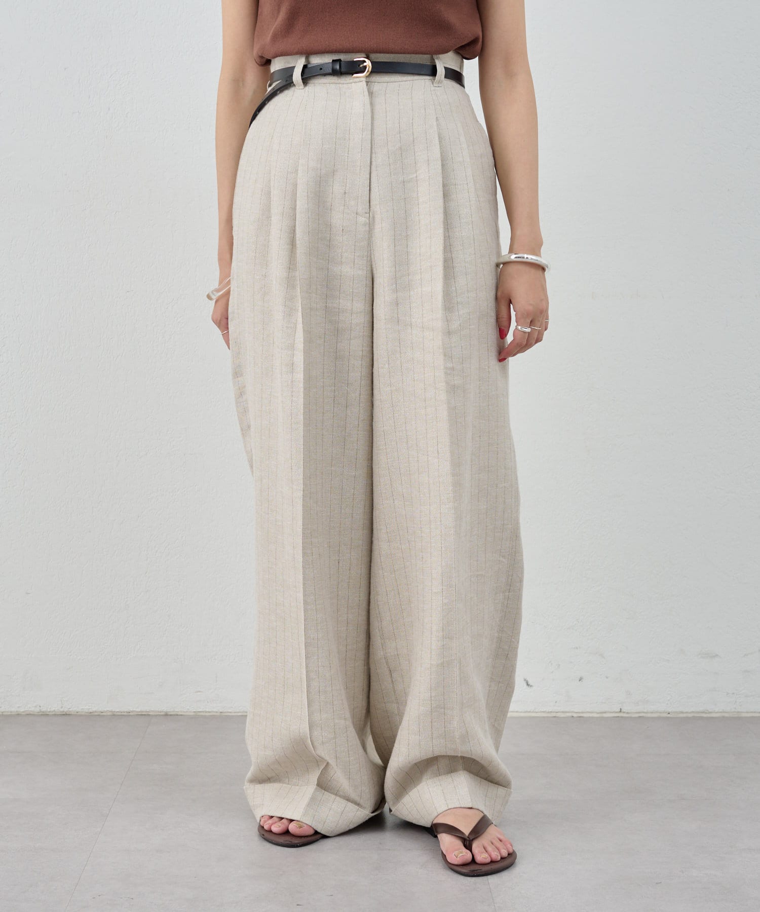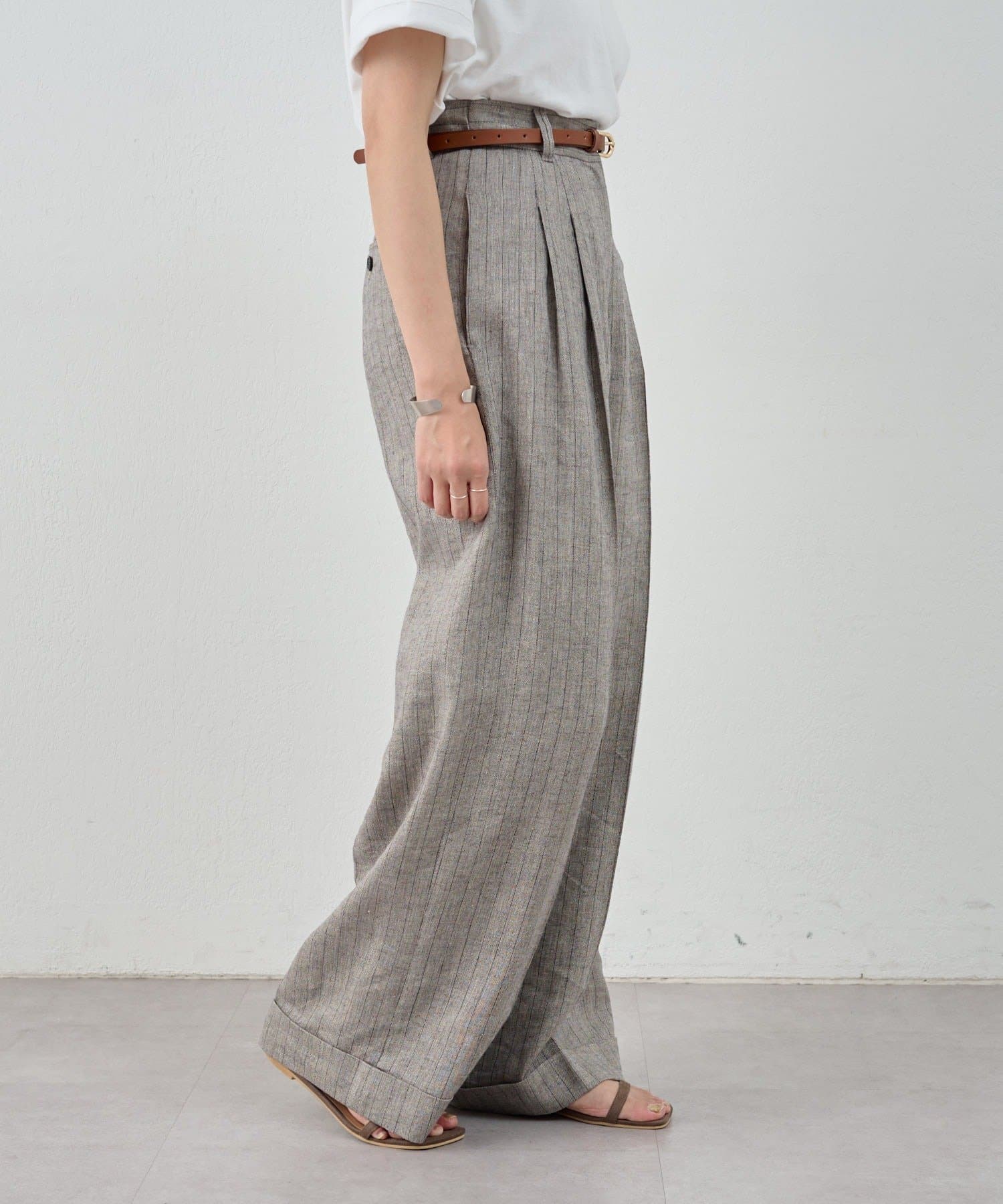 《涼しいリネン素材》ラメリネンストライプパンツ