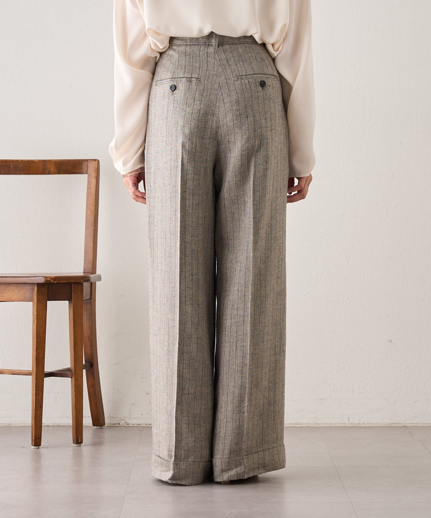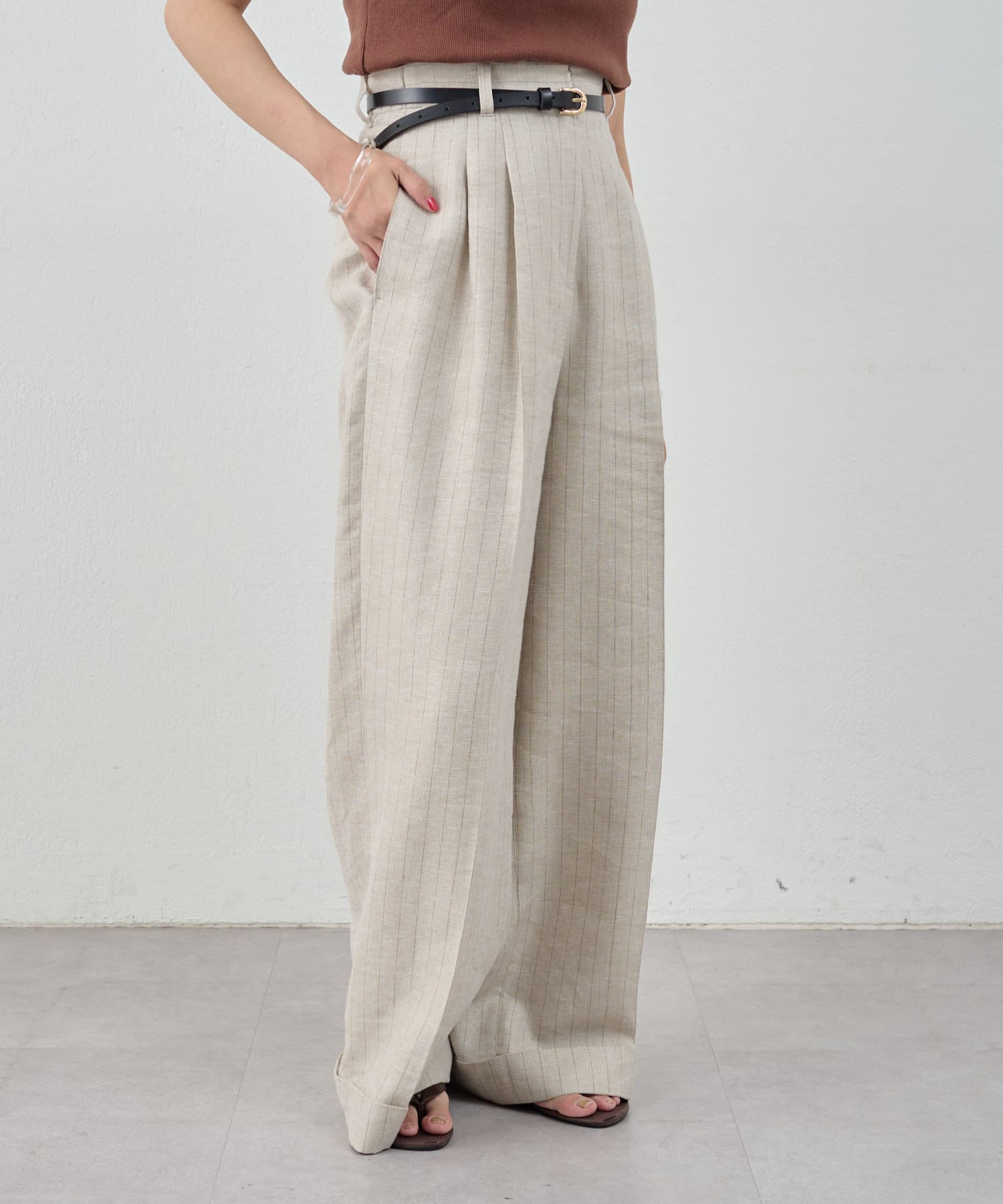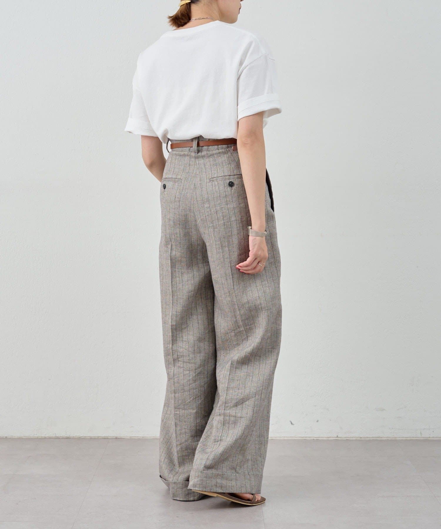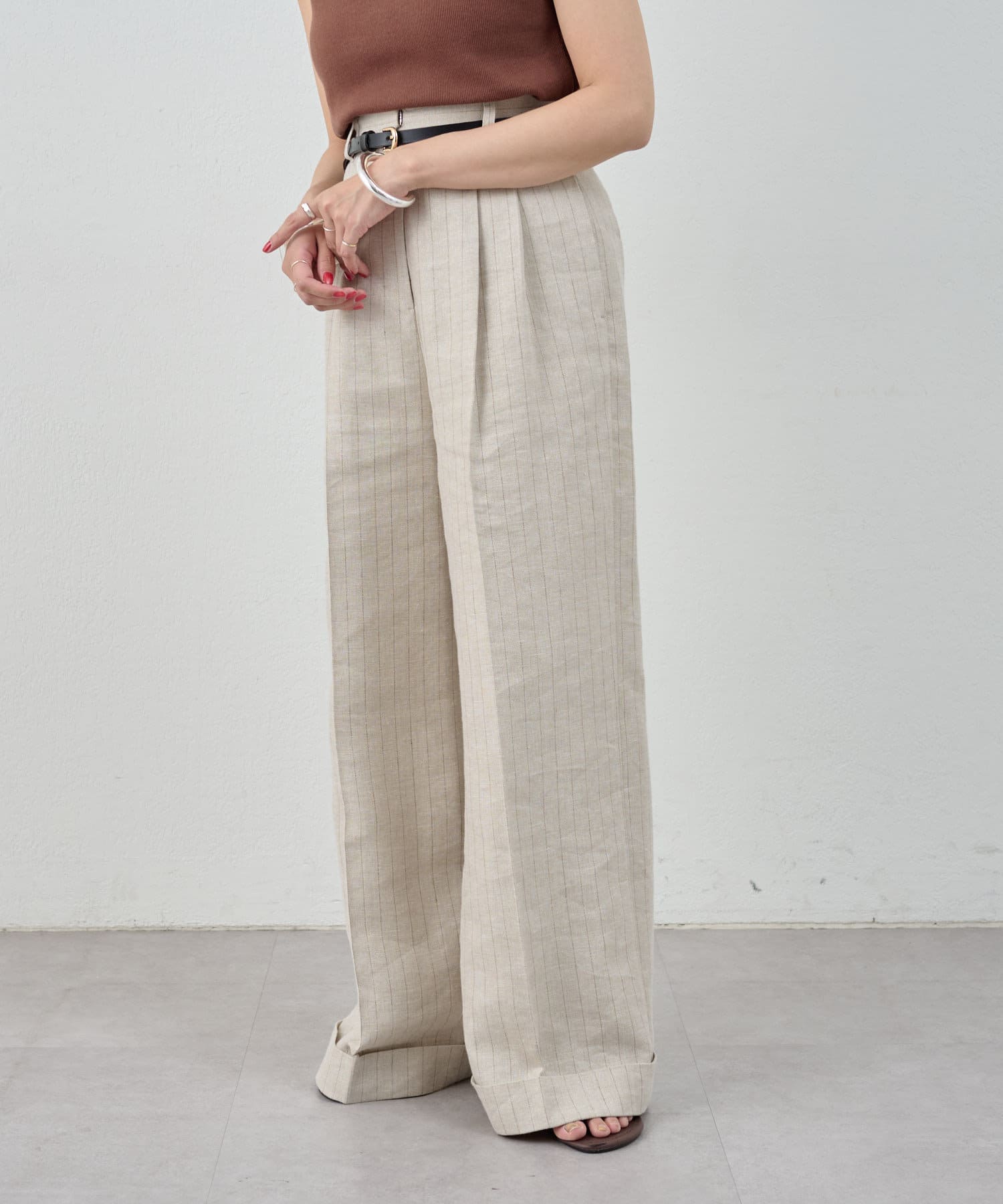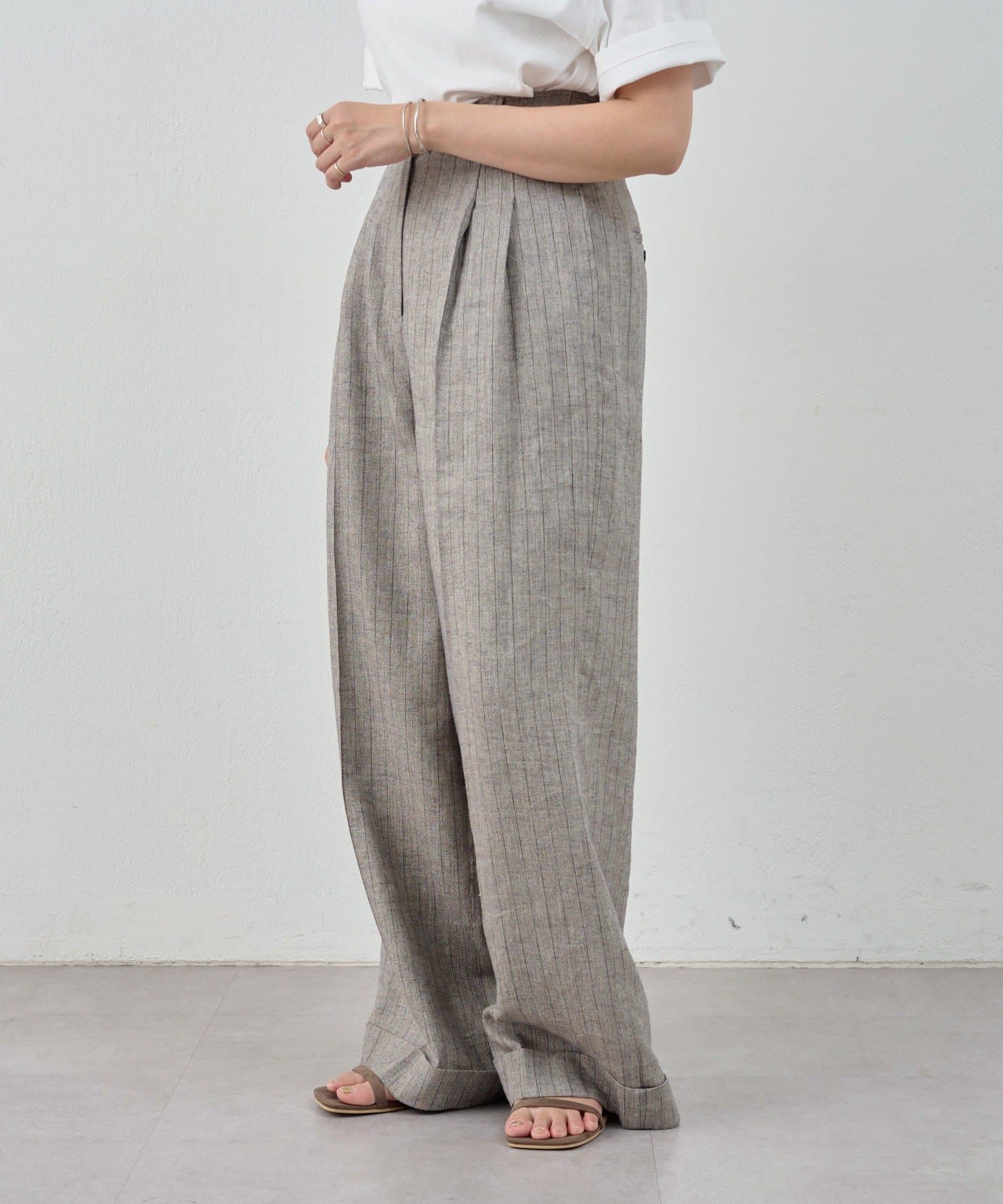 《涼しいリネン素材》ラメリネンストライプパンツ