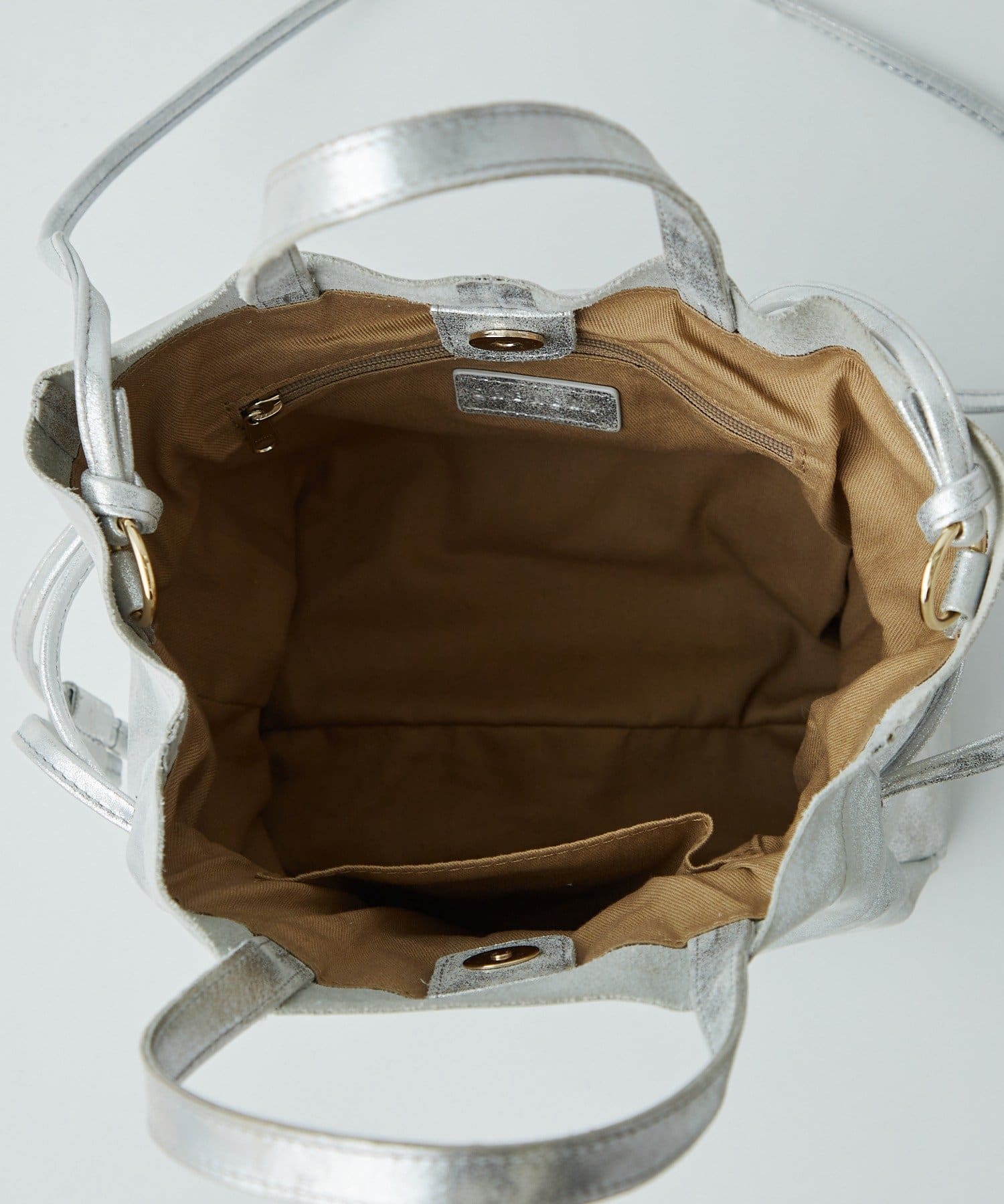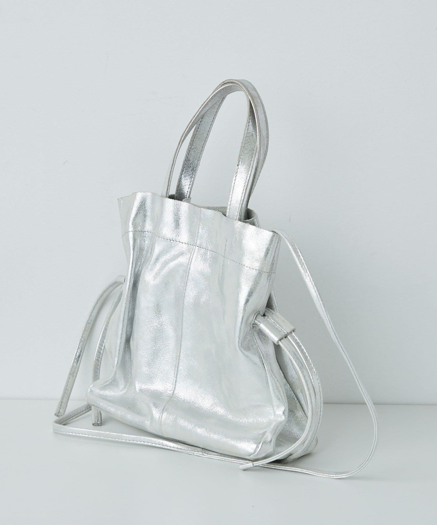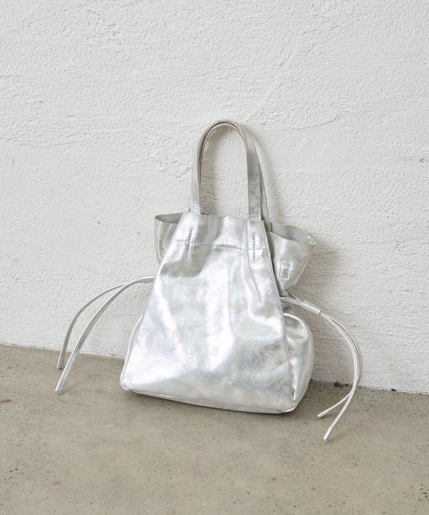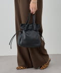 サイドのひもを引っ張ることで、巾着の様な変化を楽しむことも可能◎