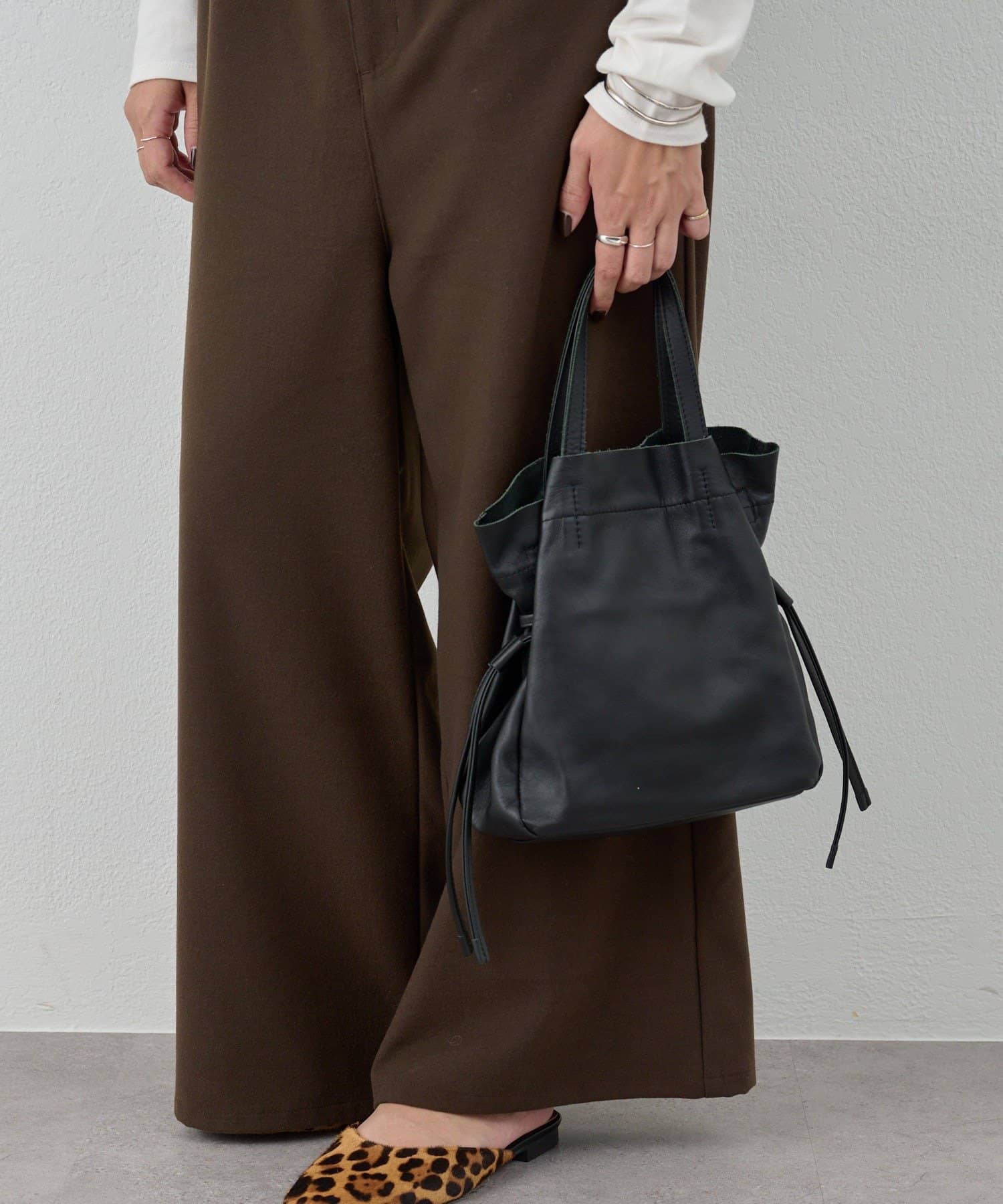 【収納力抜群/ベストセラーアイテム】【牛革】レザー巾着ショルダーバッグ
