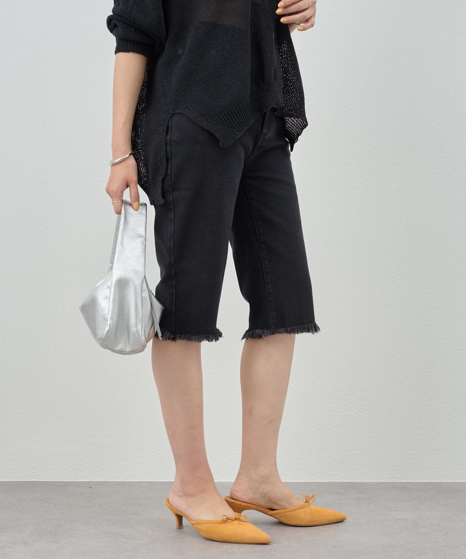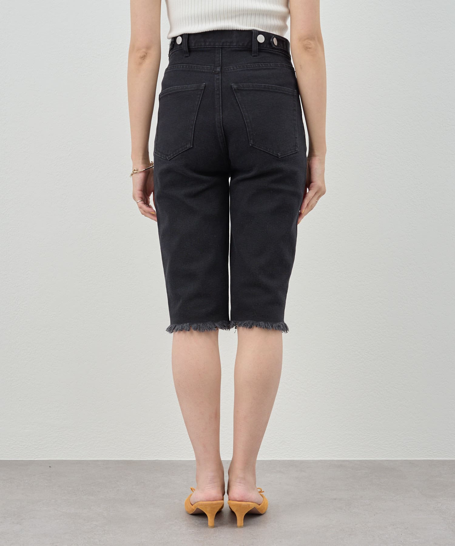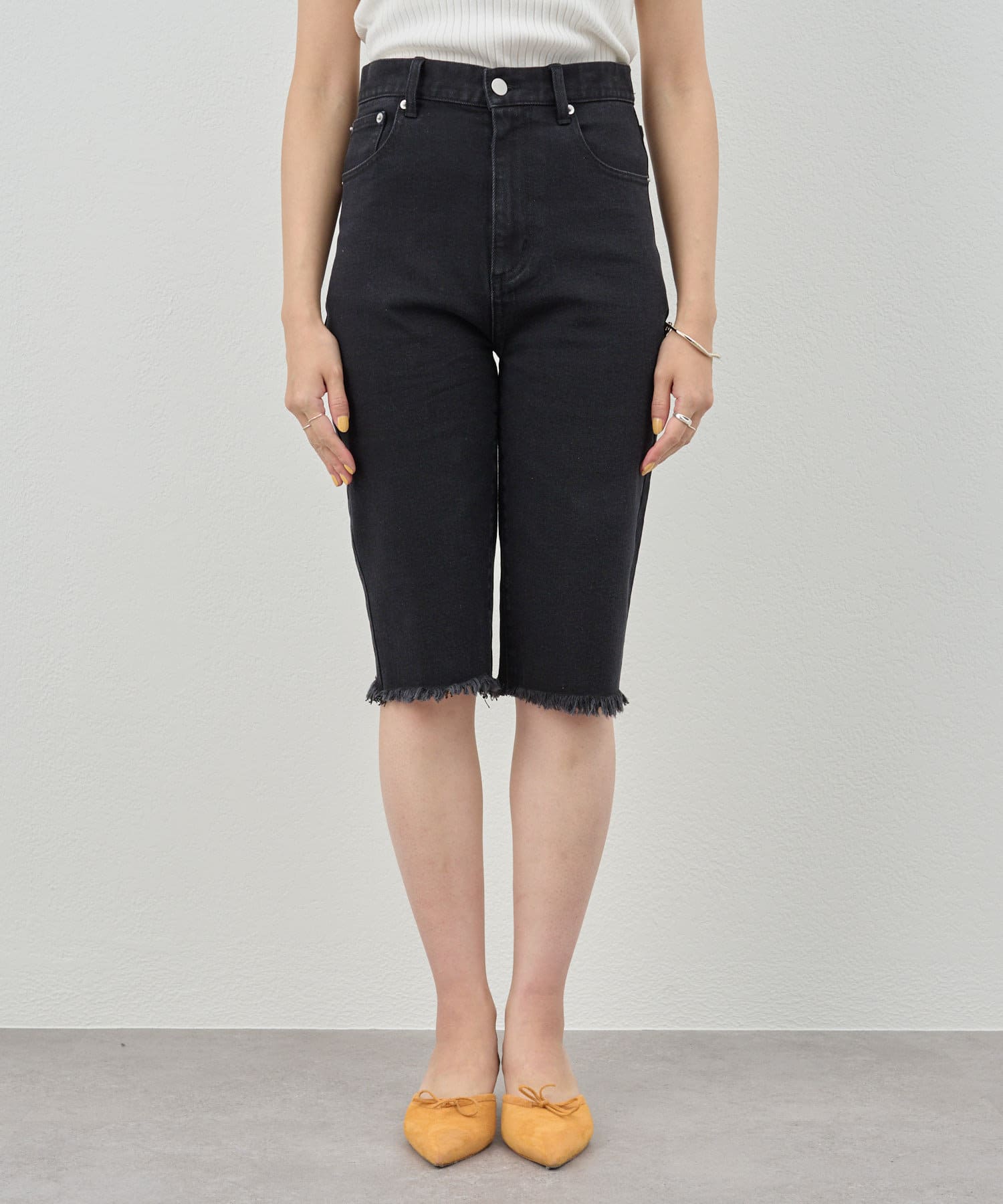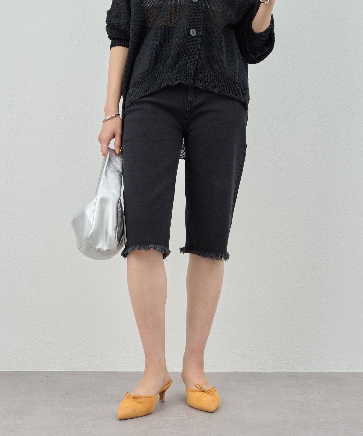 トレンド感たっぷりのハーフデニムパンツ。