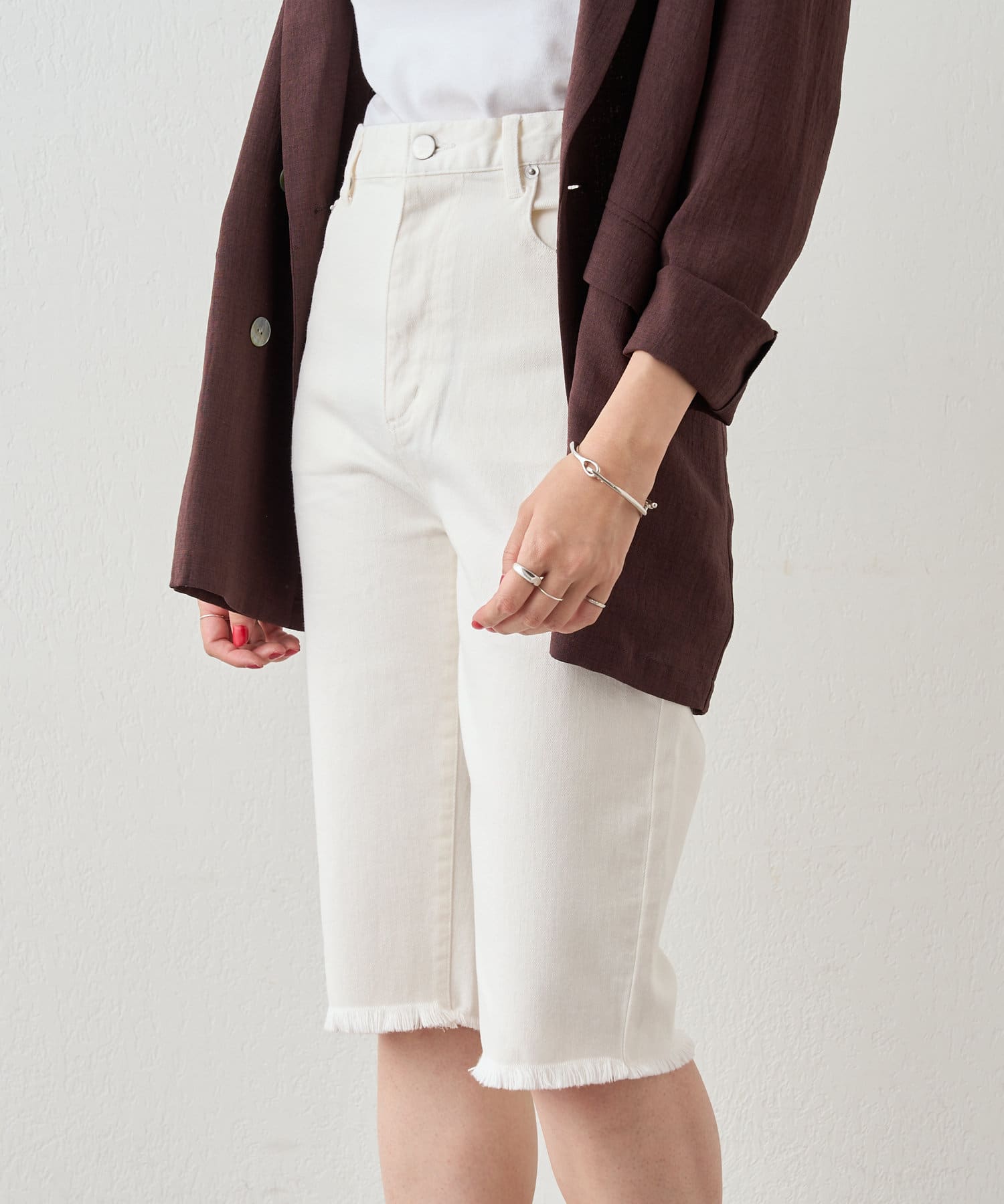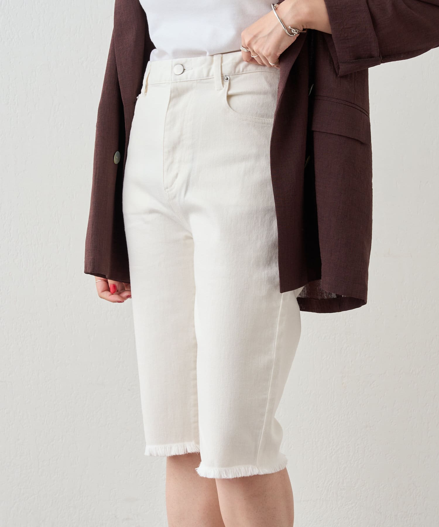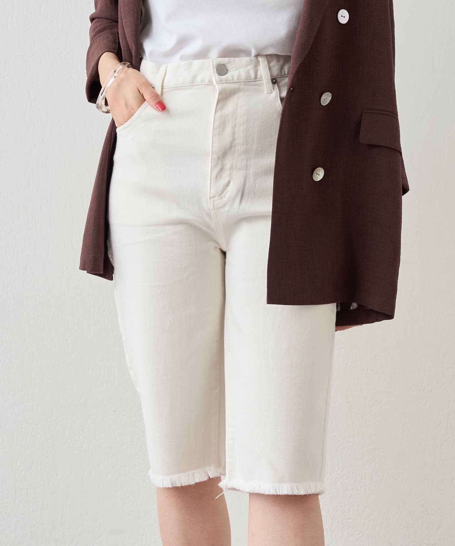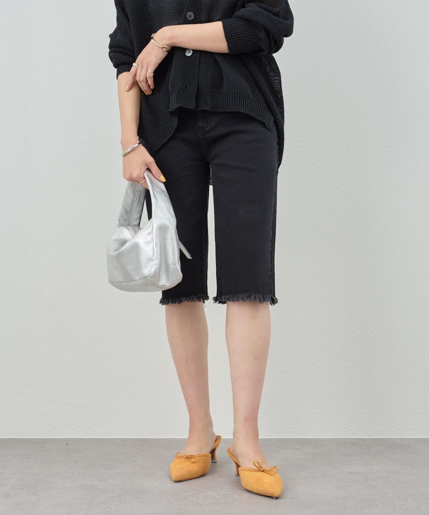 トレンド感たっぷりのハーフデニムパンツ。