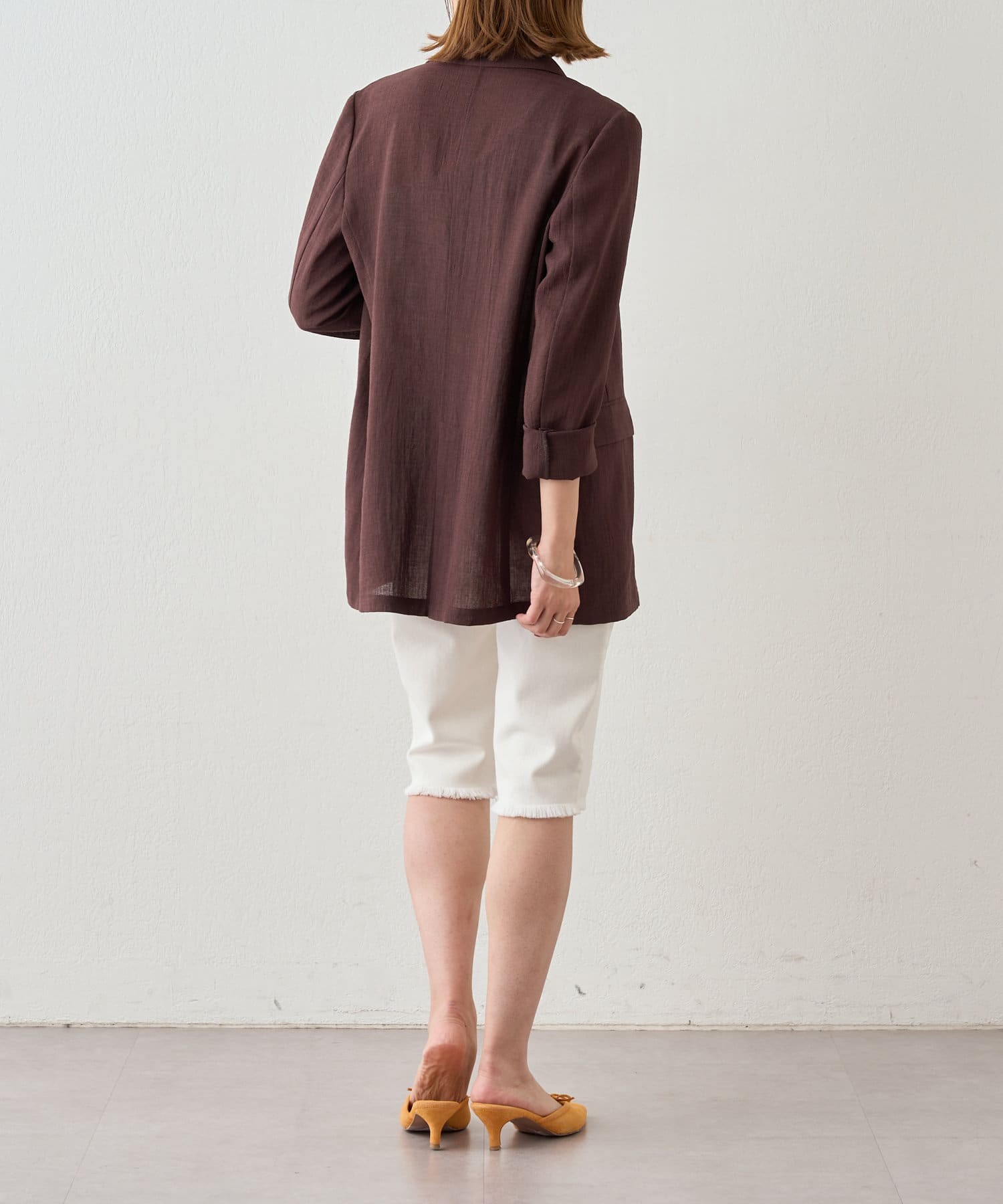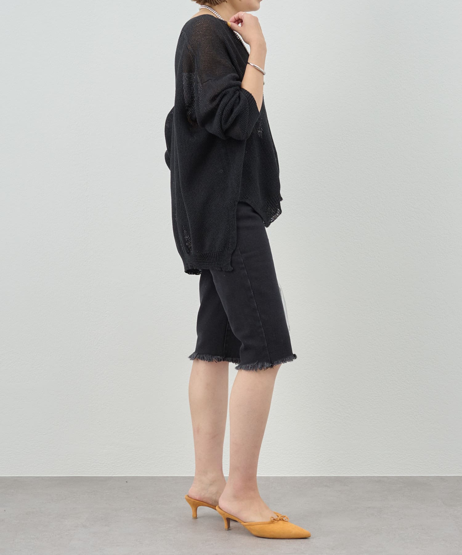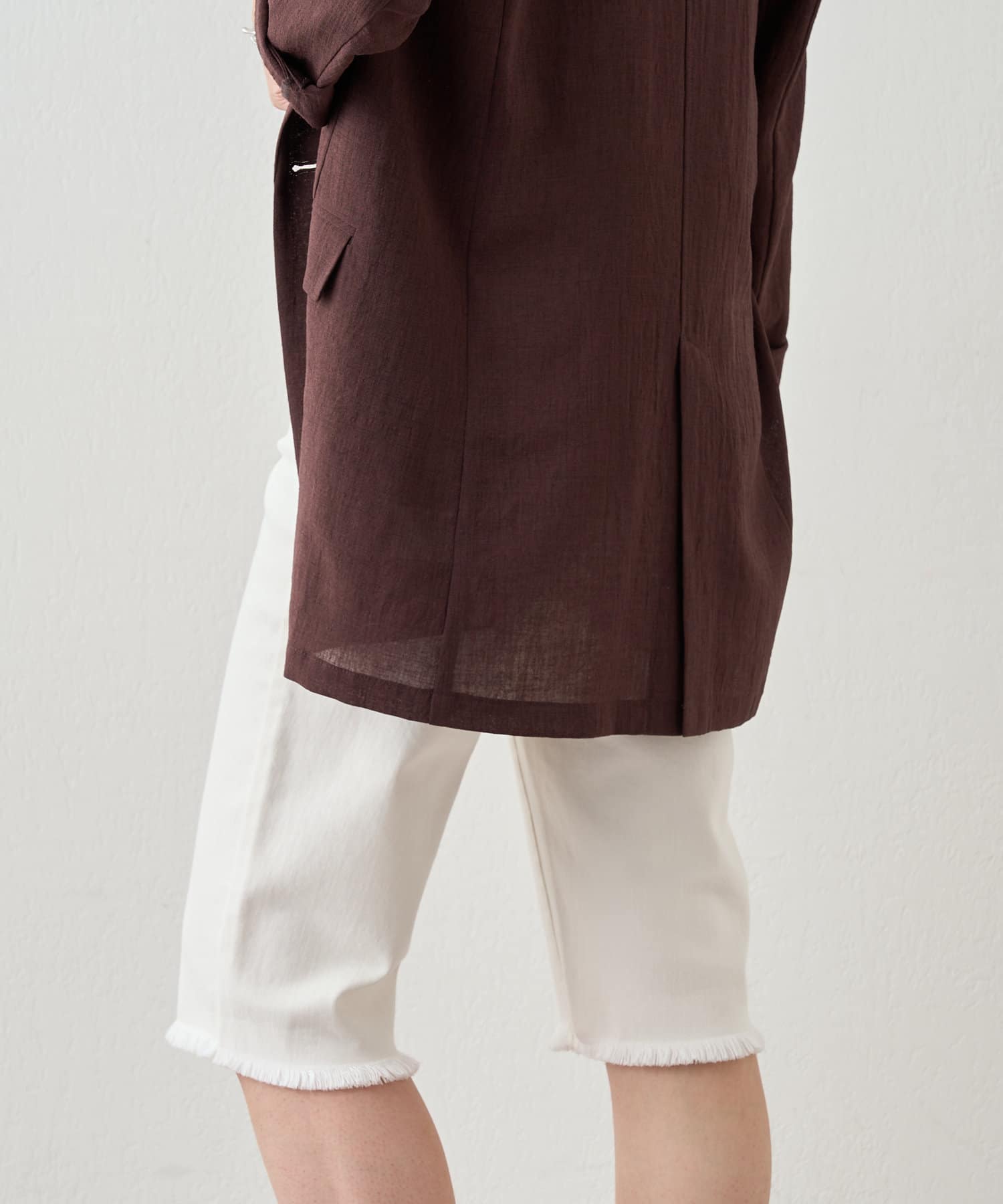 裾はカットオフ仕様でラフな印象に。