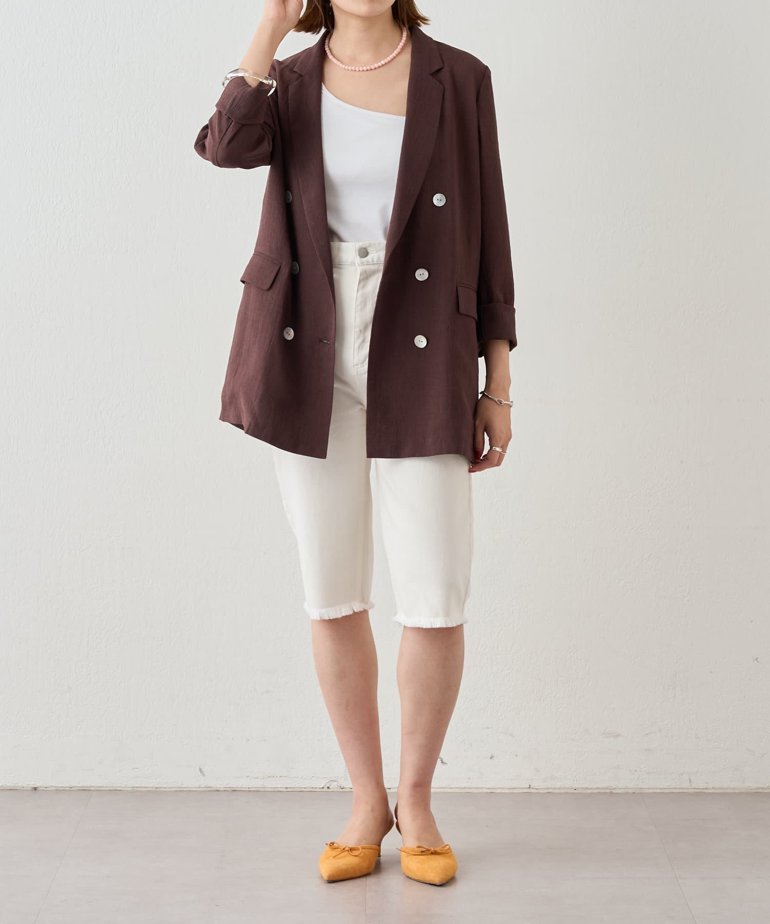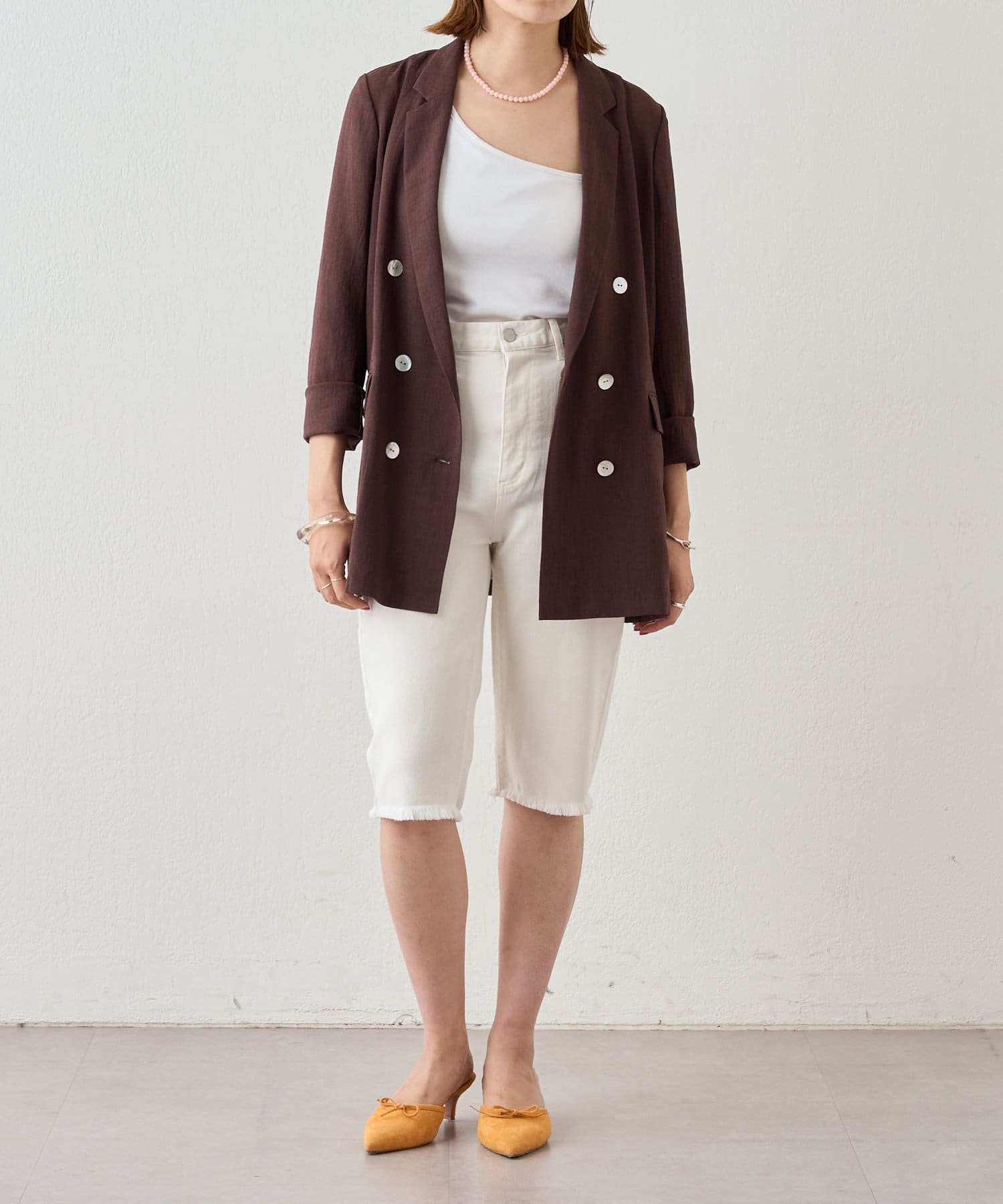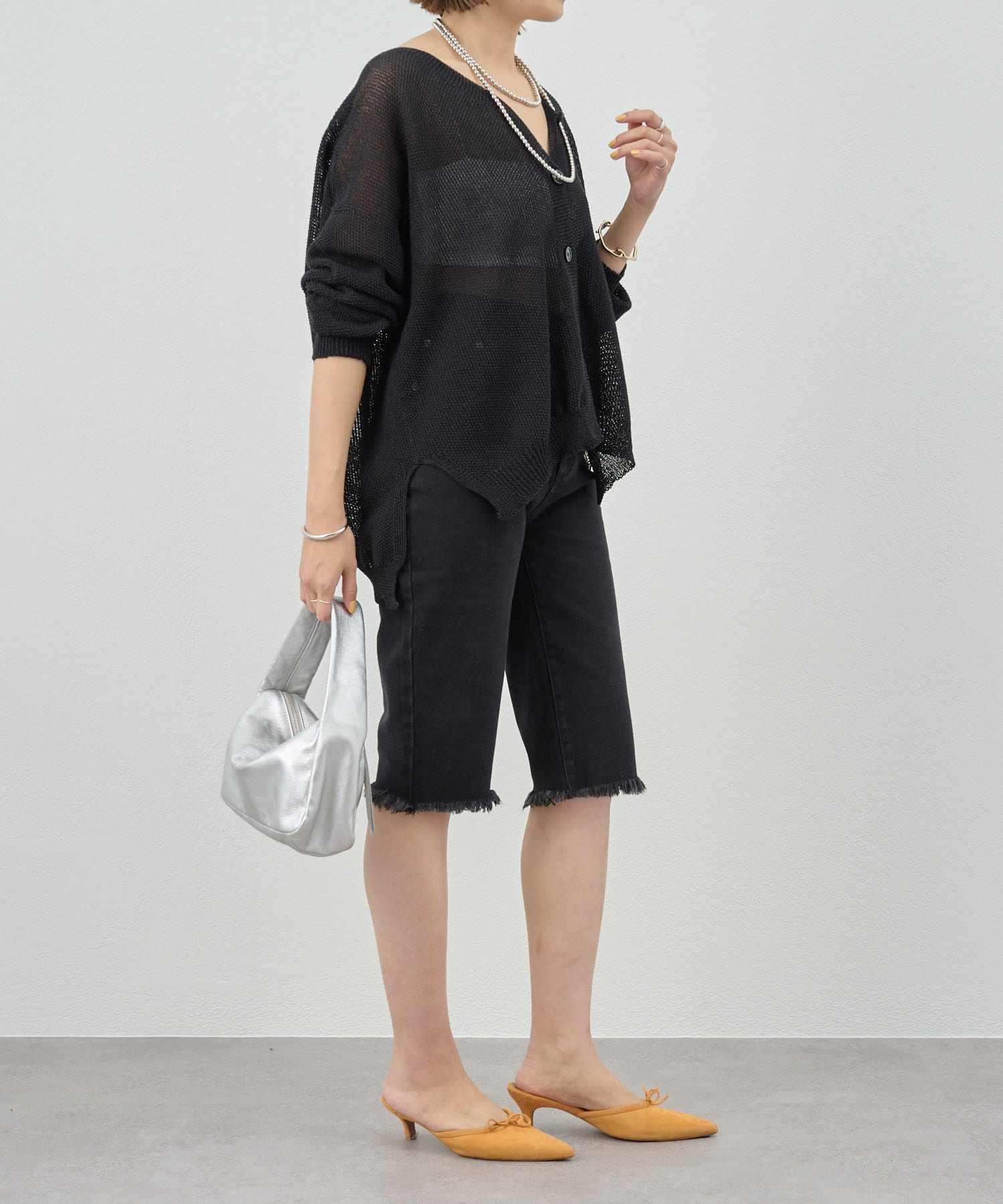 裾はカットオフ仕様でラフな印象に。