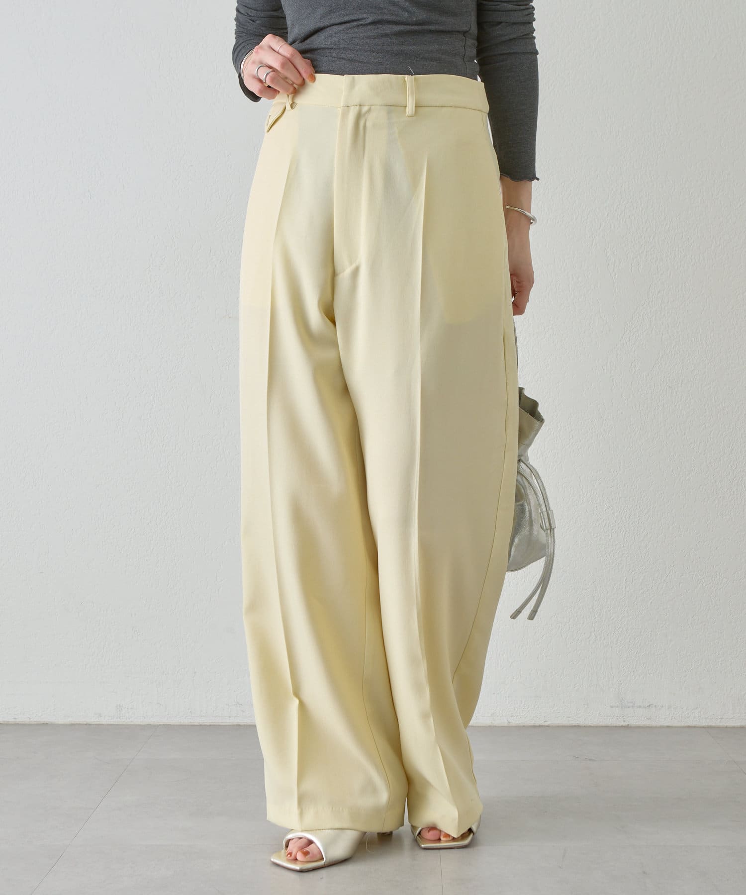 トップスを選ばないベーシックなパンツは着回し力も抜群。