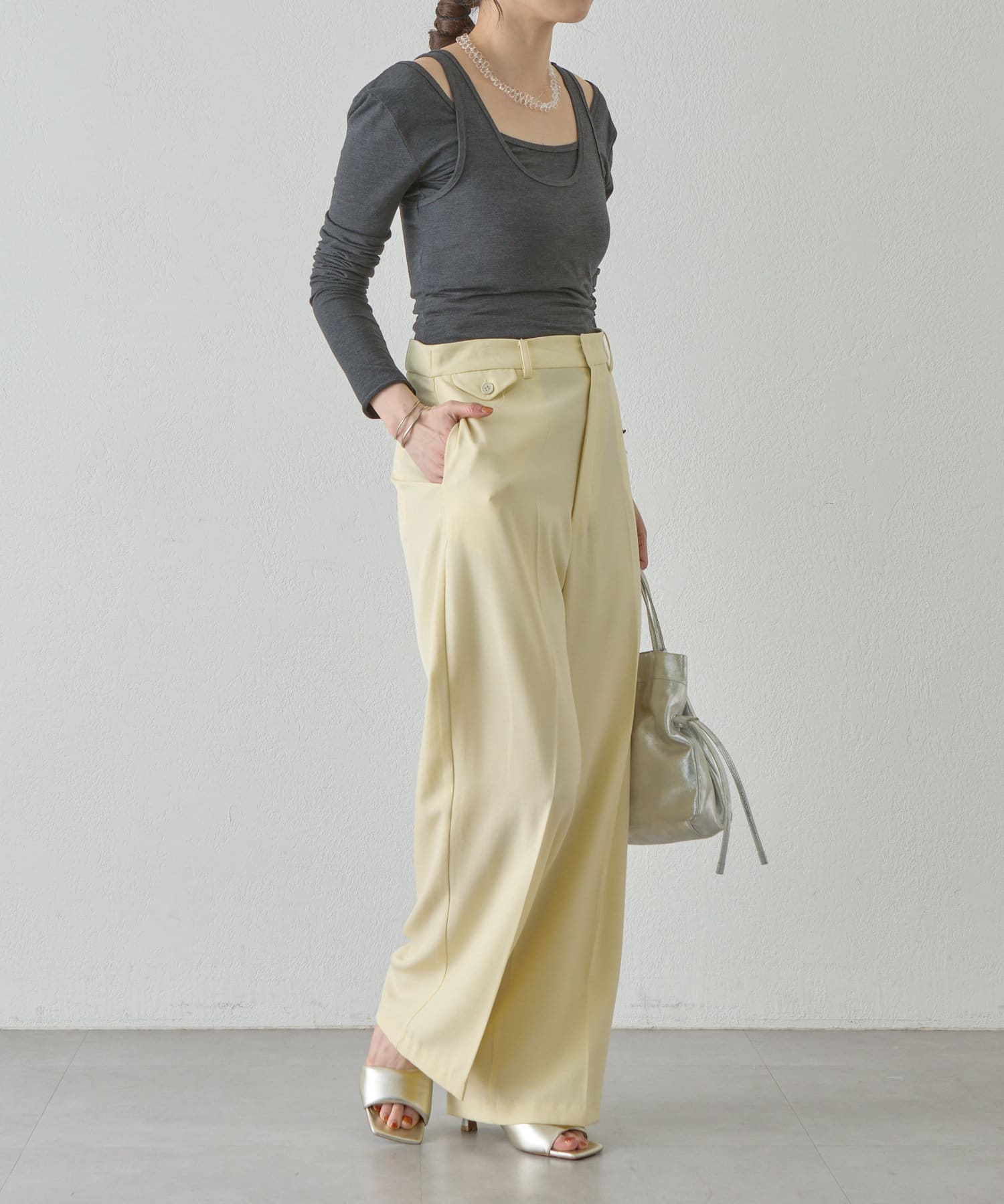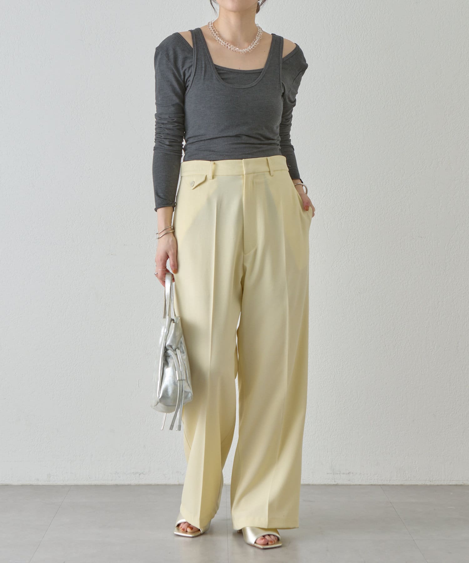 ベルトループ付きなので、ベルトを通してトップスINしたスタイリングもおすすめ。