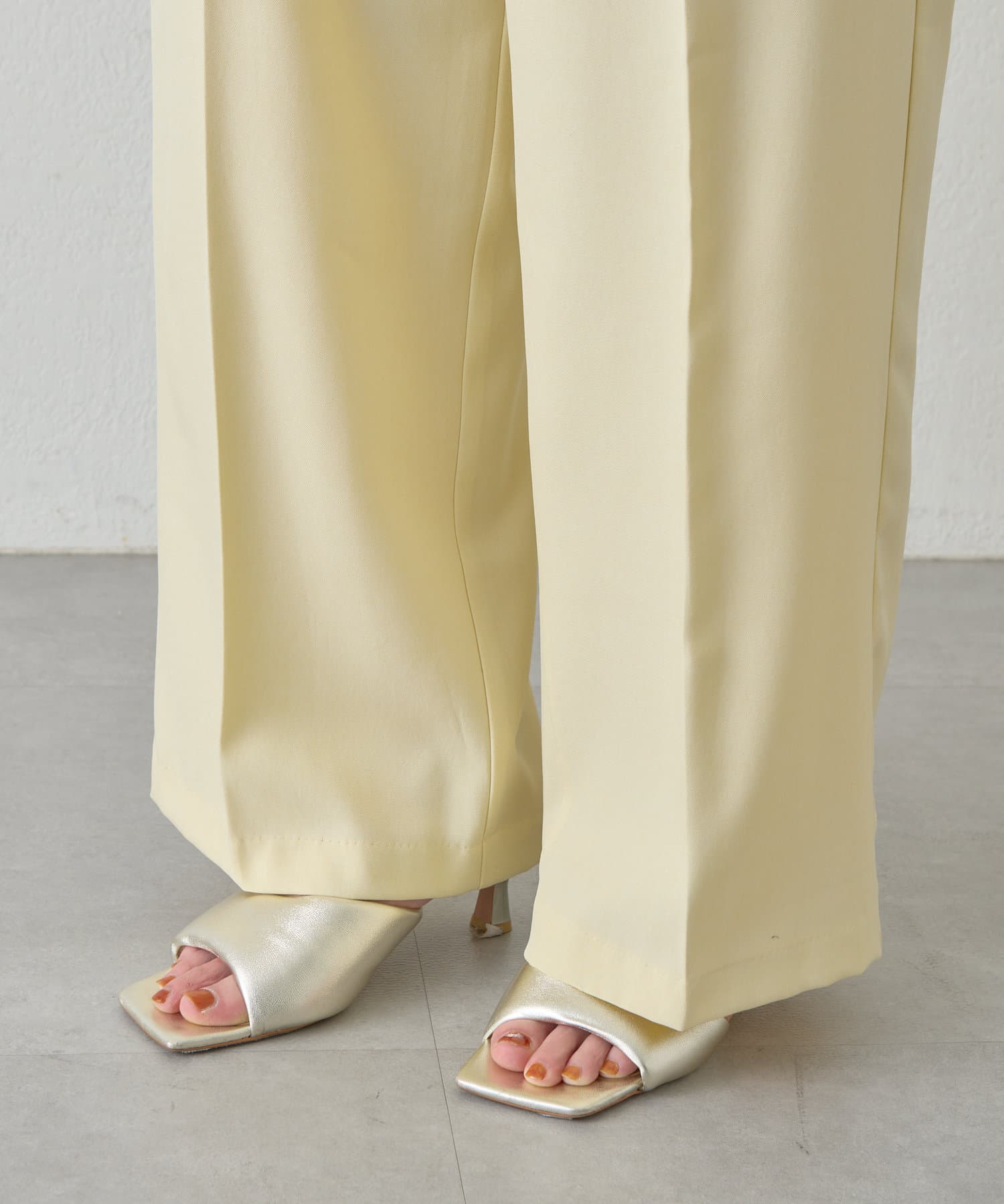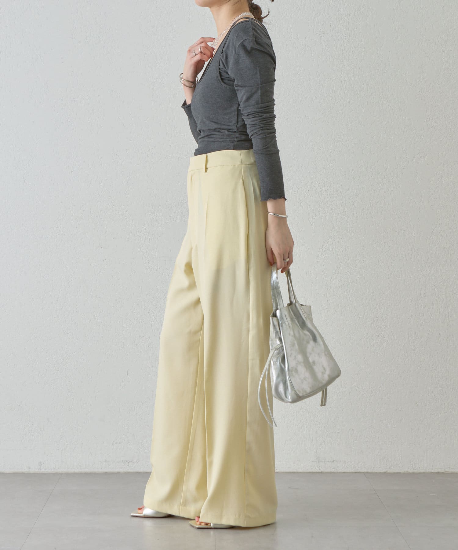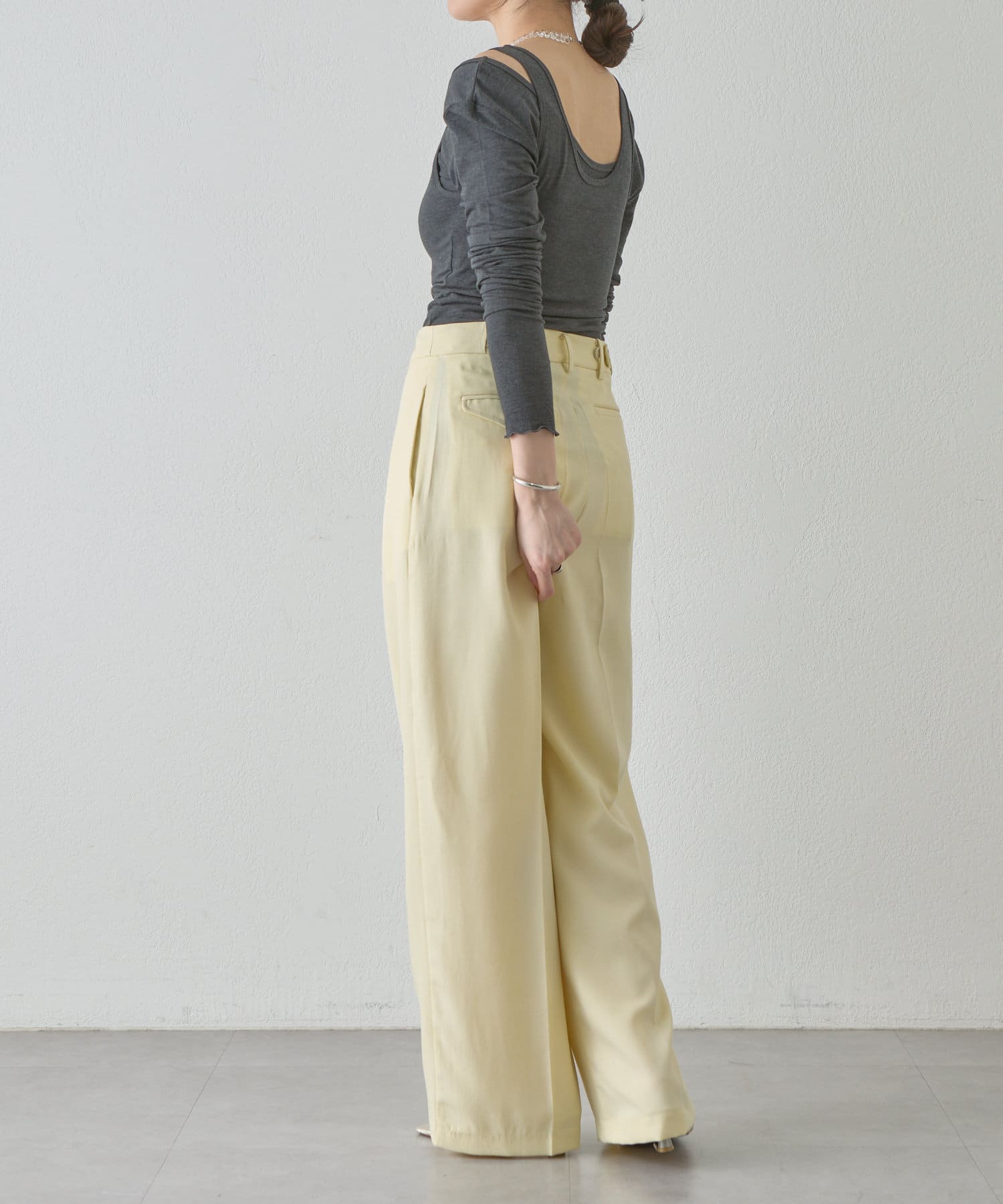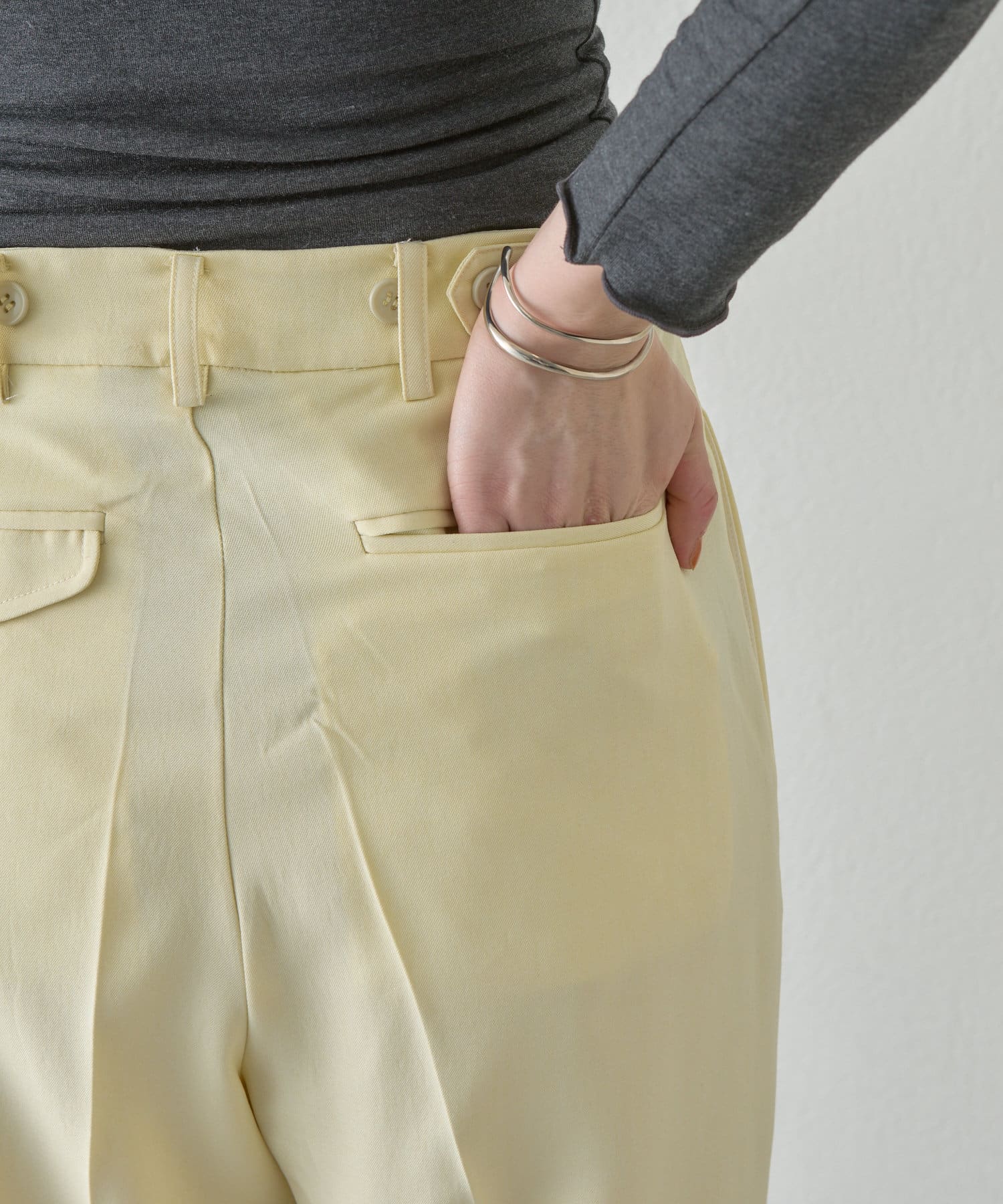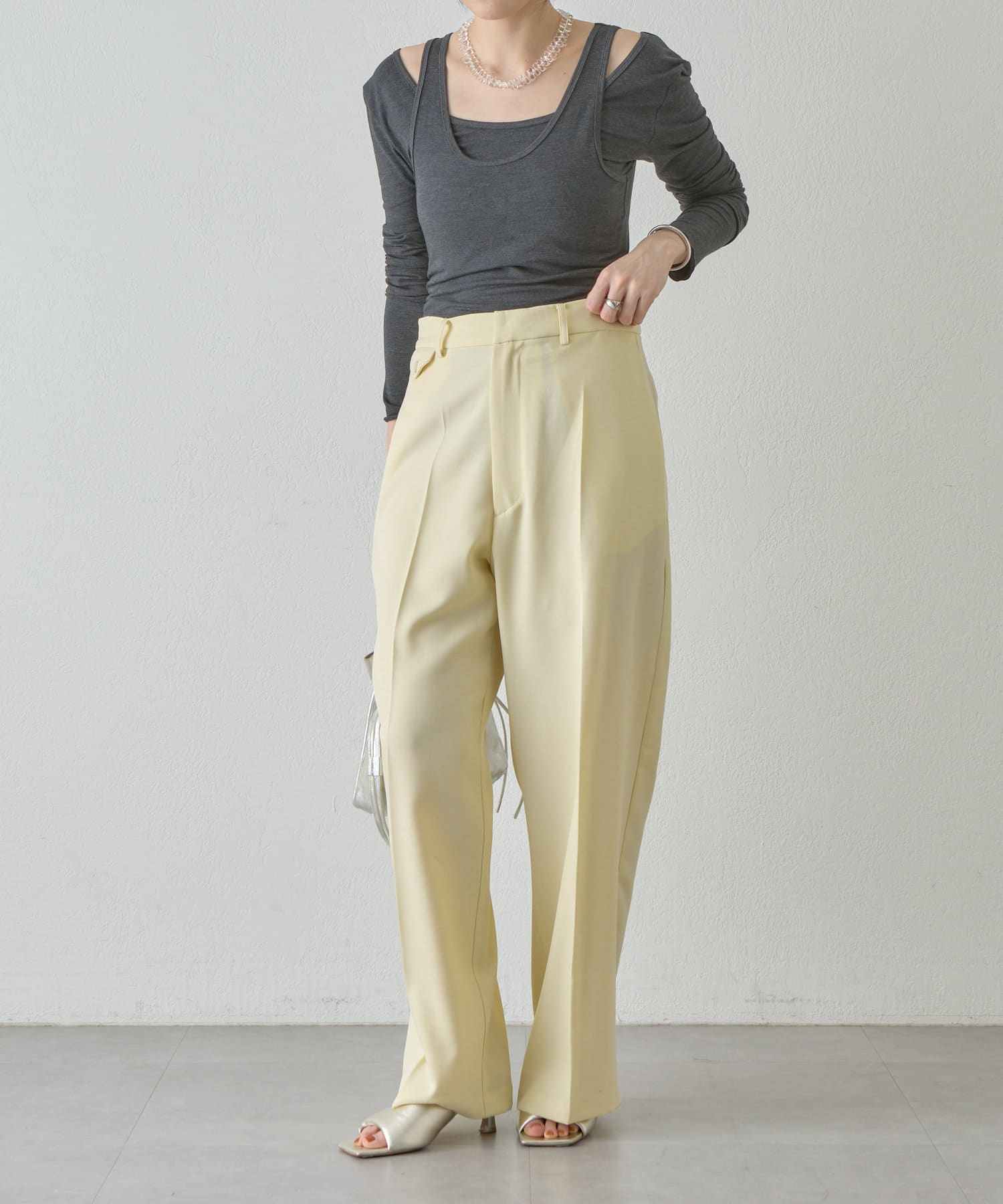 どんなトップスでも合わせやすいスラックスで、ON/OFFさまざまなシーンで着用していただけます。