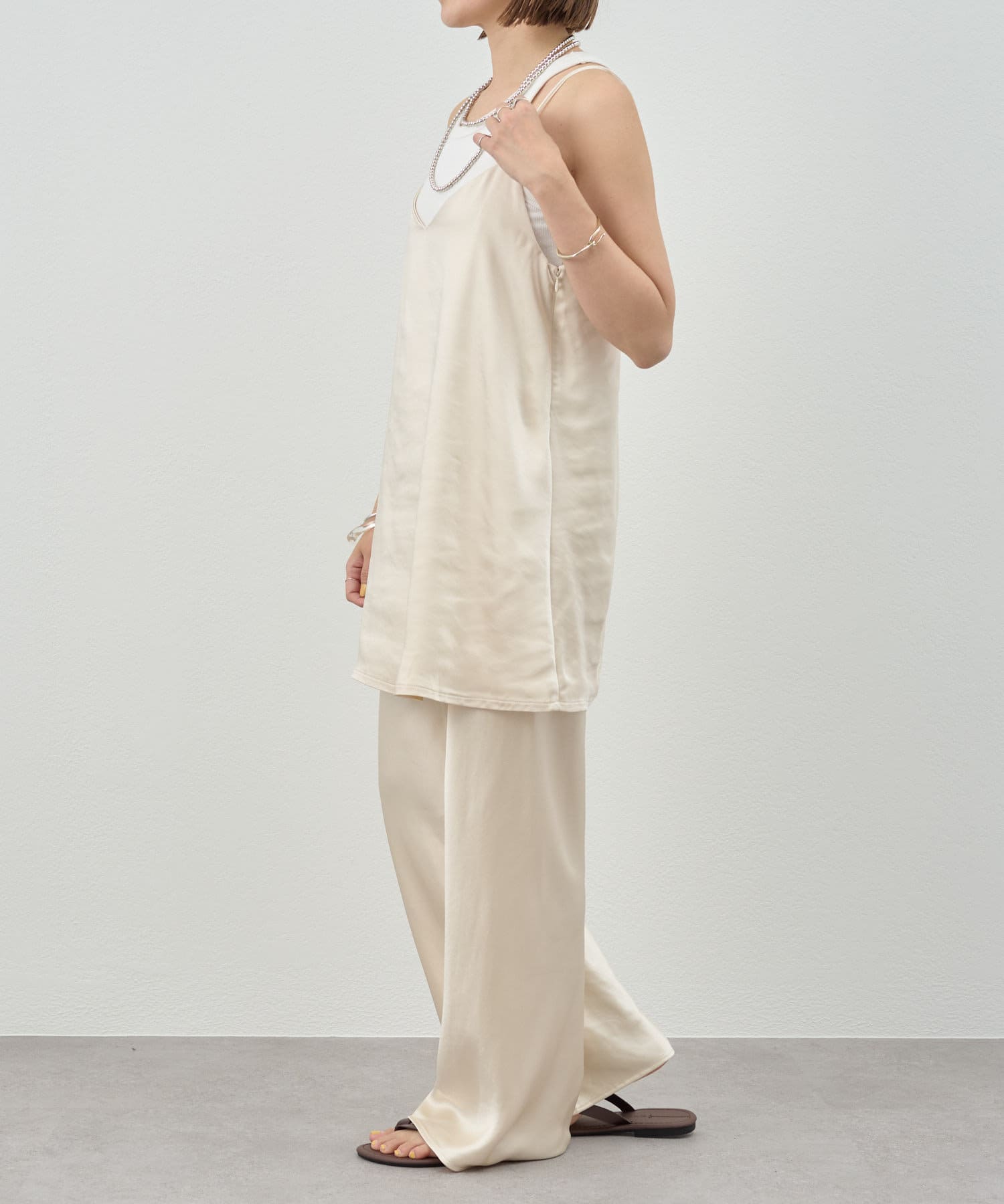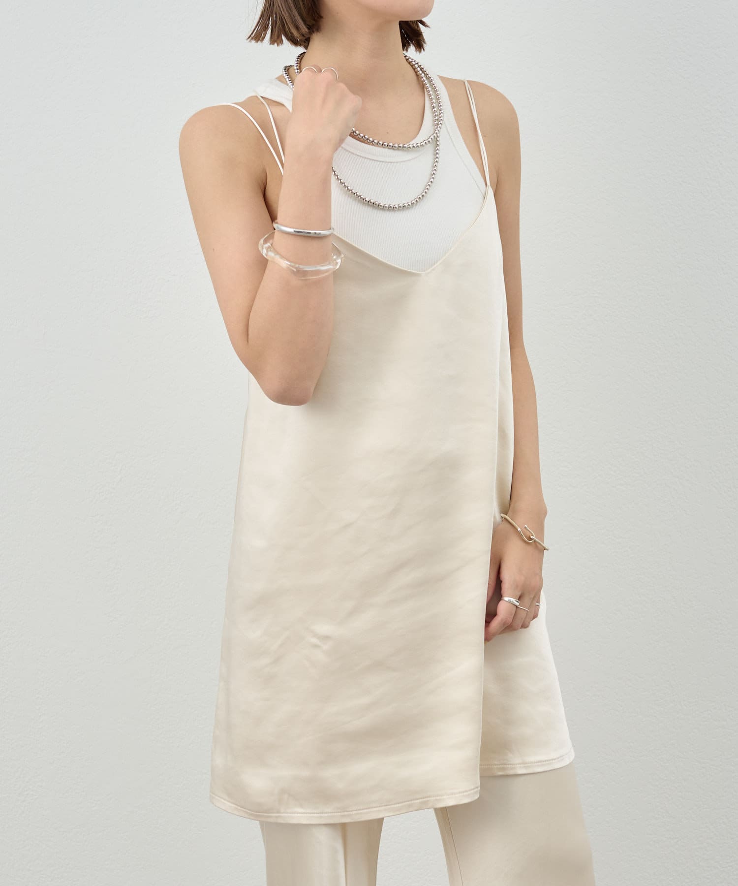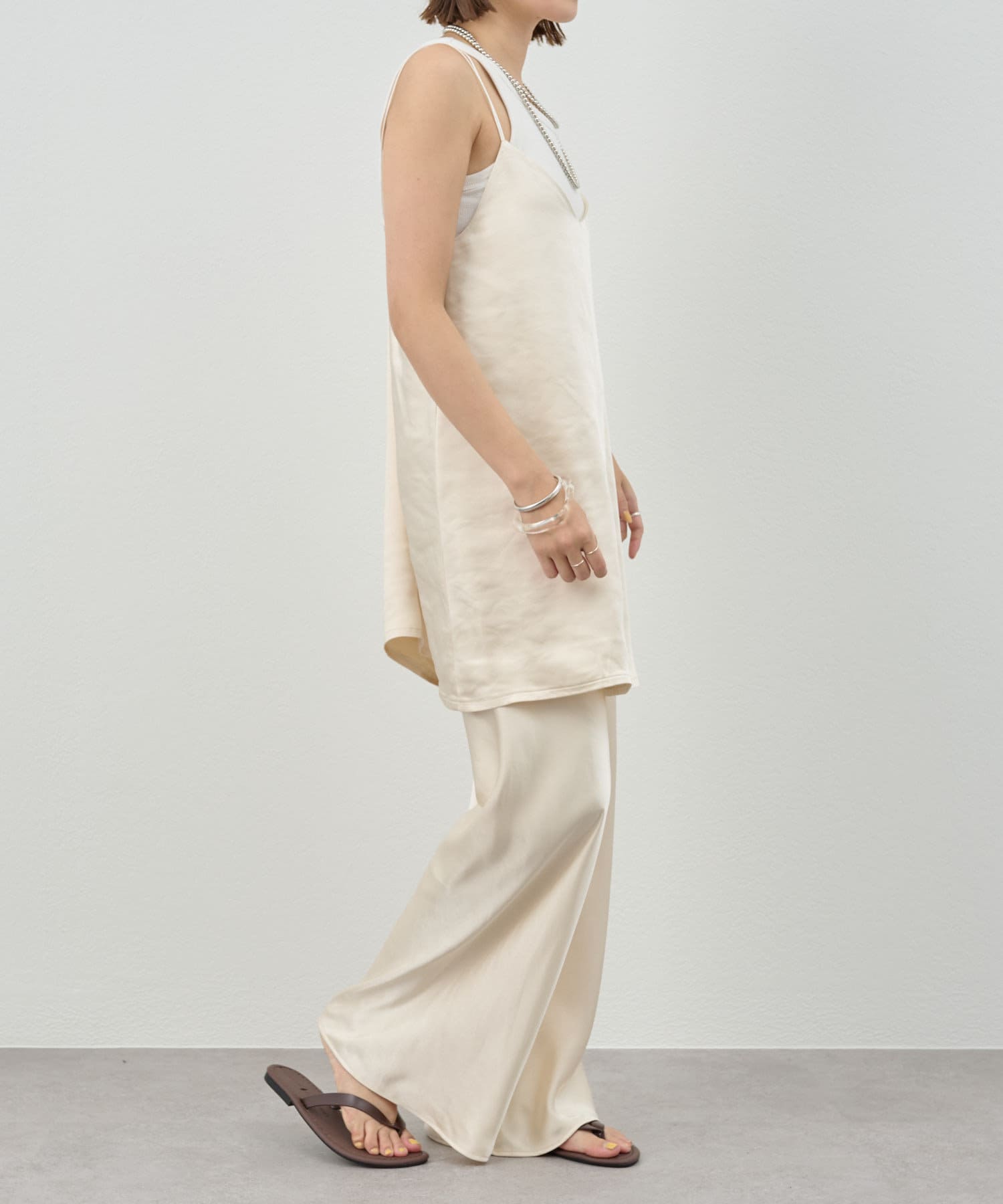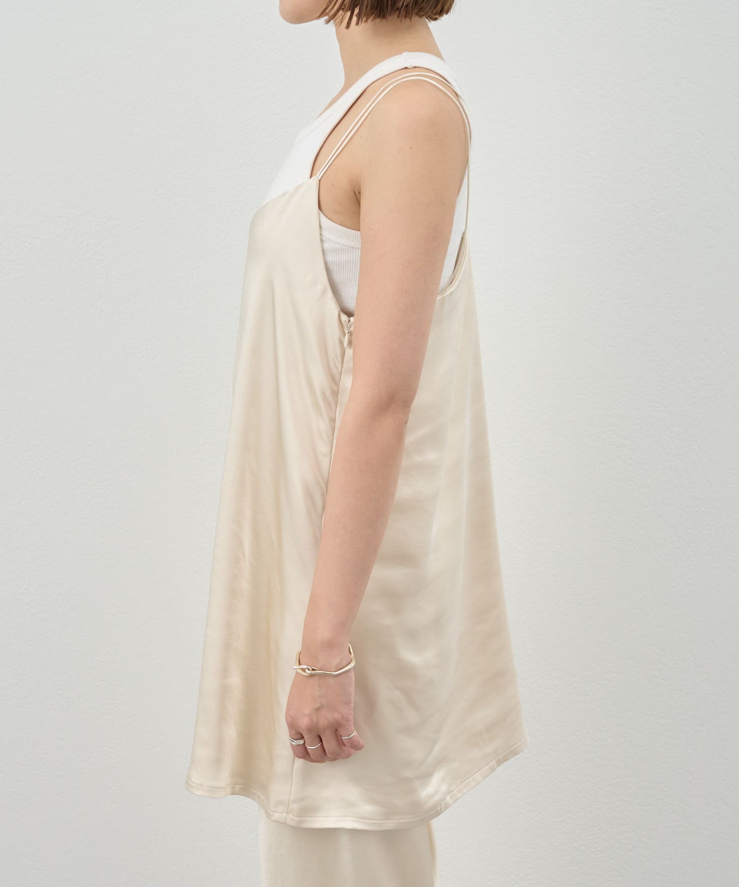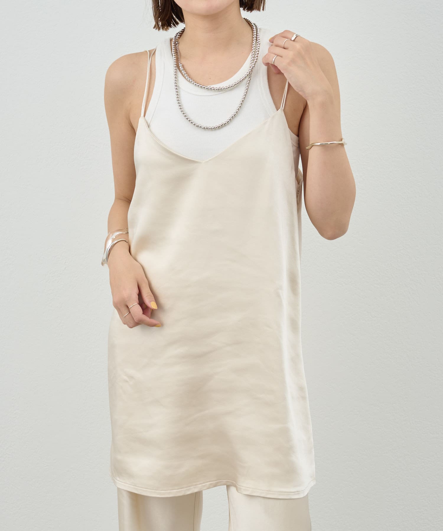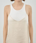 上品な光沢感のあるポリエステルサテンを使用したキャミソール。