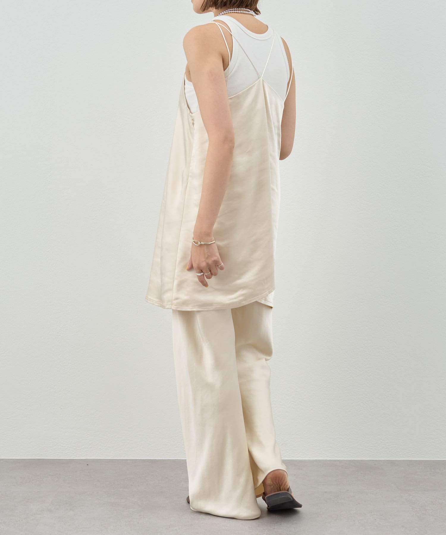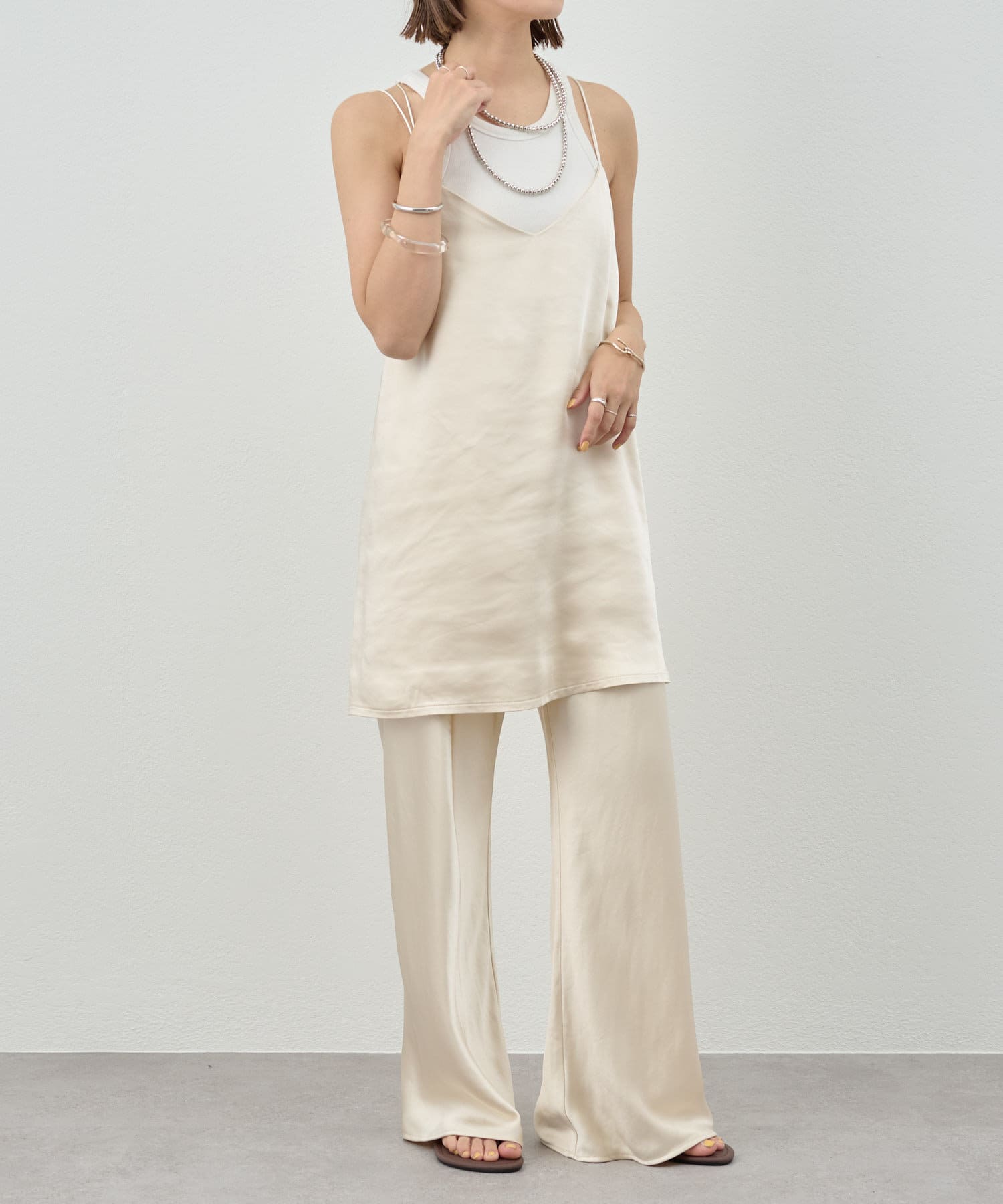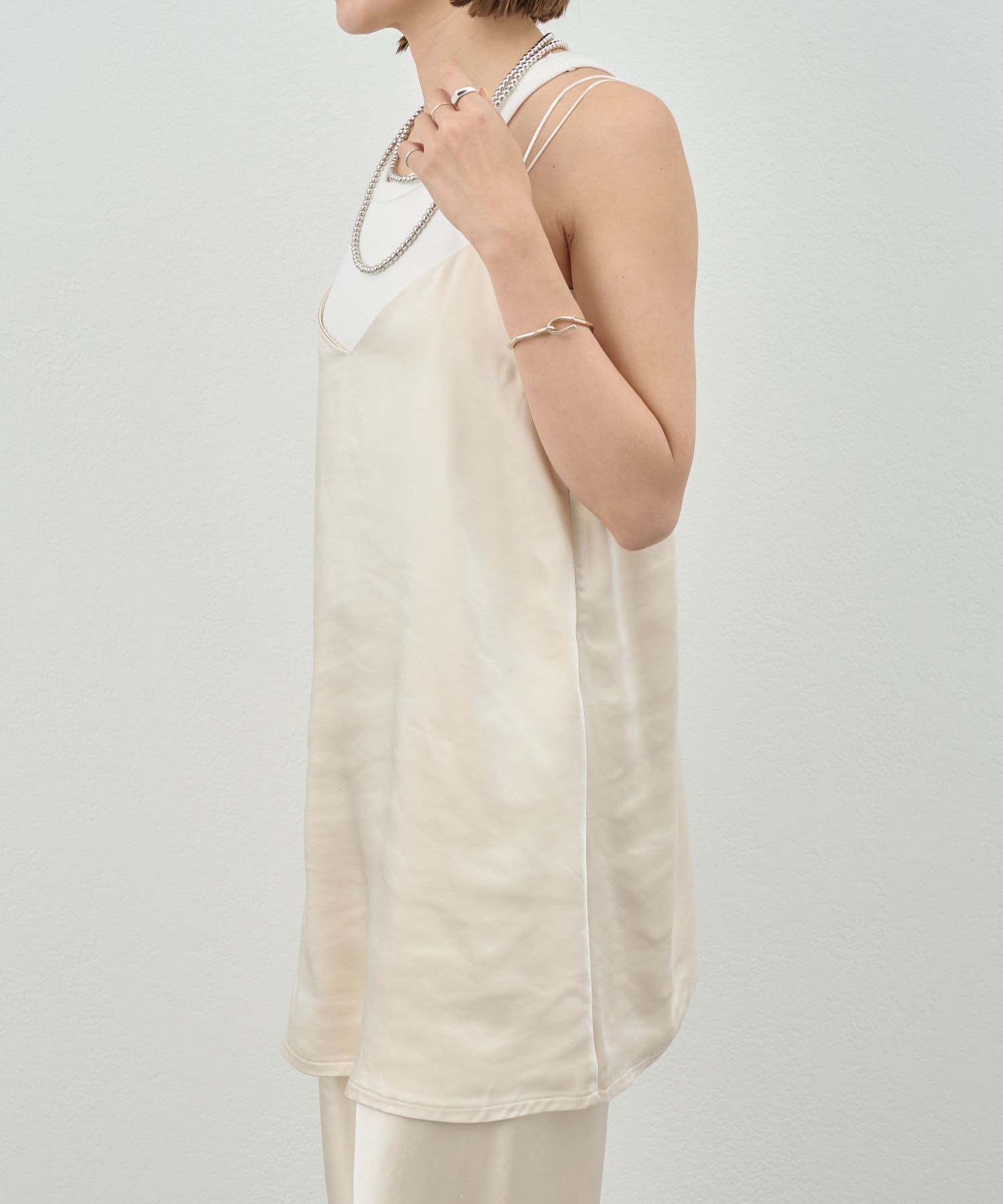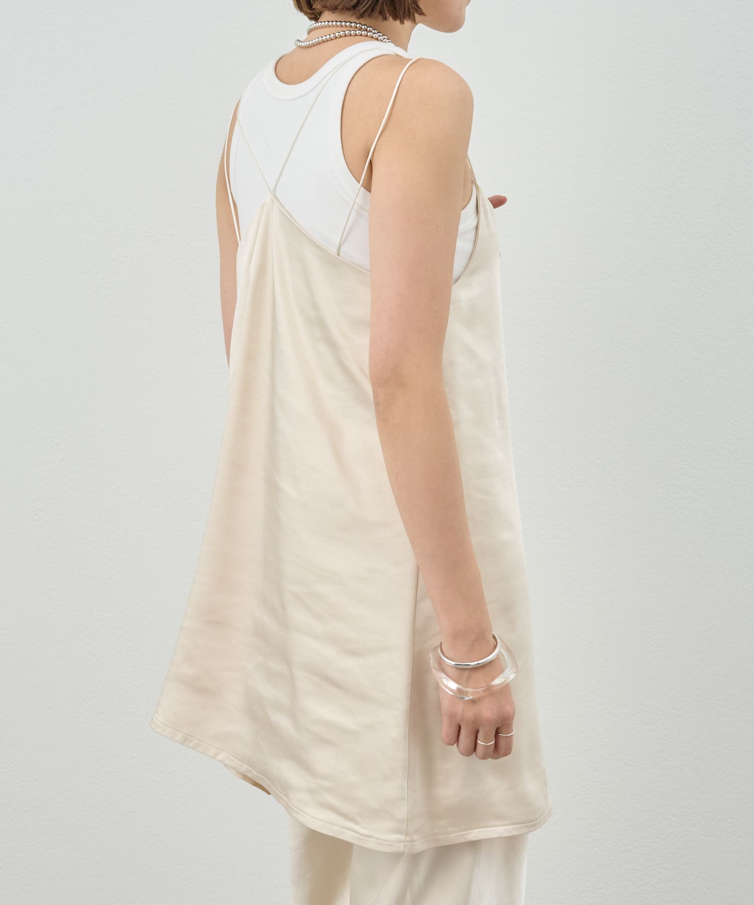 上品な光沢感のあるポリエステルサテンを使用したキャミソール。