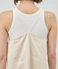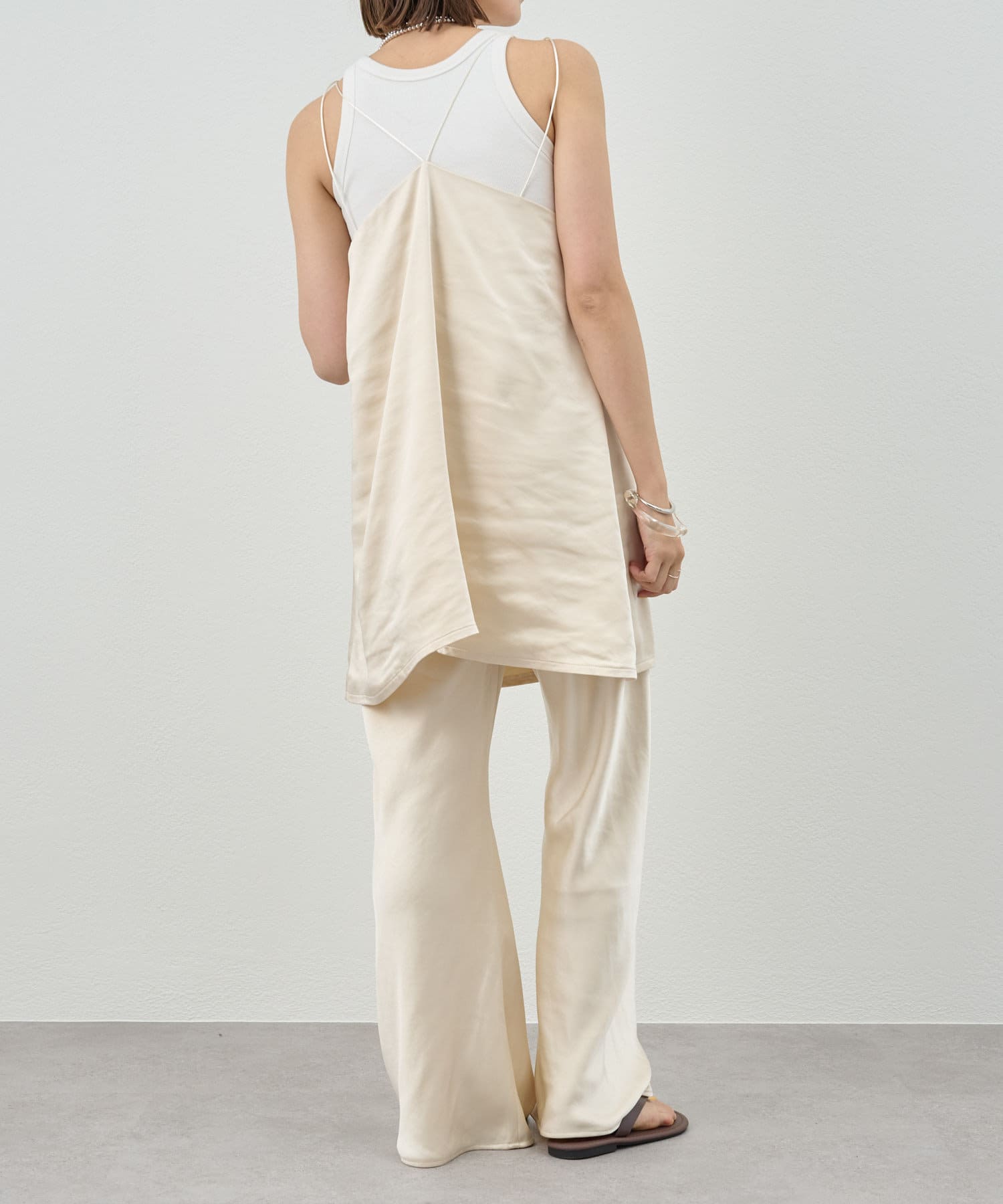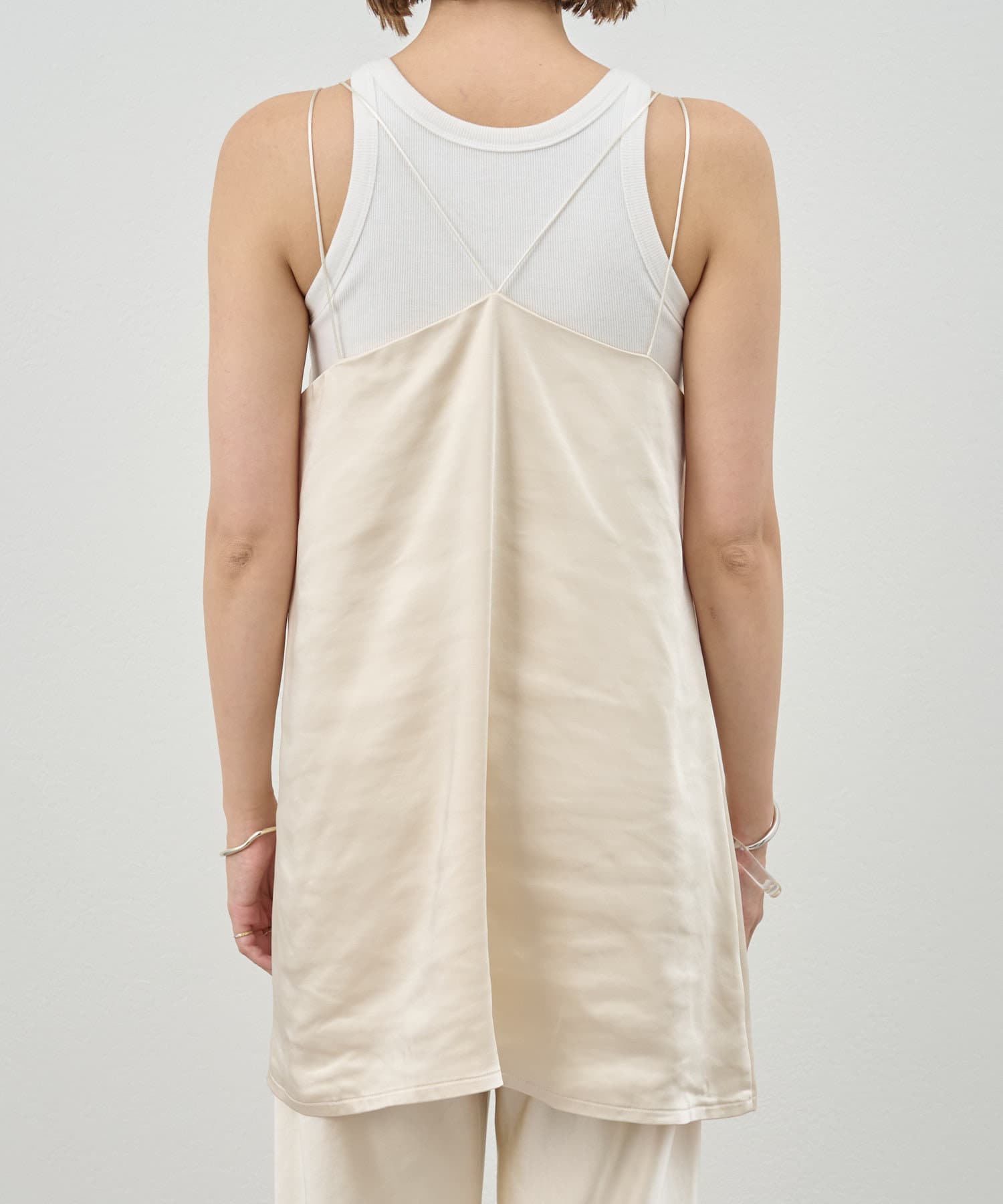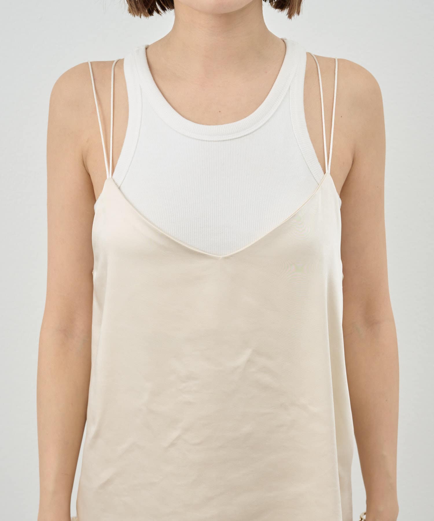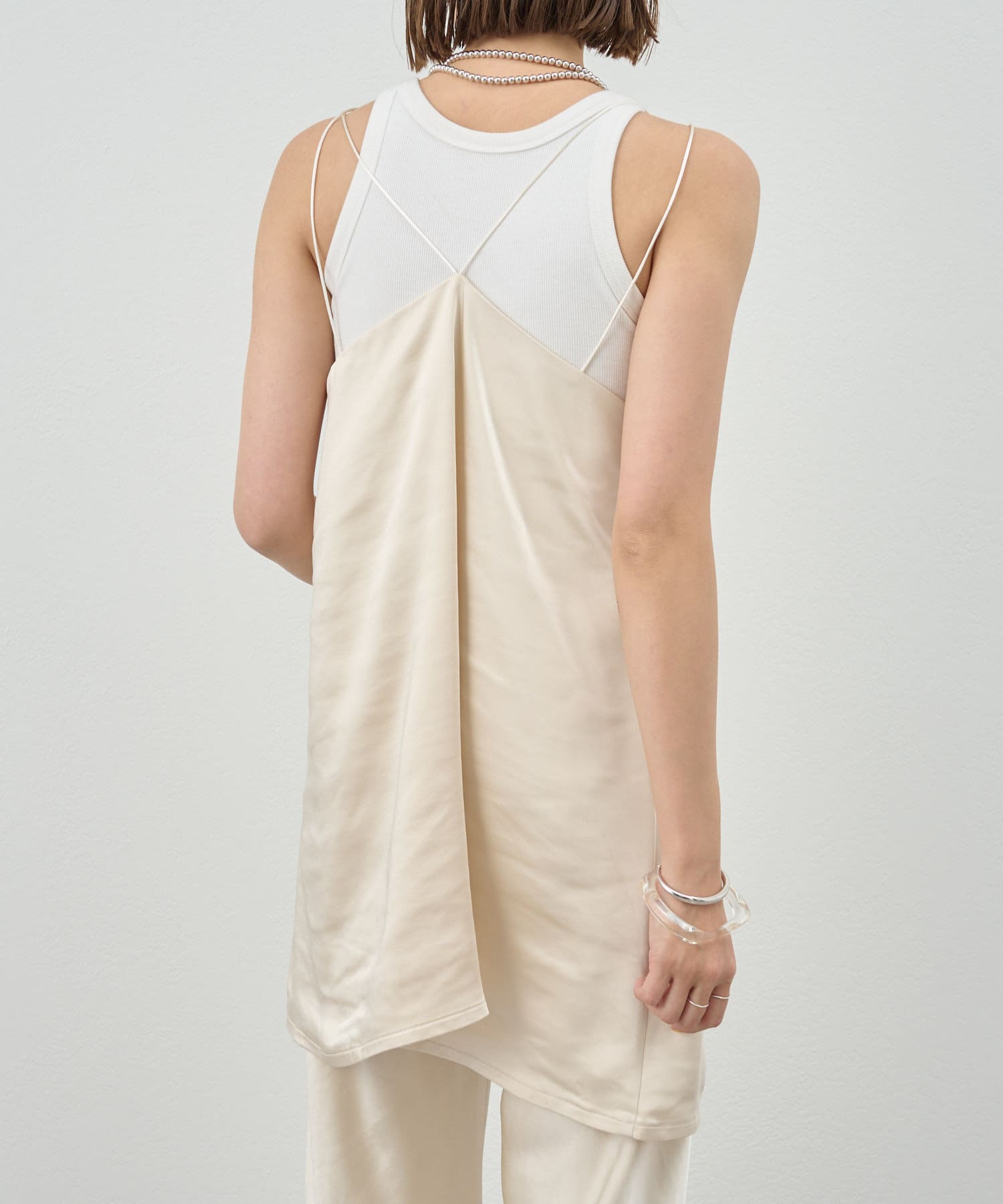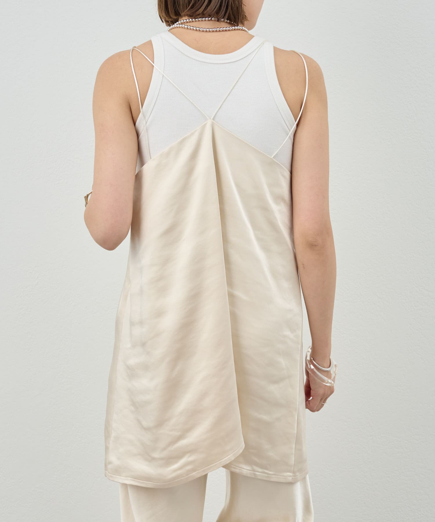 上品な光沢感のあるポリエステルサテンを使用したキャミソール。