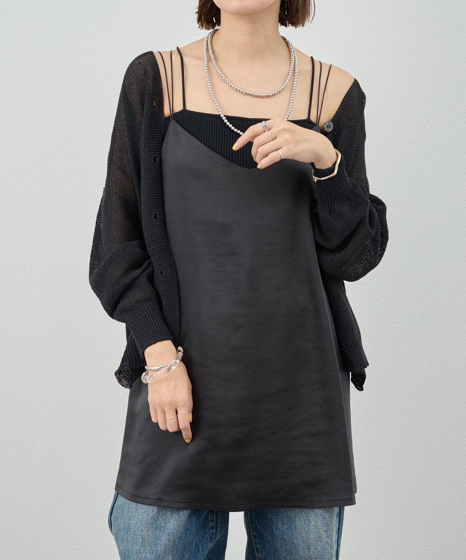ジャケットやシャツのインナー、トレンドのシアーニットの中に着たりと、見せるインナーとしてもおすすめです。