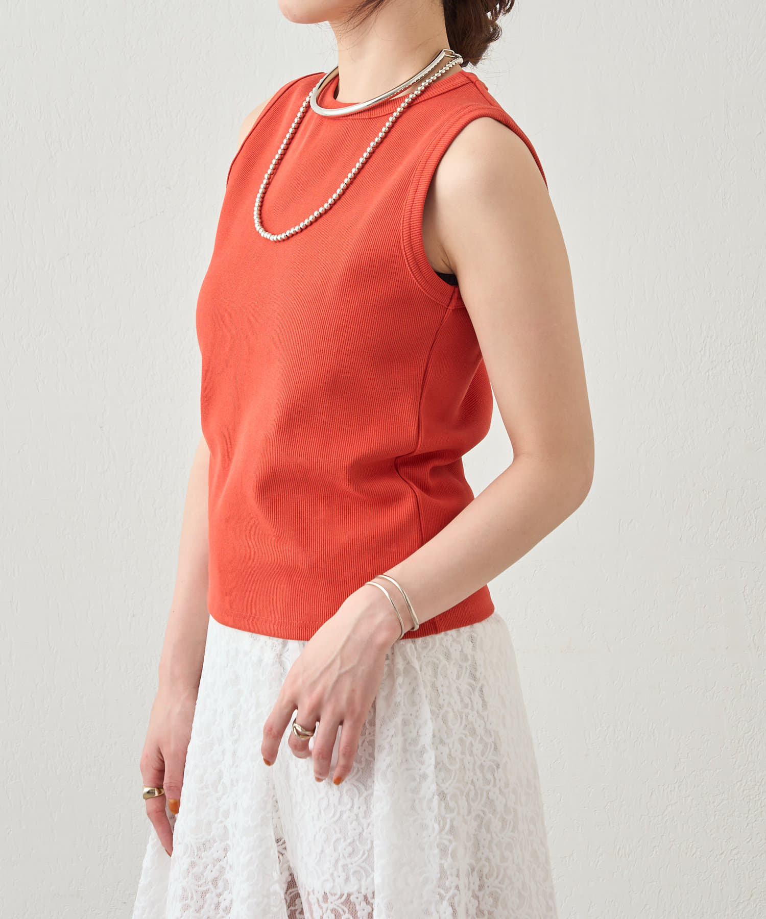 リブコンパクトノースリーブ