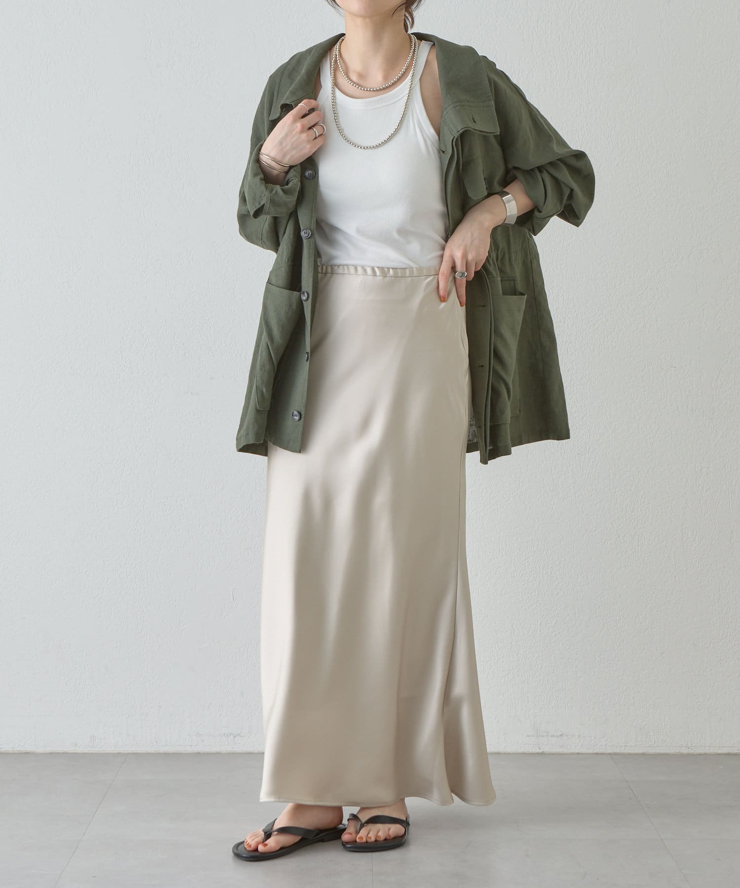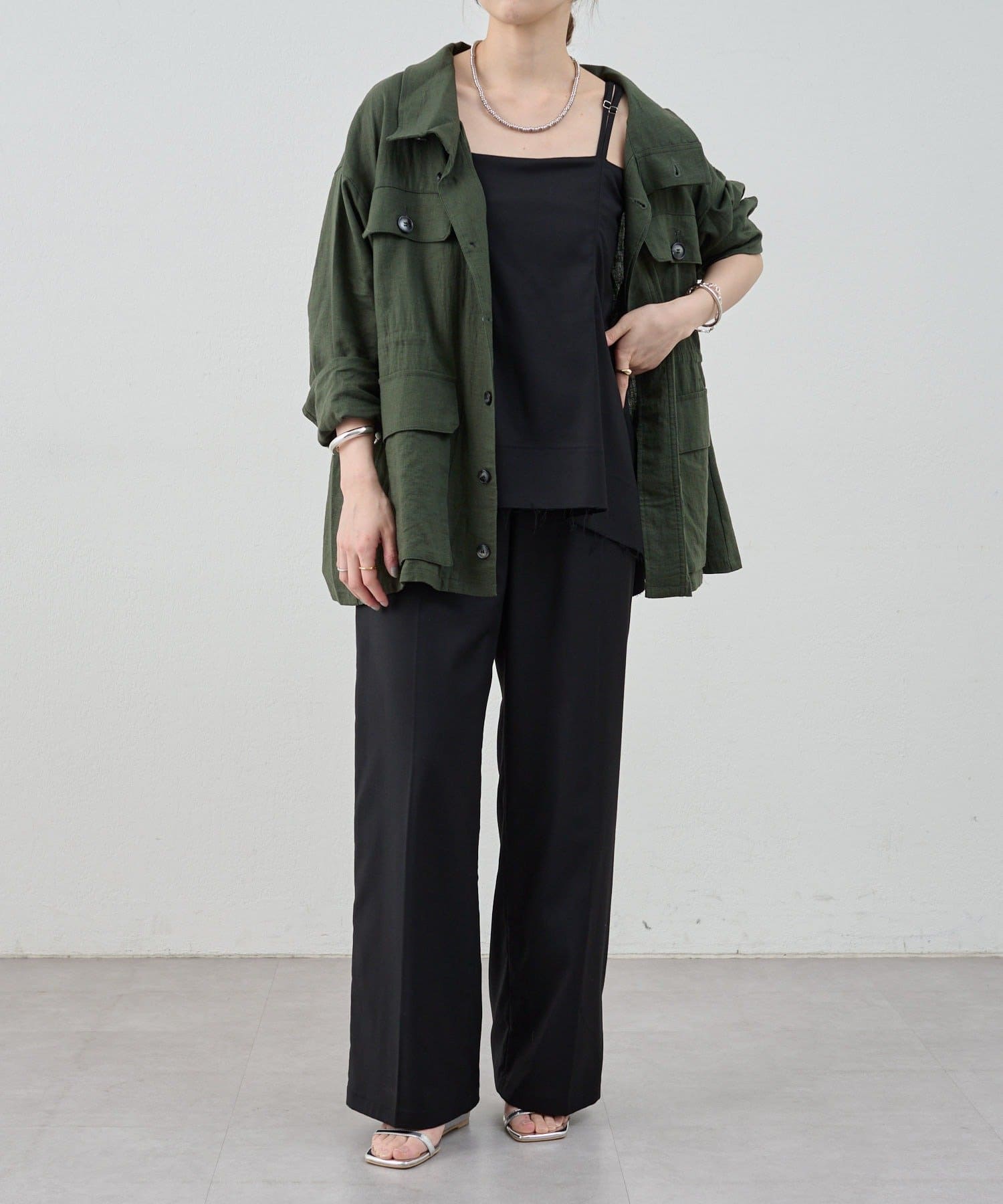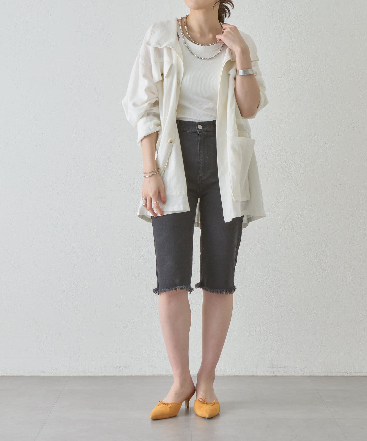 インナーにタンクトップを合わせ、ヘルシーな肌見せコーデもおすすめ。