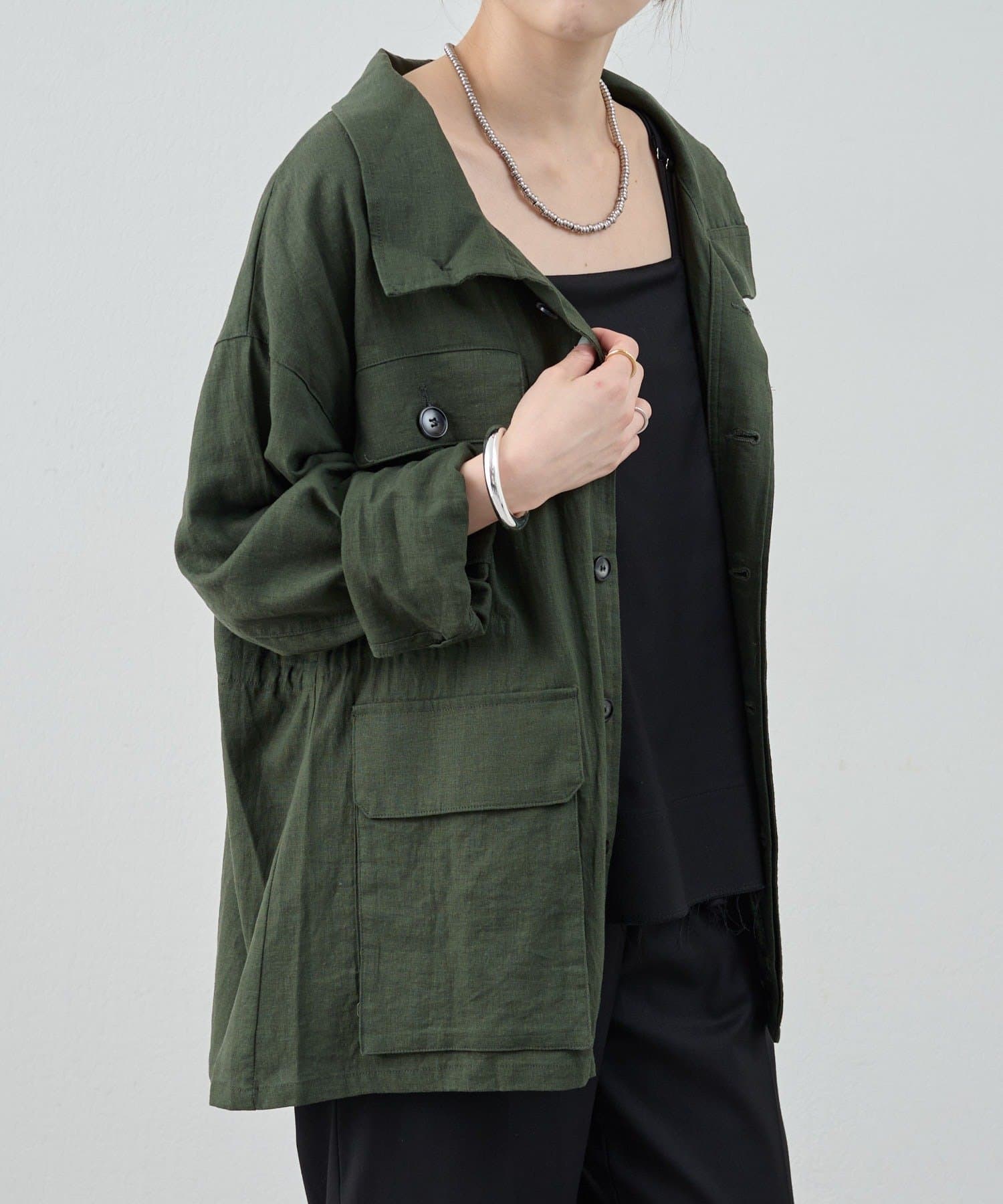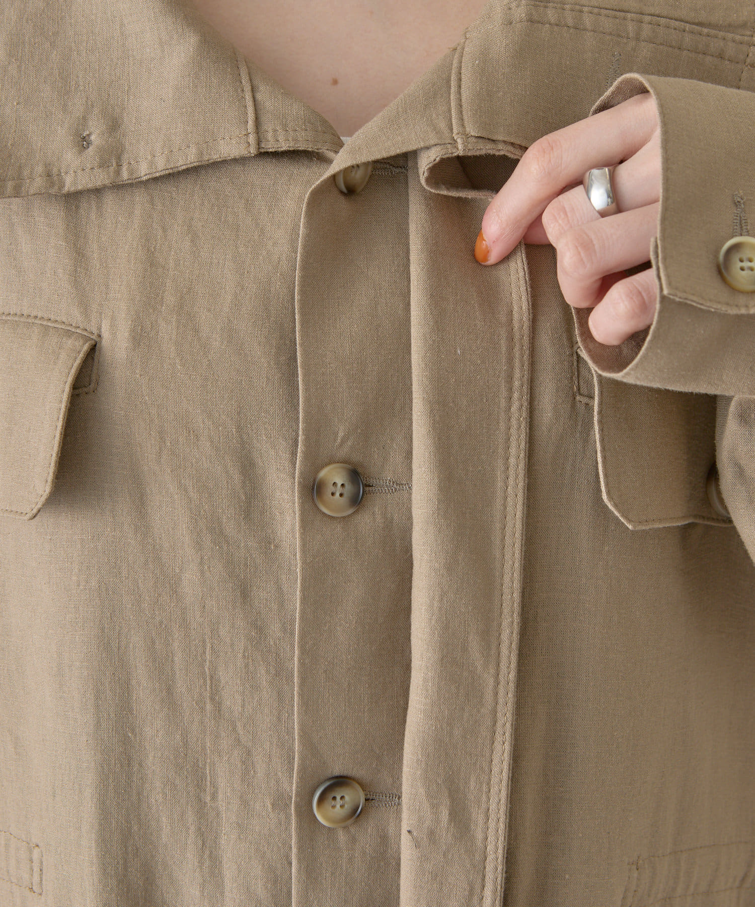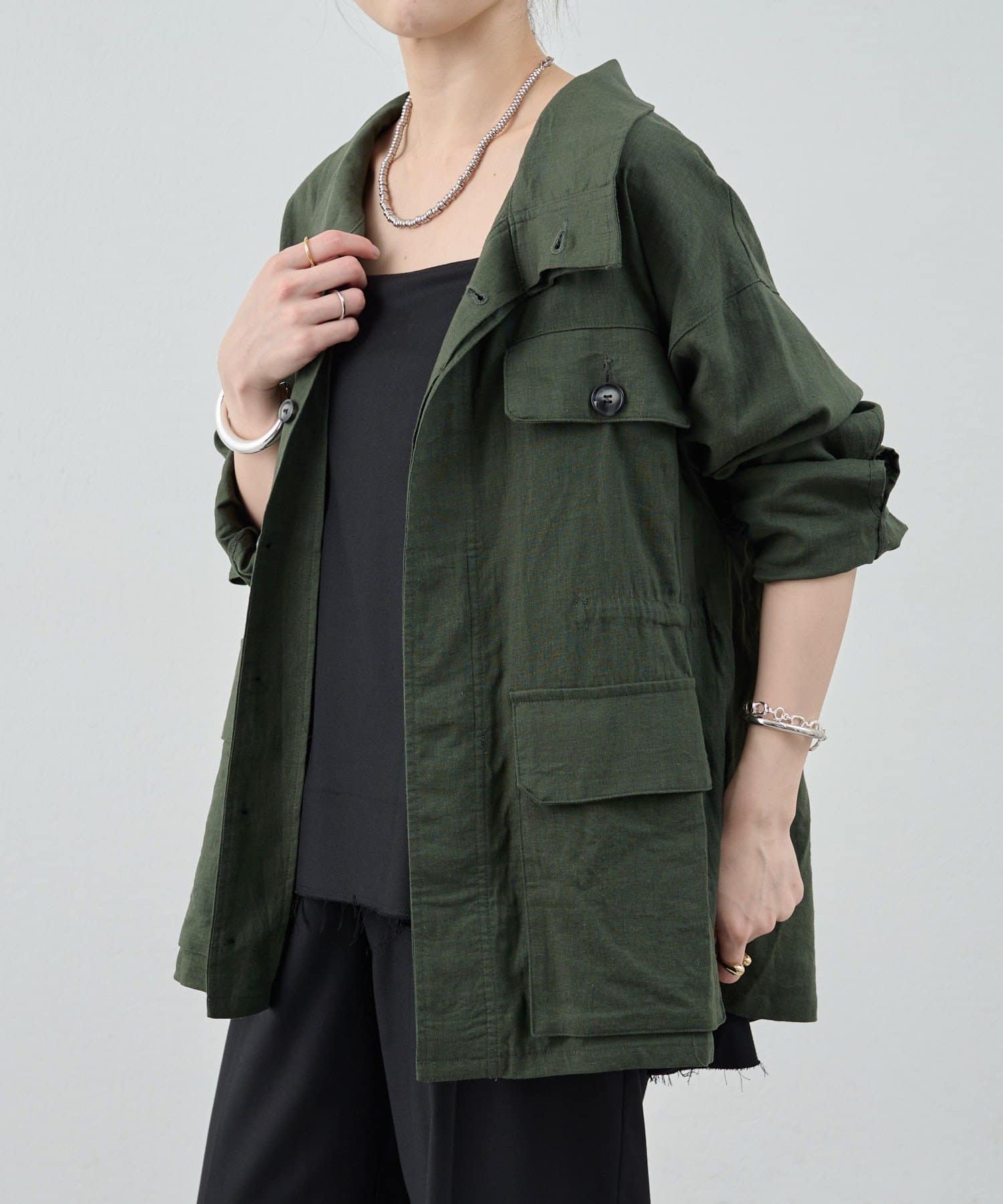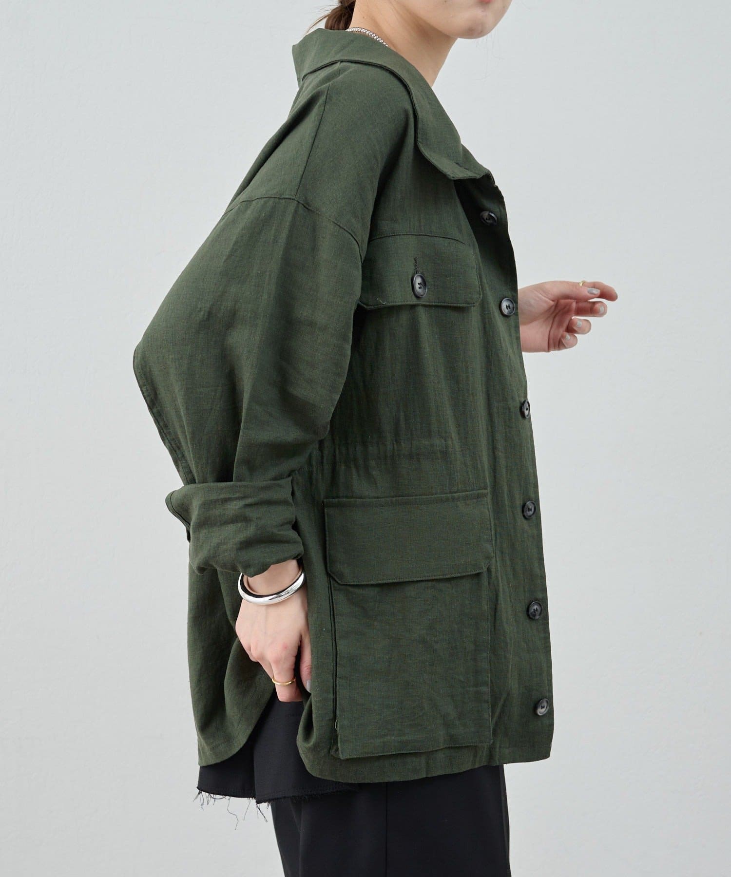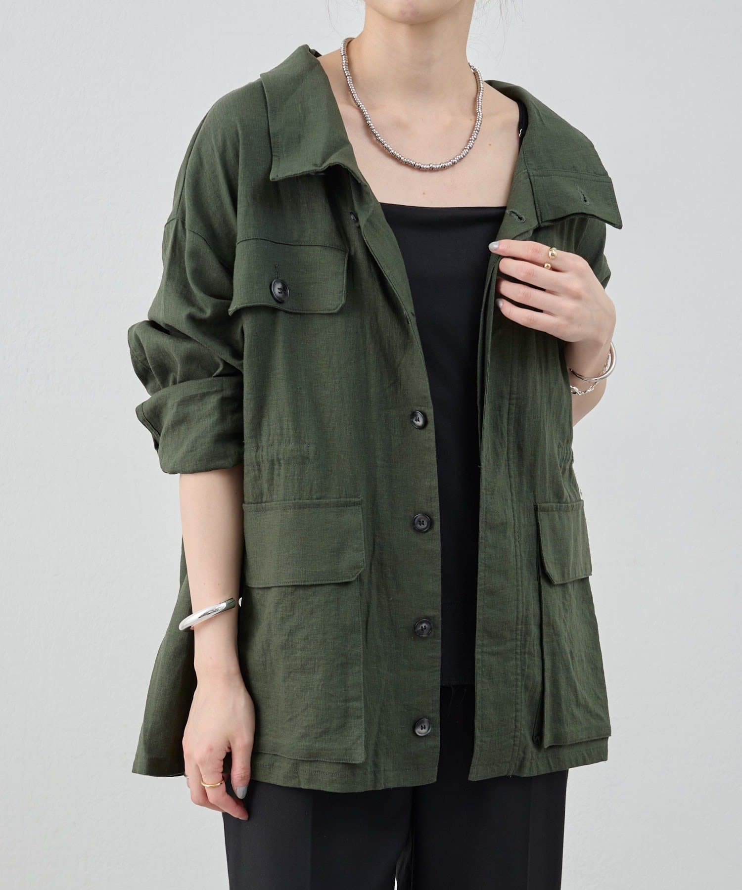 《涼しいリネン素材》ミリタリーリネンシャツジャケット