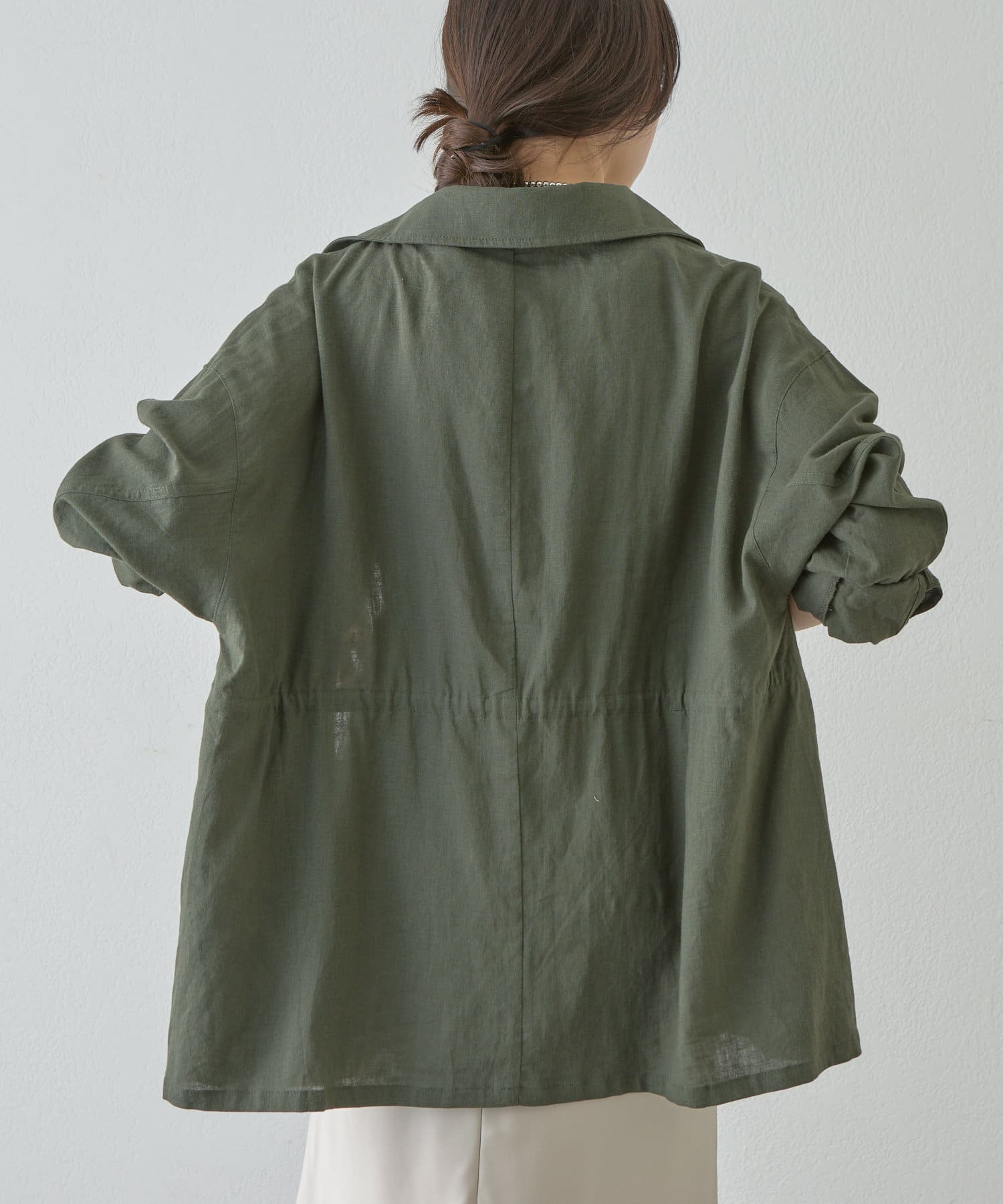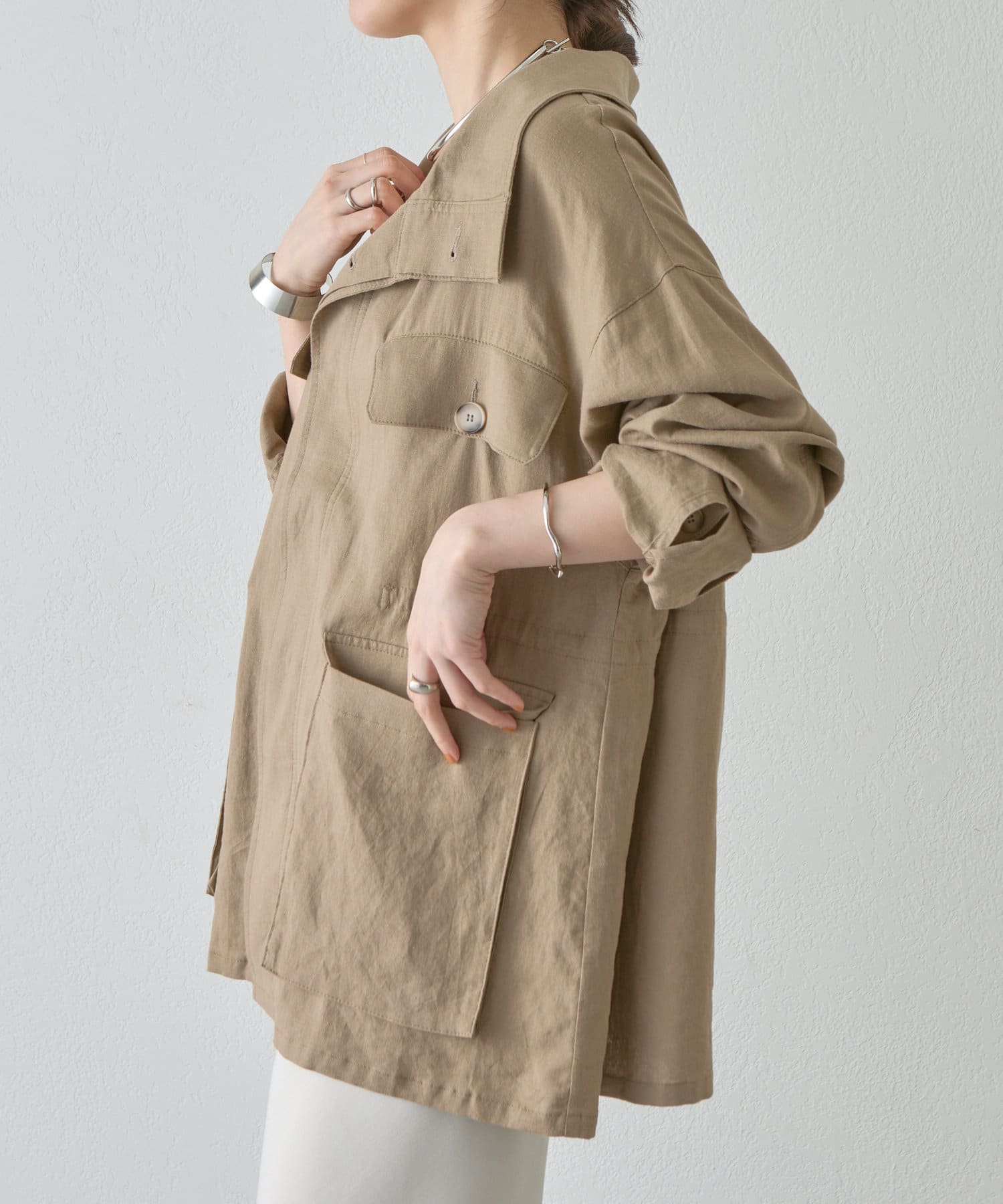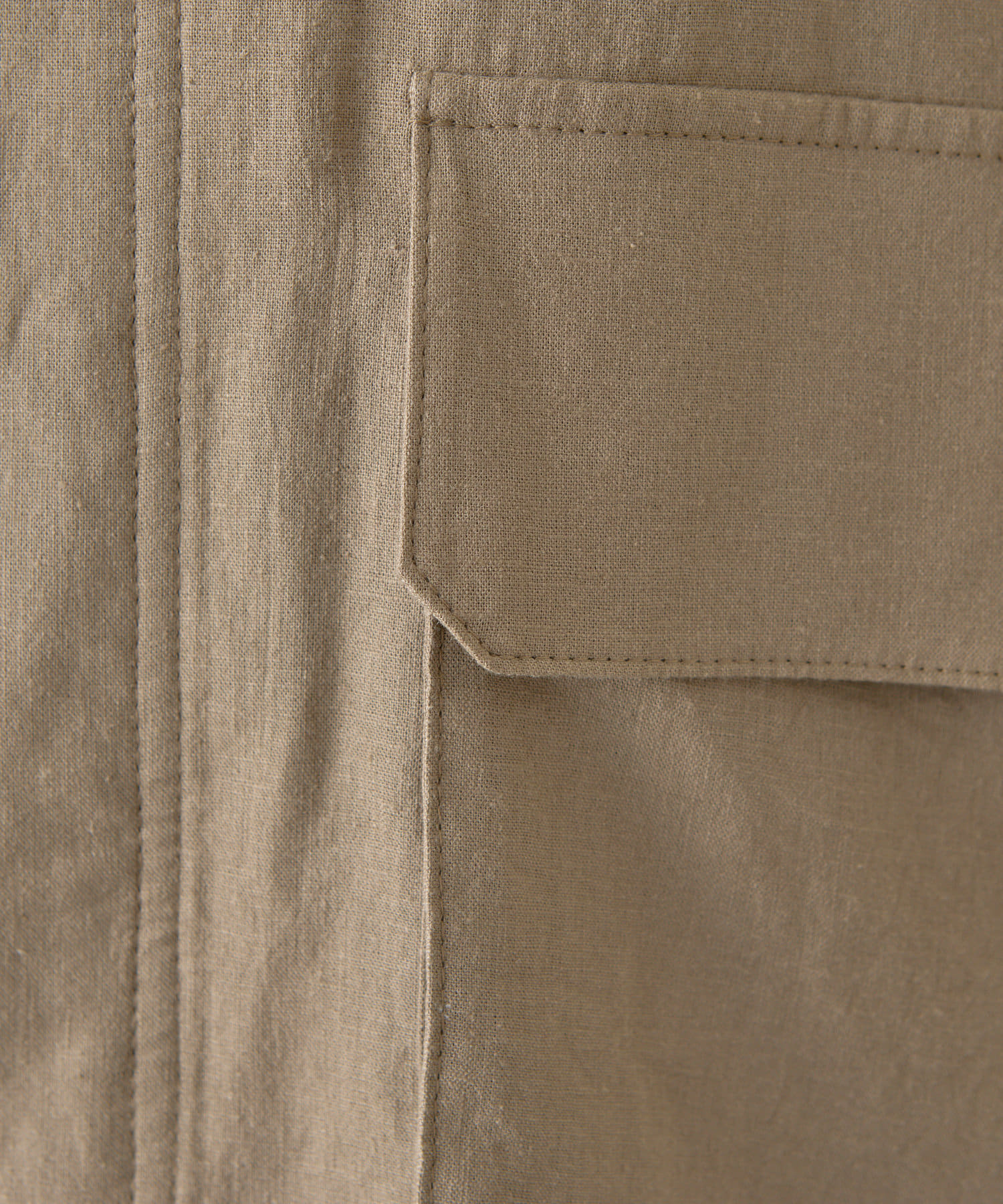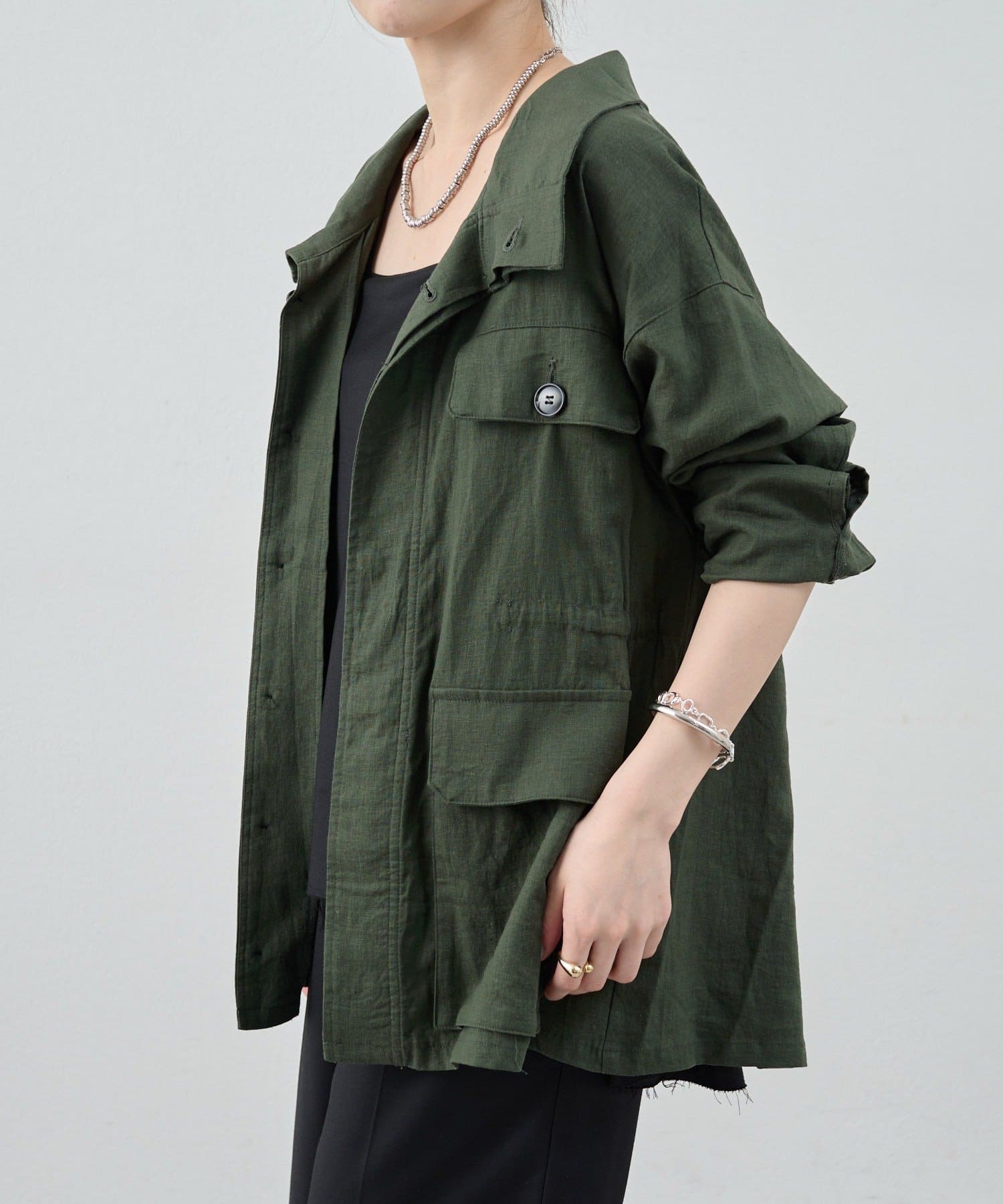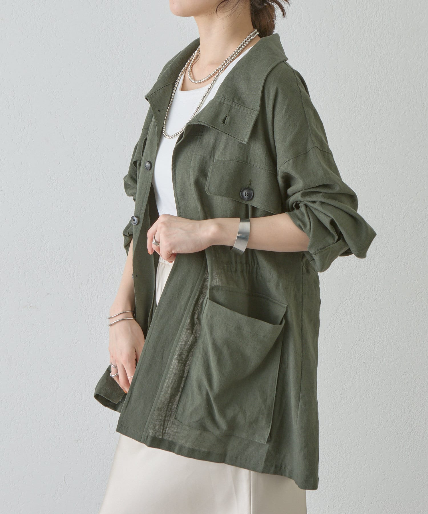《涼しいリネン素材》ミリタリーリネンシャツジャケット