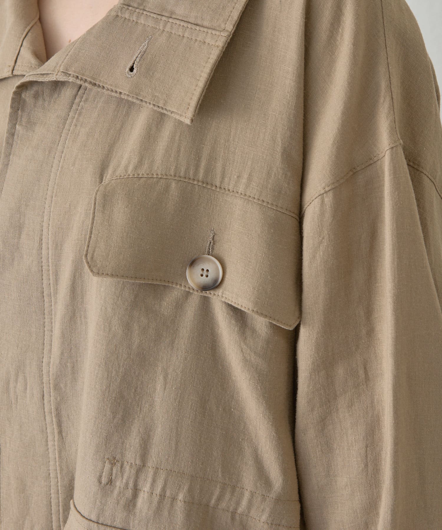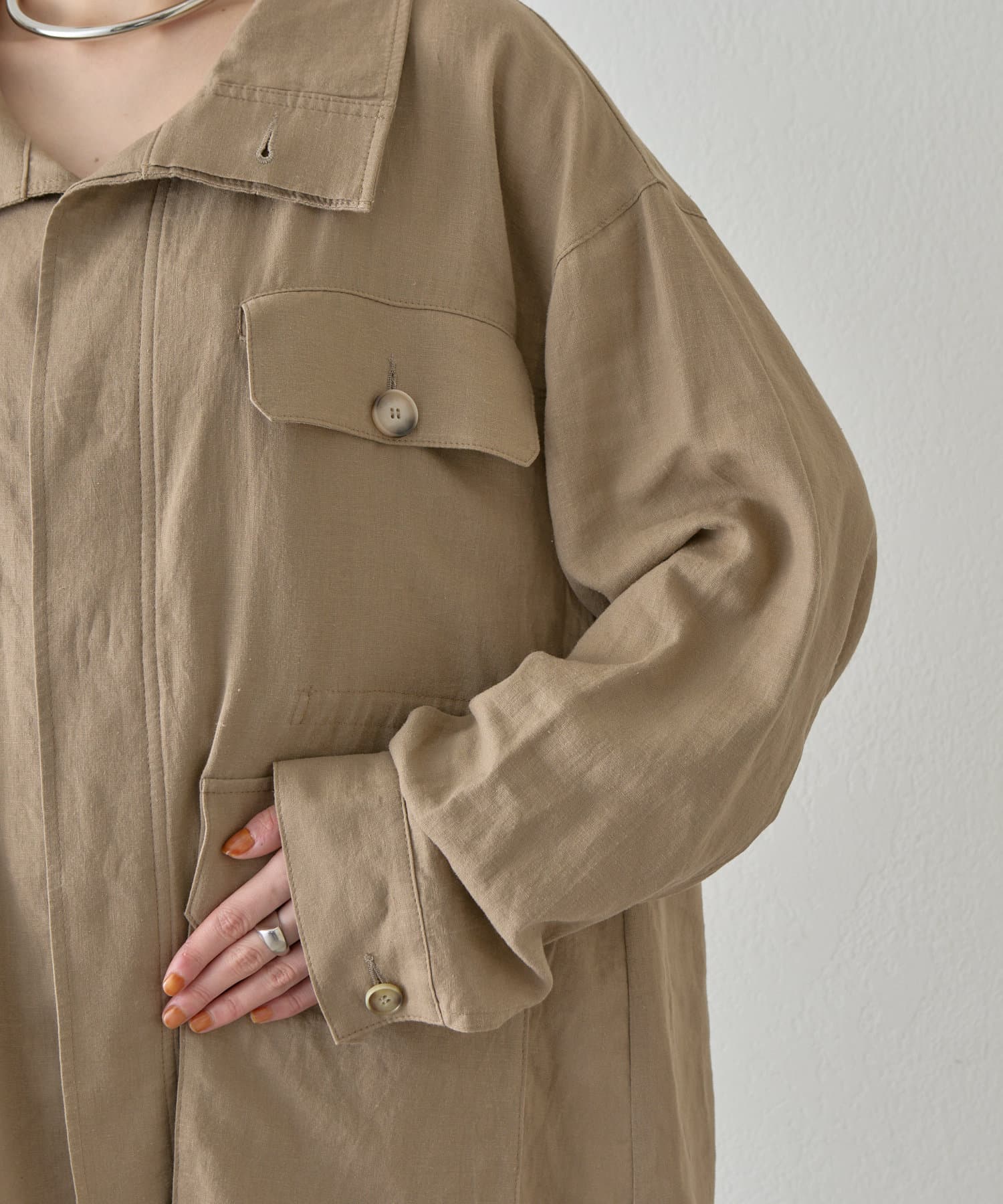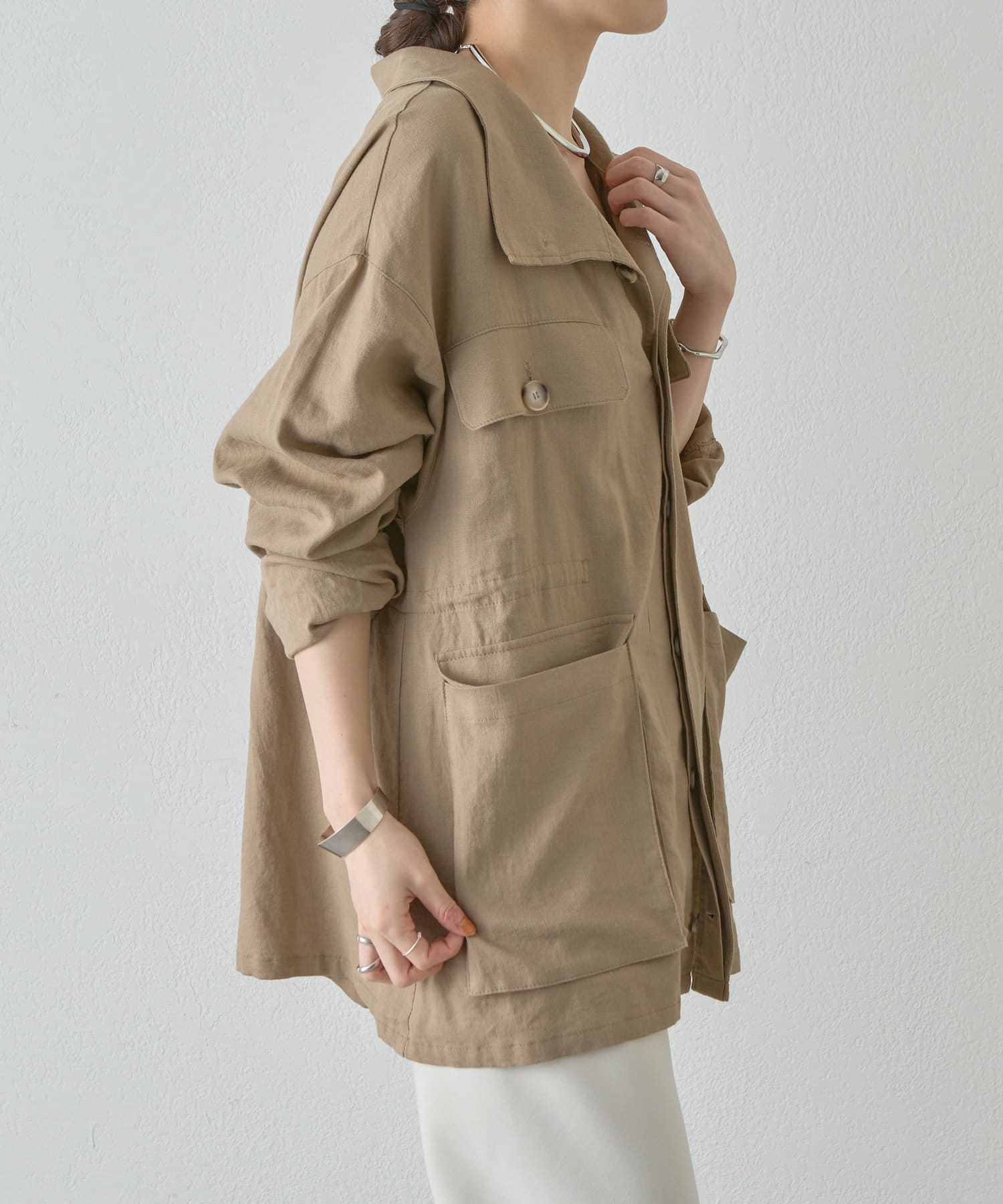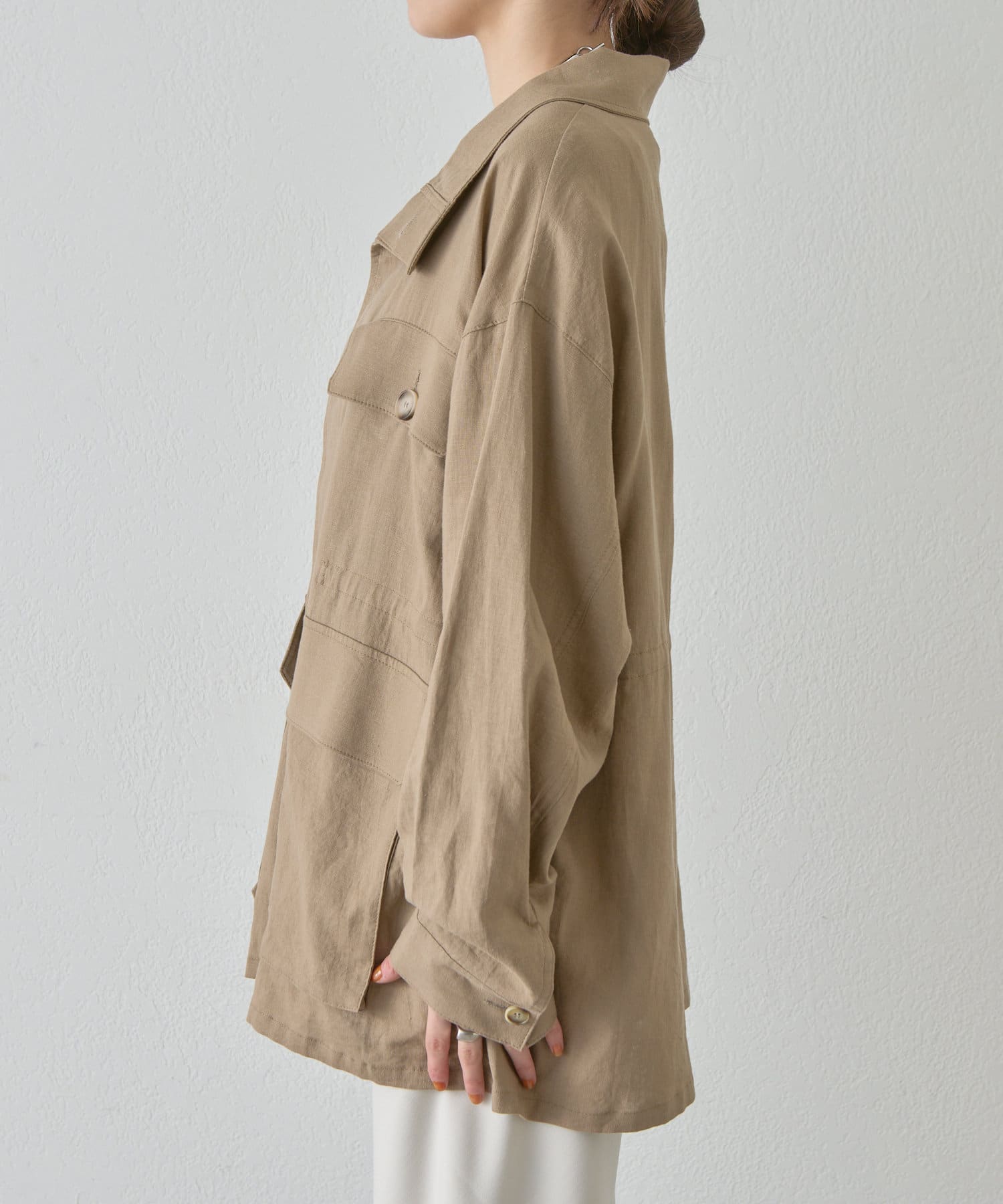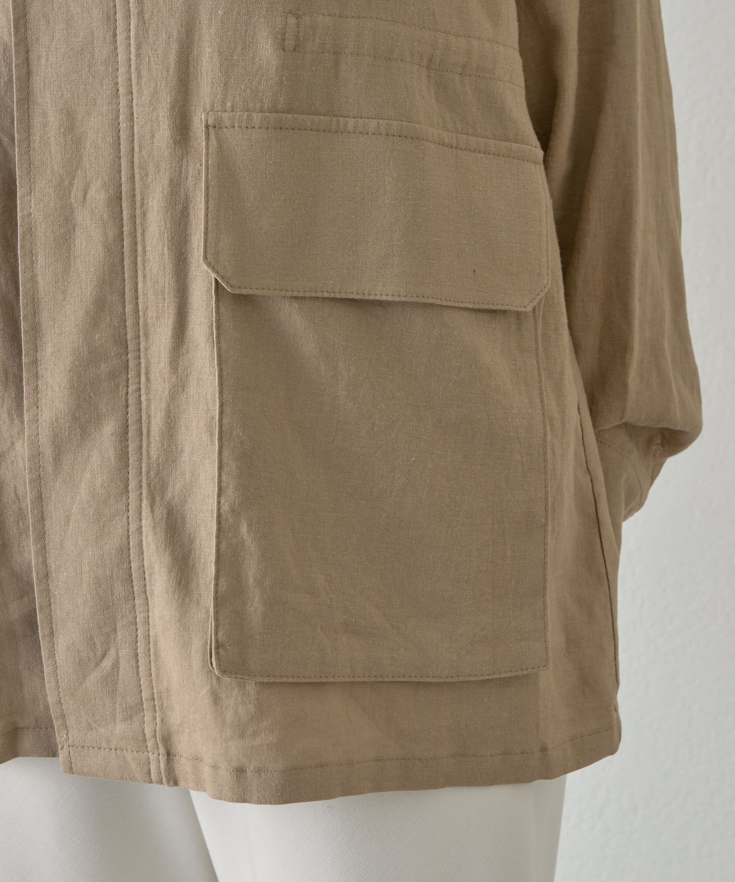 《涼しいリネン素材》ミリタリーリネンシャツジャケット
