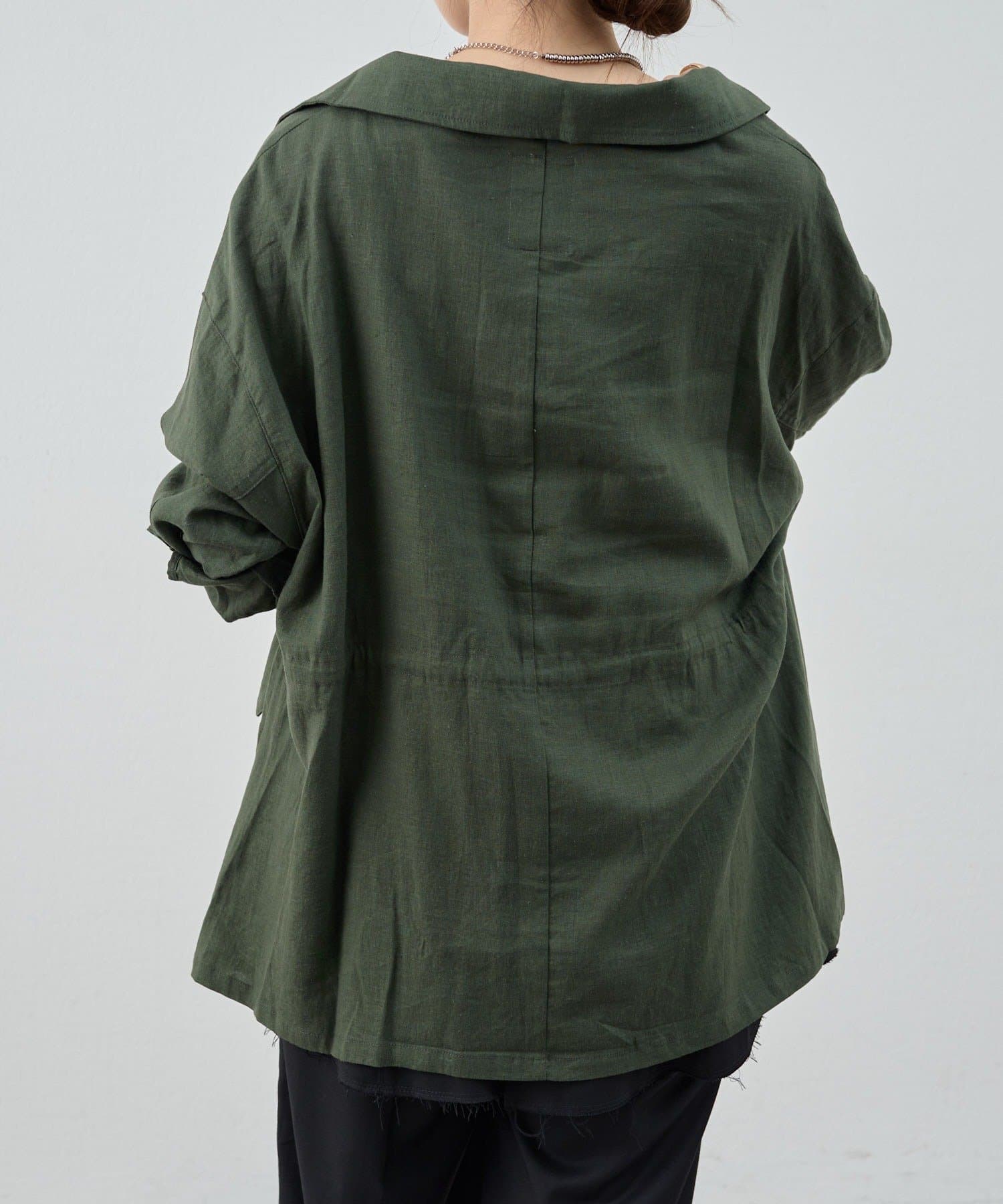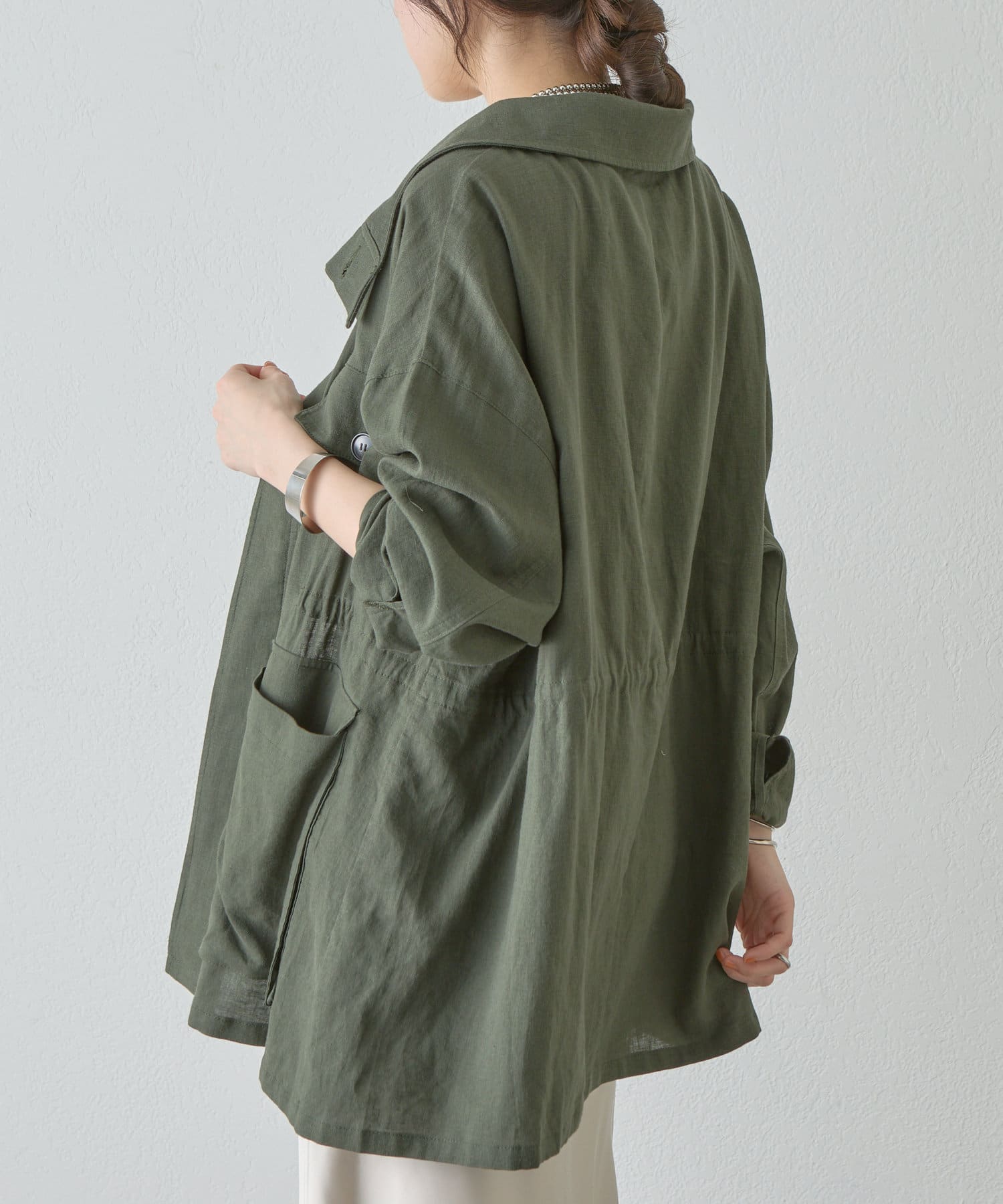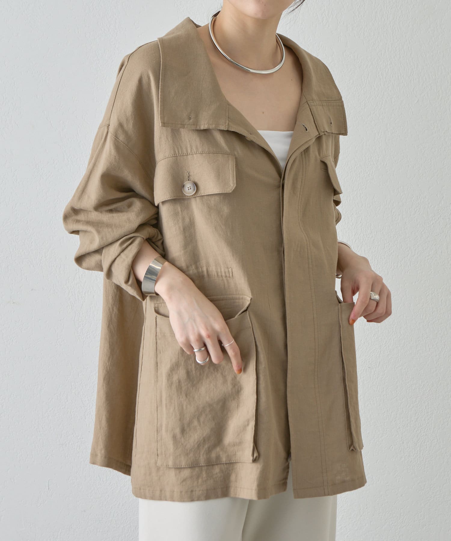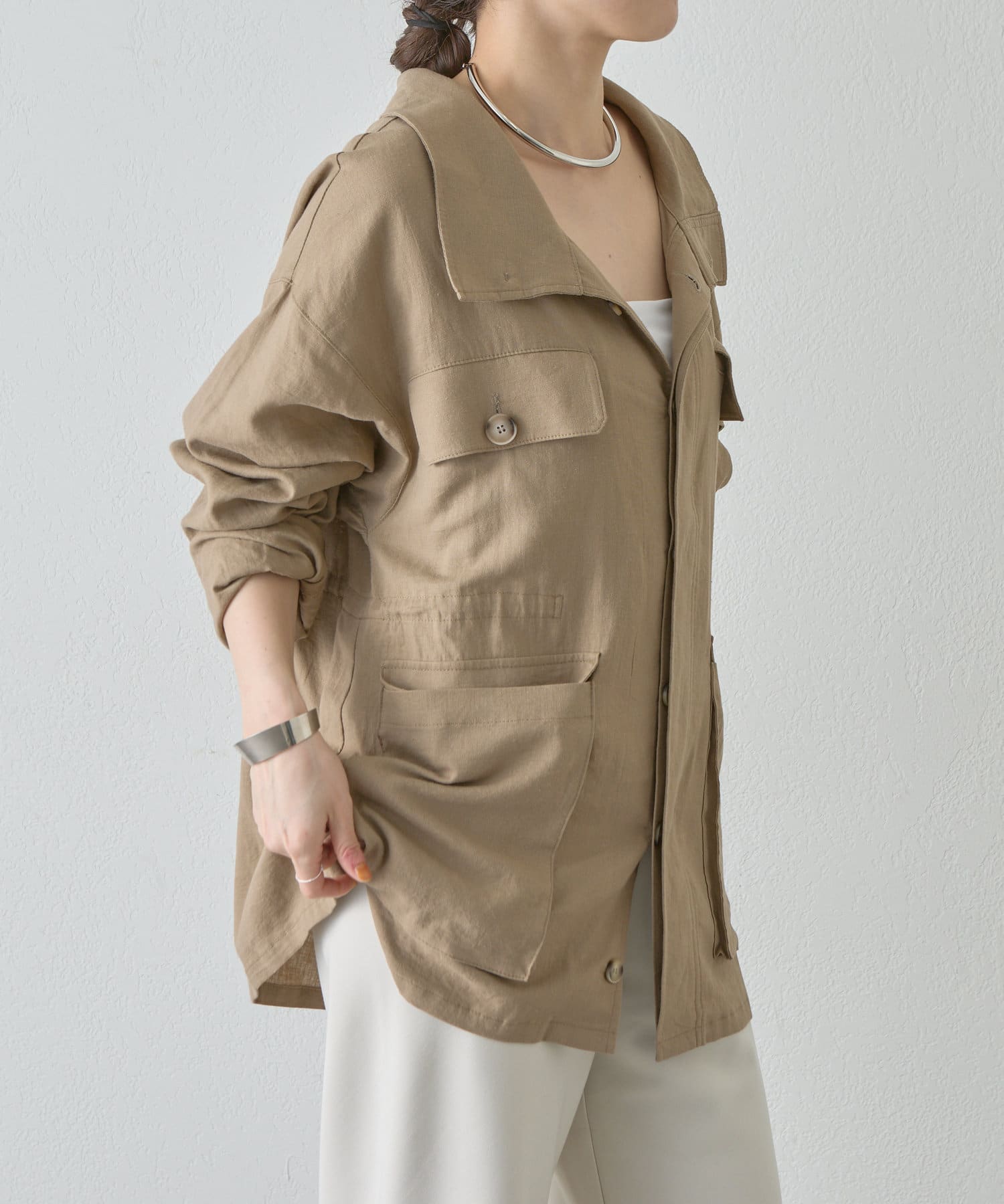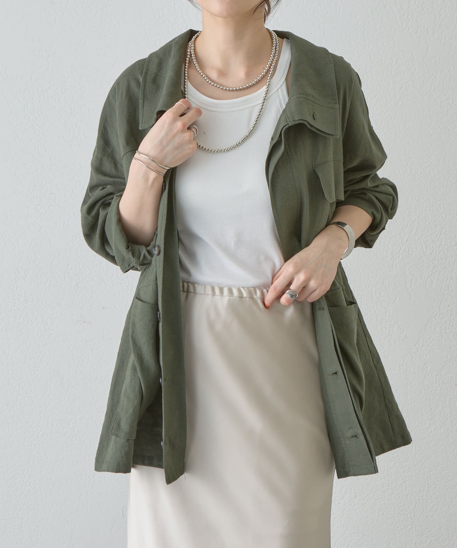 《涼しいリネン素材》ミリタリーリネンシャツジャケット