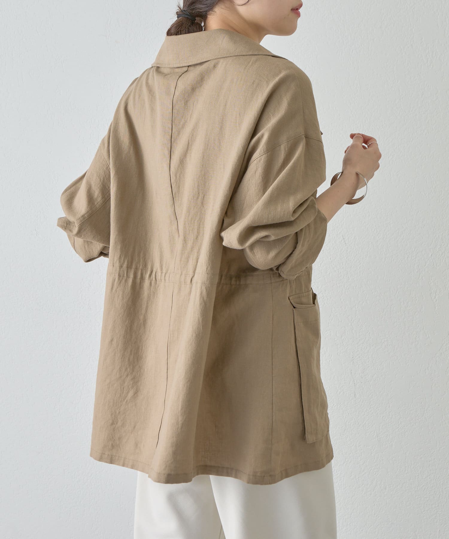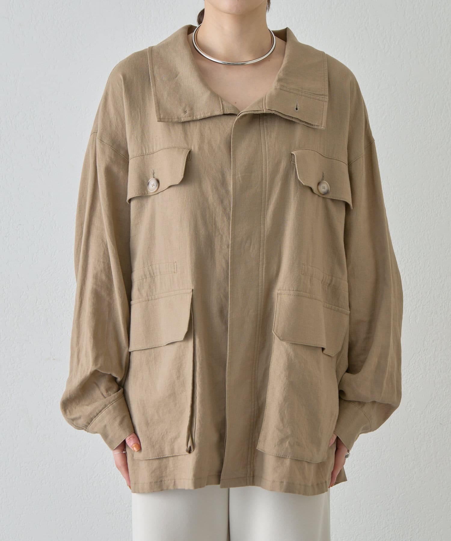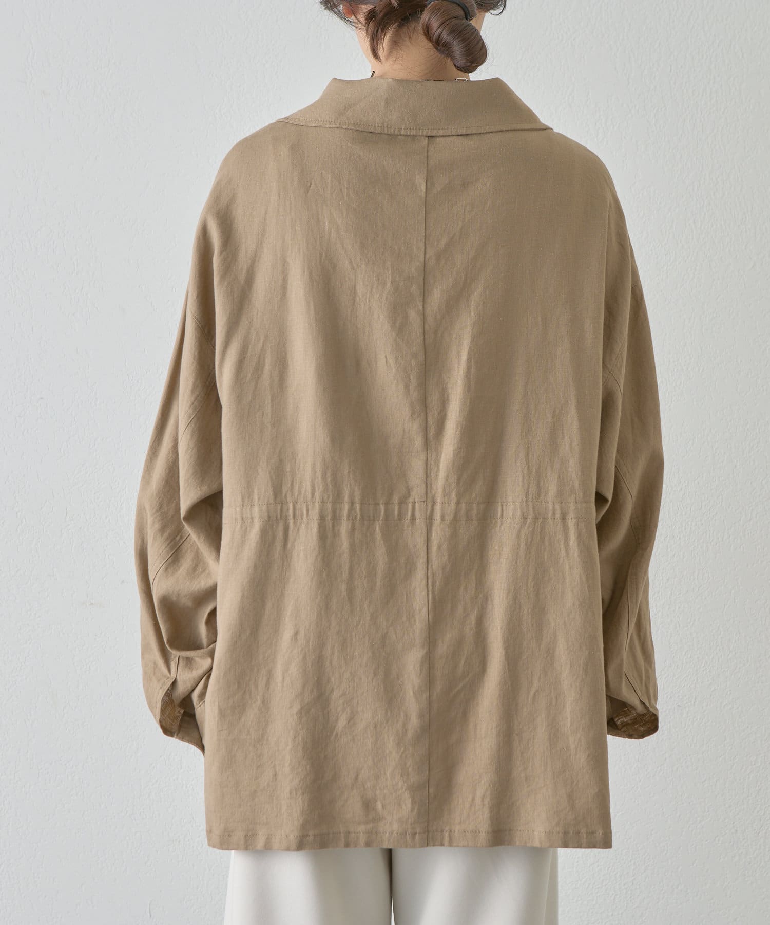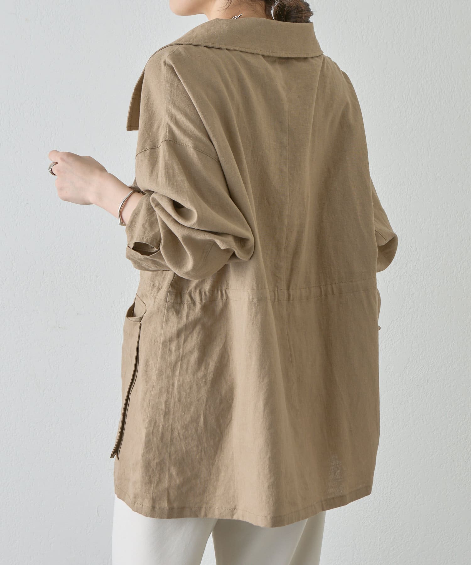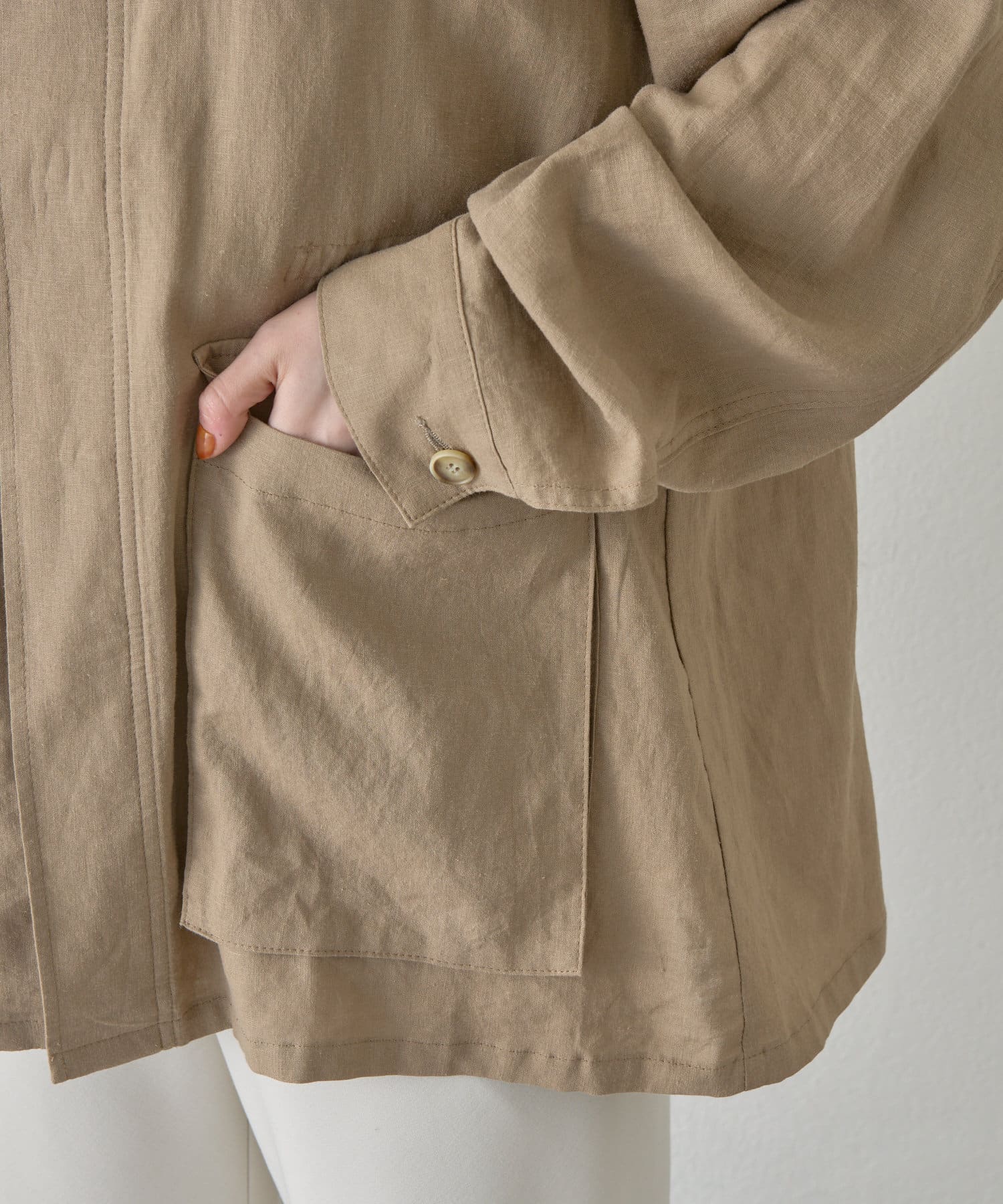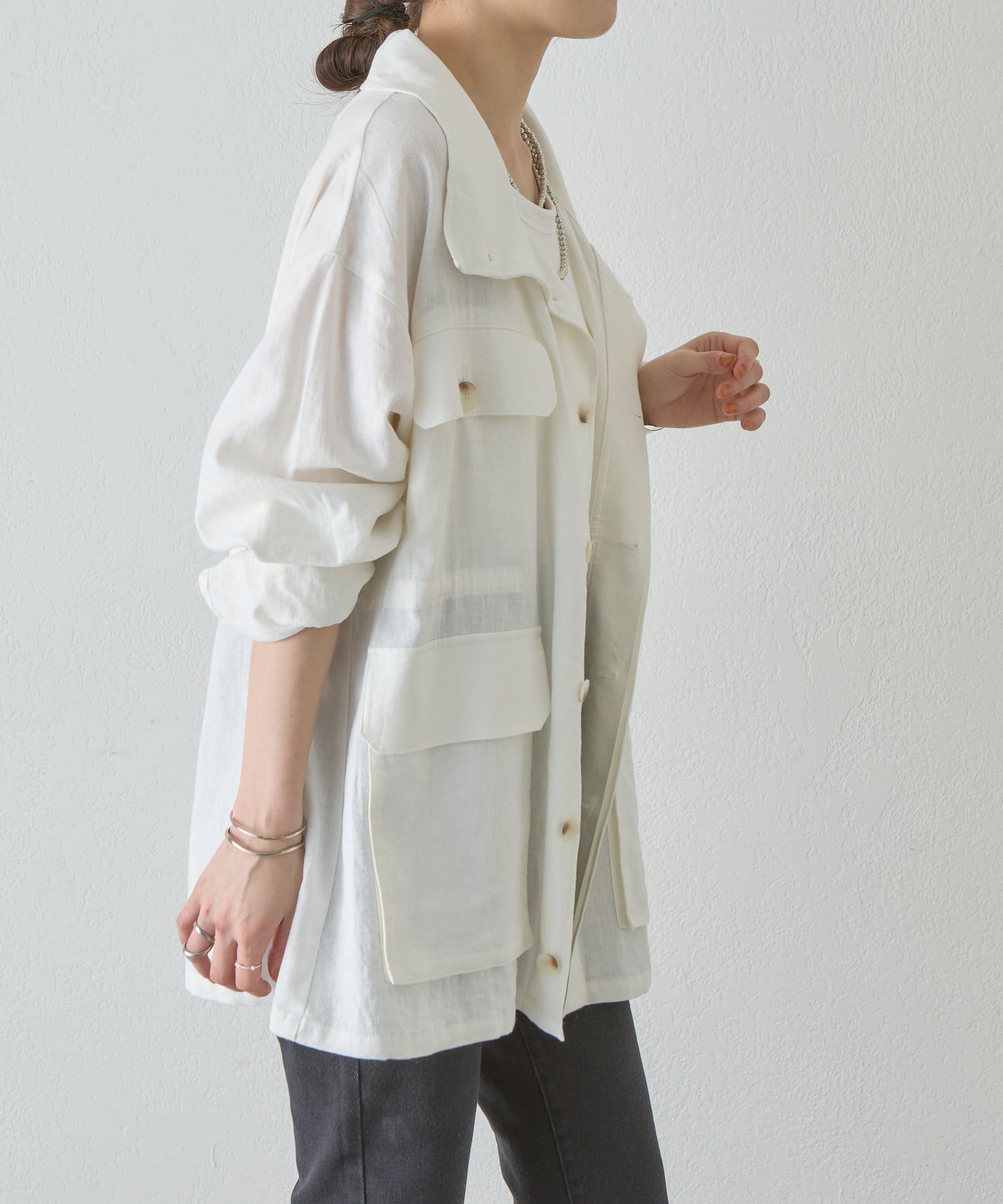 《涼しいリネン素材》ミリタリーリネンシャツジャケット