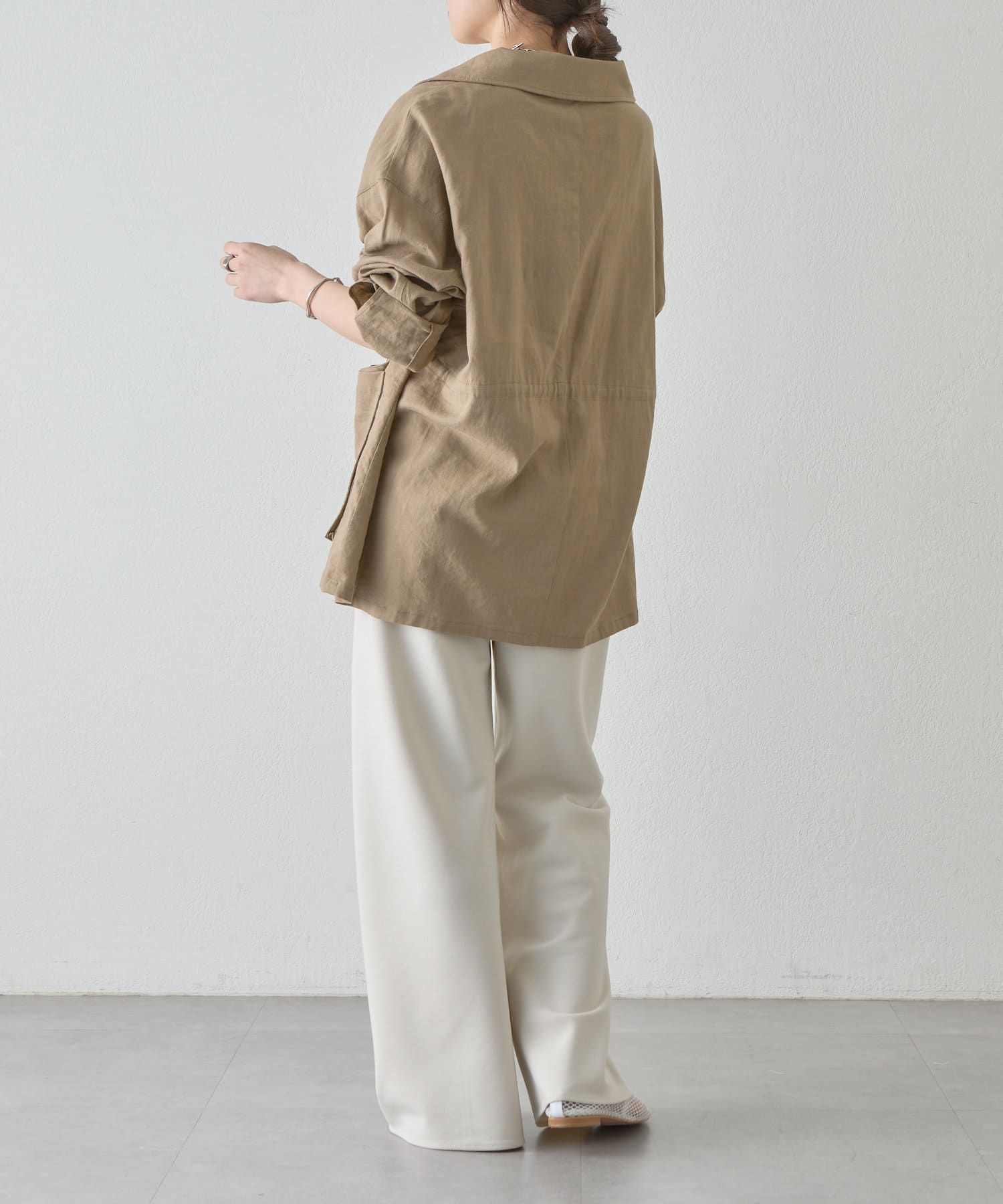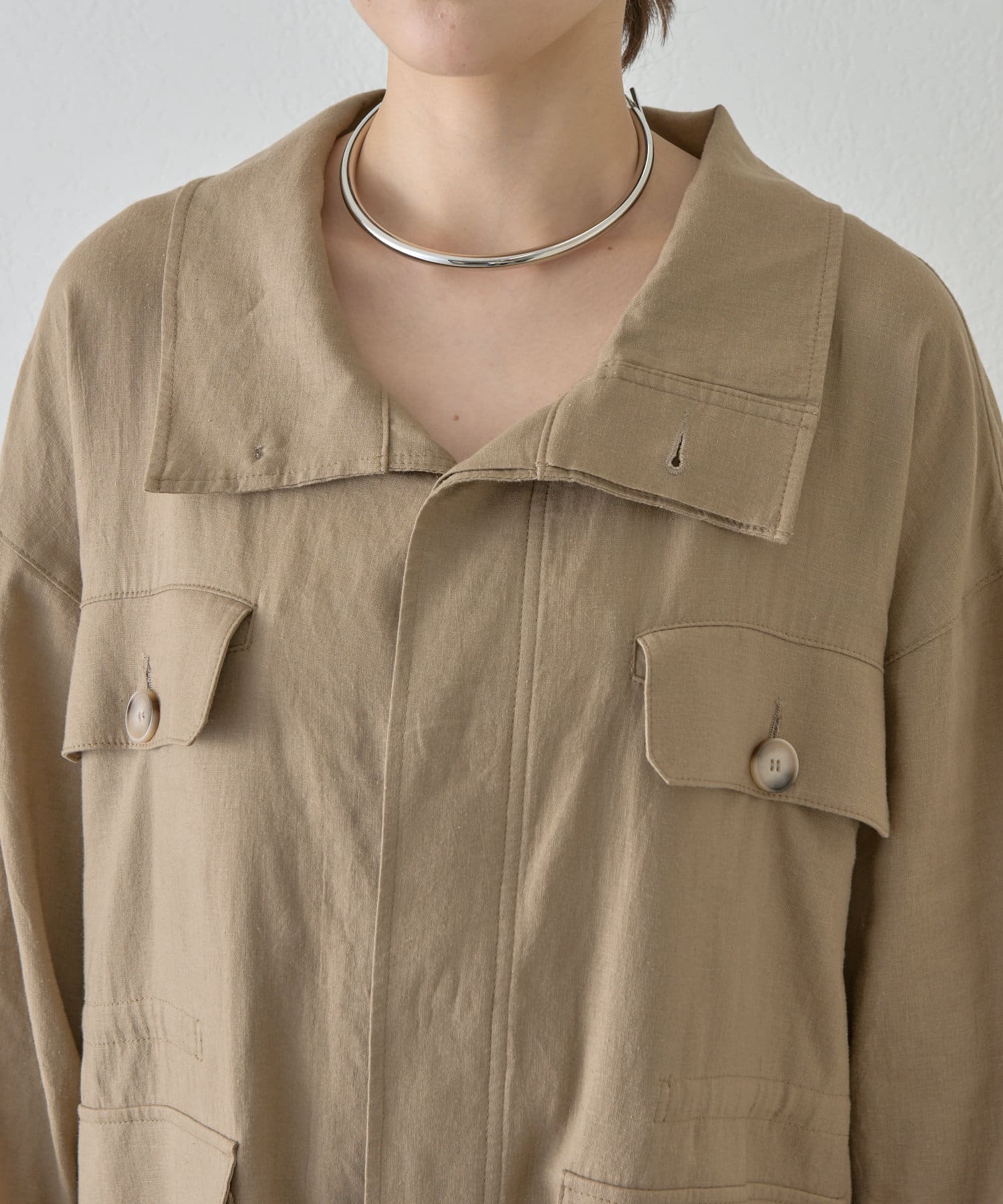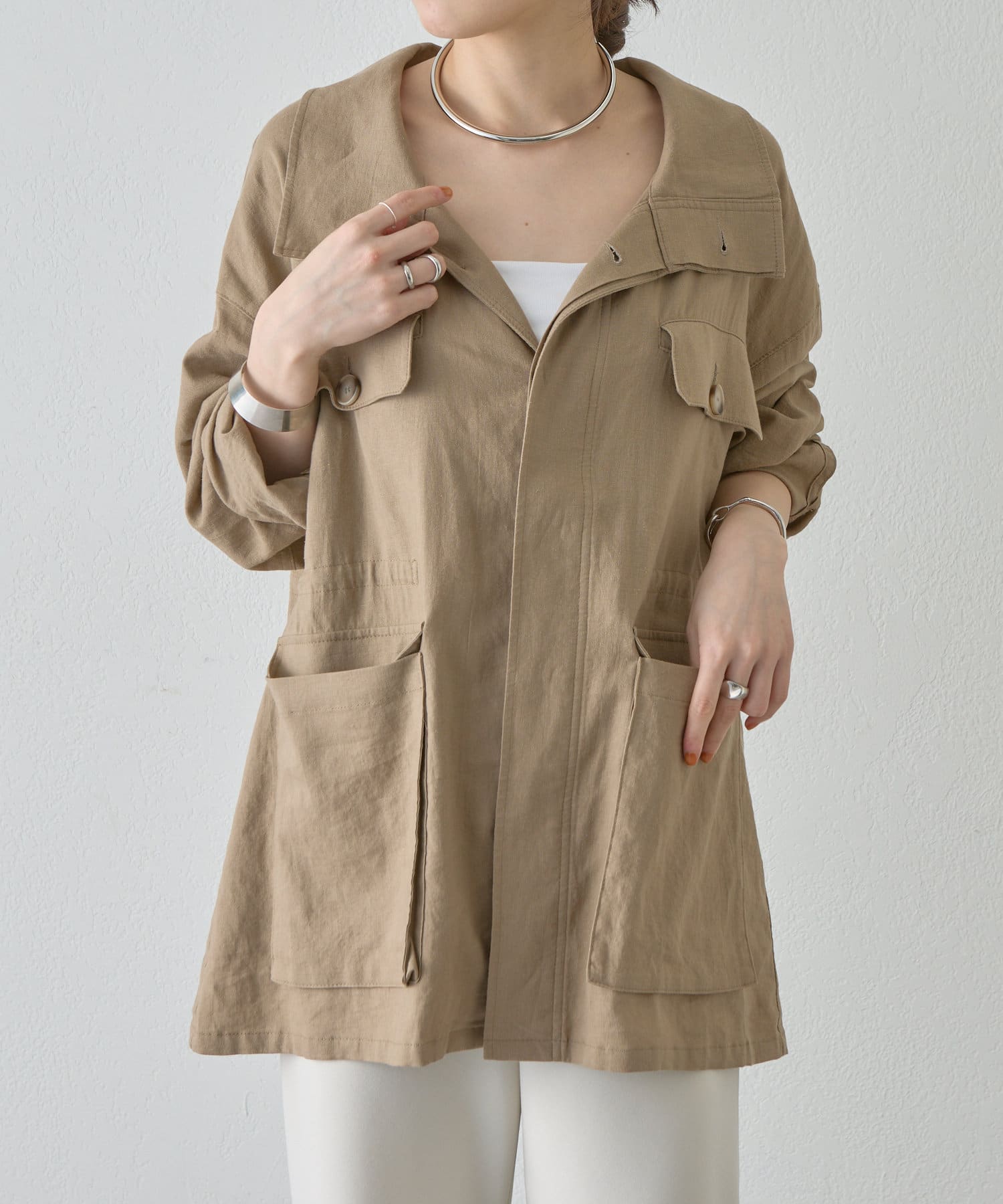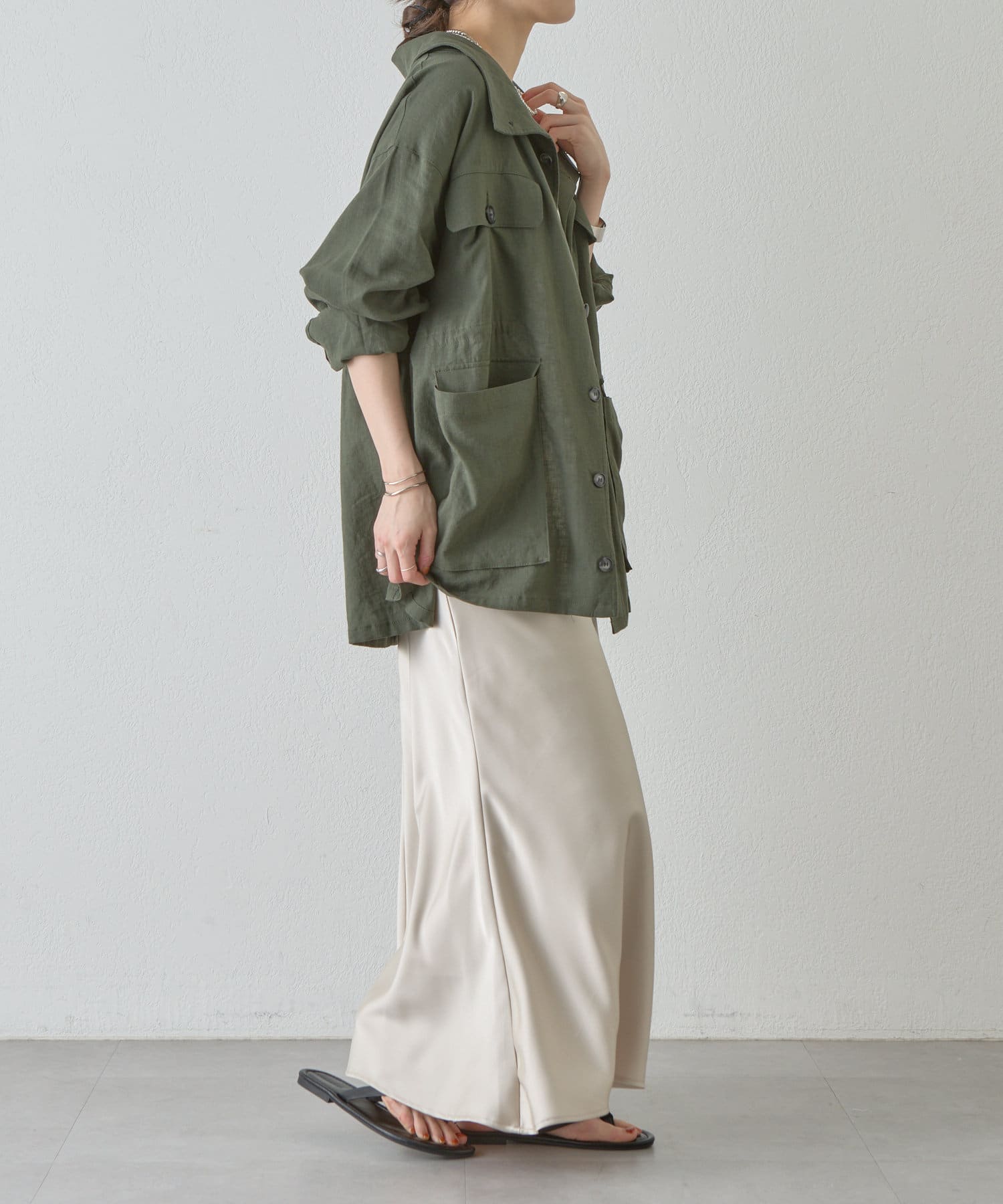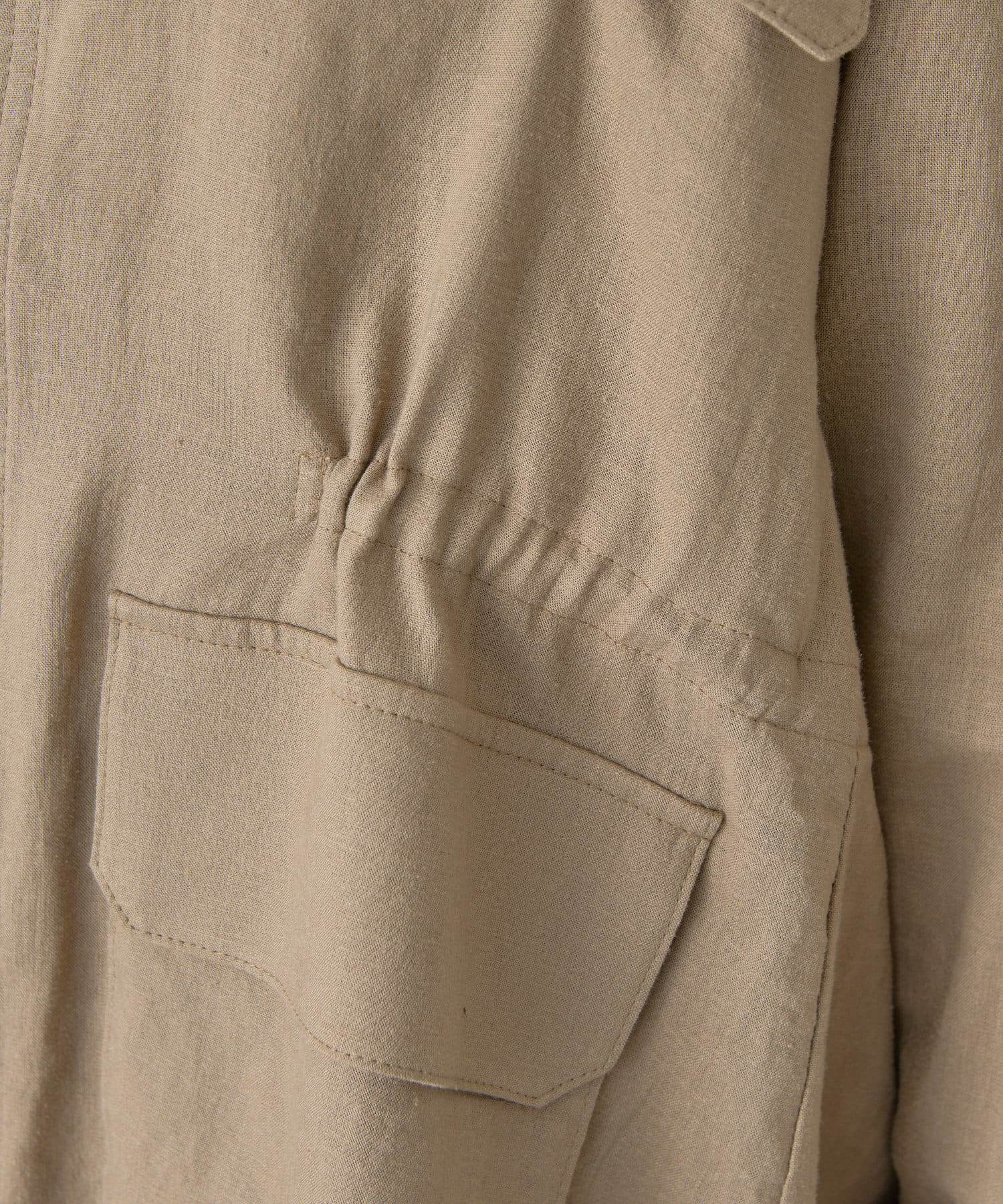 《涼しいリネン素材》ミリタリーリネンシャツジャケット