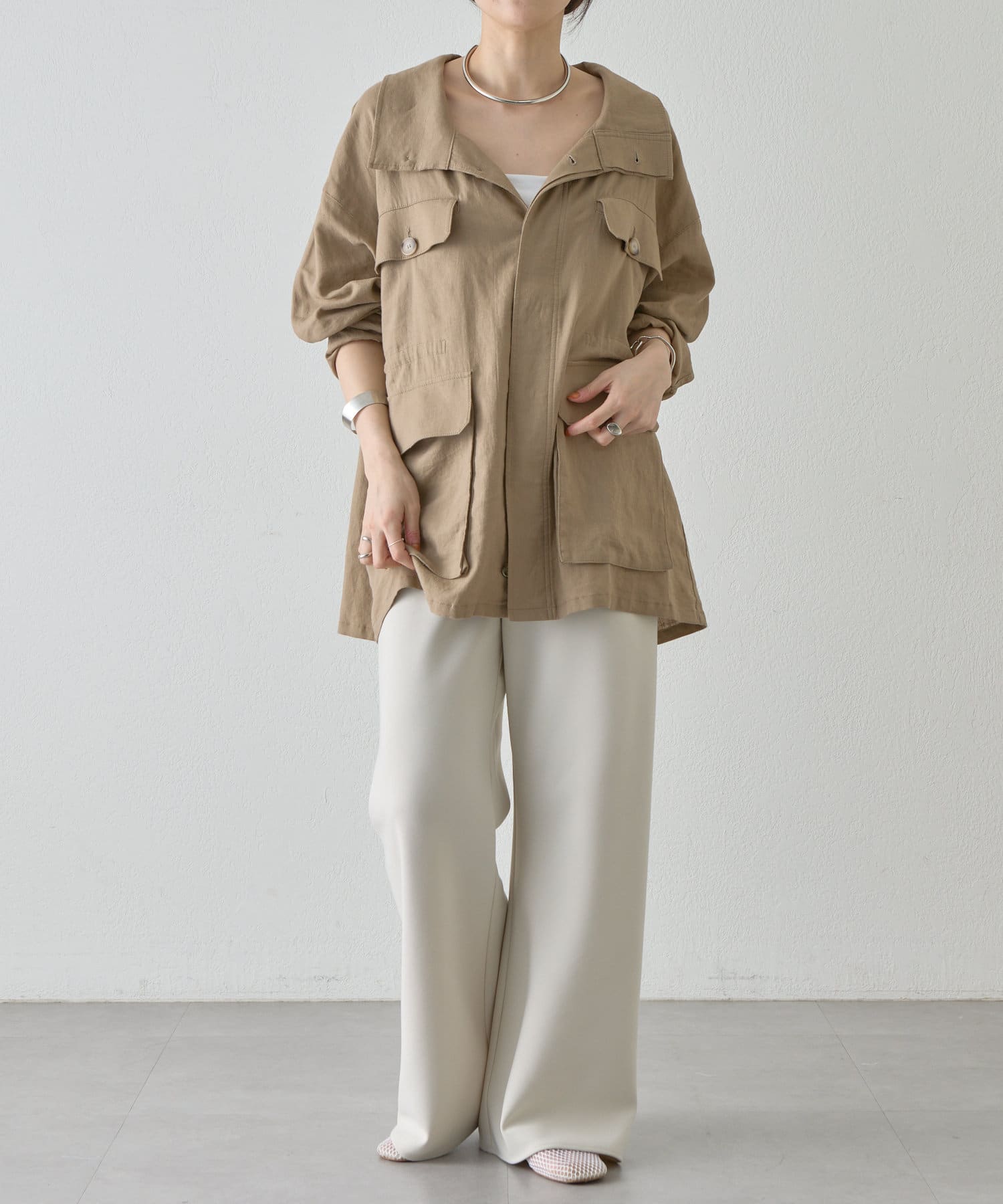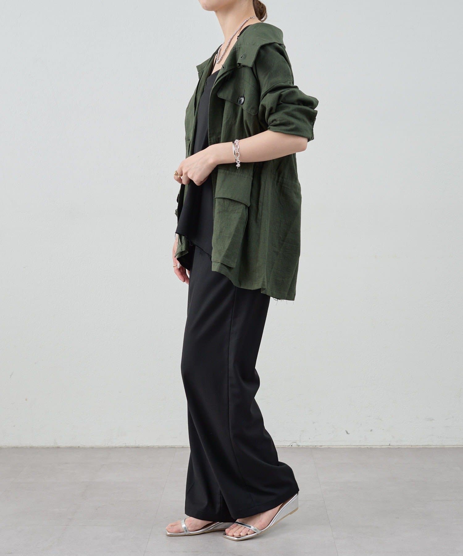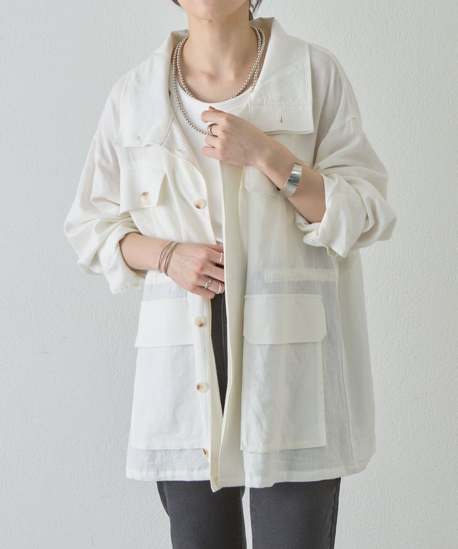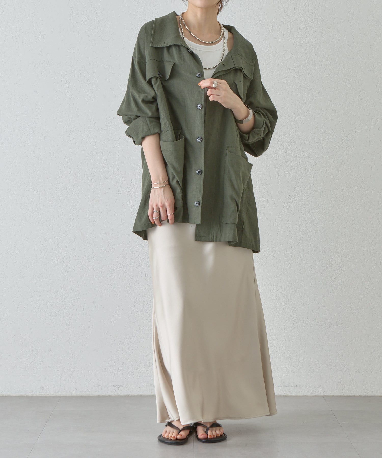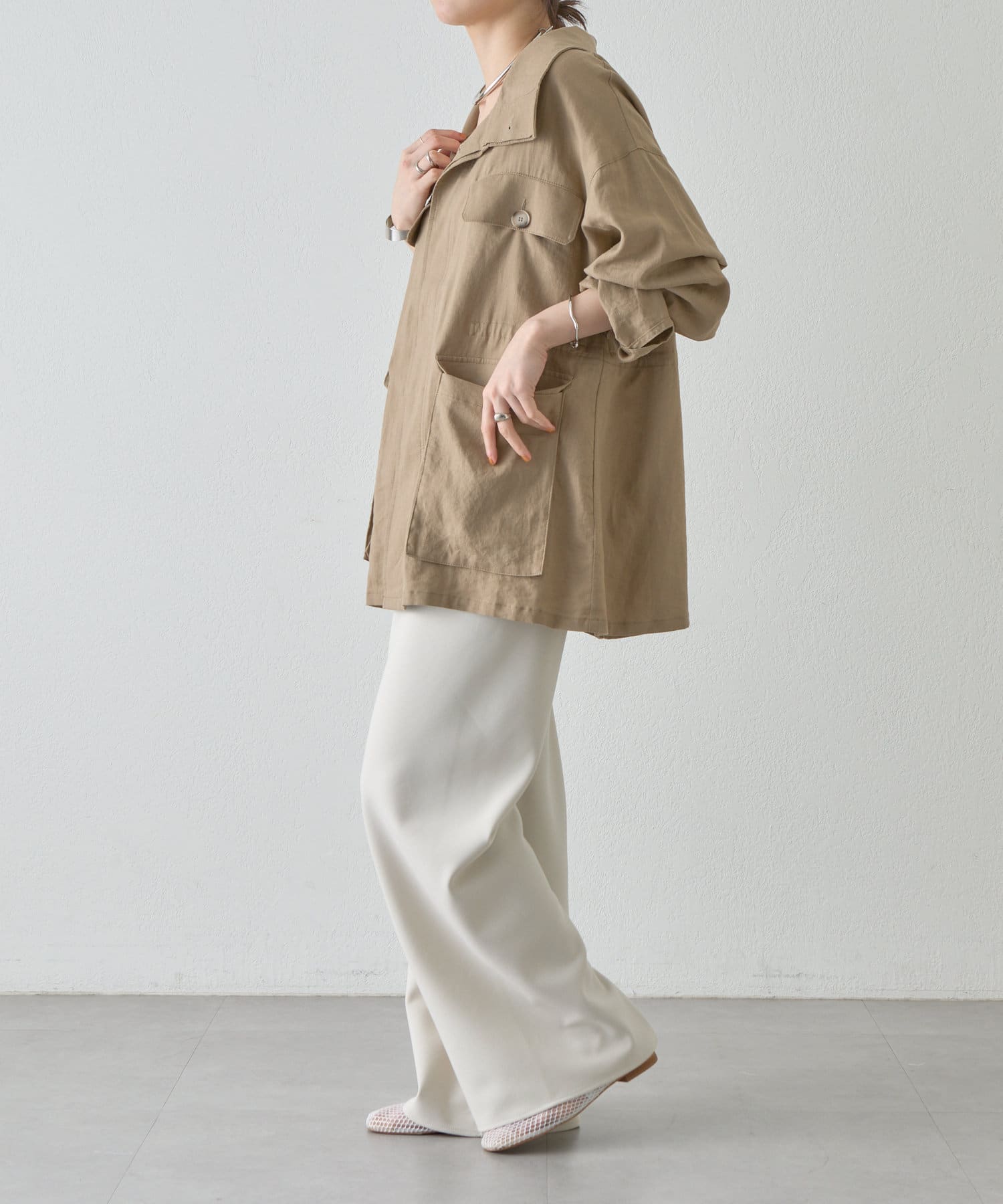 《涼しいリネン素材》ミリタリーリネンシャツジャケット