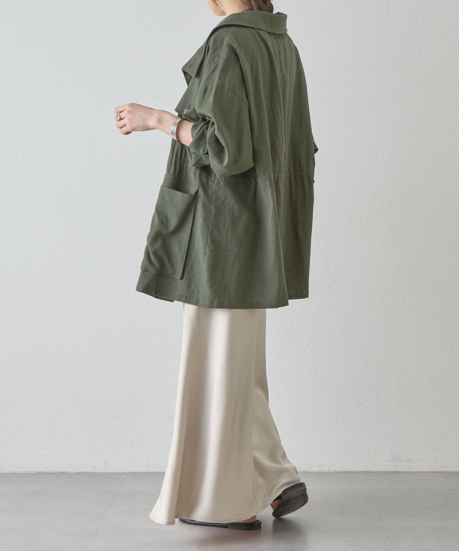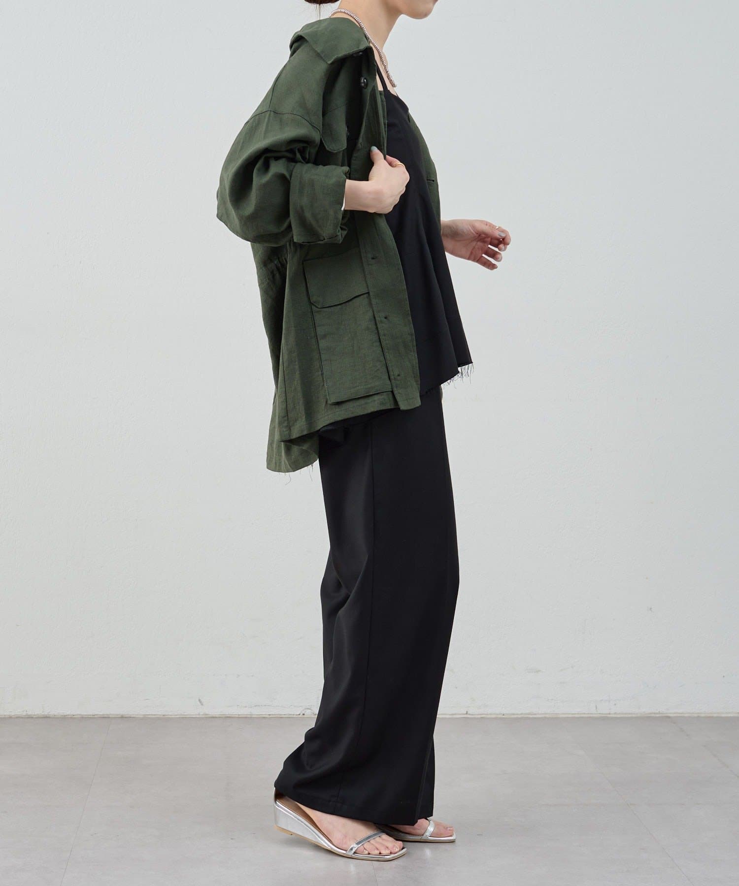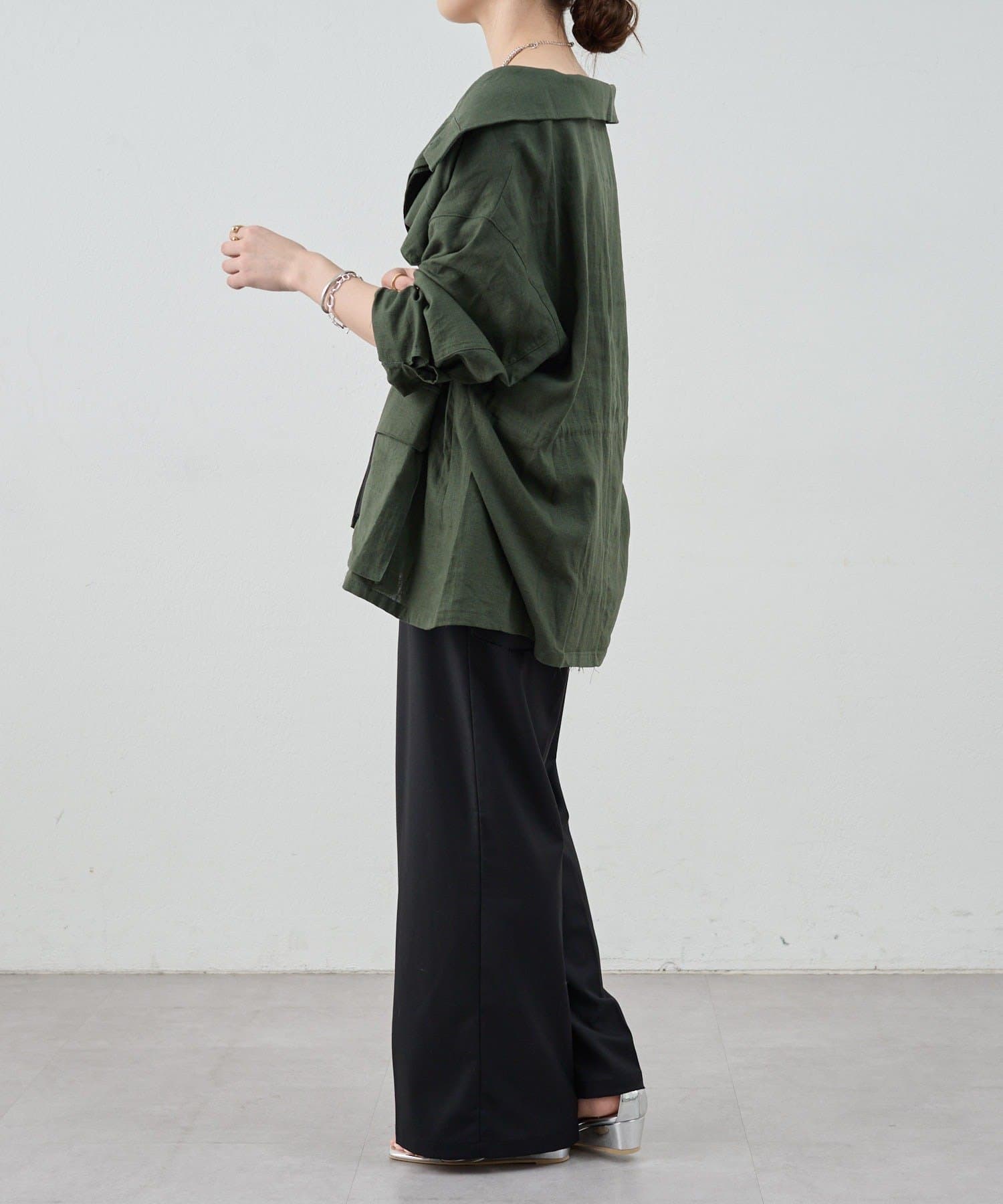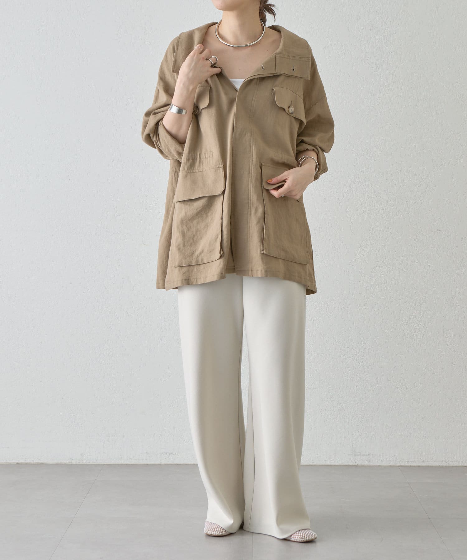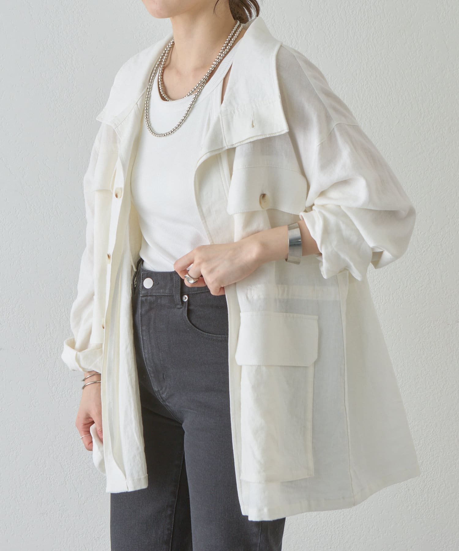 《涼しいリネン素材》ミリタリーリネンシャツジャケット