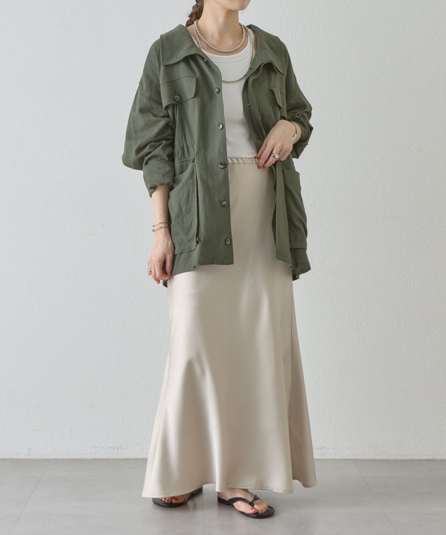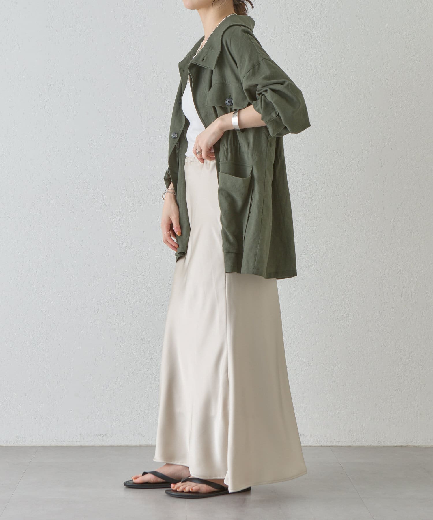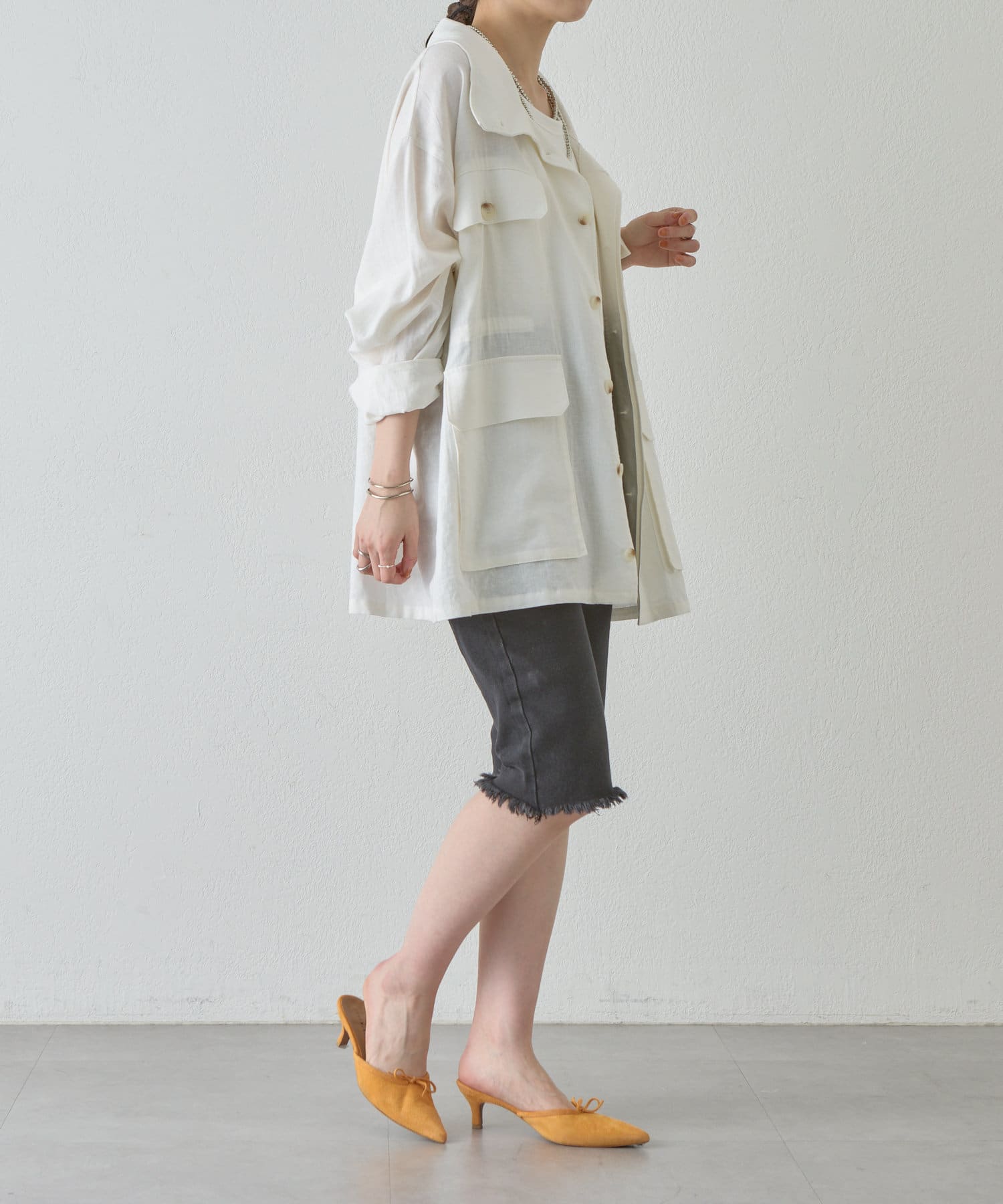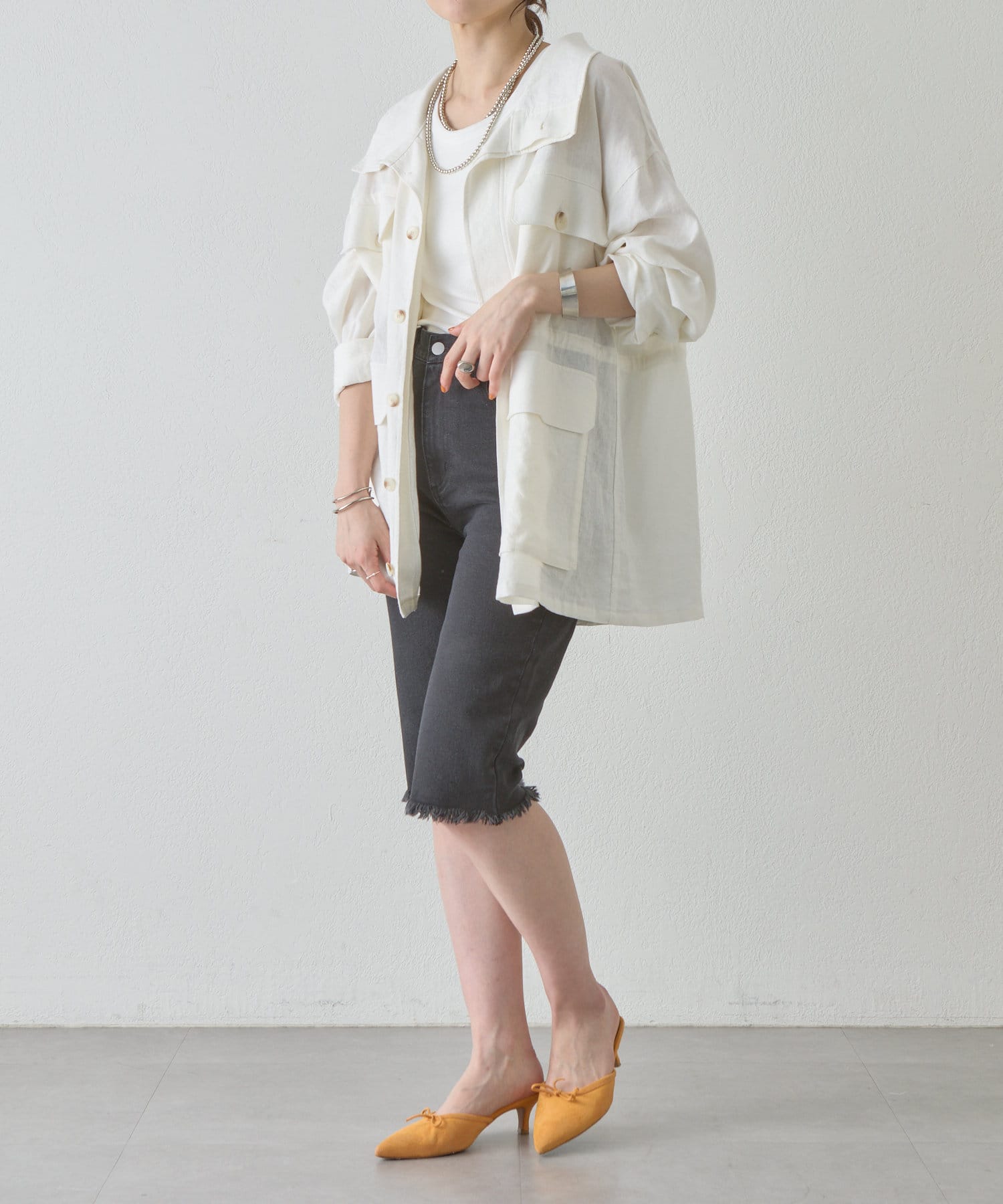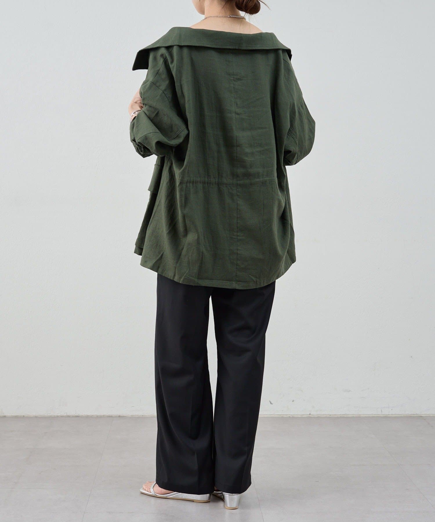 《涼しいリネン素材》ミリタリーリネンシャツジャケット