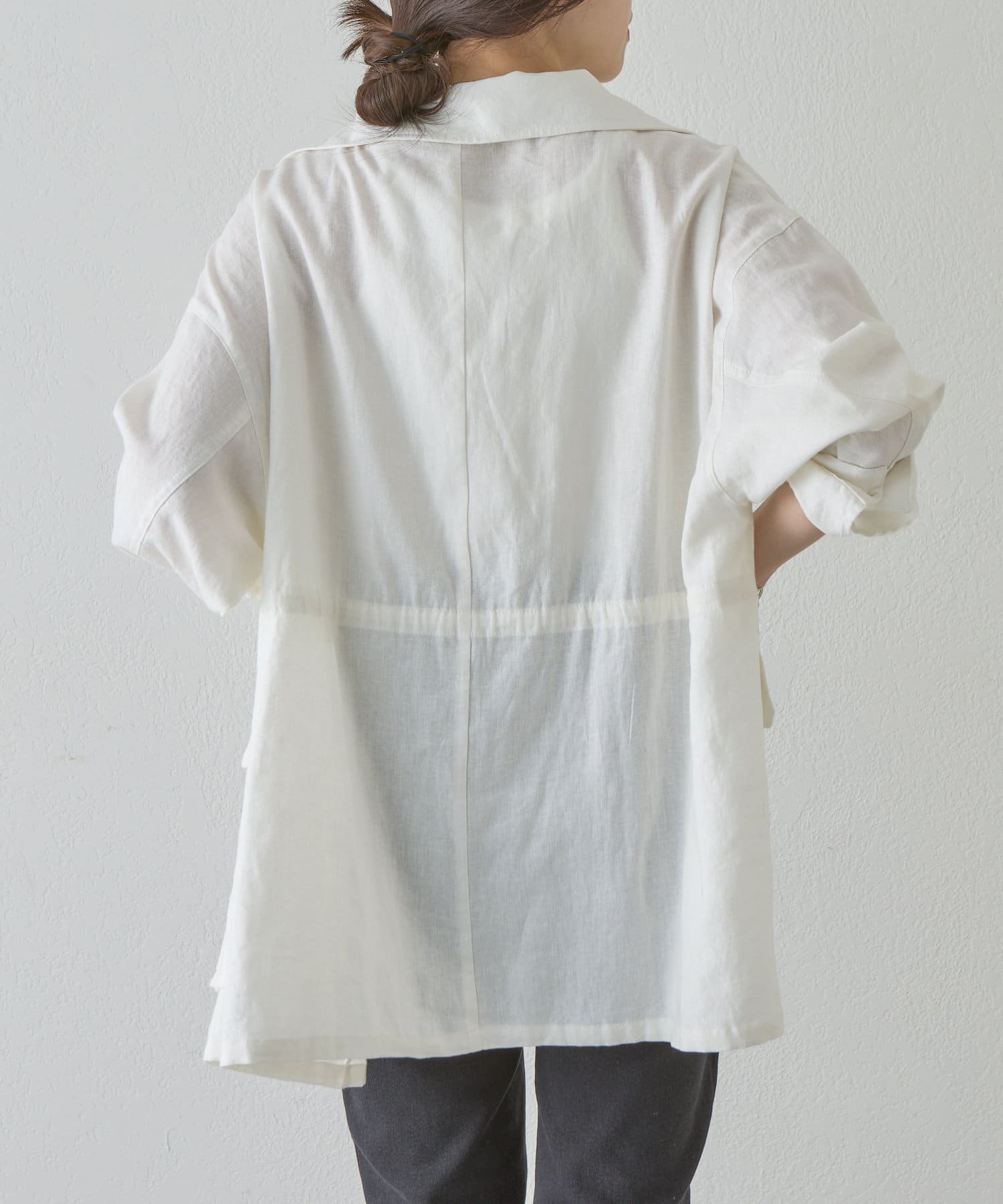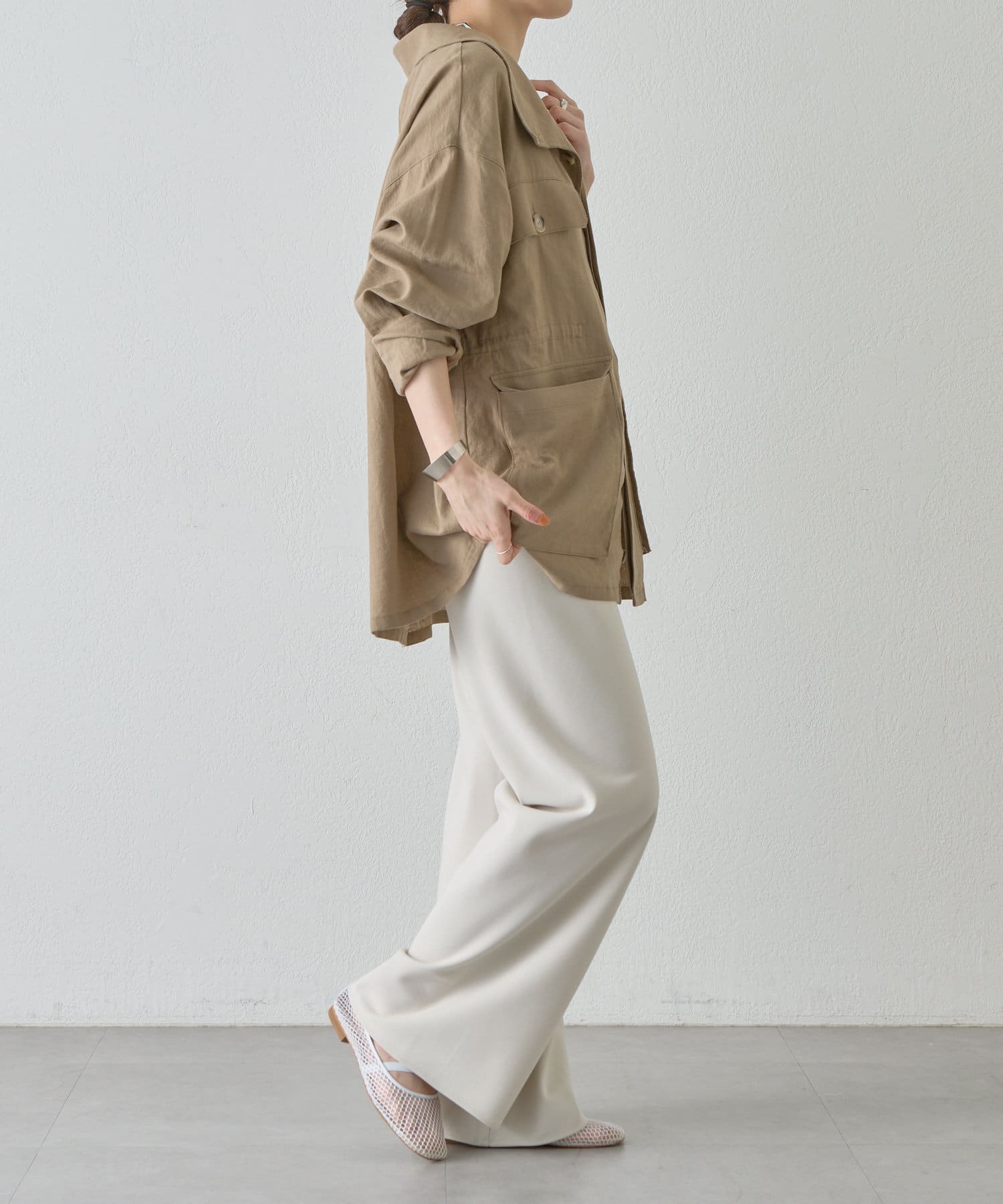 リネンの風合いを楽しめ、しわを気にせずラフに着ていただけるアイテムです。