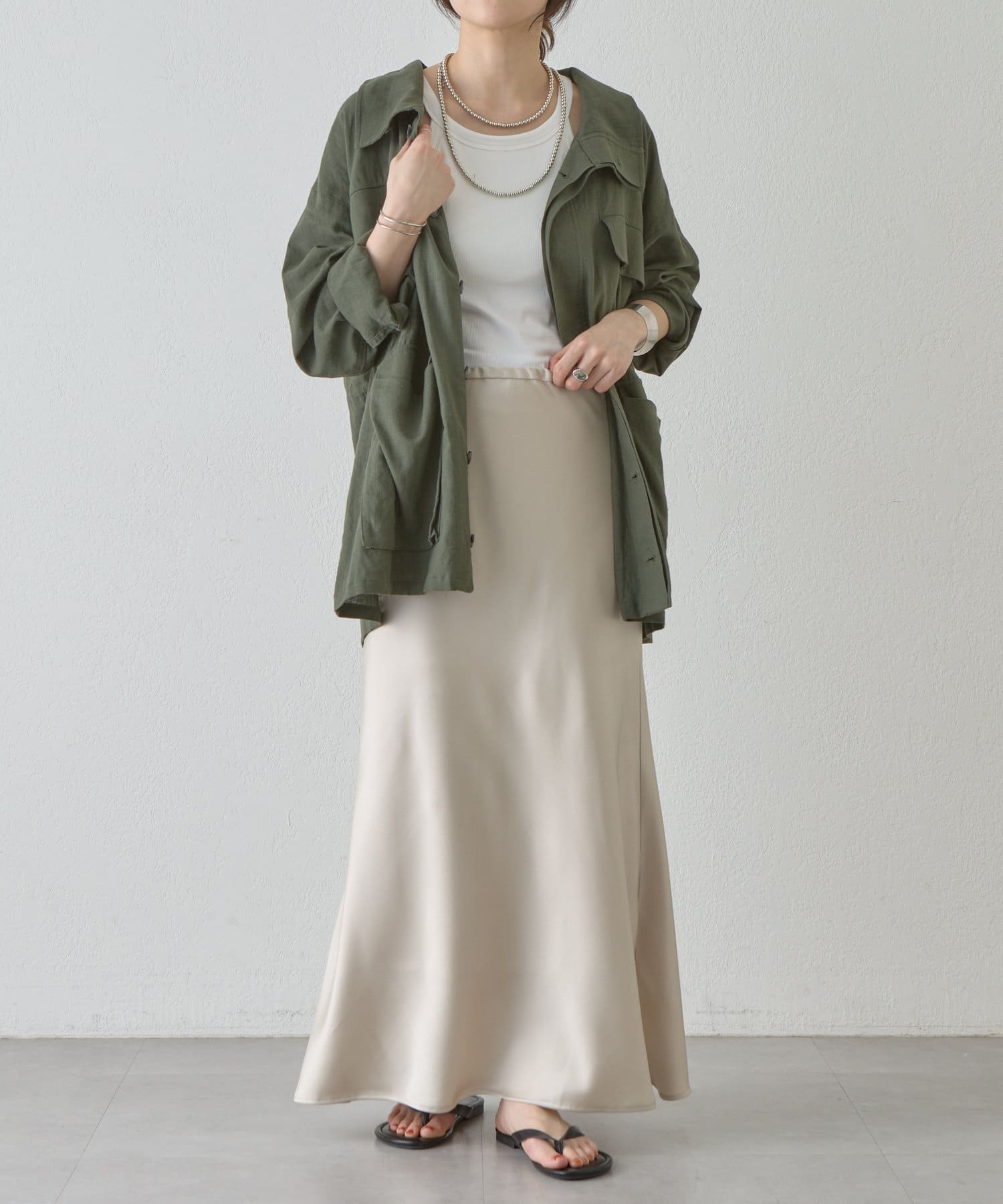程よく大きめなサイズ感なので、タイトスカートやチノパンなど、