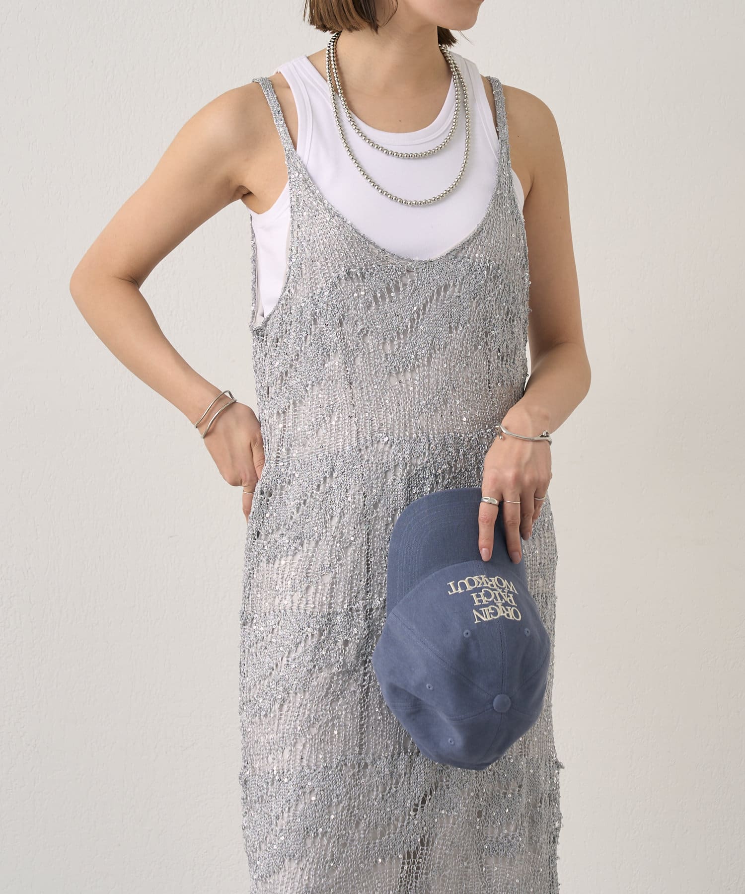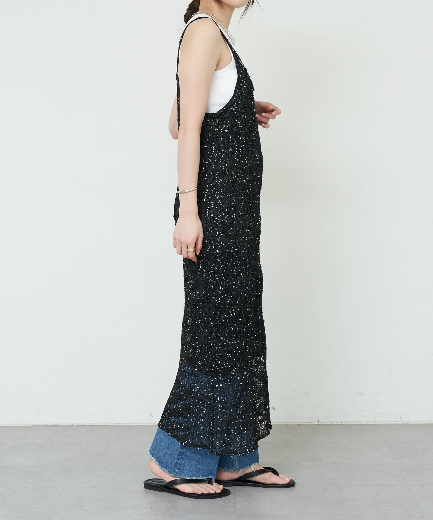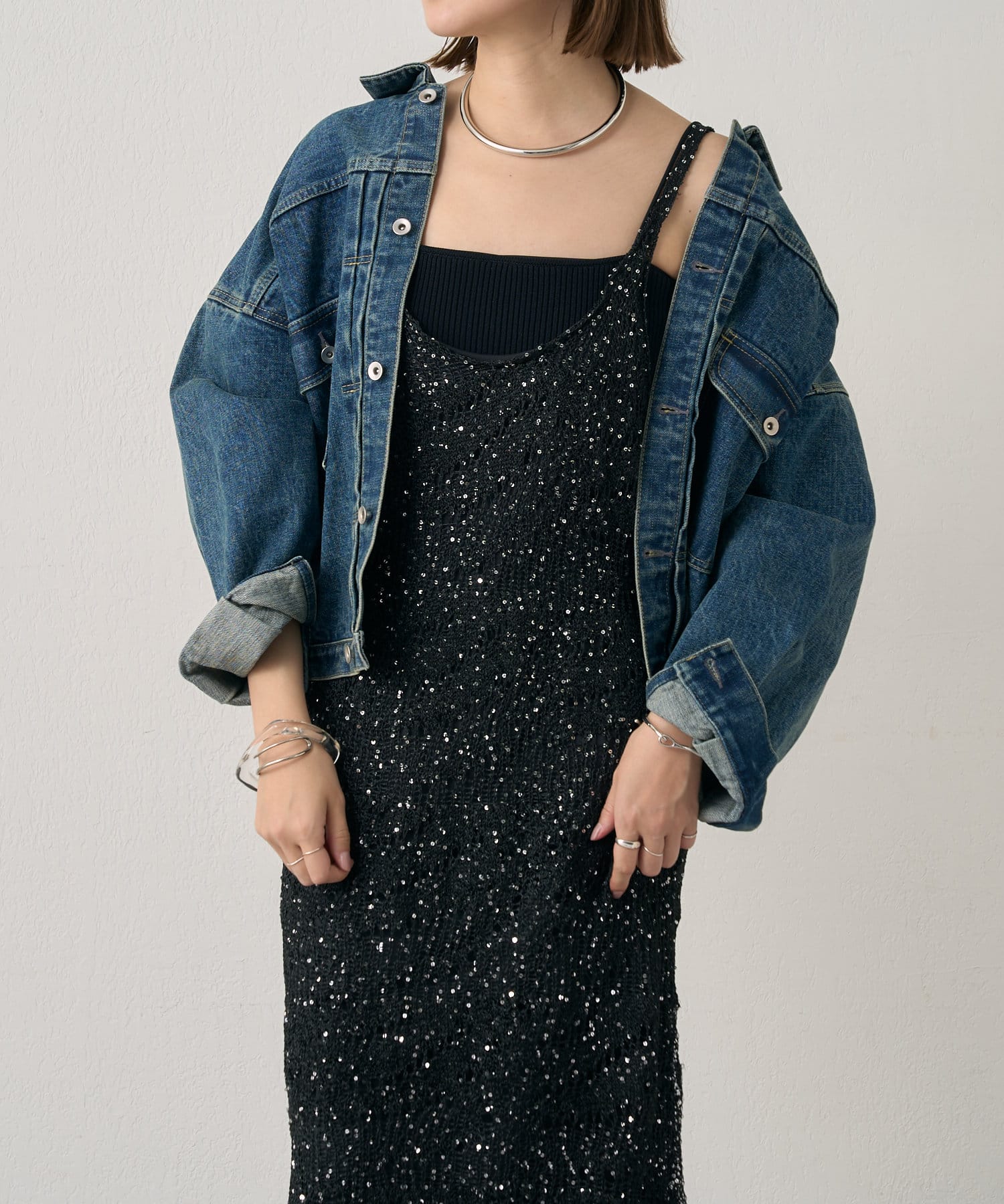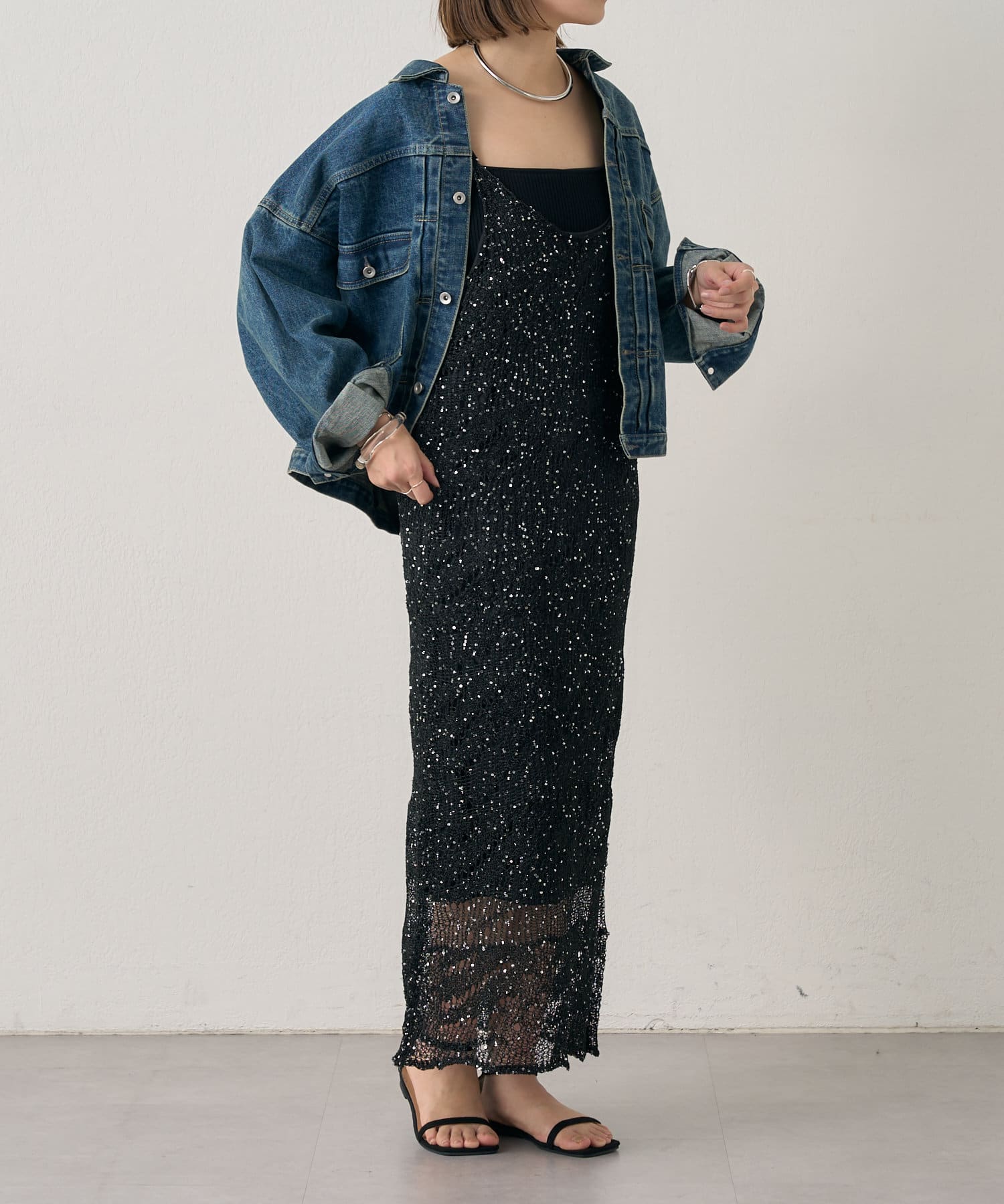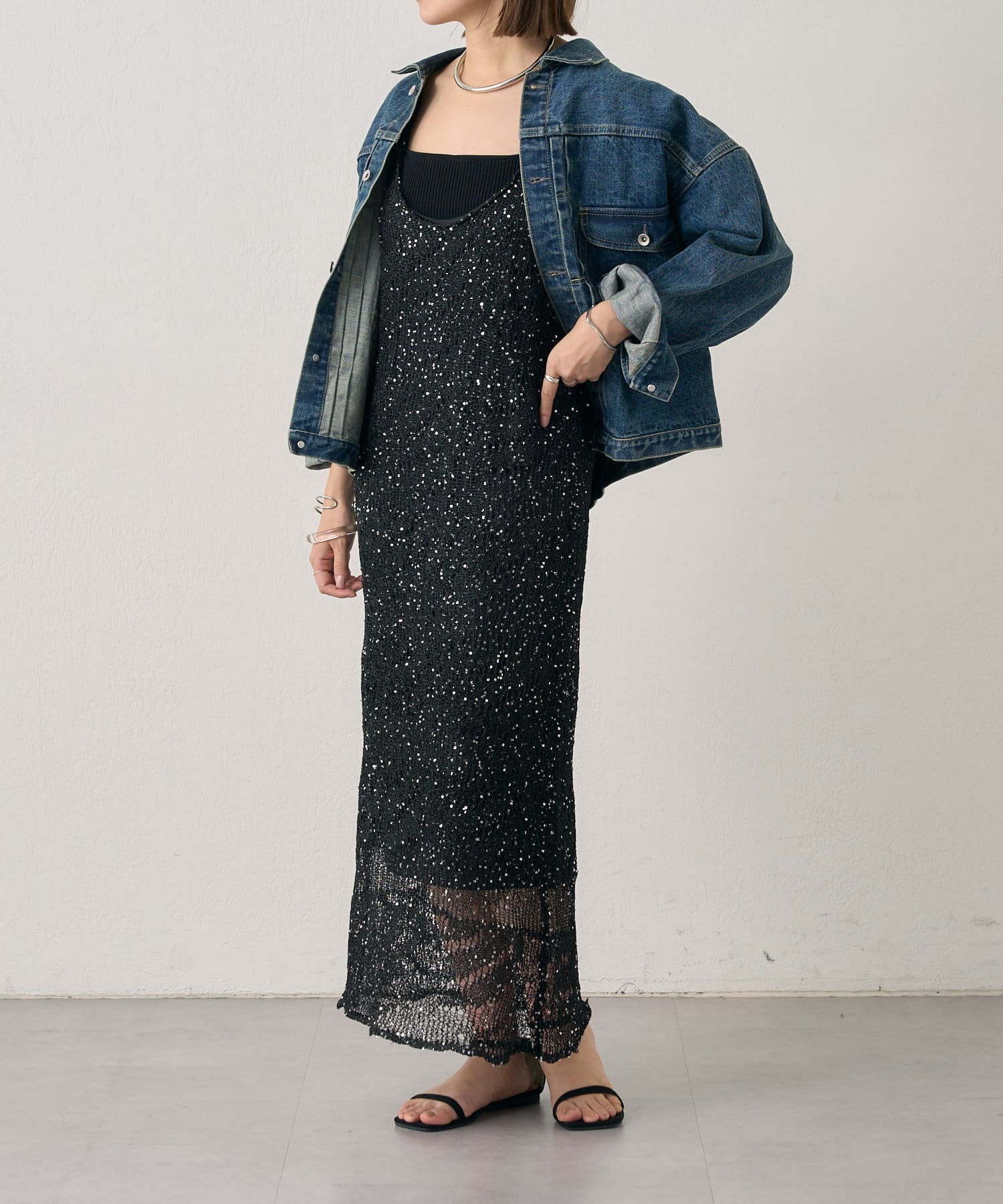 1枚で存在感抜群のスパンコールワンピース