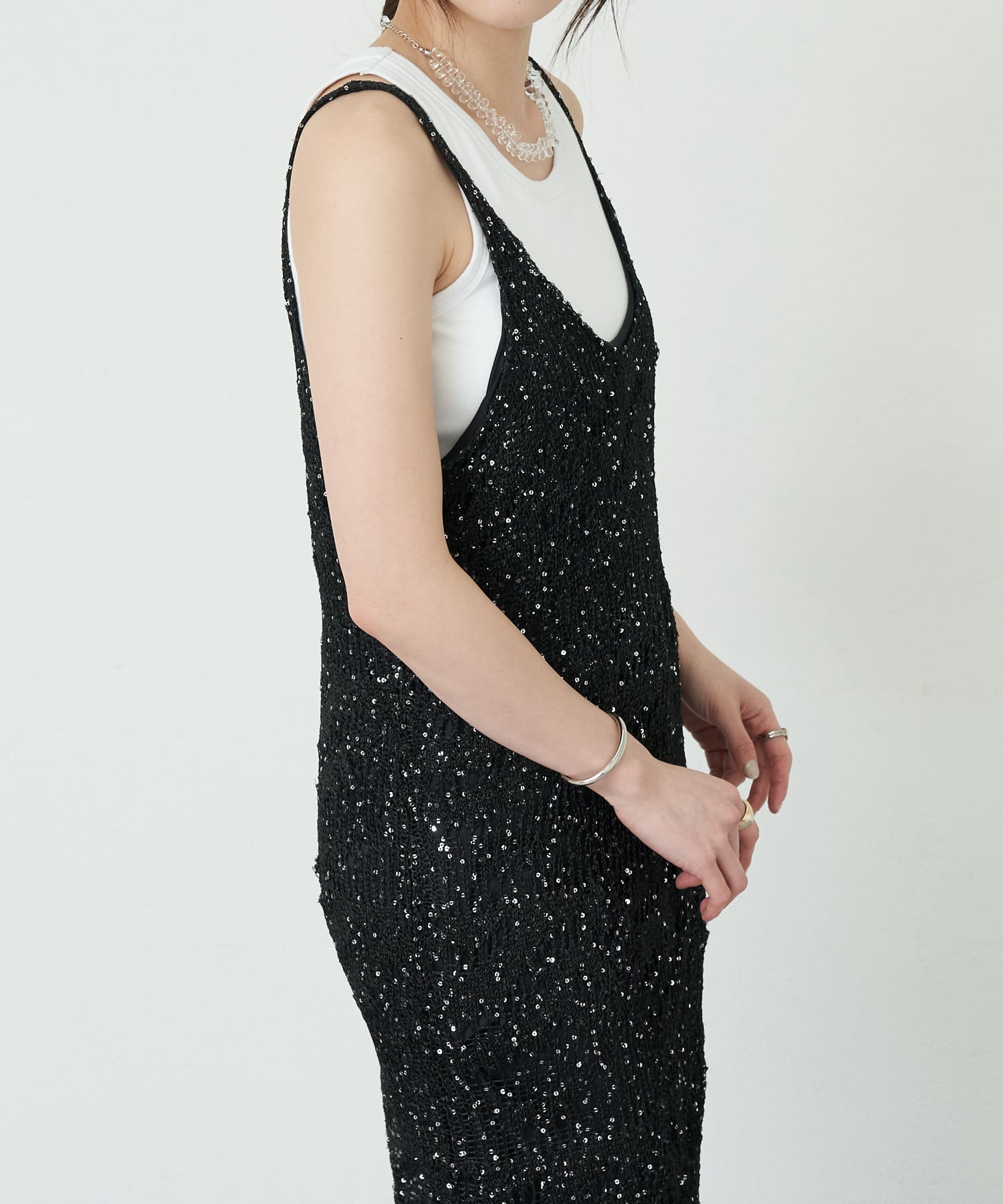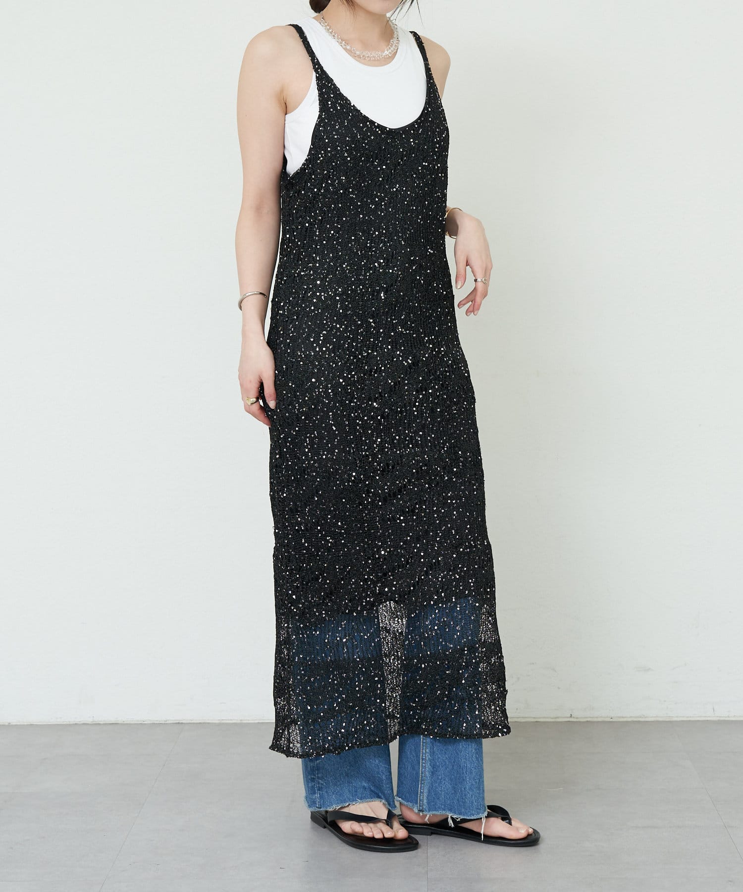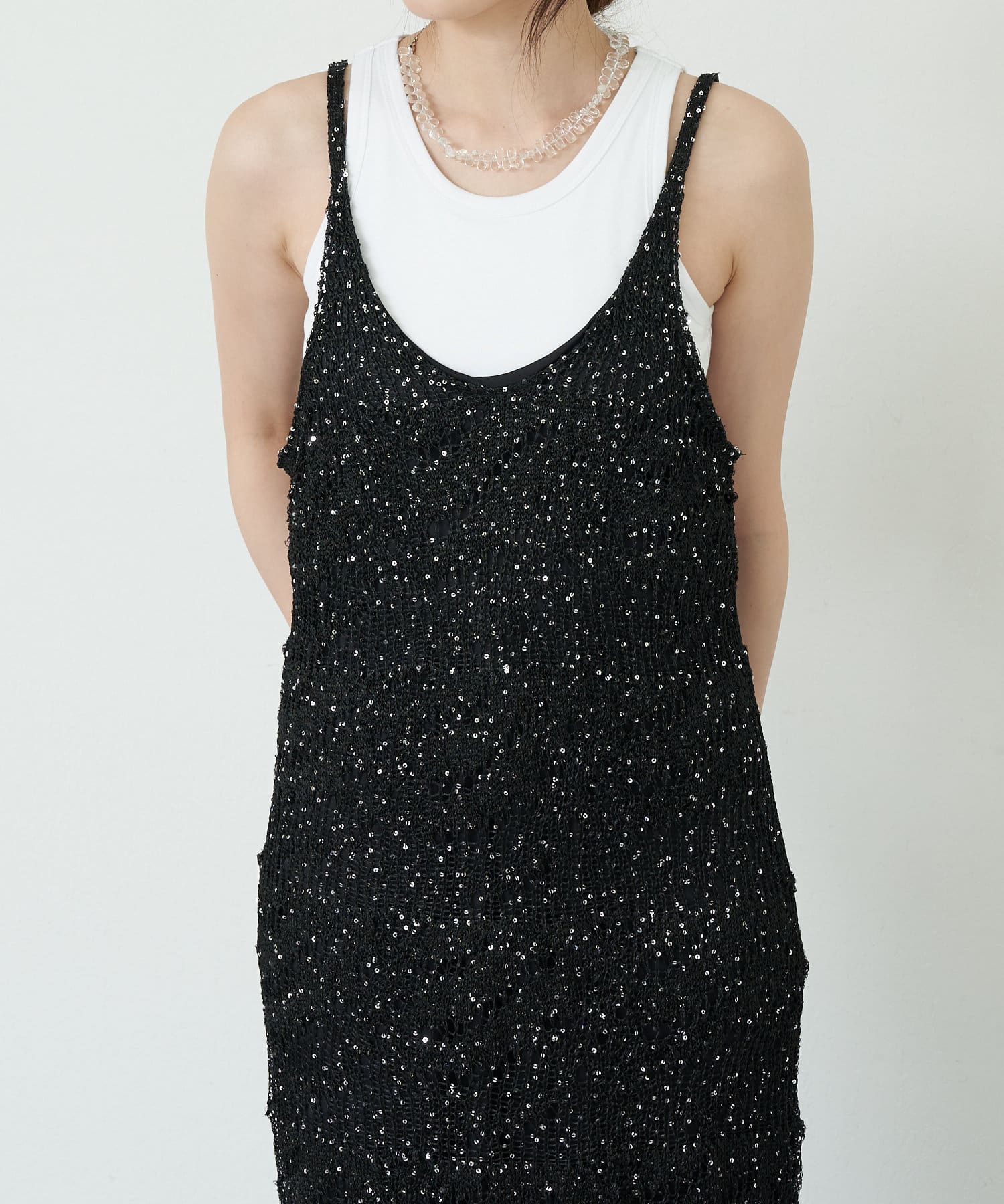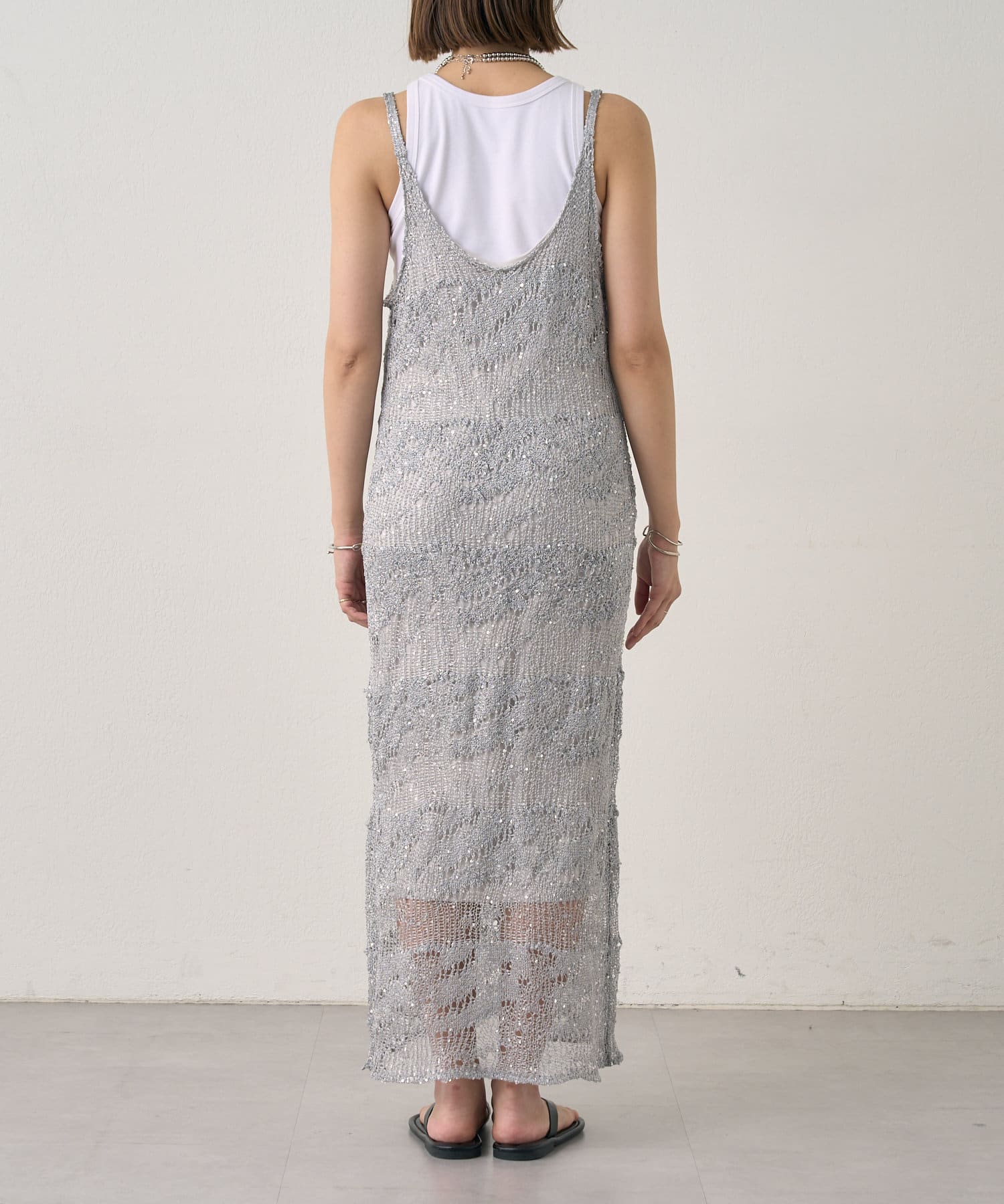 【SHENERY】透かし編スパンコールキャミドレス