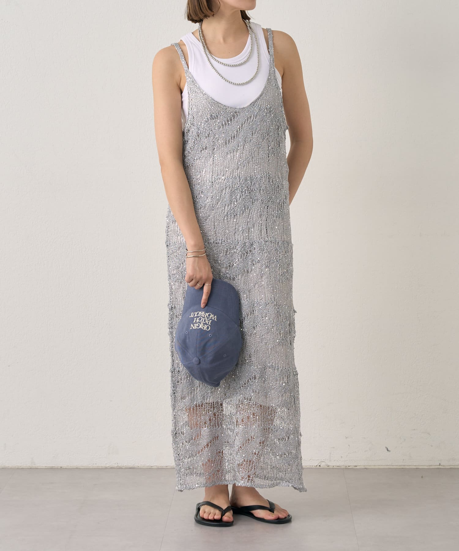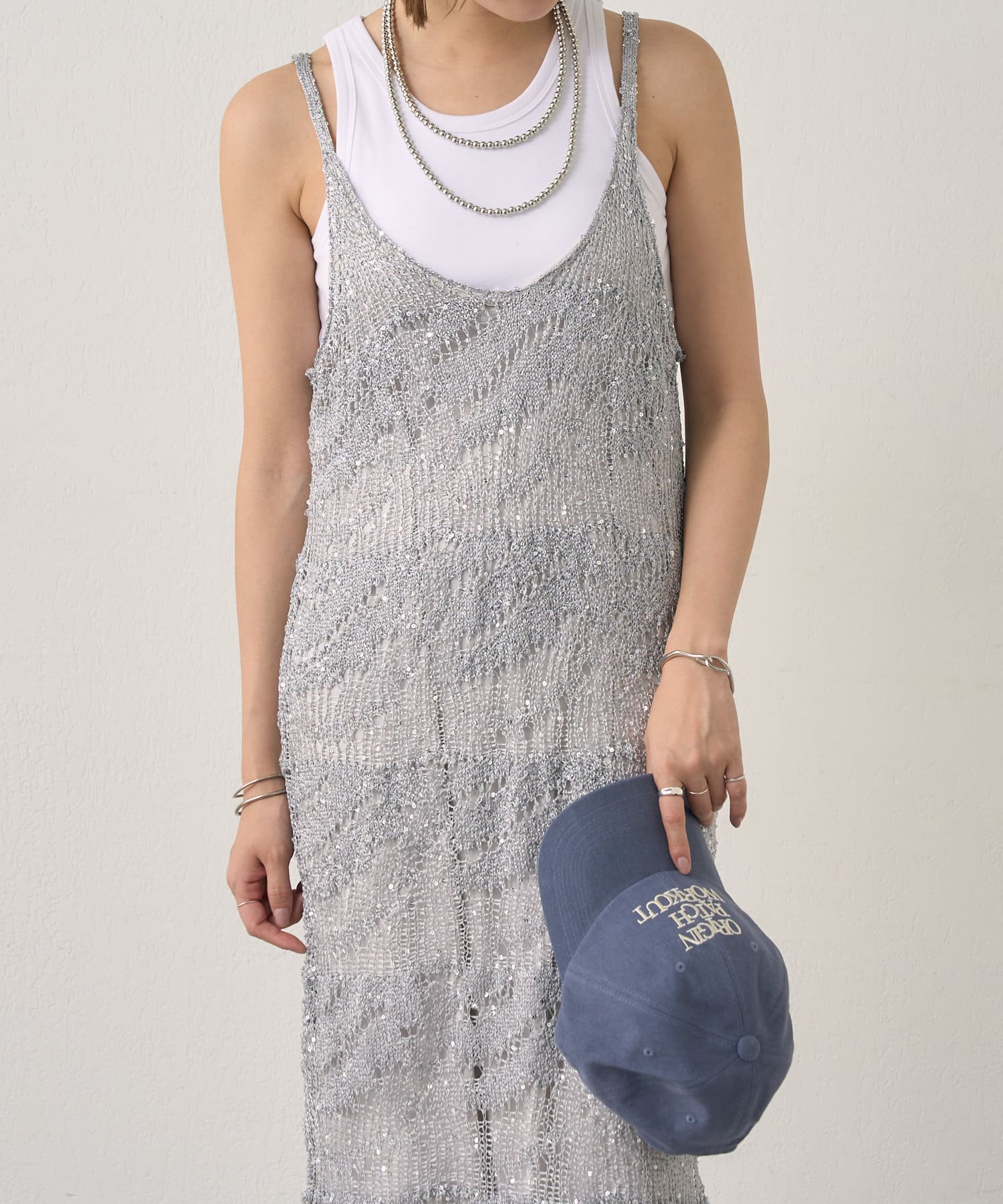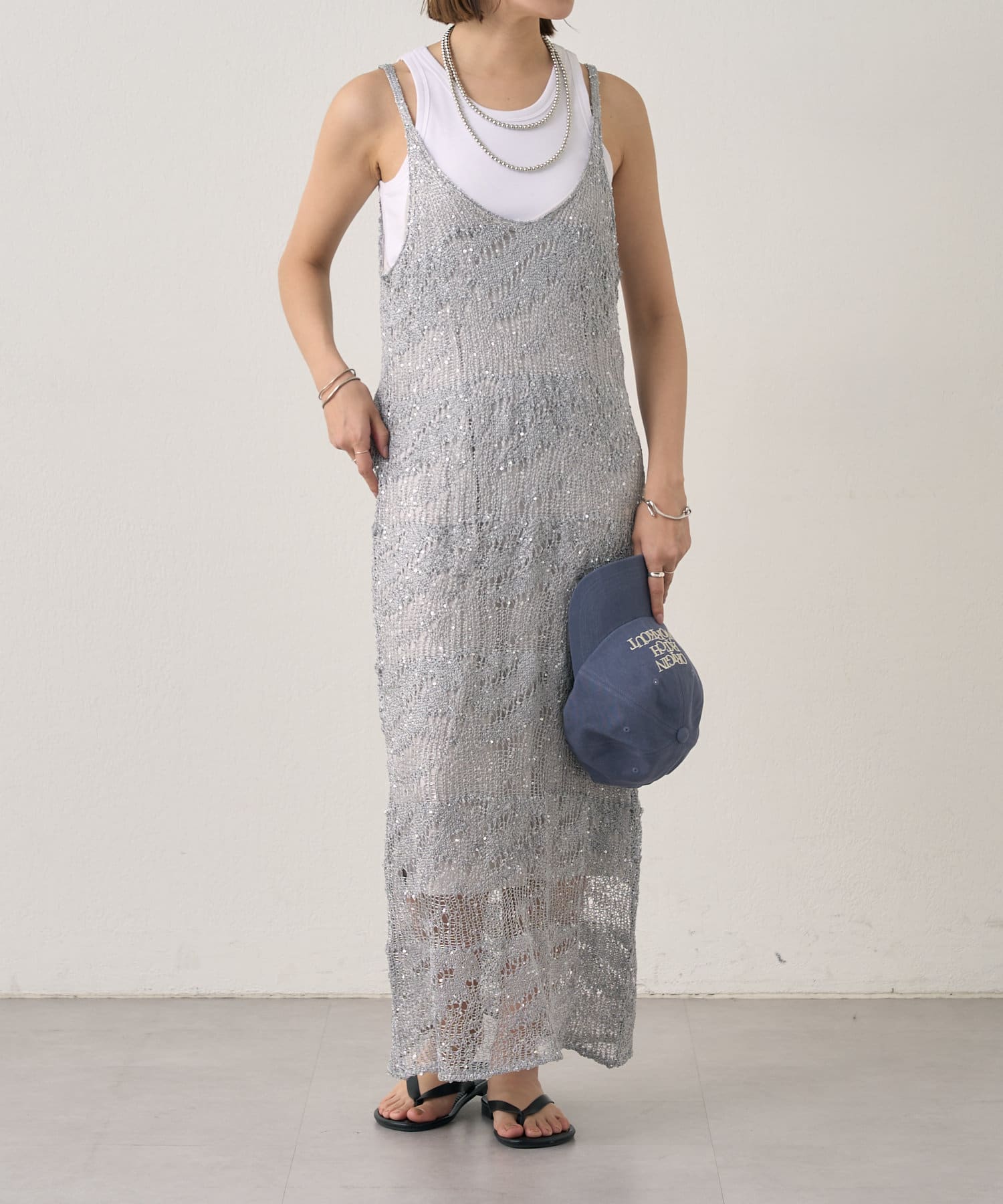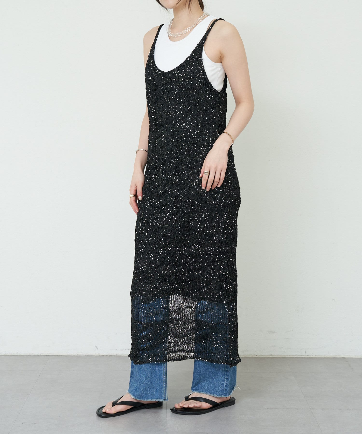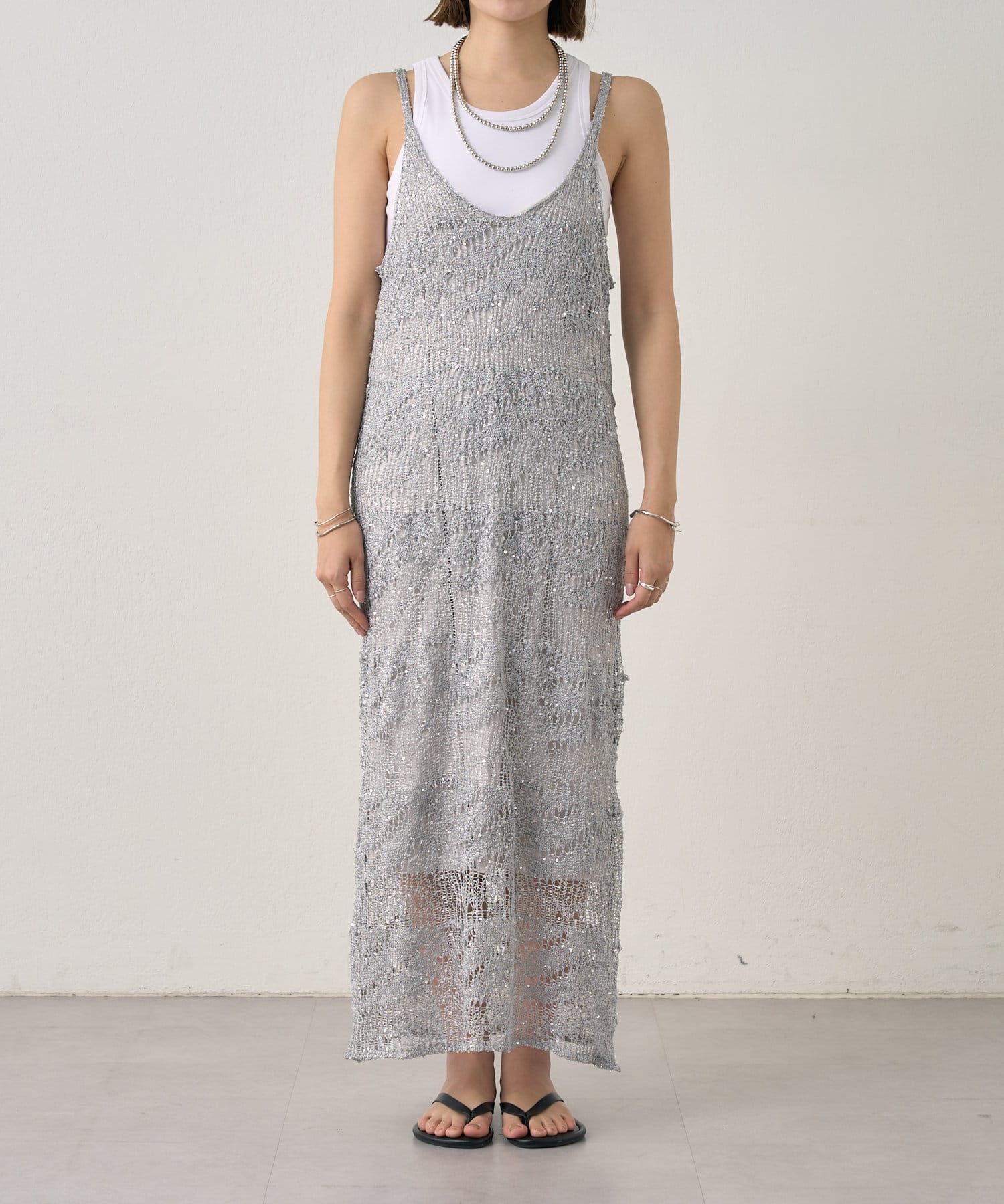 【SHENERY】透かし編スパンコールキャミドレス