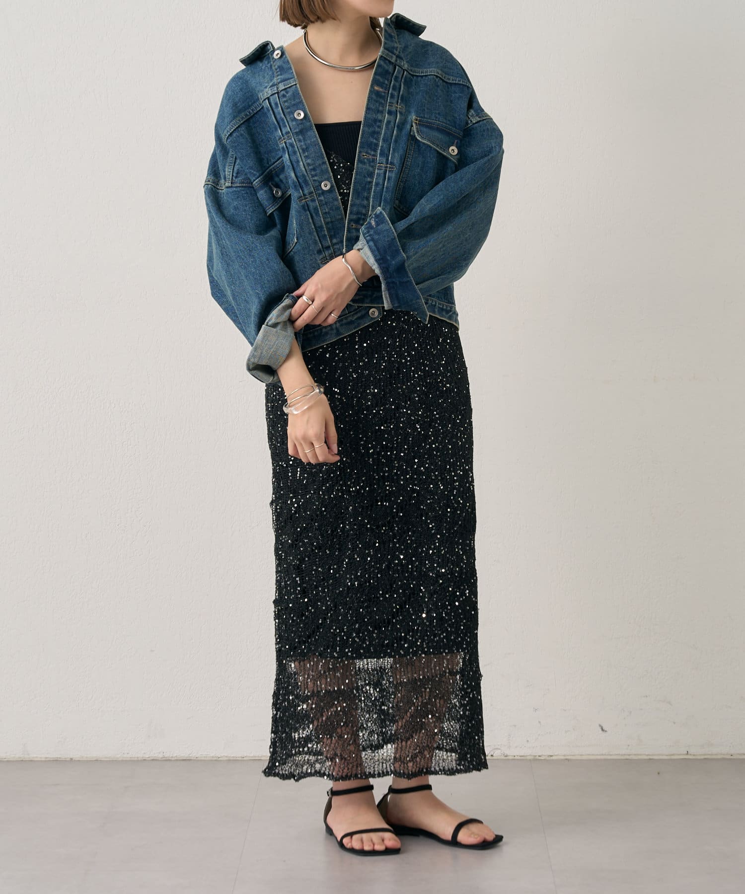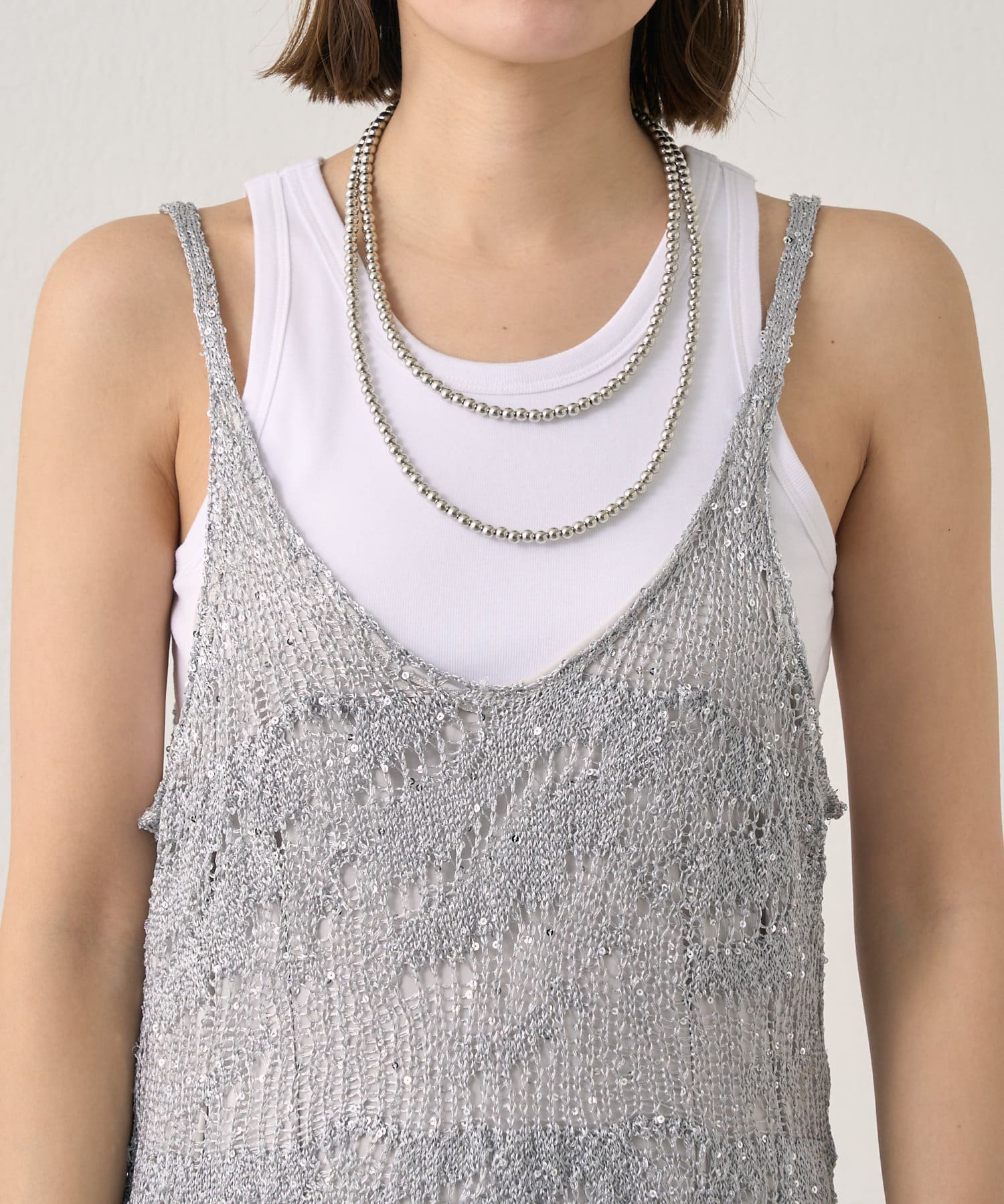 キラッと上品に光るスパンコールが夏のカジュアルになりがちなコーディネートを華やかにしてくれる1枚。