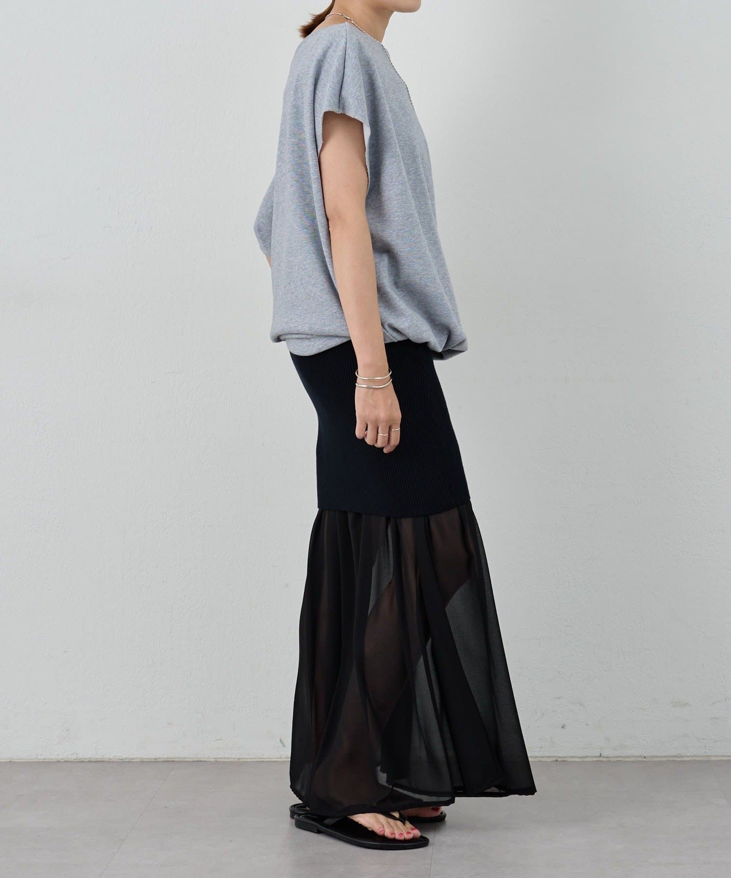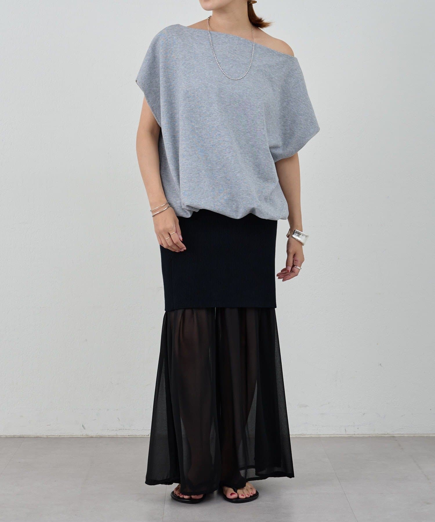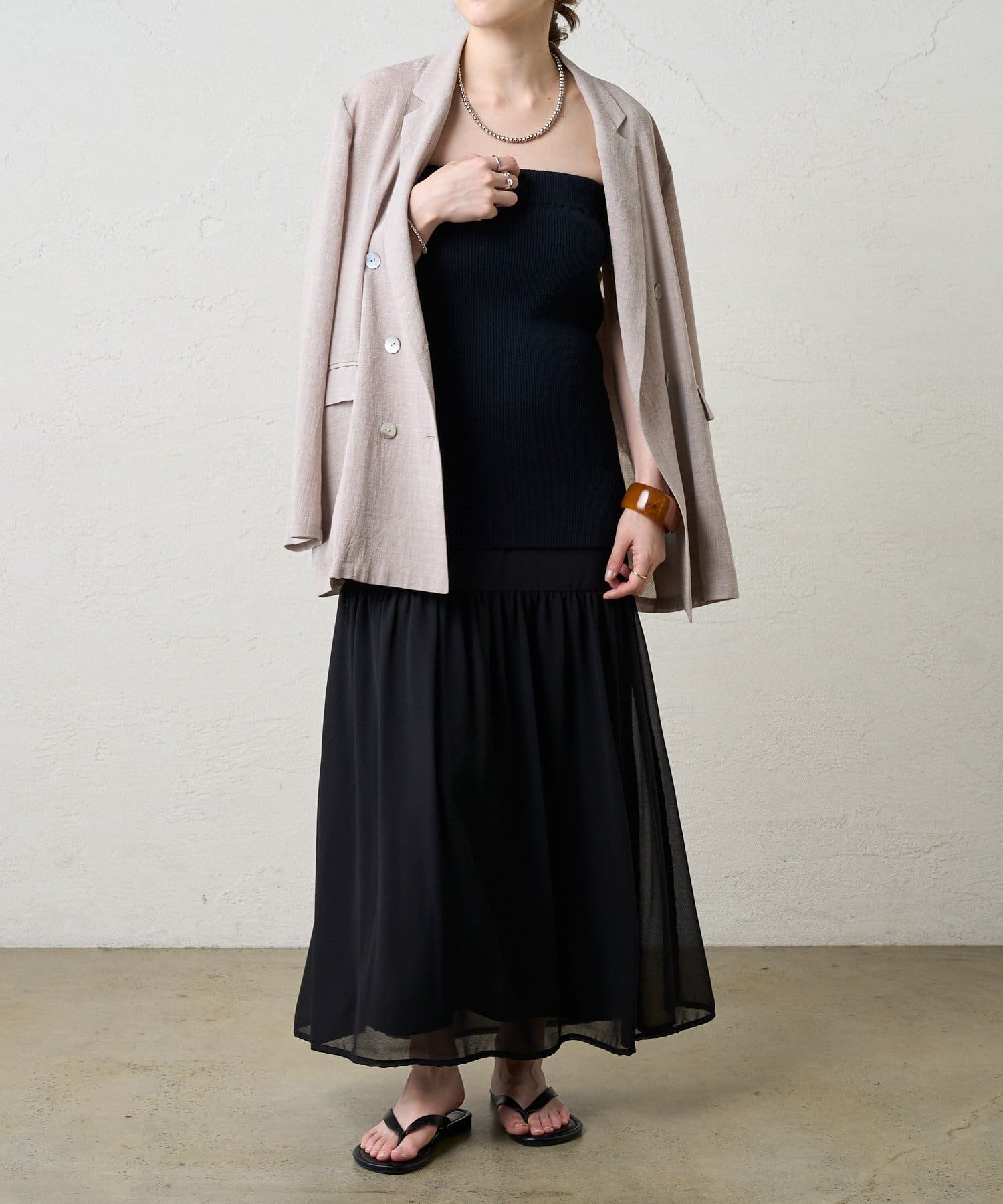 ・シフォン部分だけで履いてふわりと女性らしく。