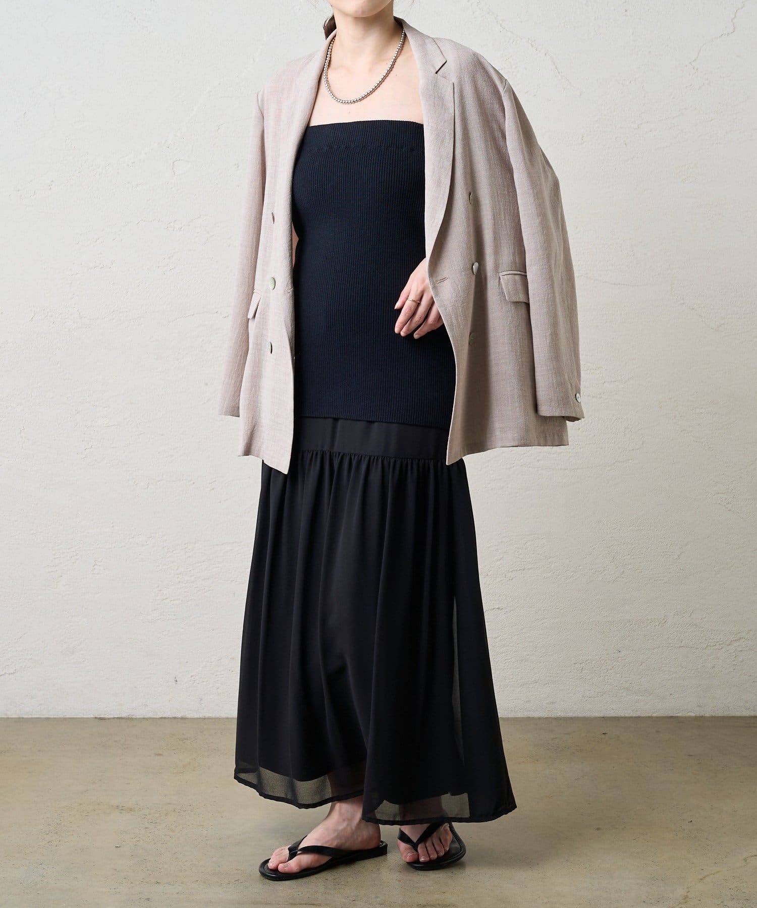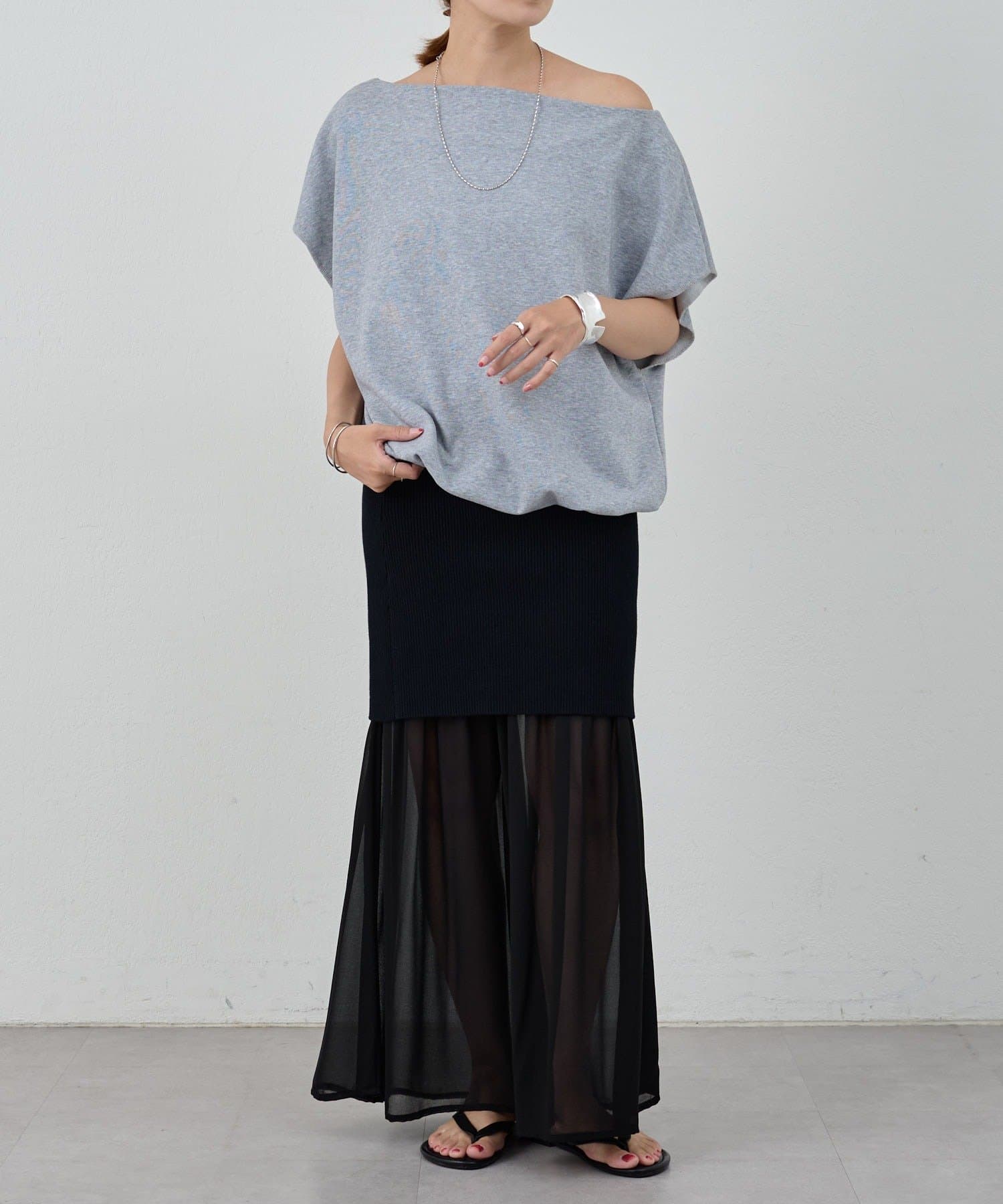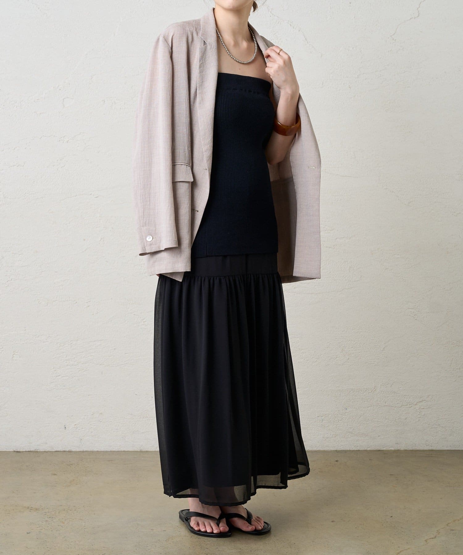 ・シフォン部分だけで履いてふわりと女性らしく。
