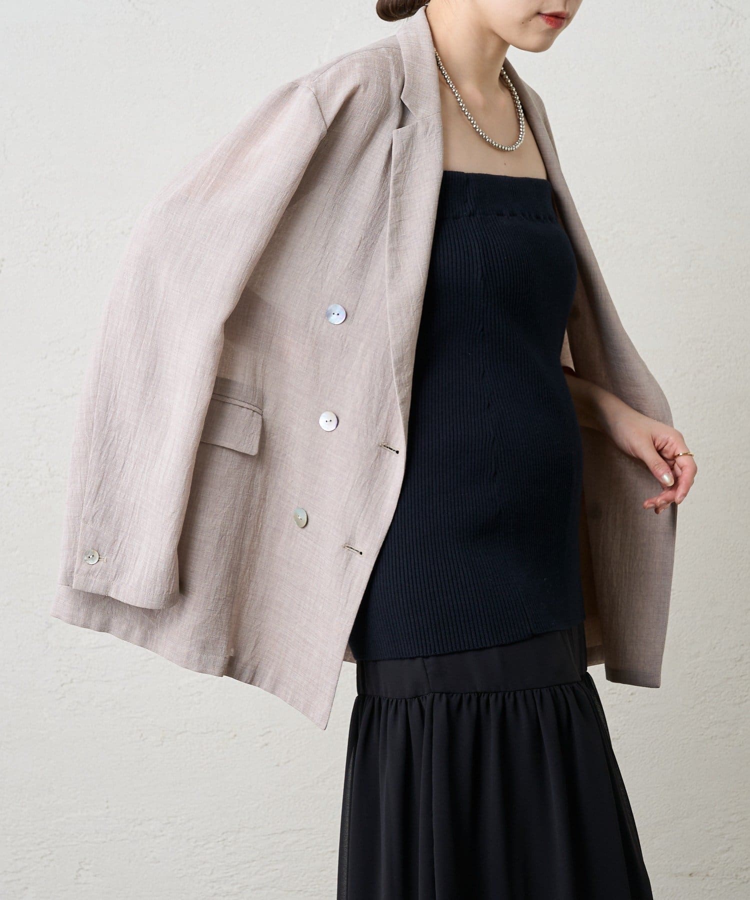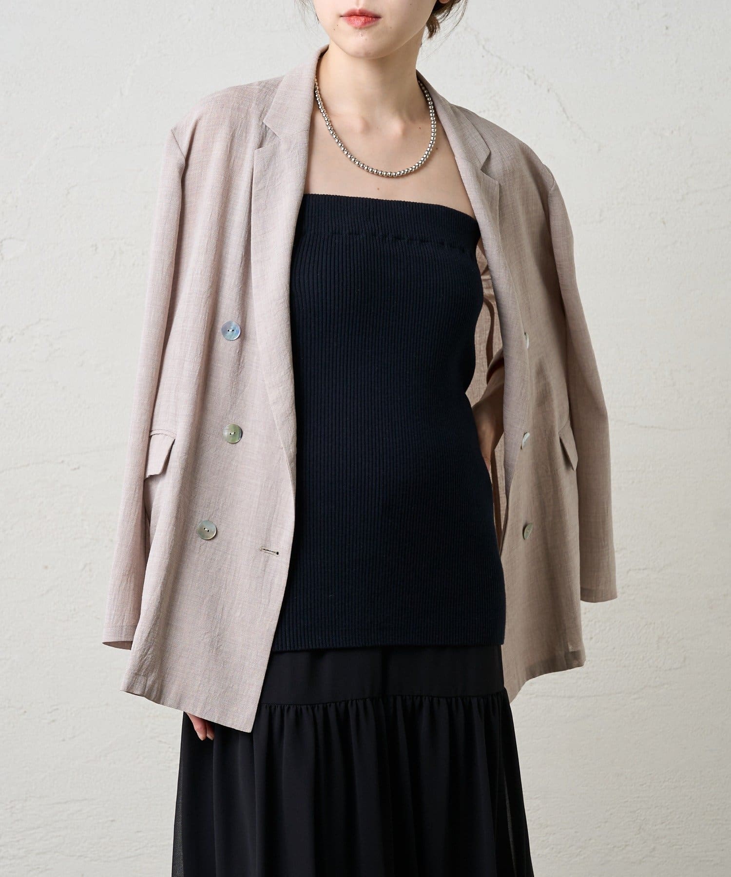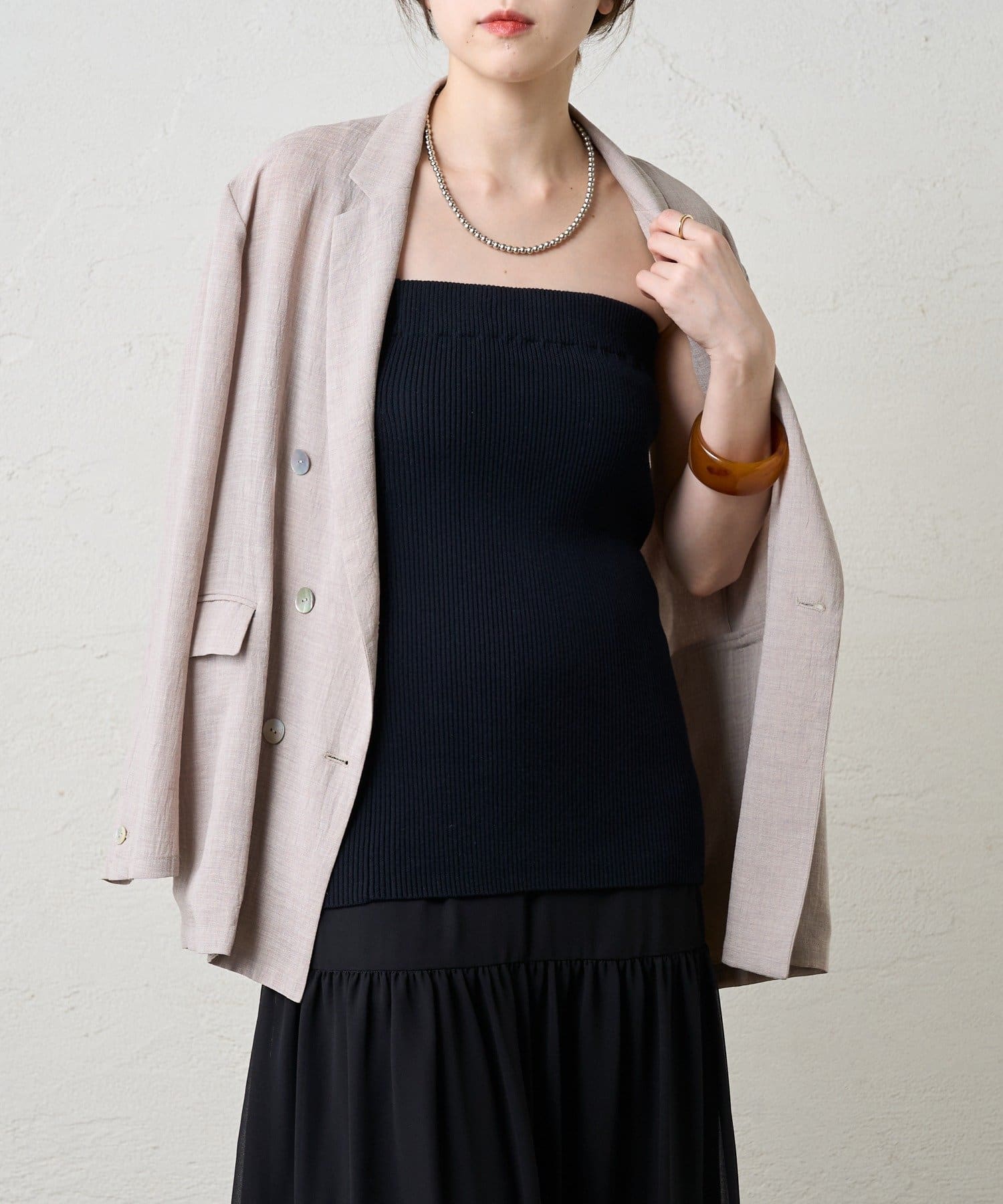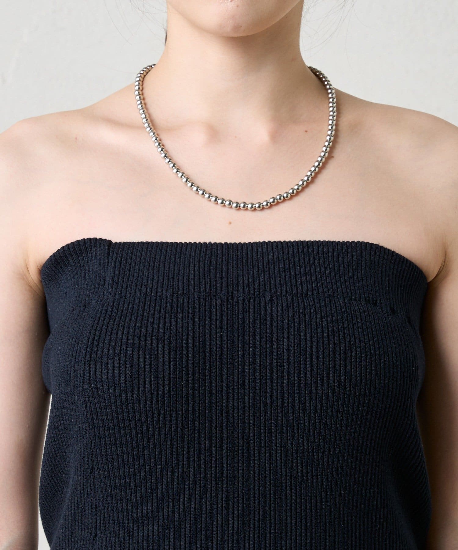 ・ニットスカートは胸元まで上げてビスチェにも。