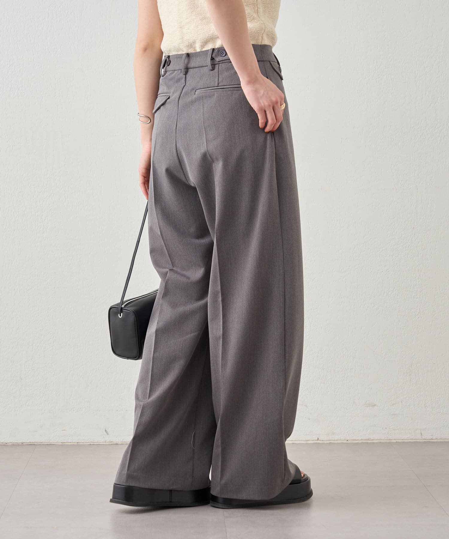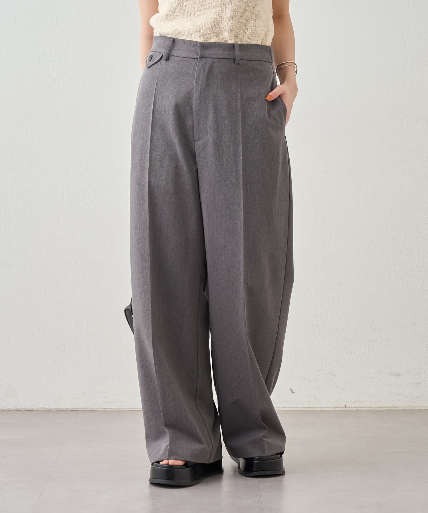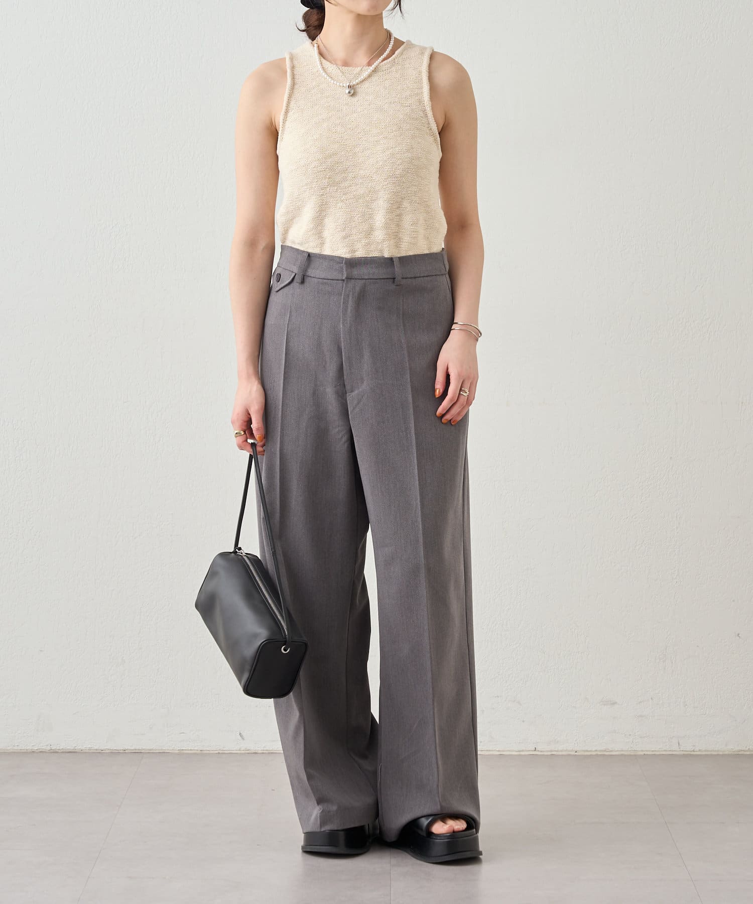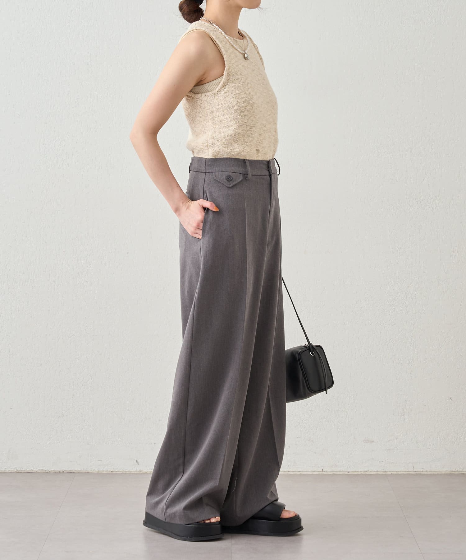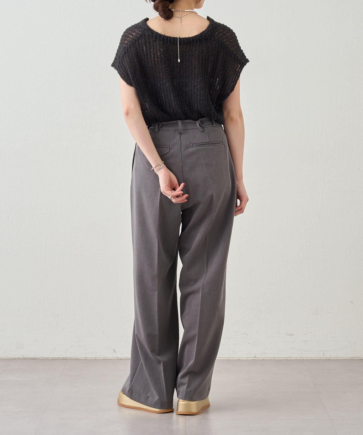 ON/OFFどちらにも着て頂けるようにワイドシルエットなスラックス。