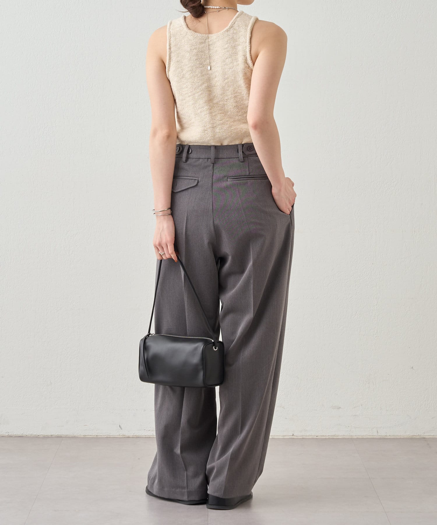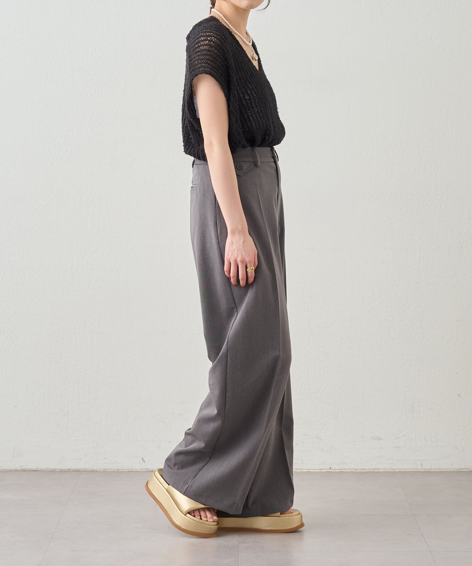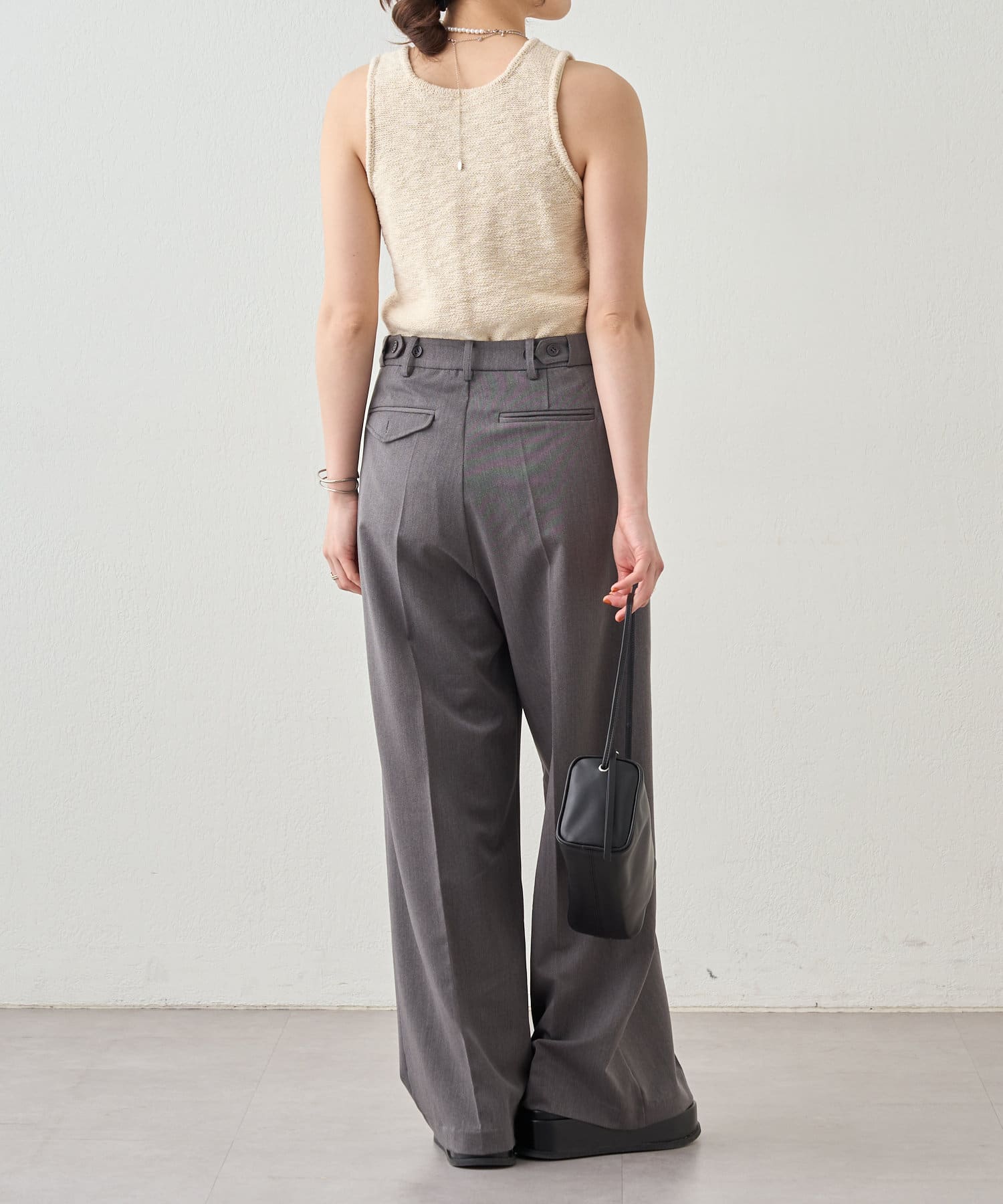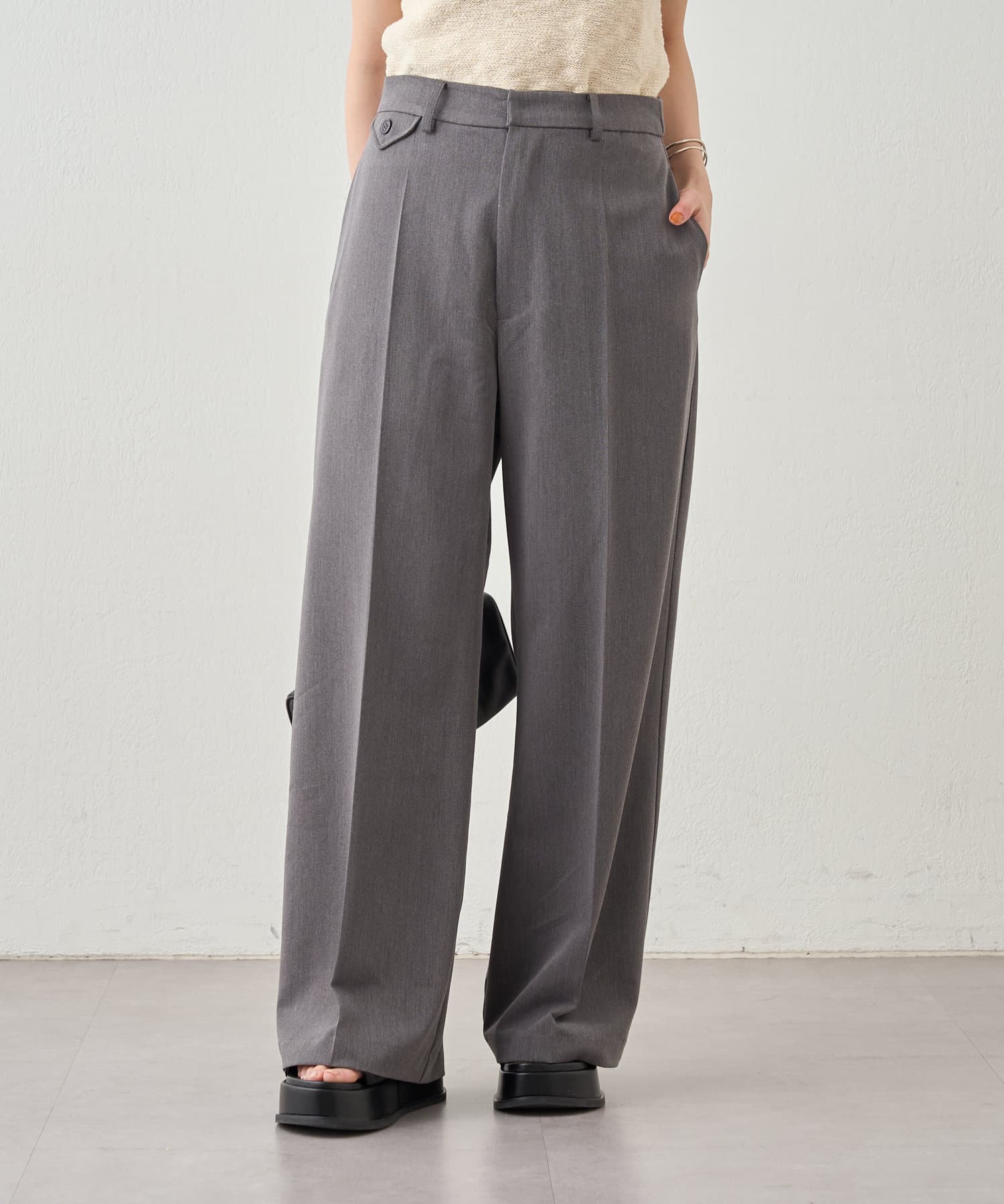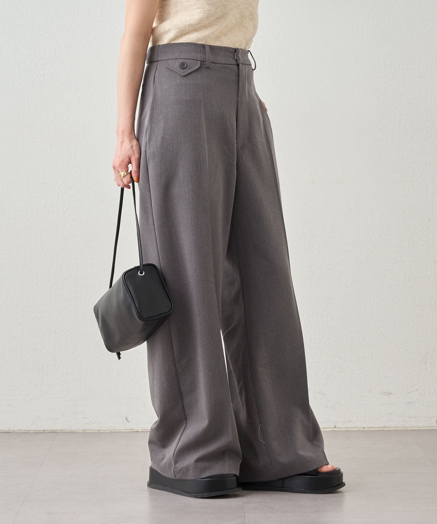 ON/OFFどちらにも着て頂けるようにワイドシルエットなスラックス。