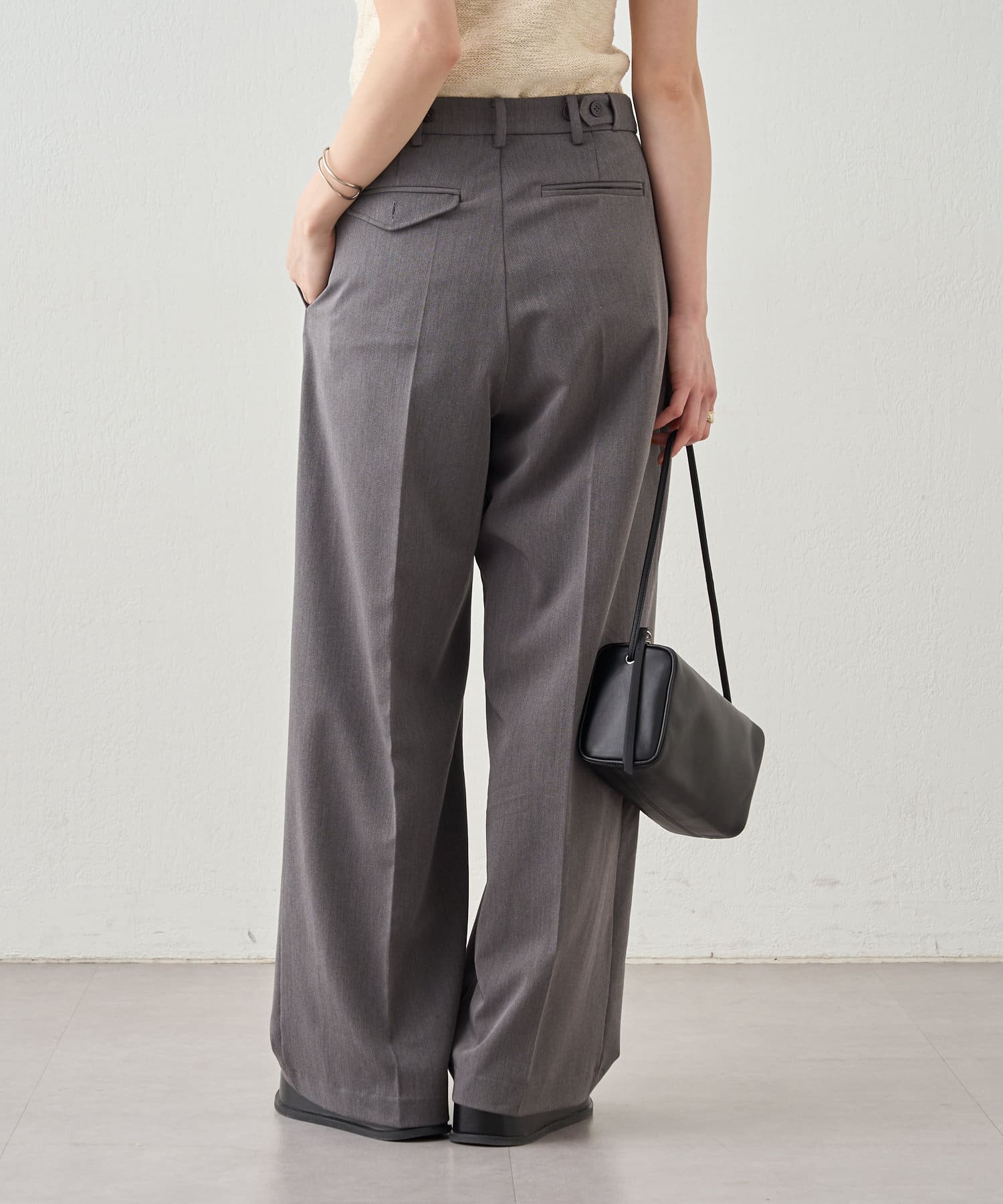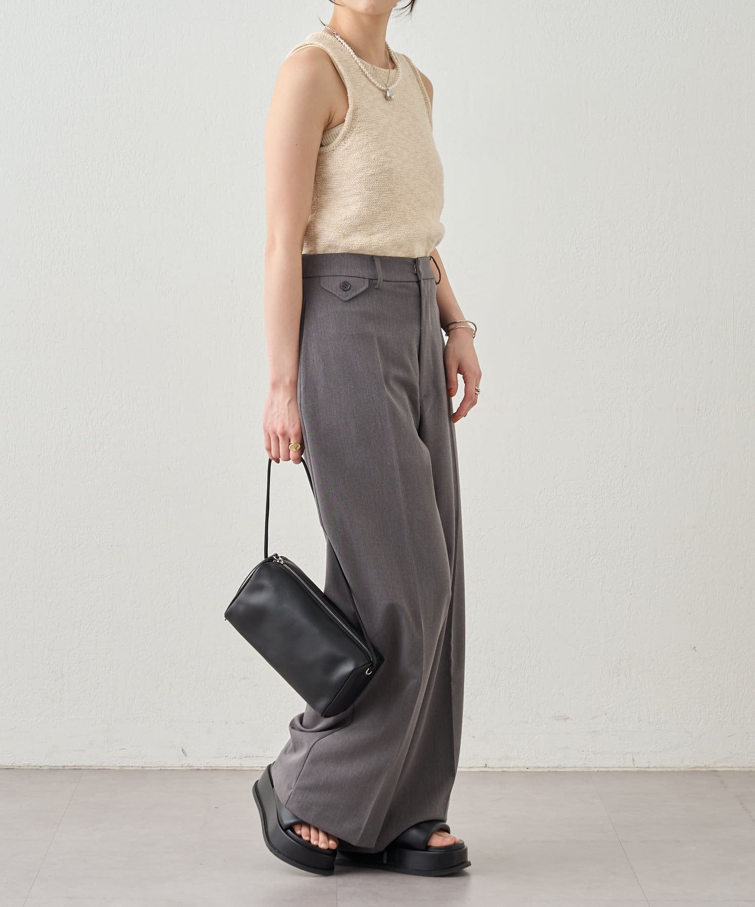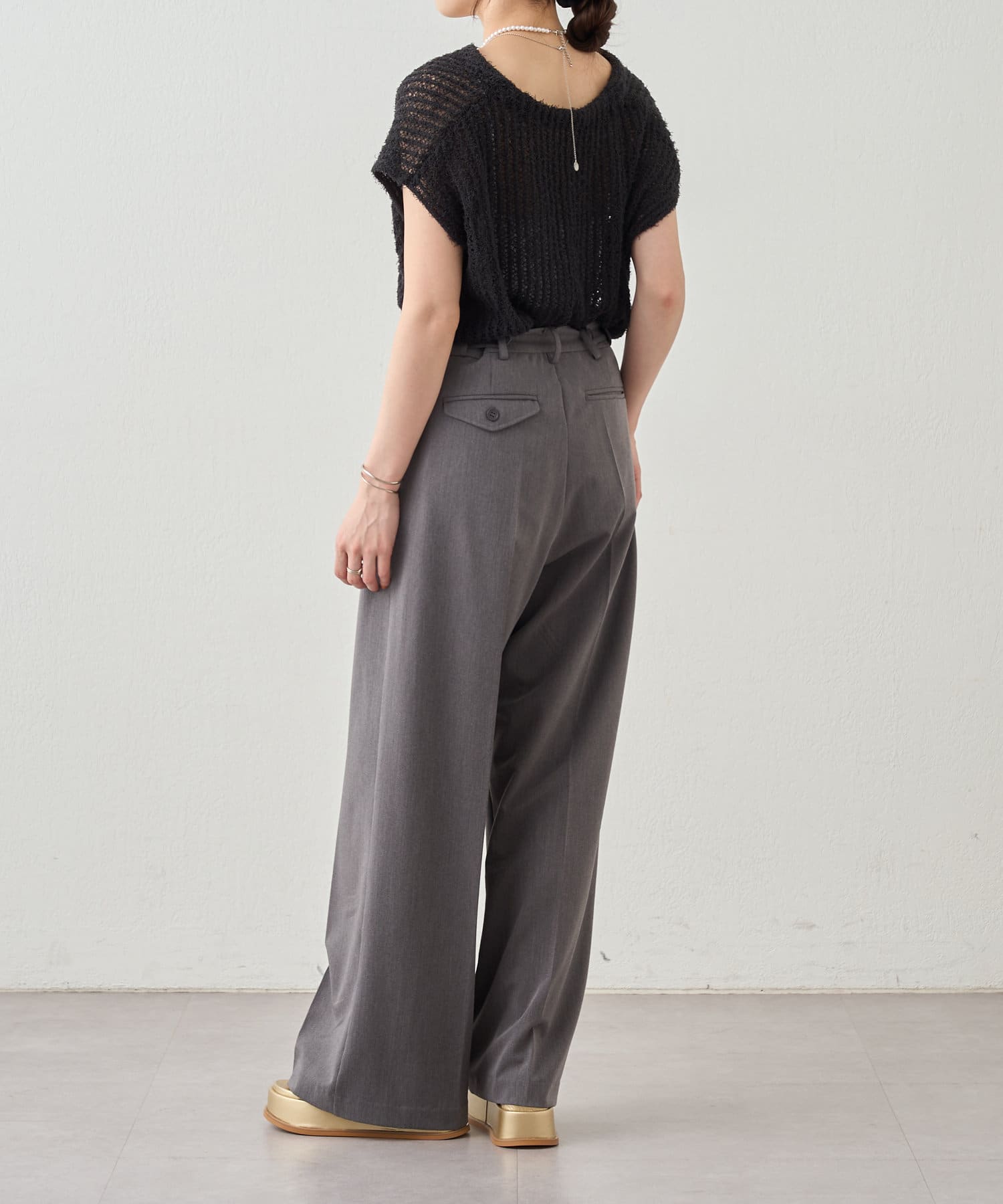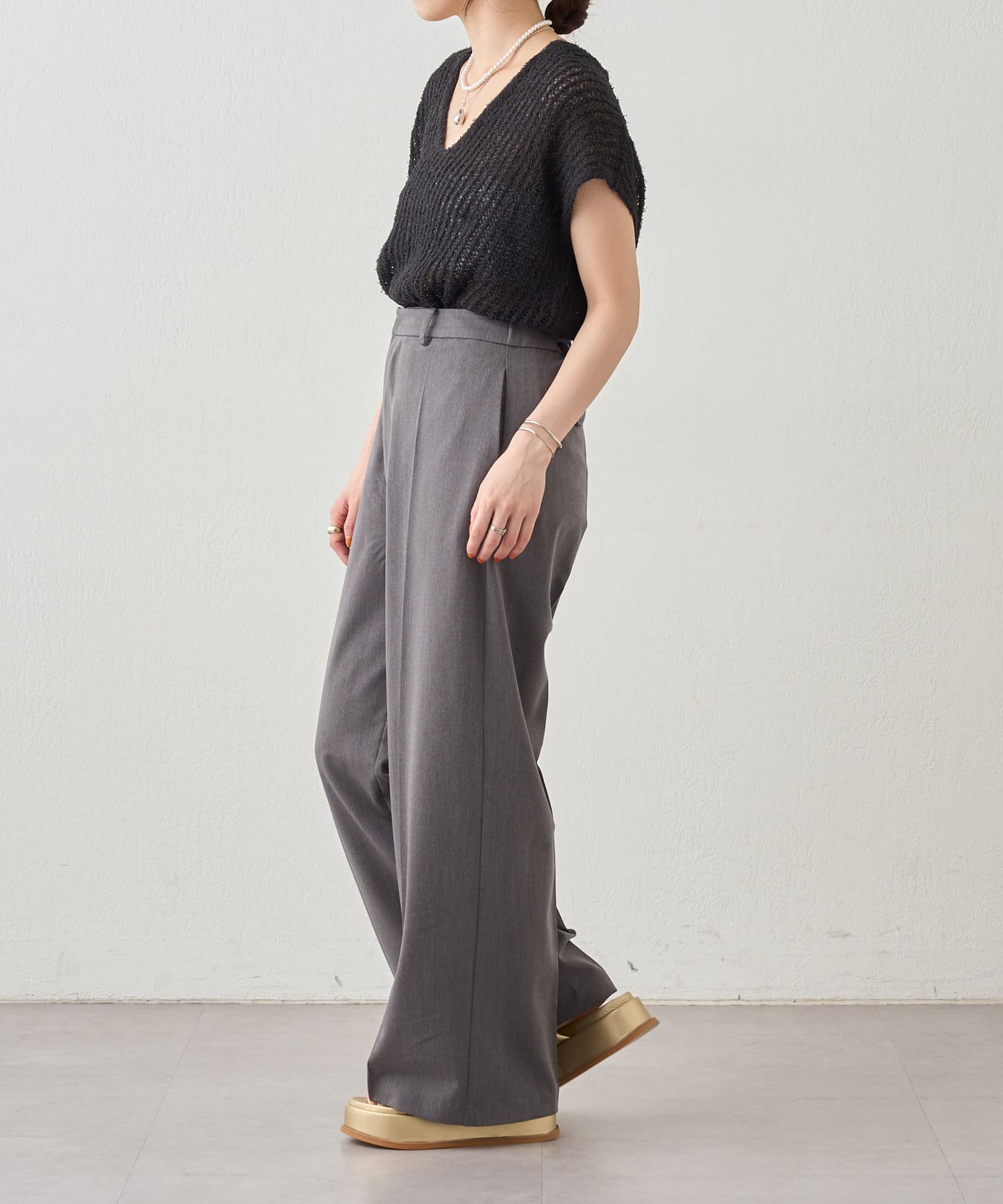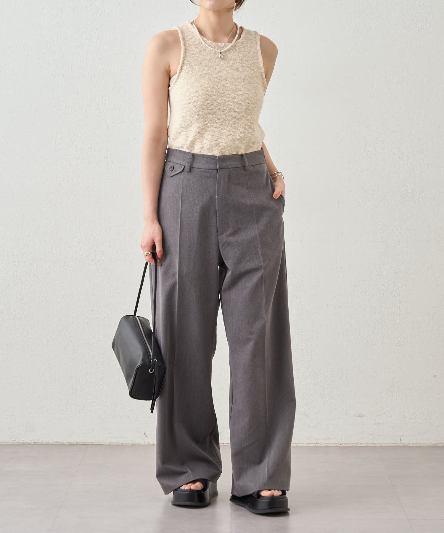 ON/OFFどちらにも着て頂けるようにワイドシルエットなスラックス。