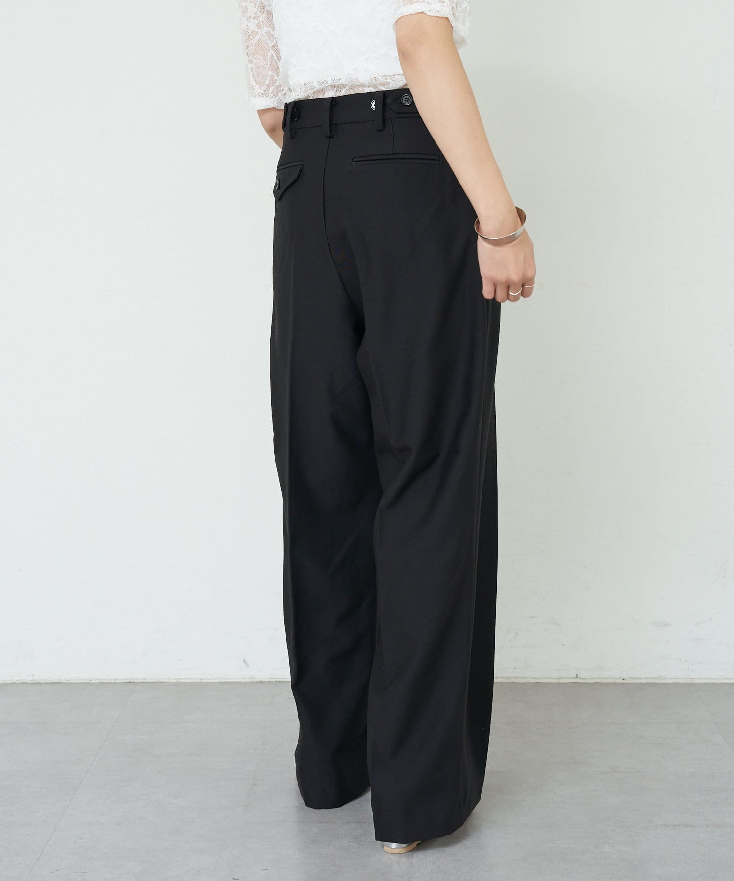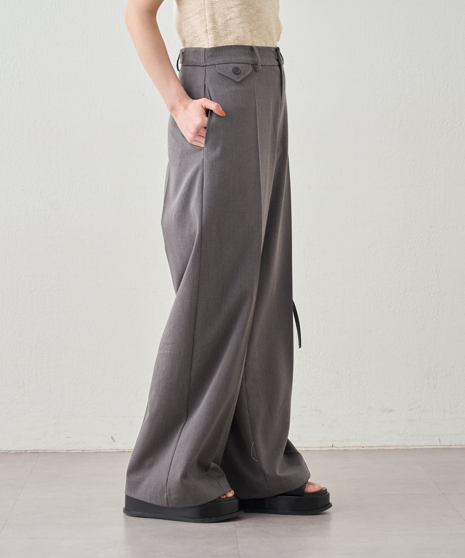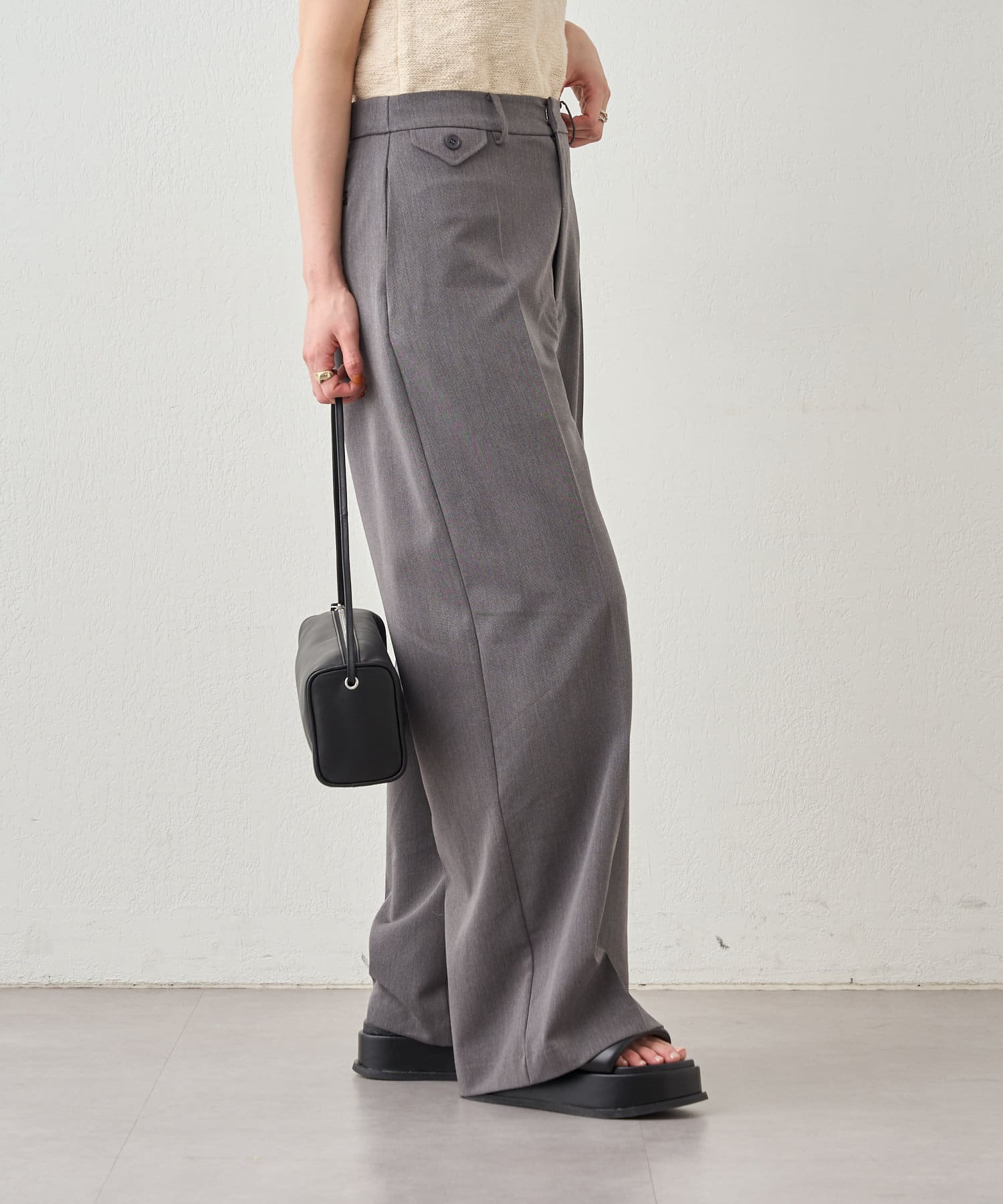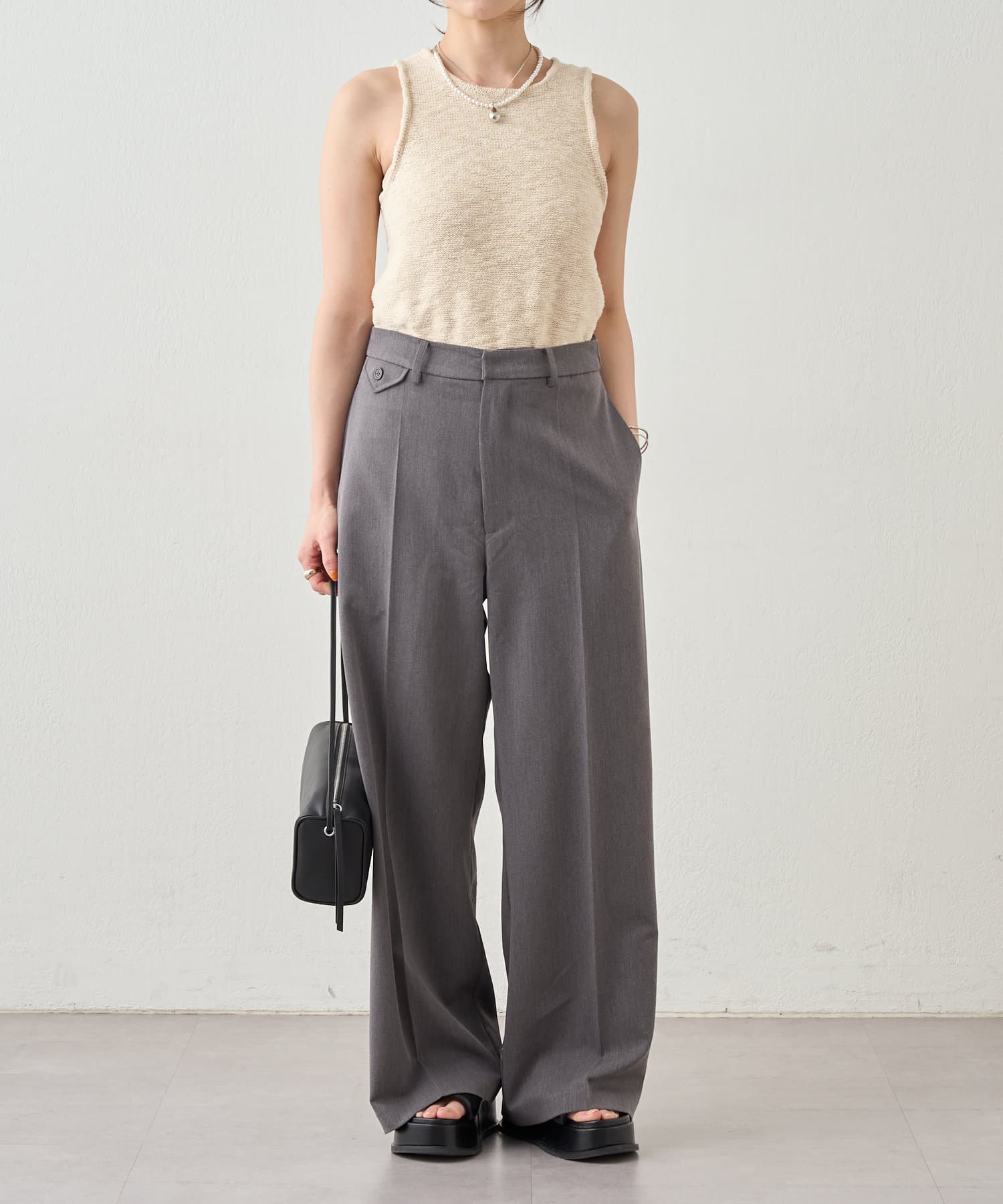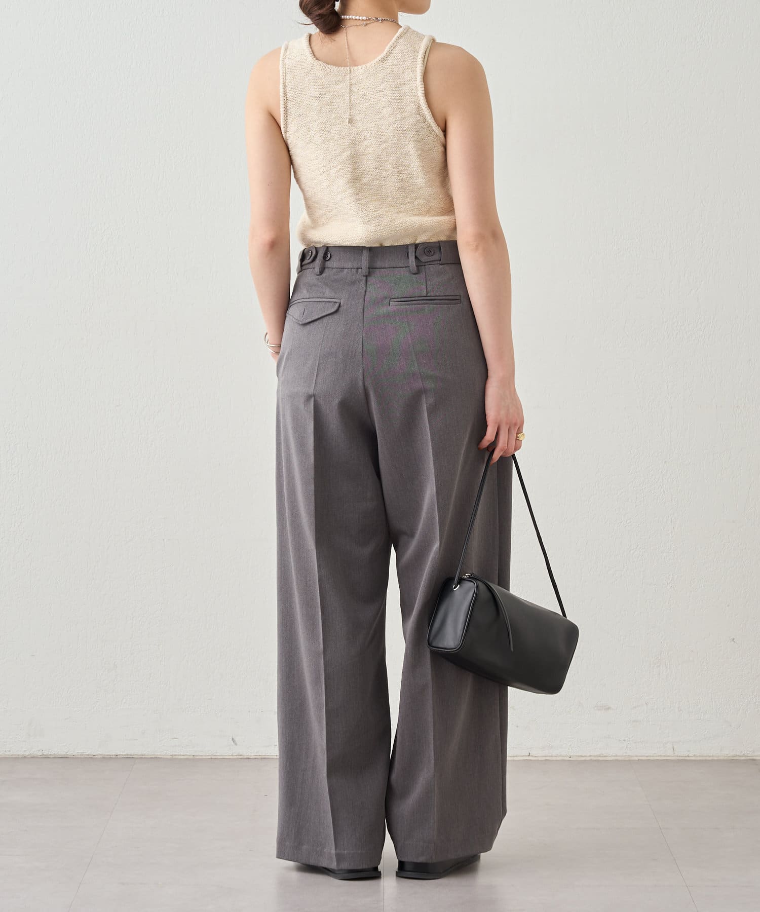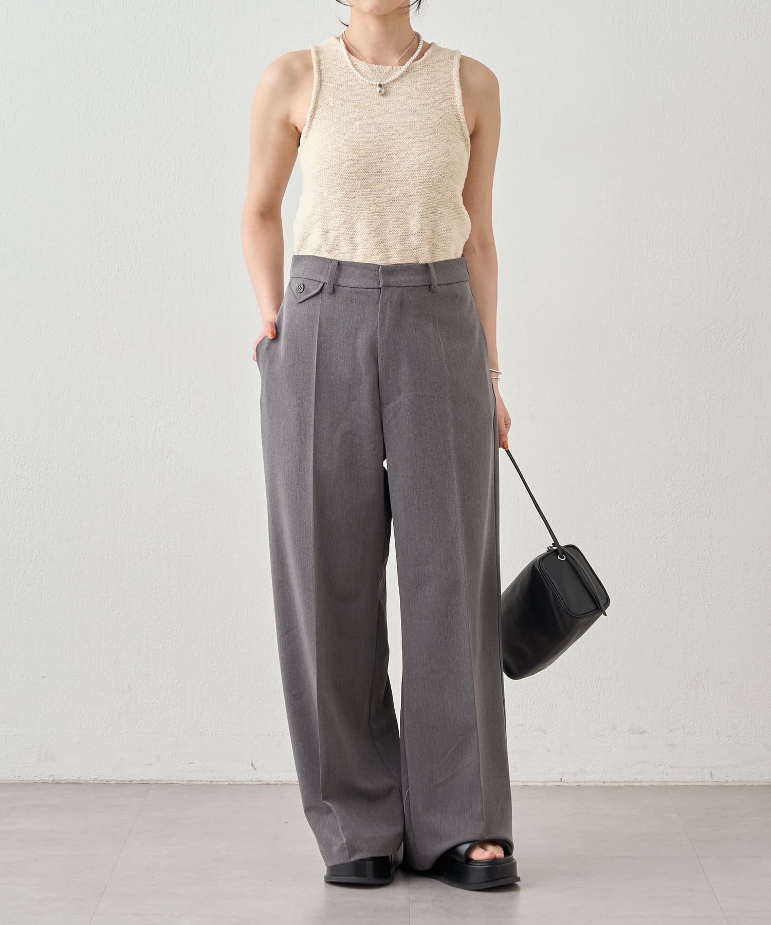 ON/OFFどちらにも着て頂けるようにワイドシルエットなスラックス。