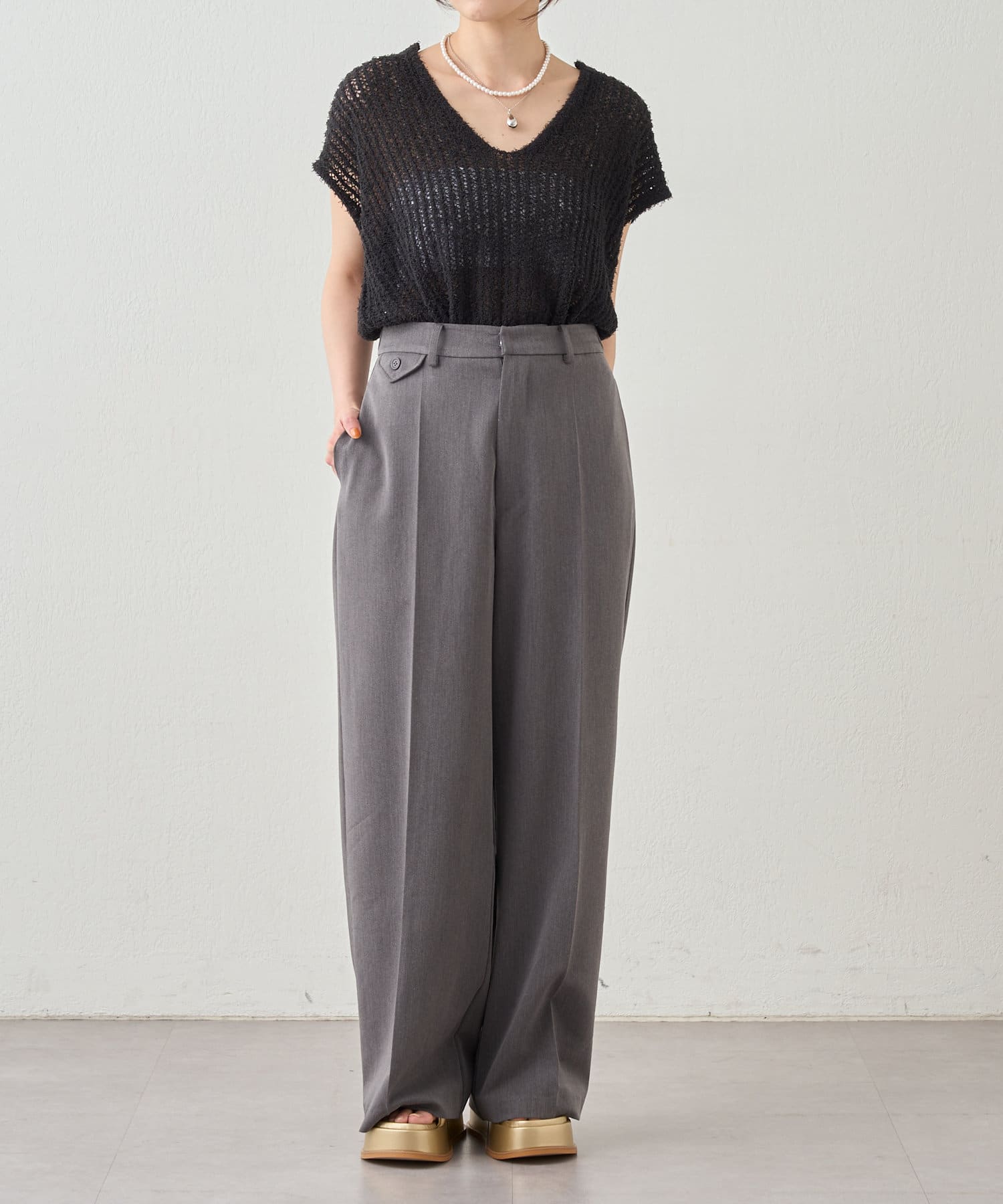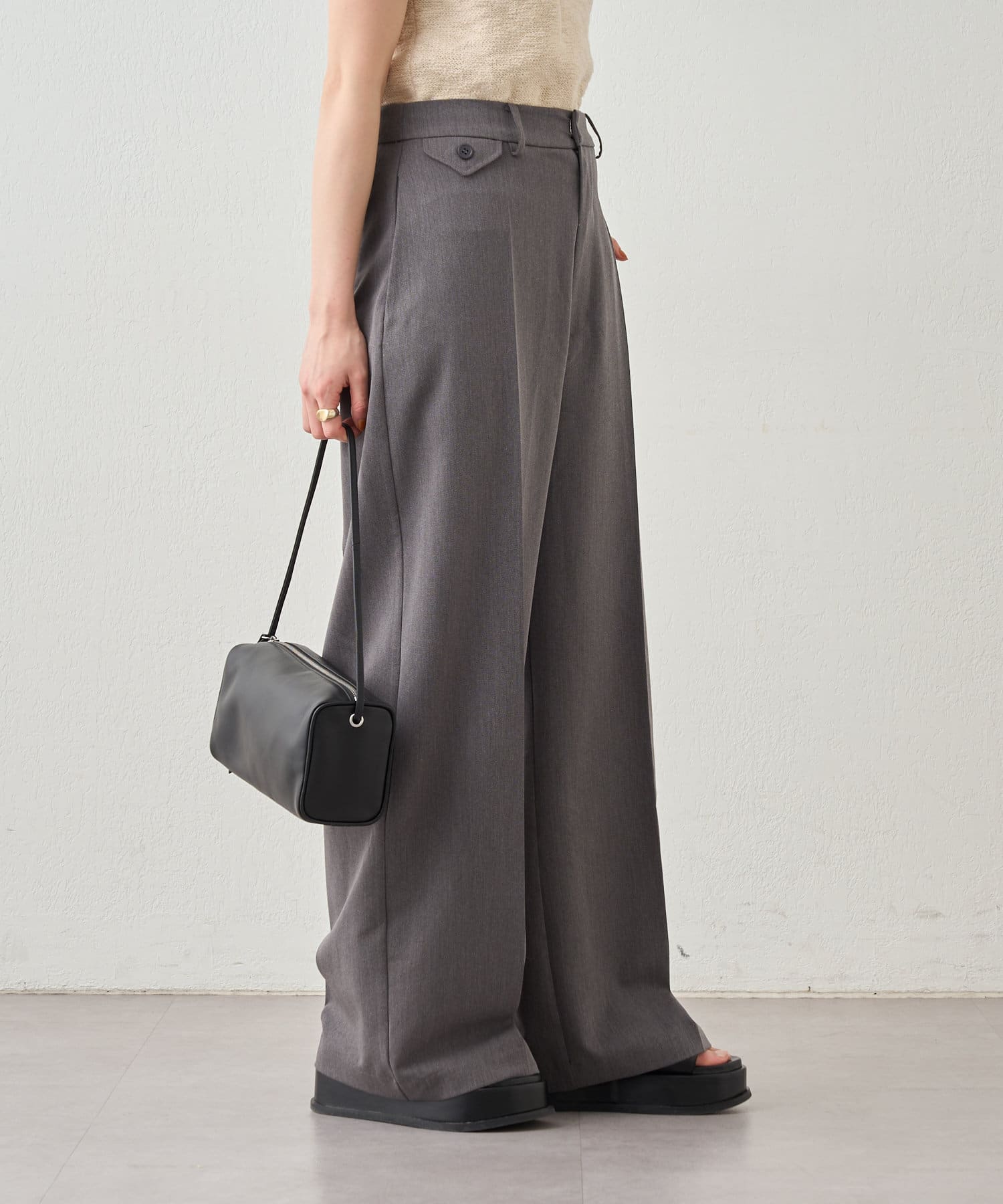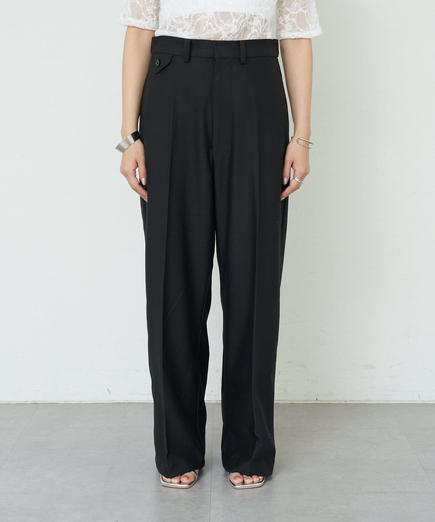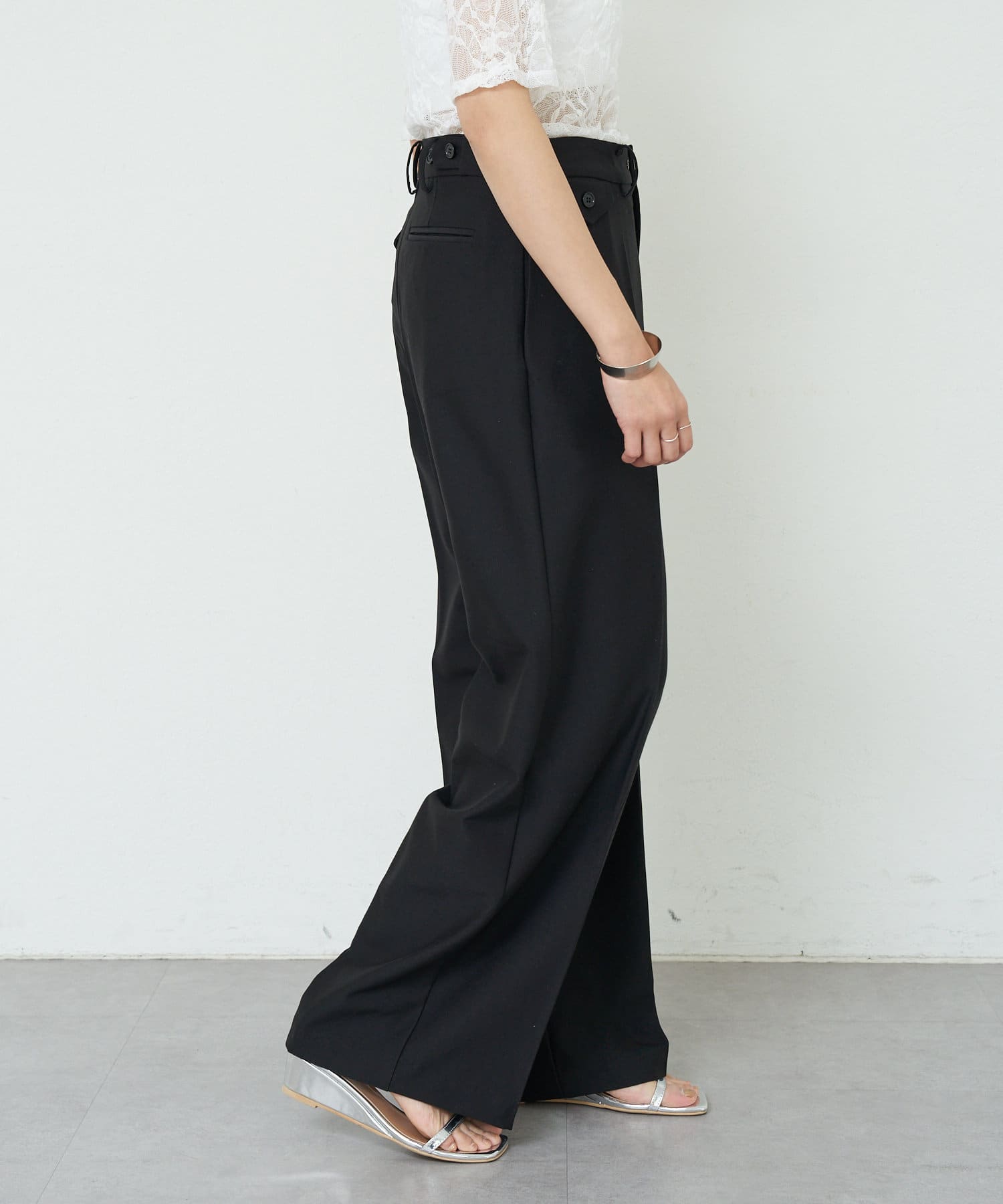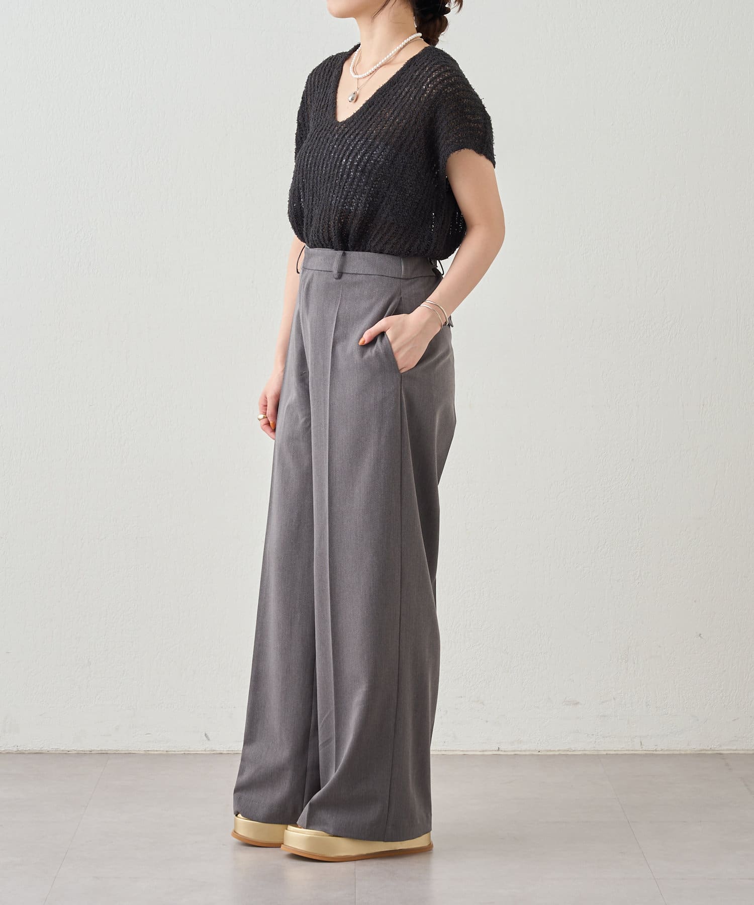 ON/OFFどちらにも着て頂けるようにワイドシルエットなスラックス。