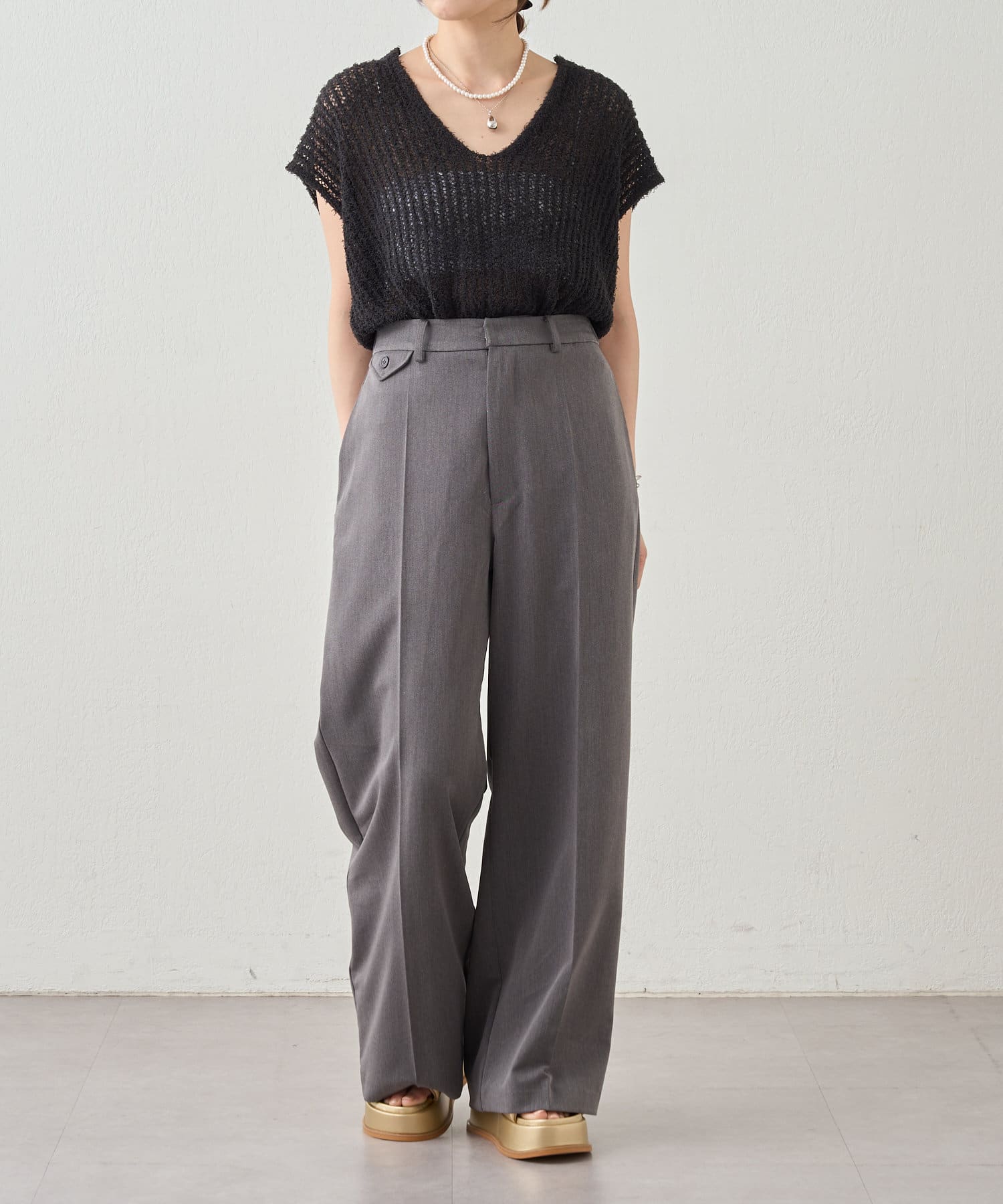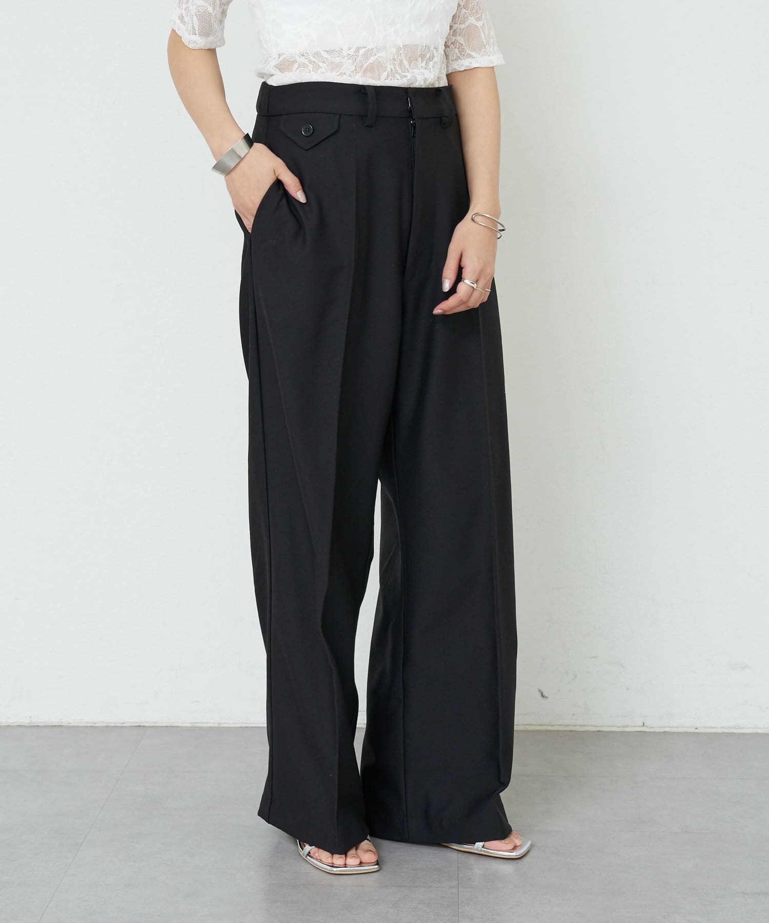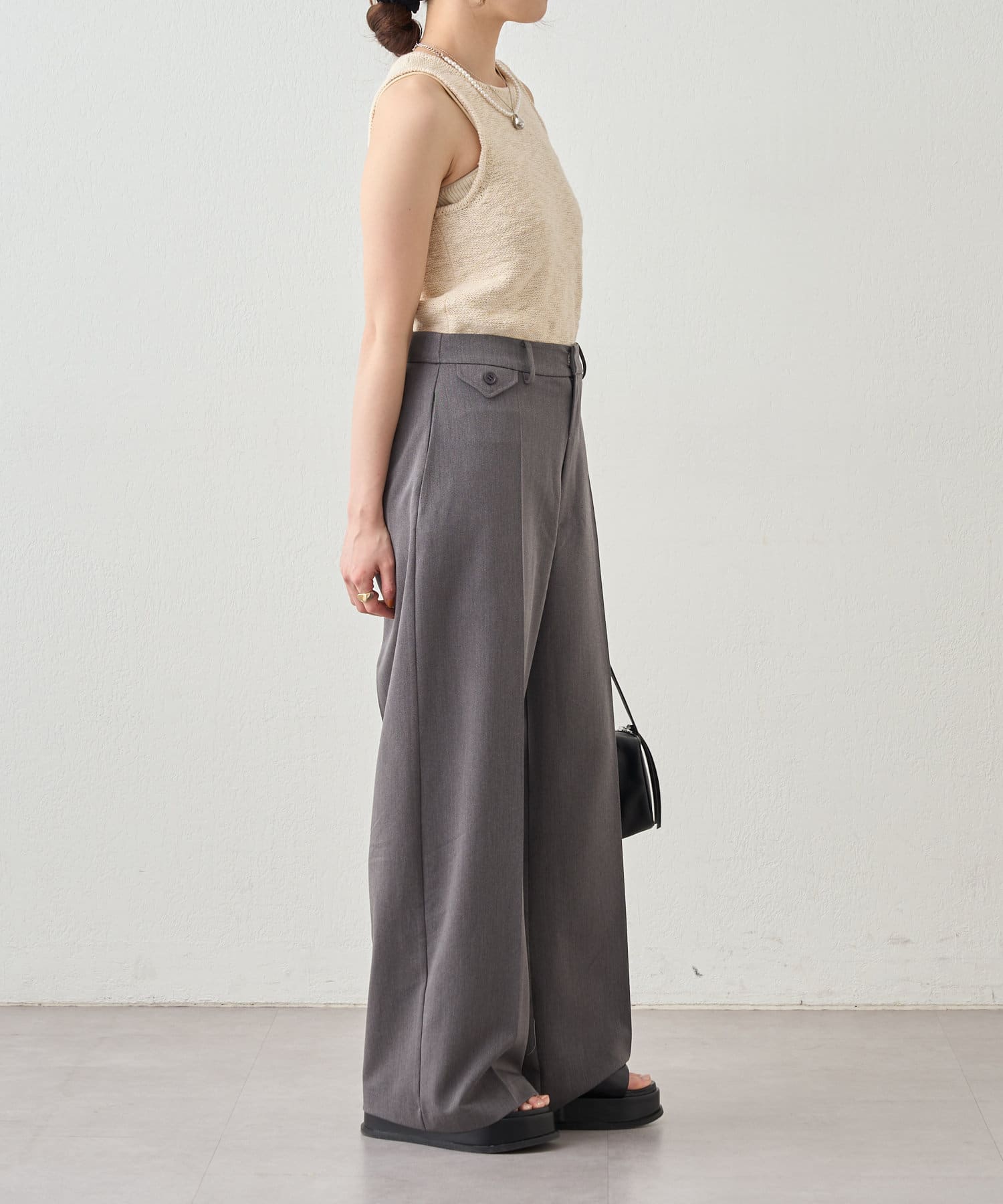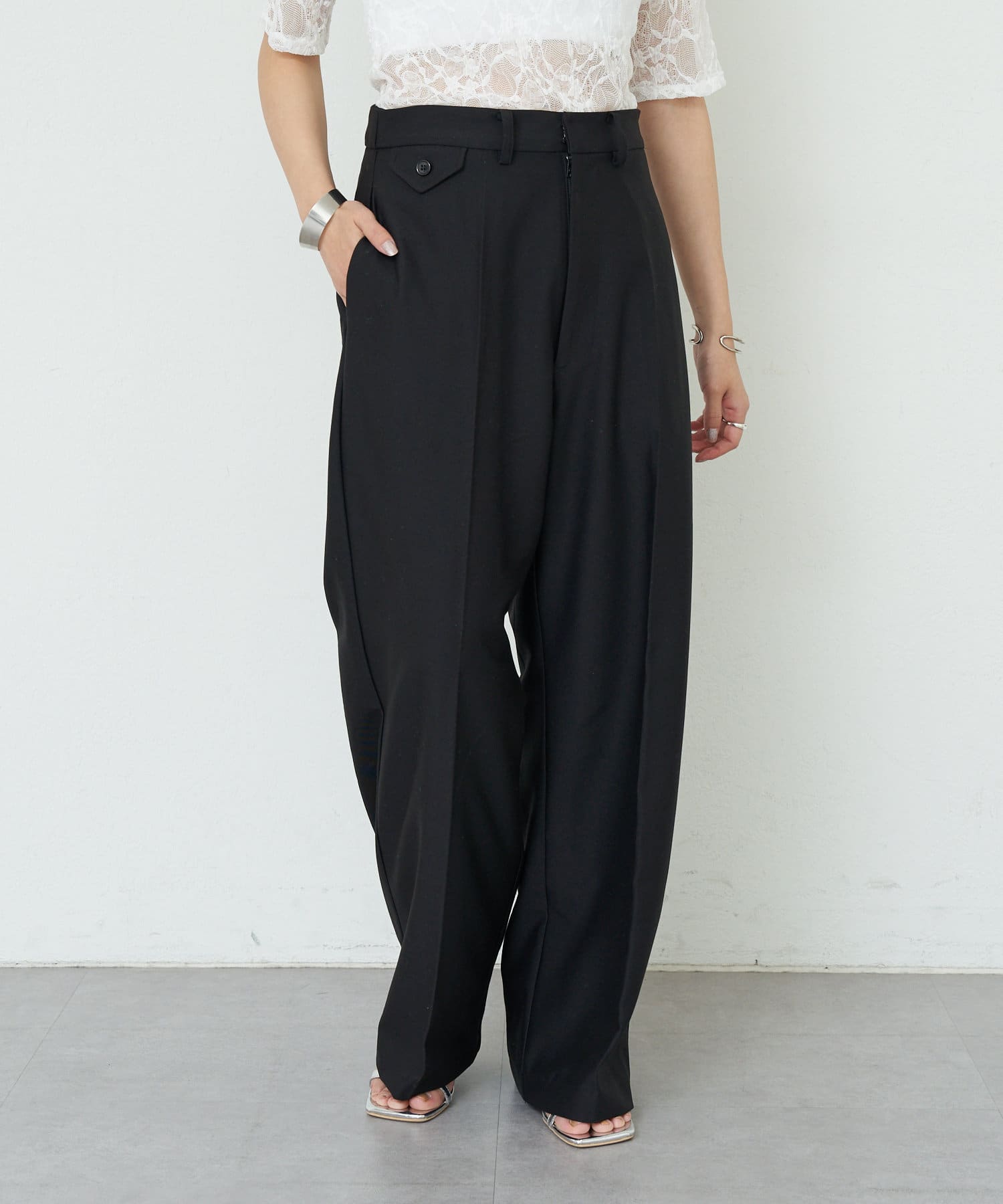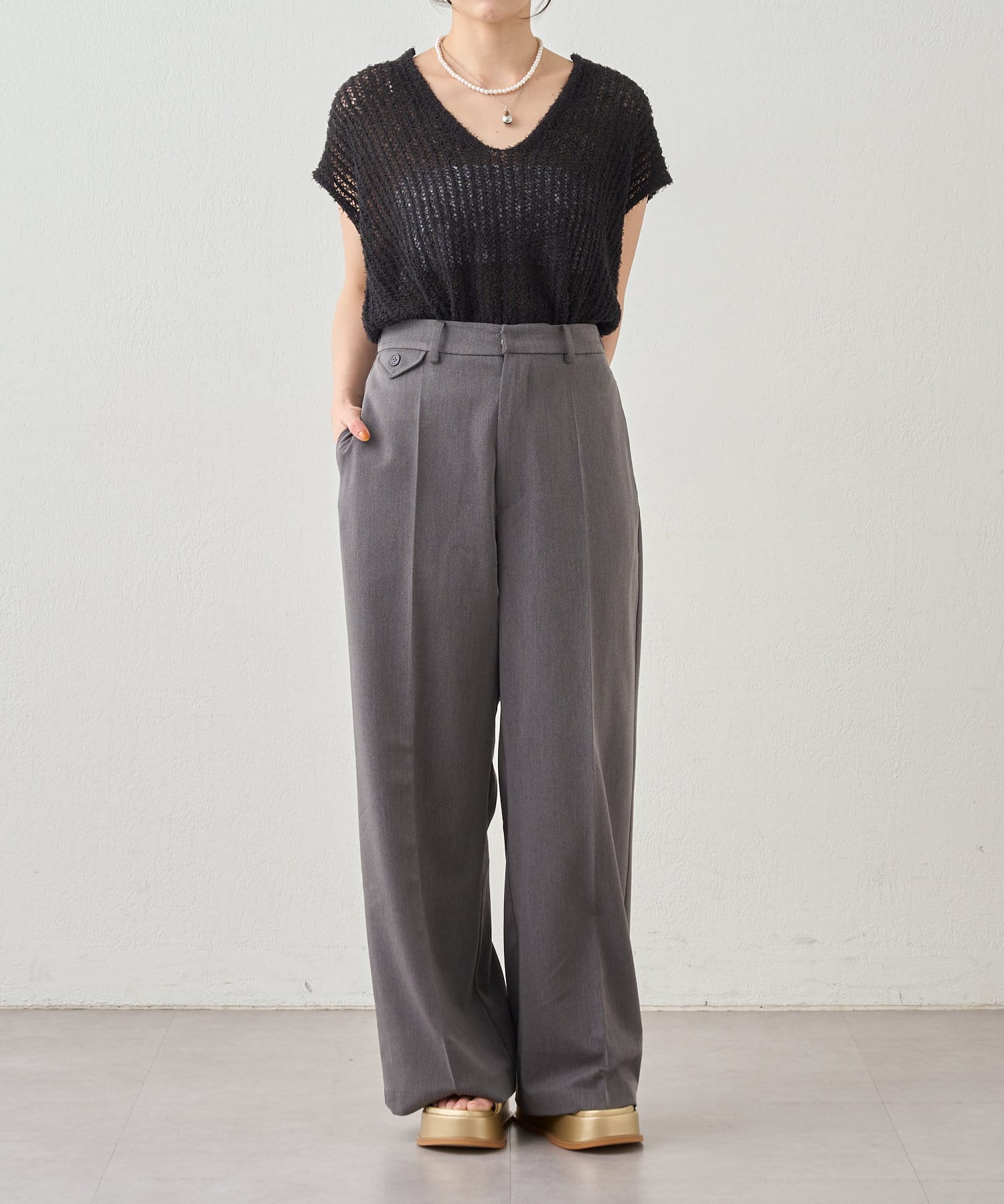 ON/OFFどちらにも着て頂けるようにワイドシルエットなスラックス。