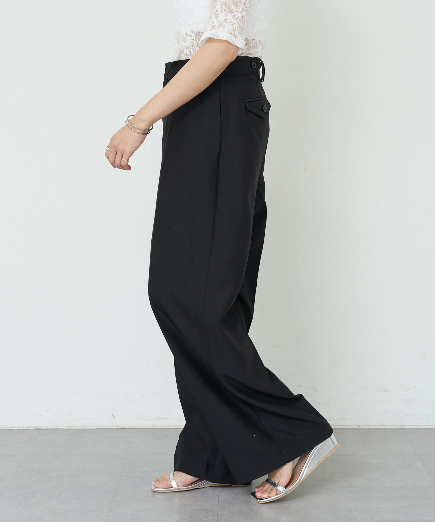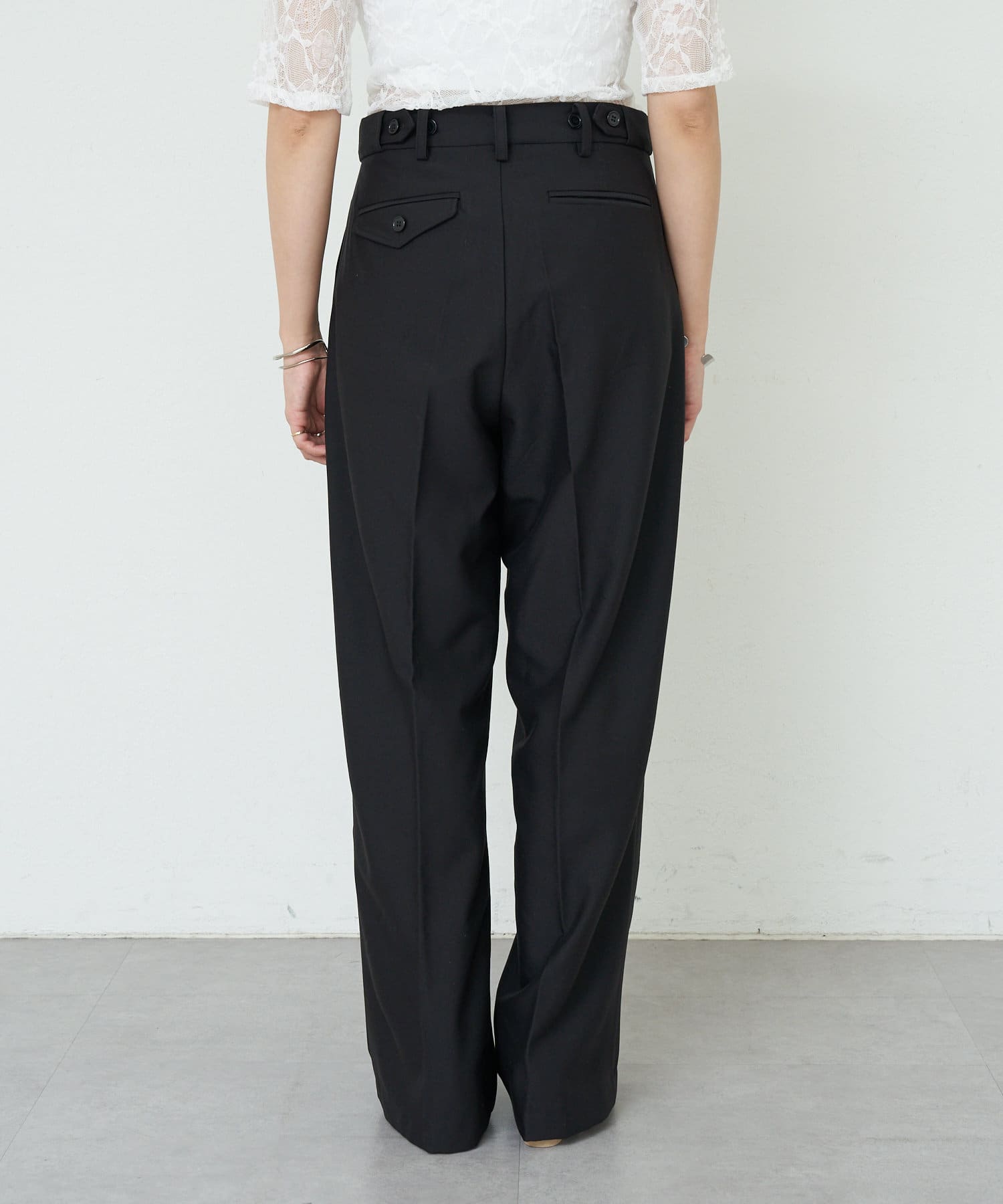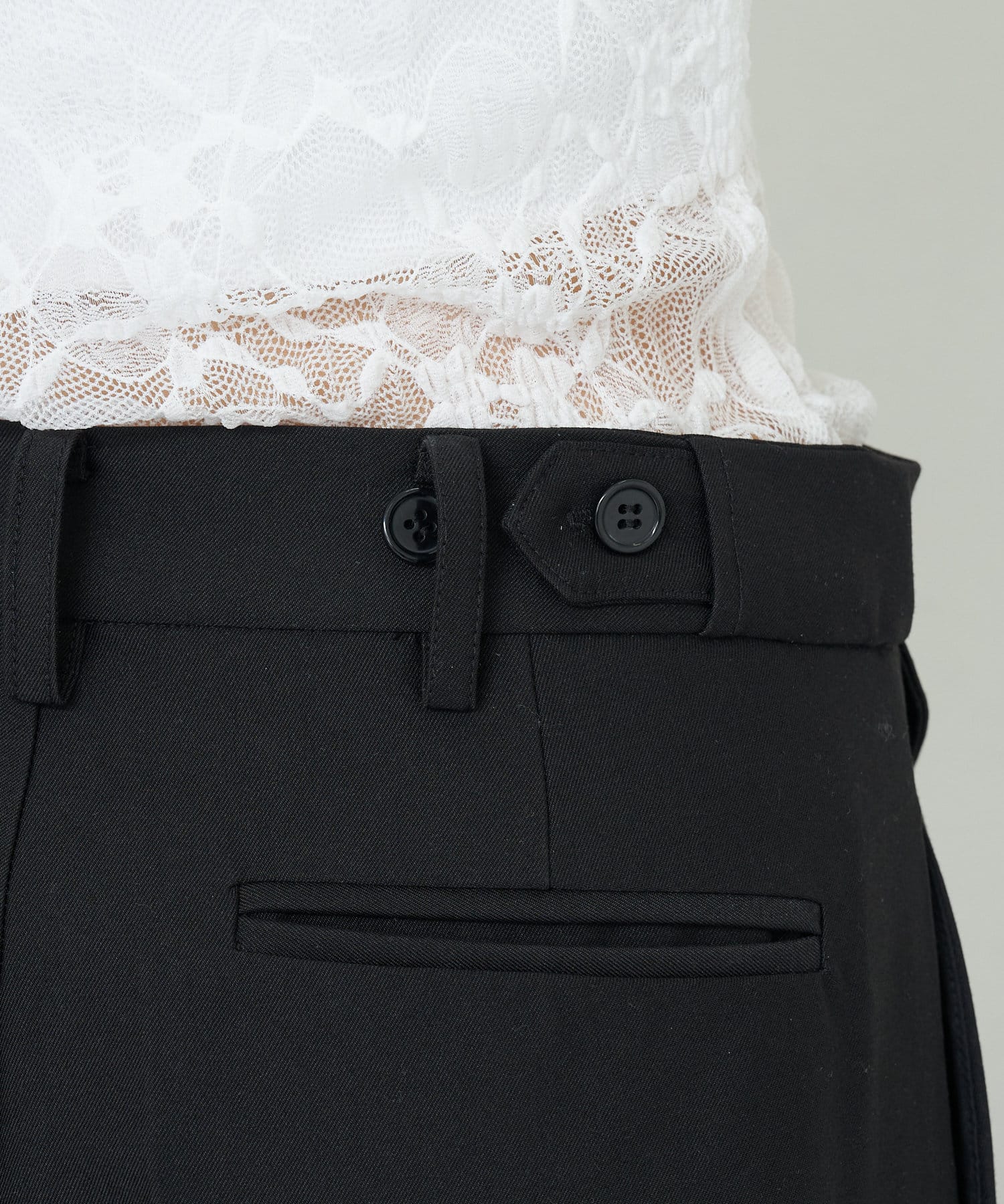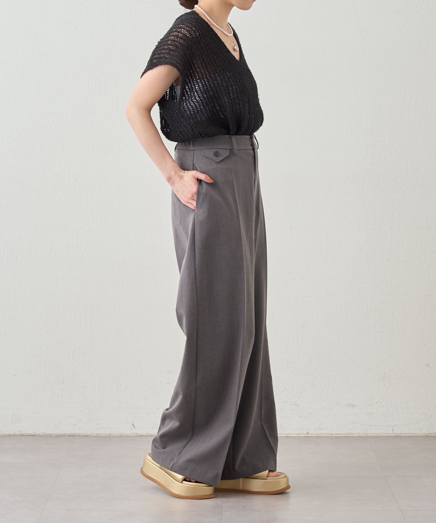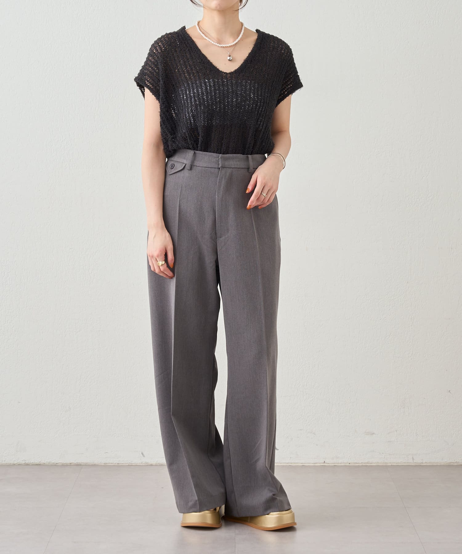 ON/OFFどちらにも着て頂けるようにワイドシルエットなスラックス。