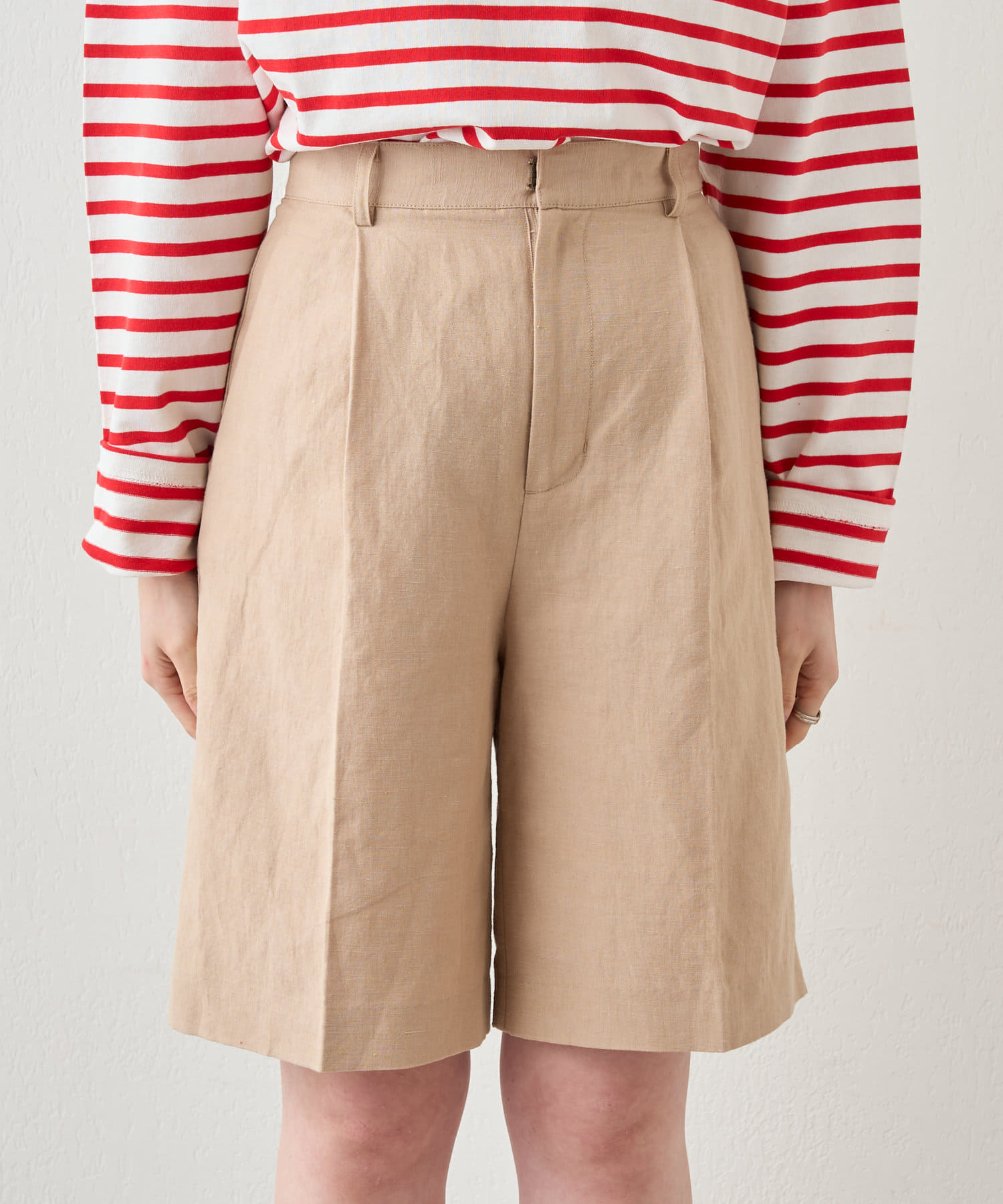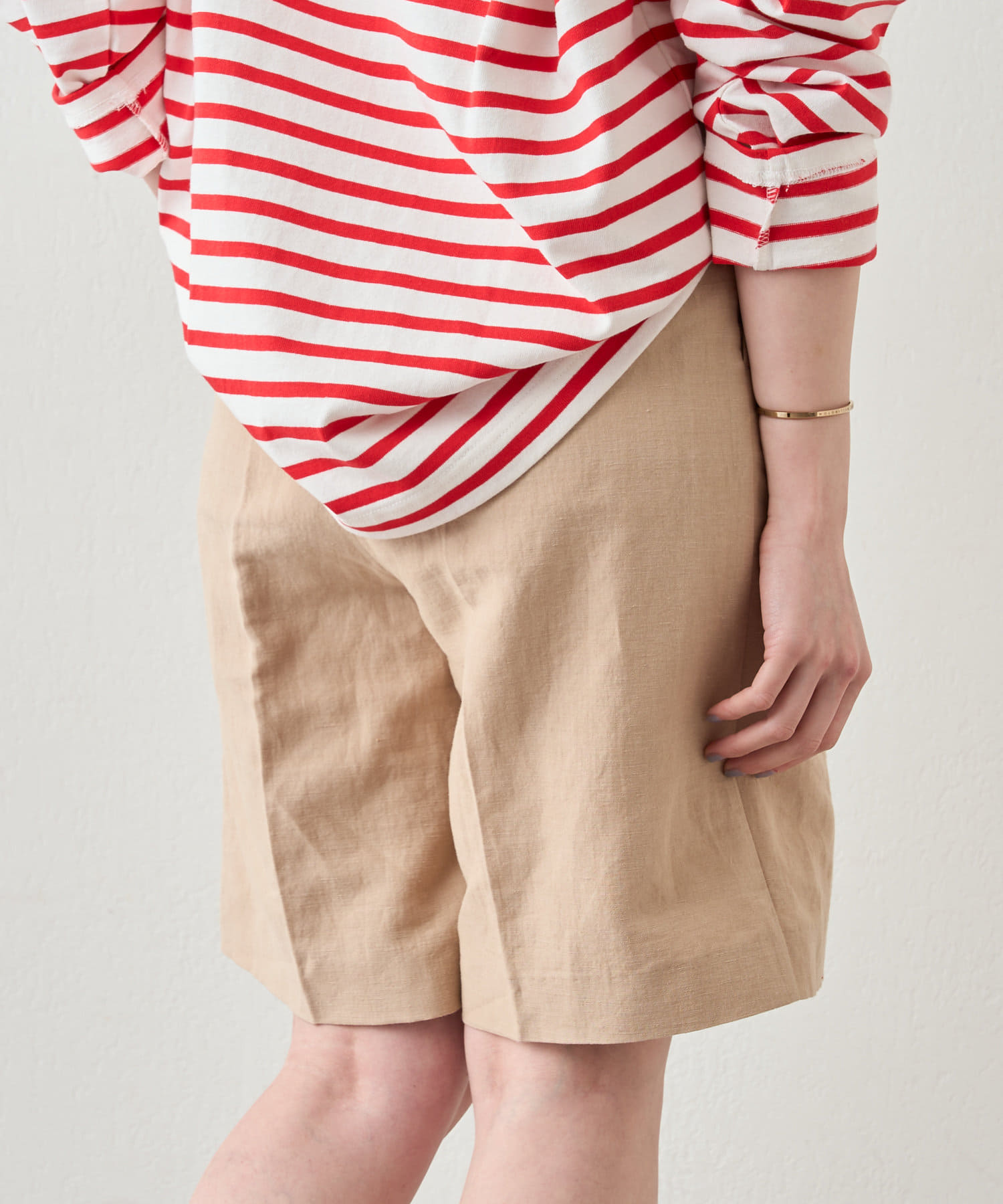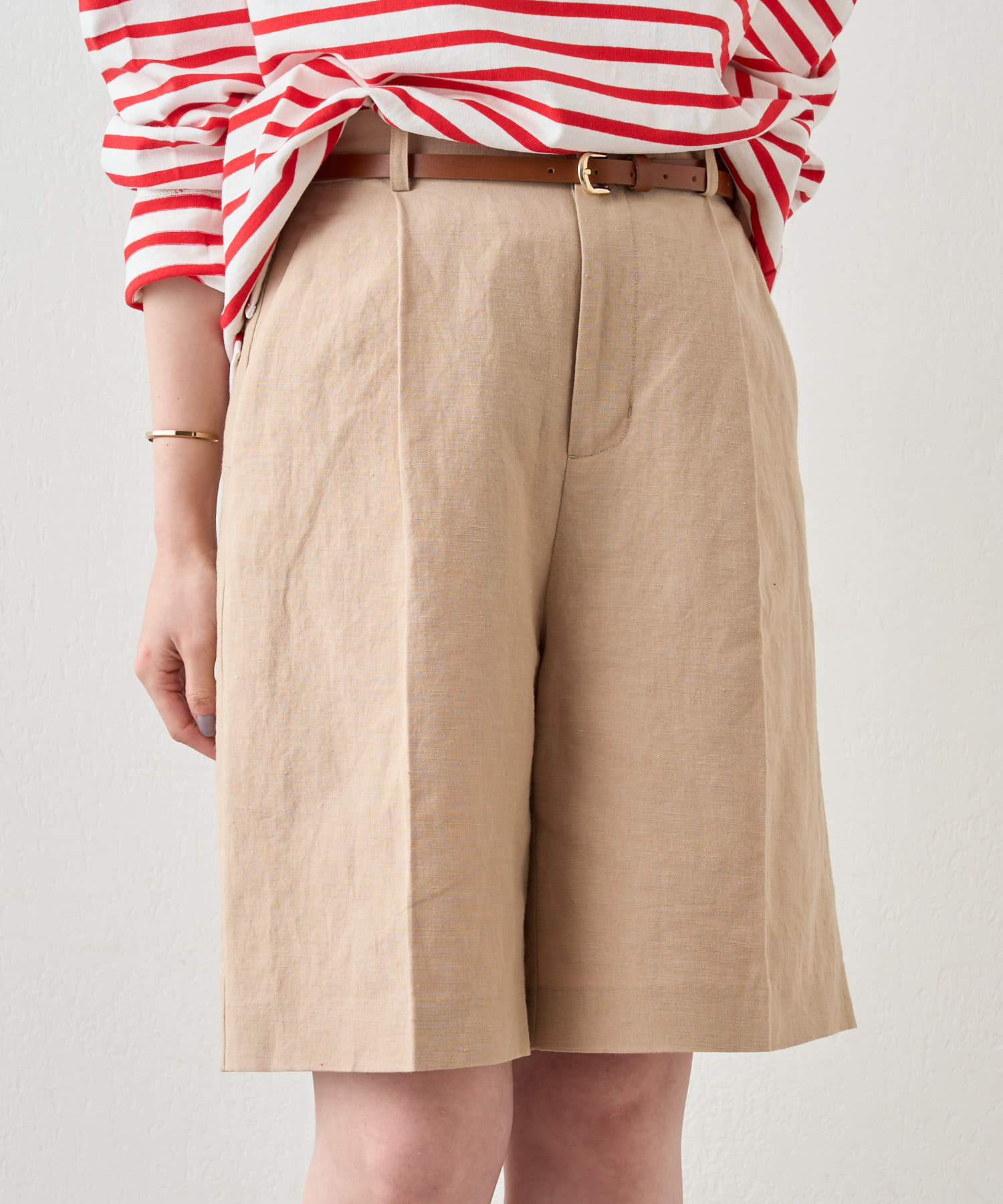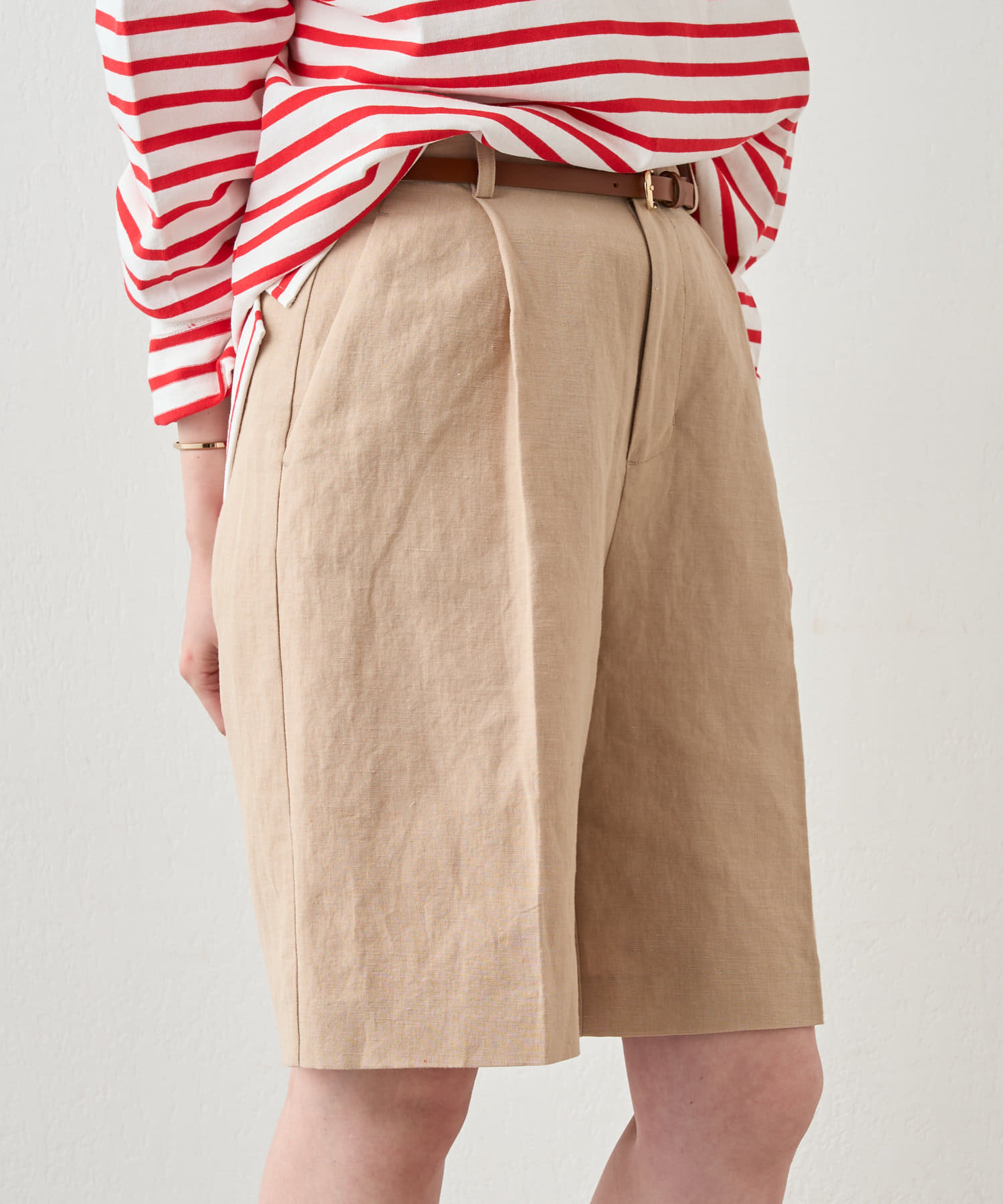 夏に嬉しい、涼しい麻素材のハーフパンツ