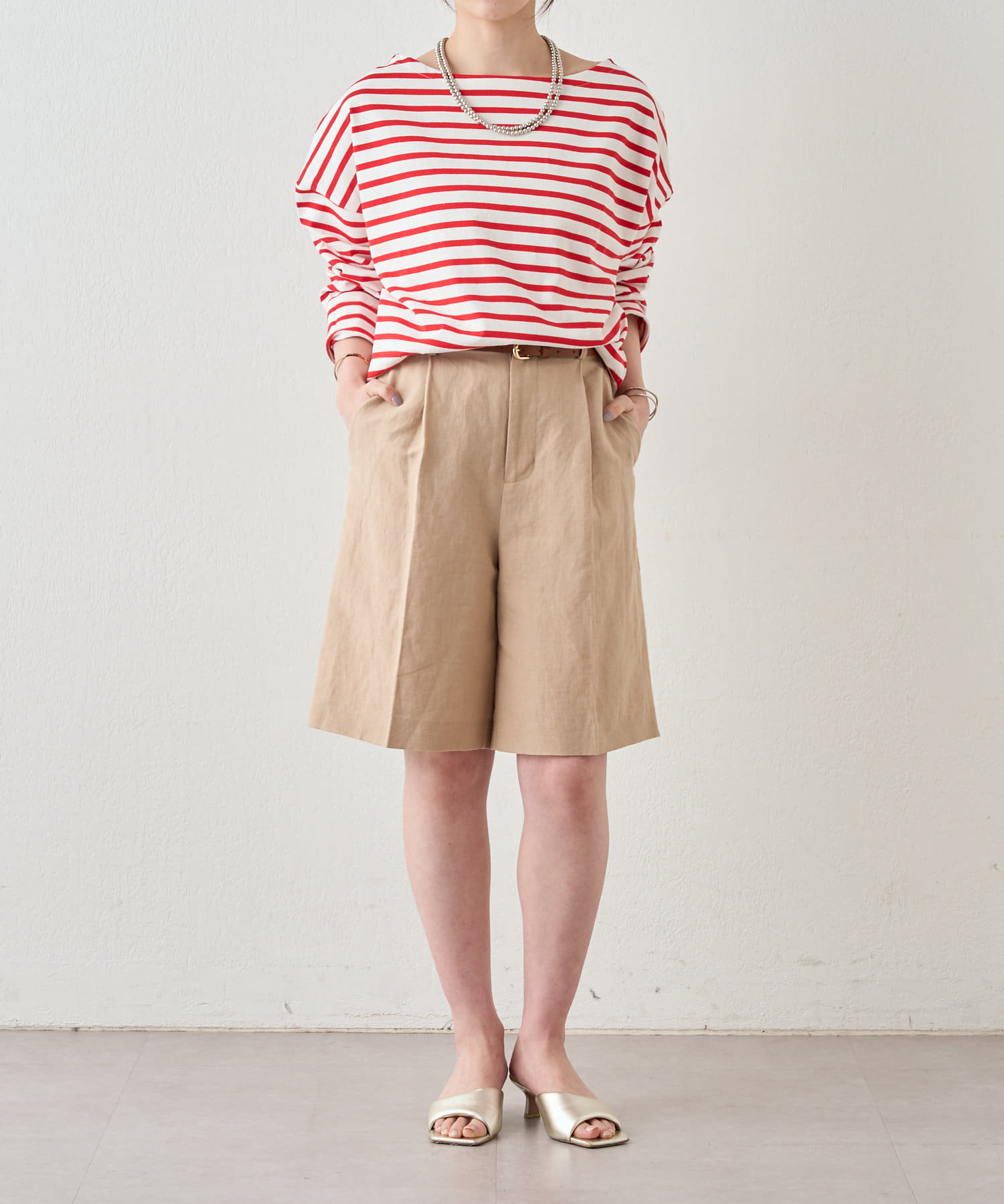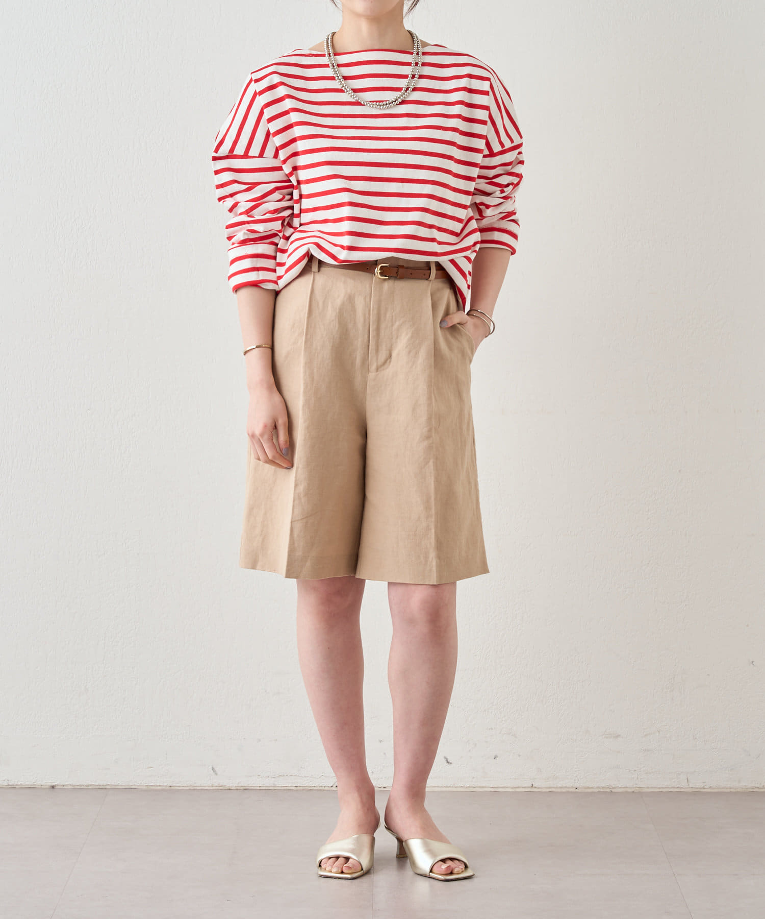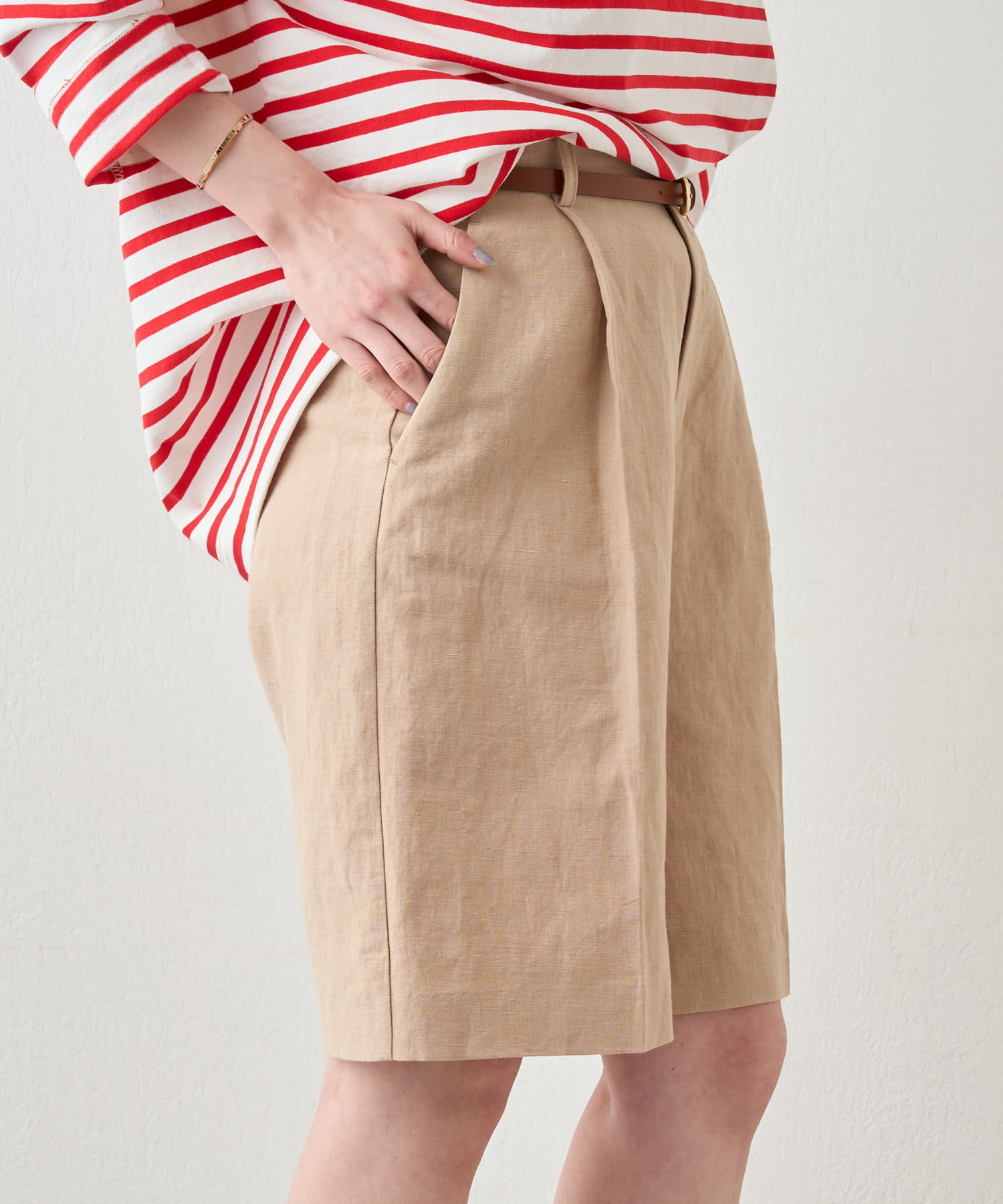夏に嬉しい、涼しい麻素材のハーフパンツ