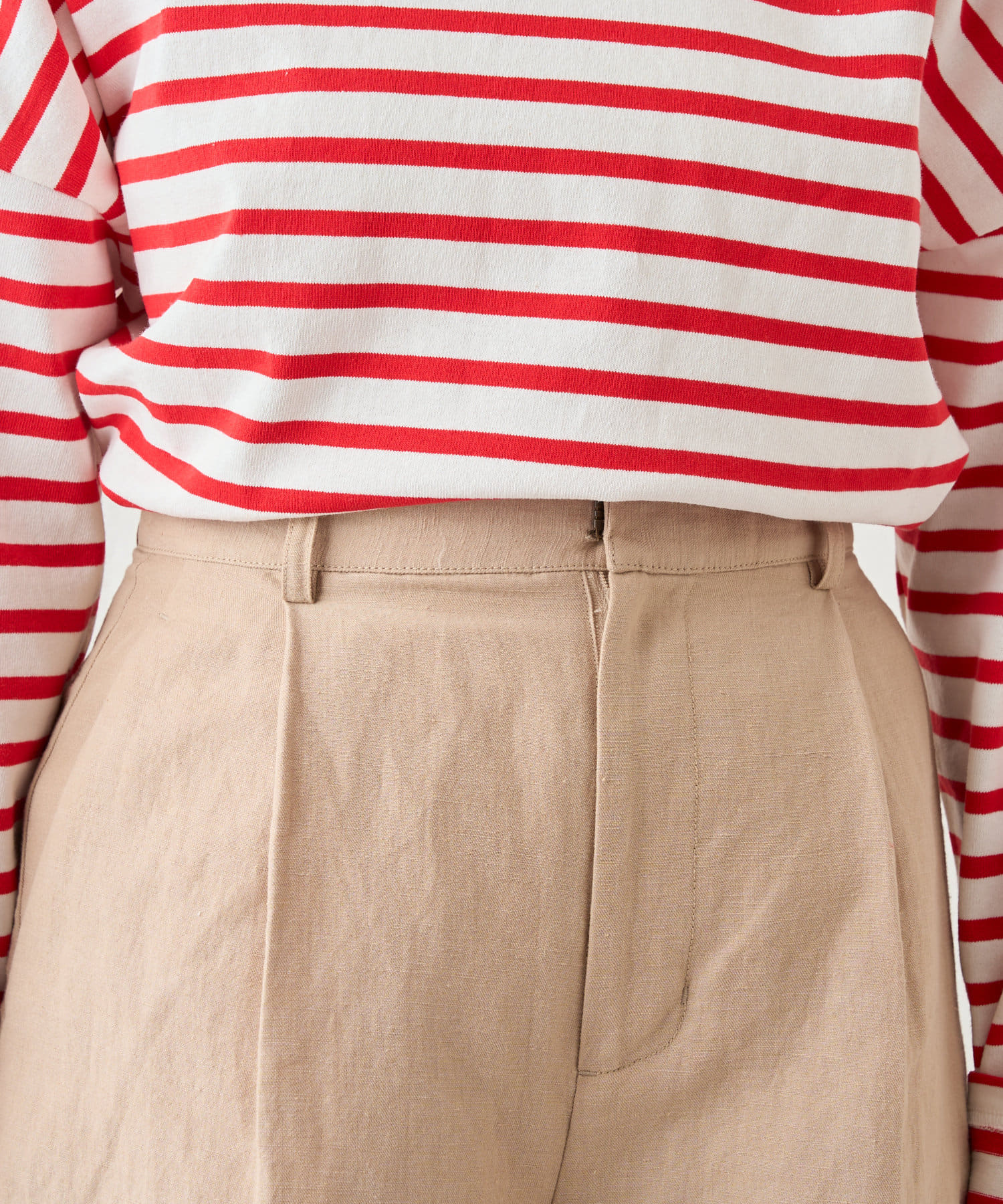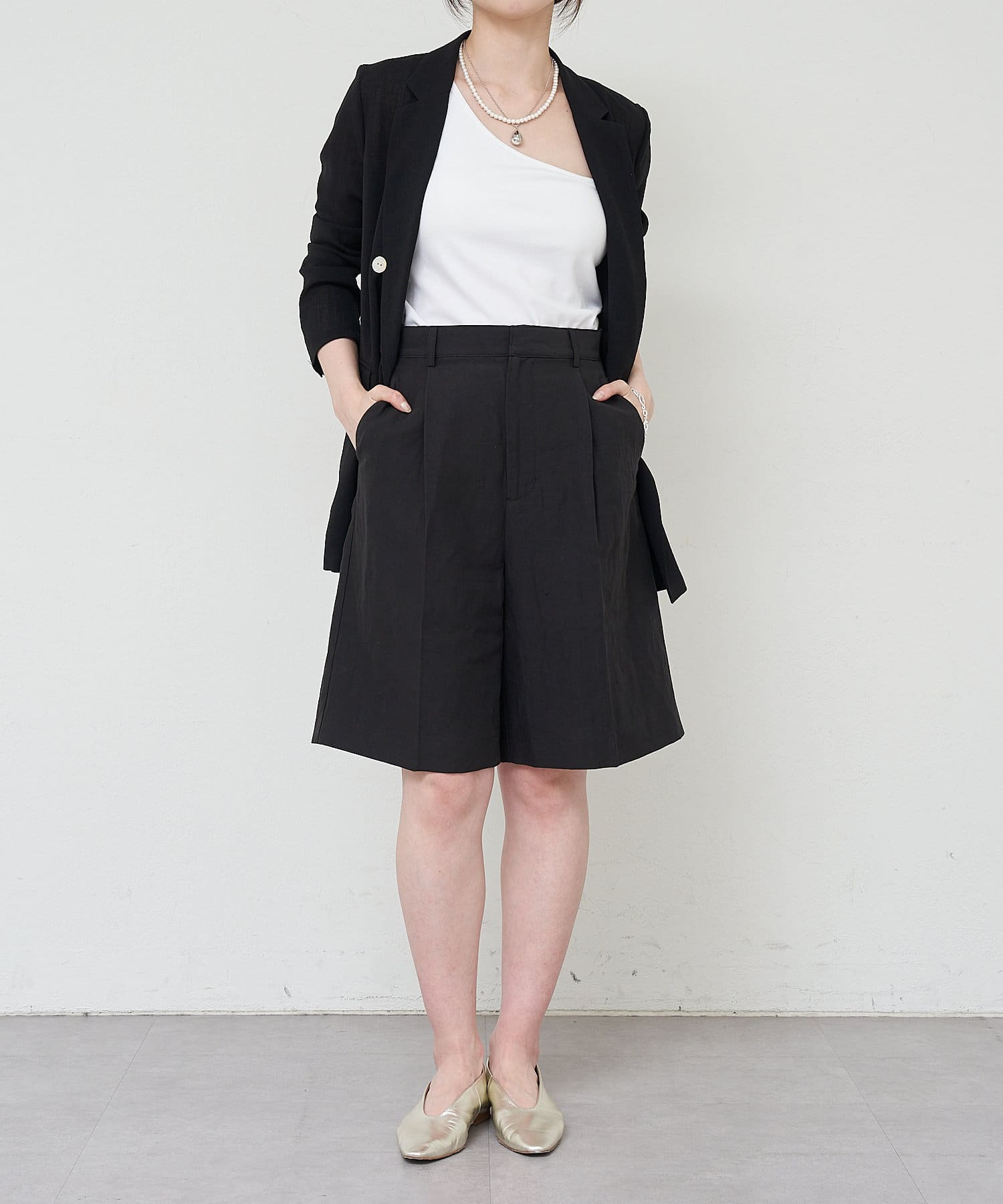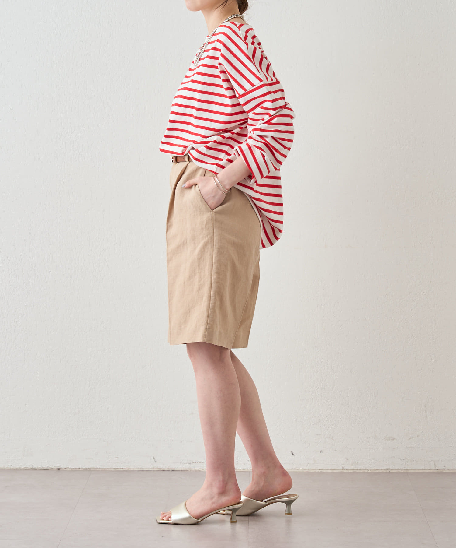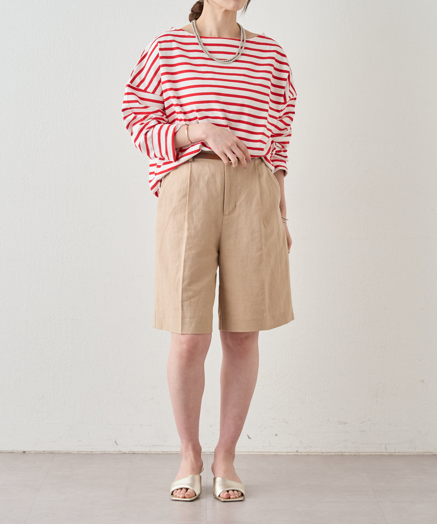 夏に嬉しい、涼しい麻素材のハーフパンツ