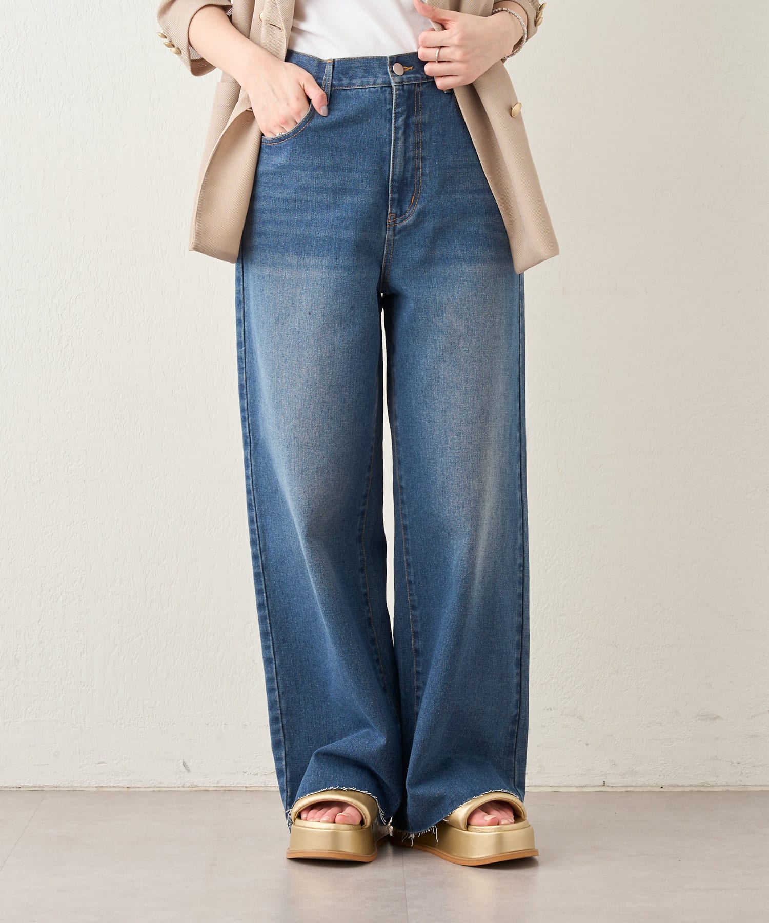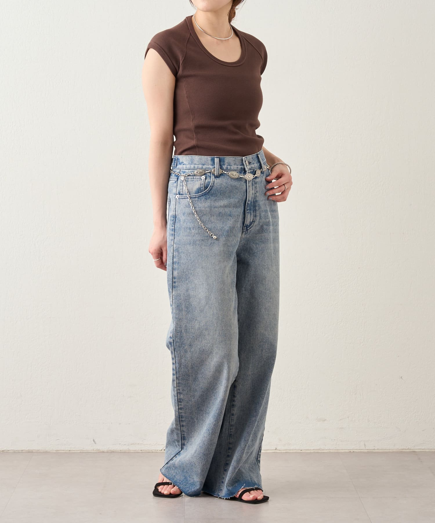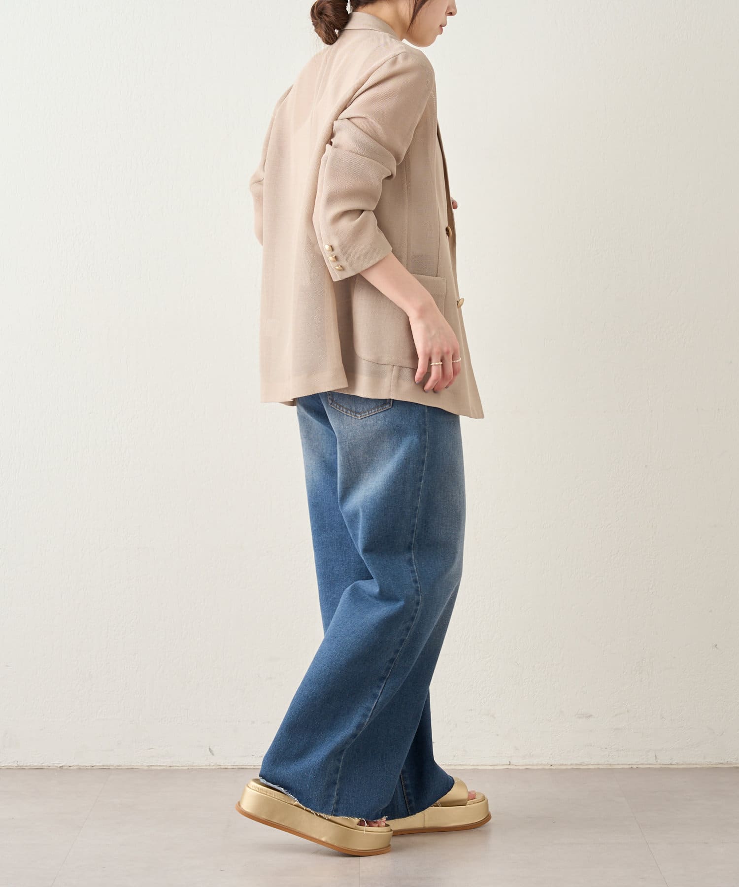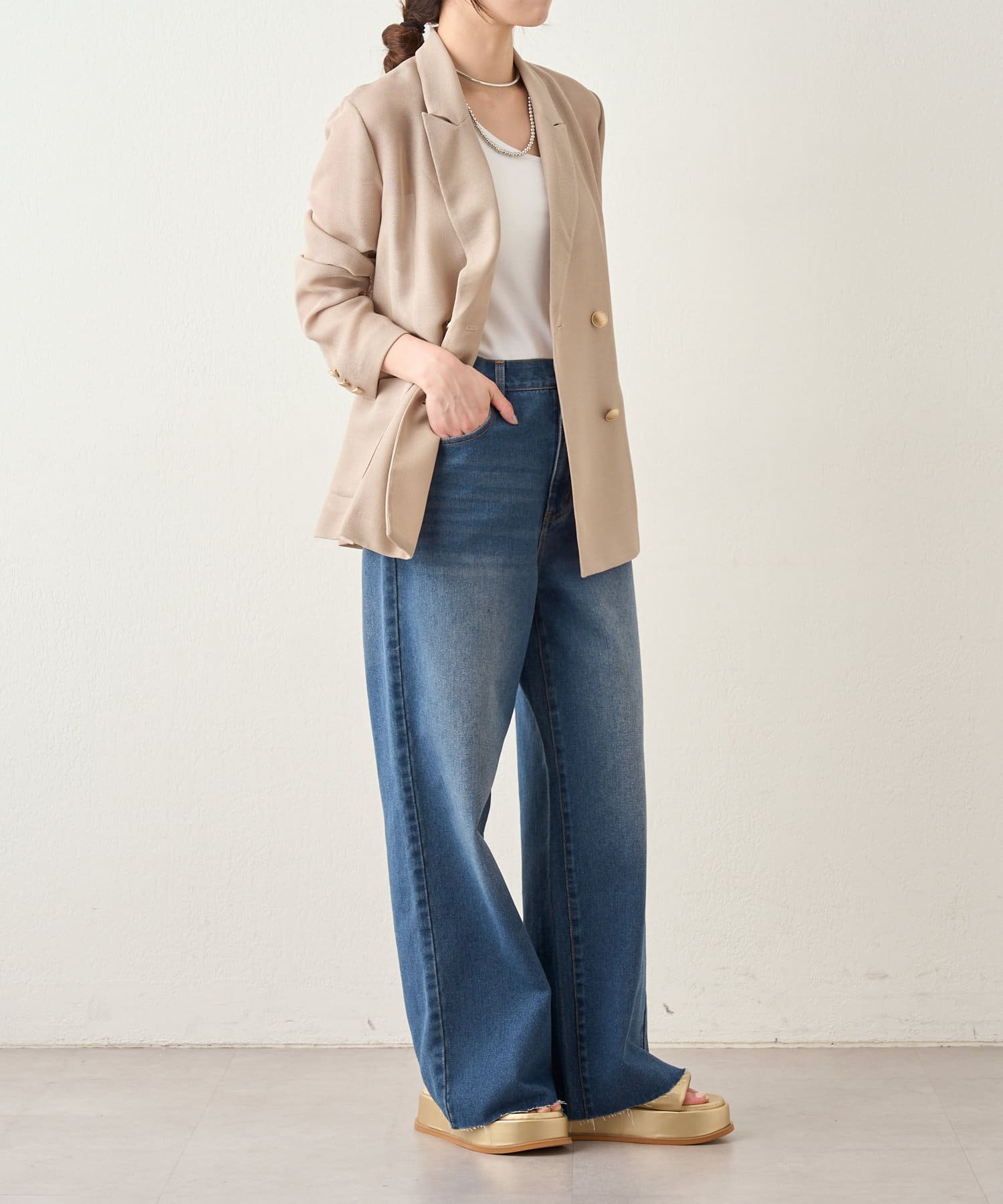 薄手になっていくこれからの季節に、ワイドシルエットのデニムを合わせることで
