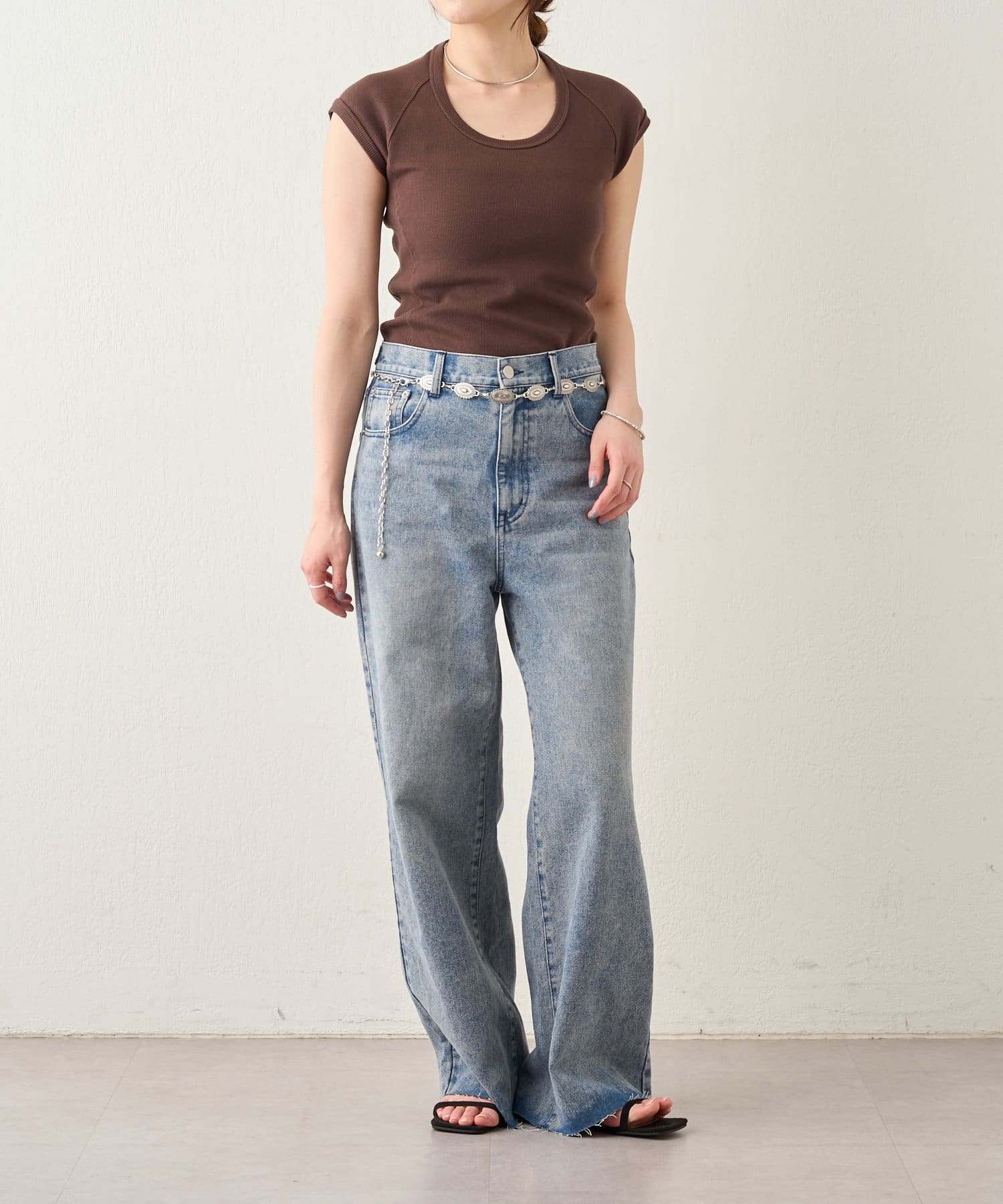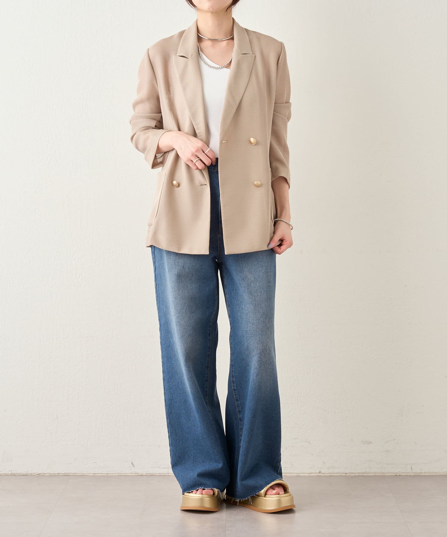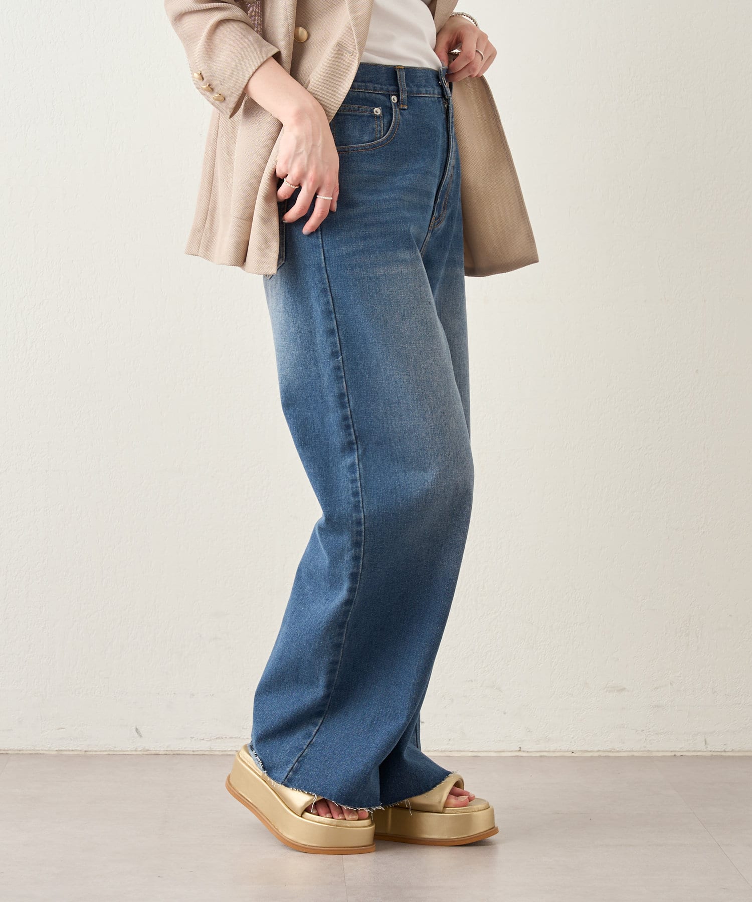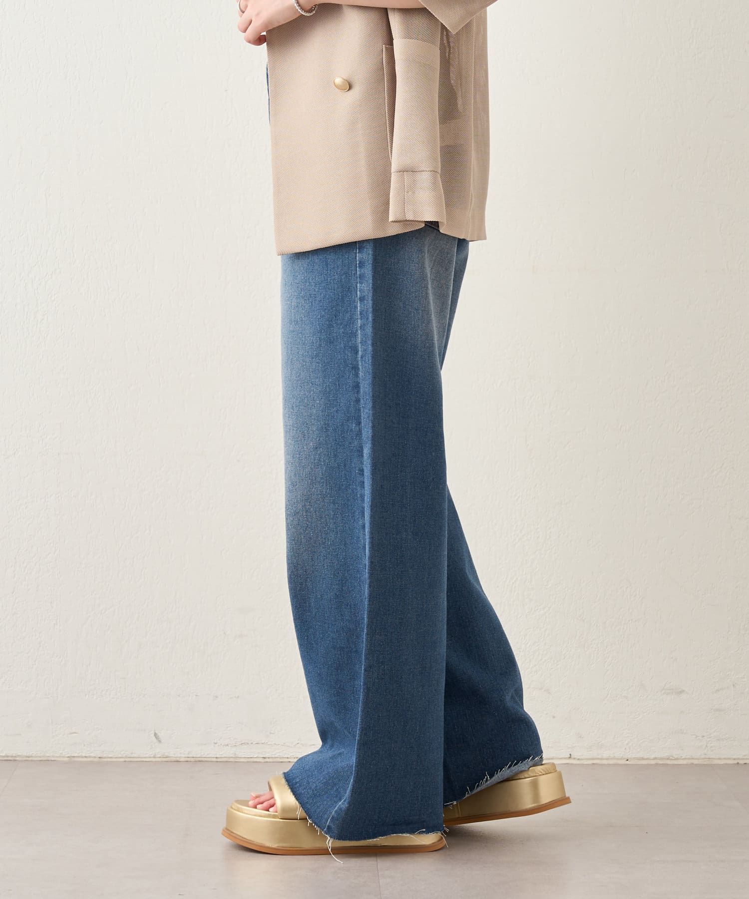 薄手になっていくこれからの季節に、ワイドシルエットのデニムを合わせることで