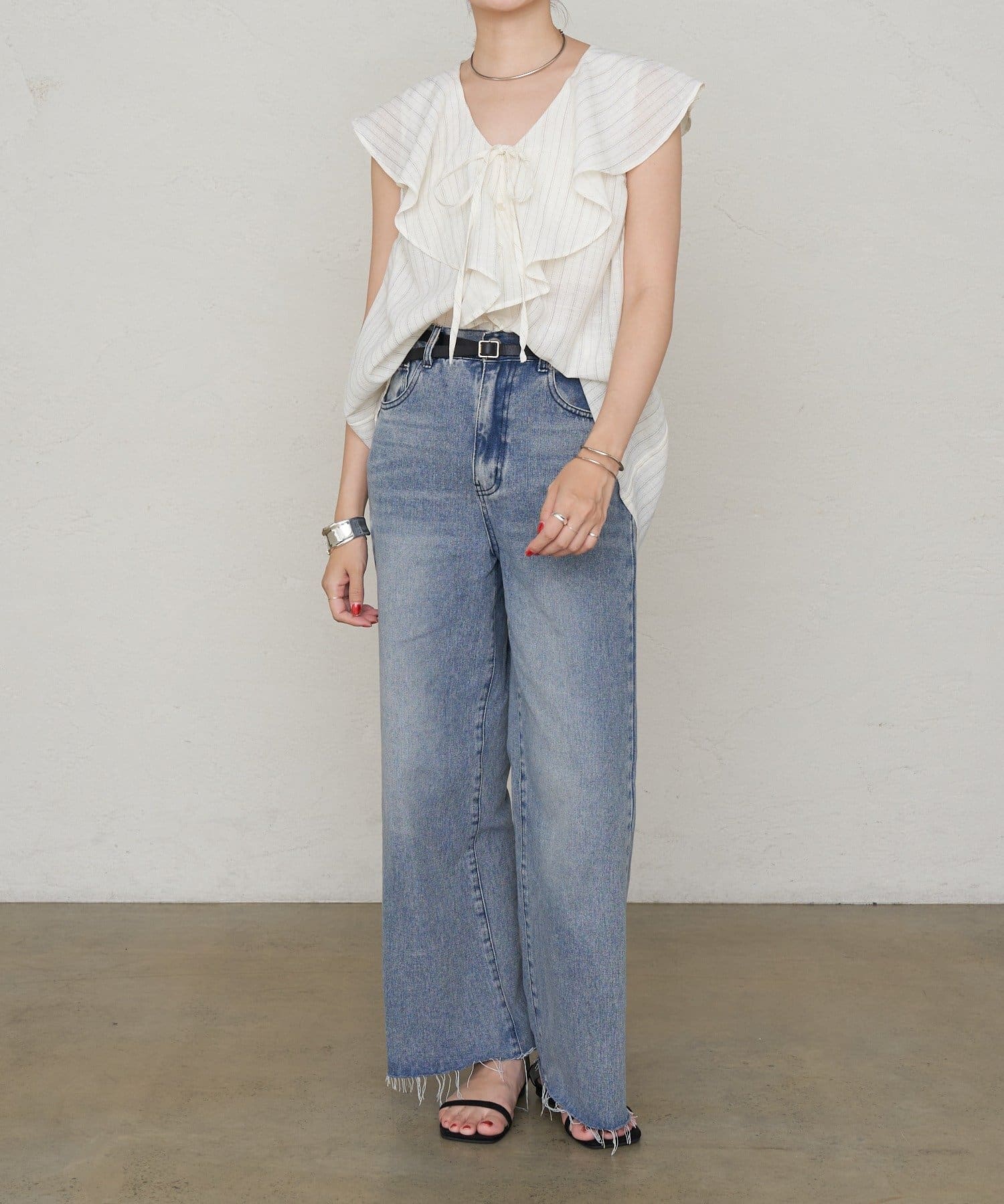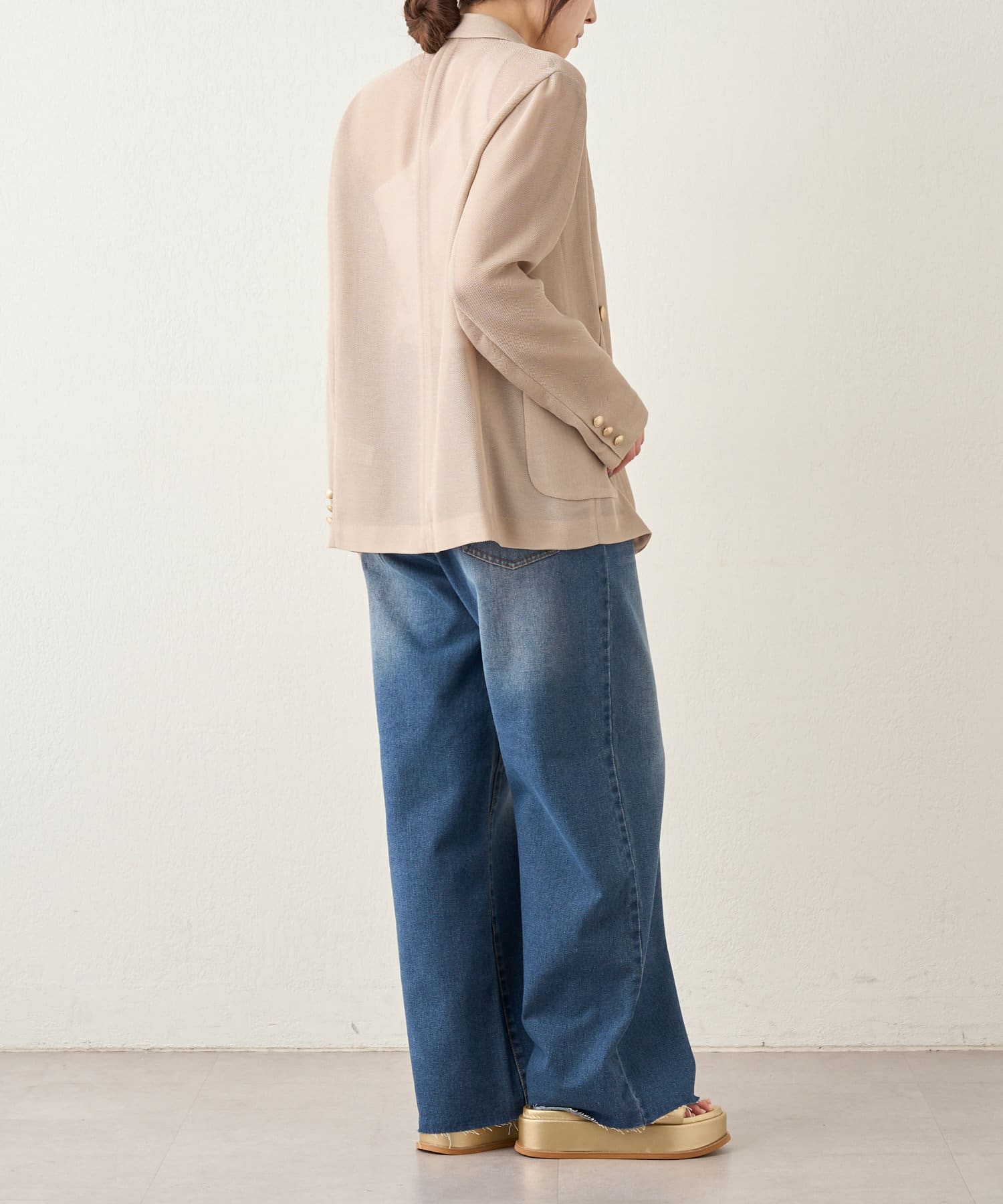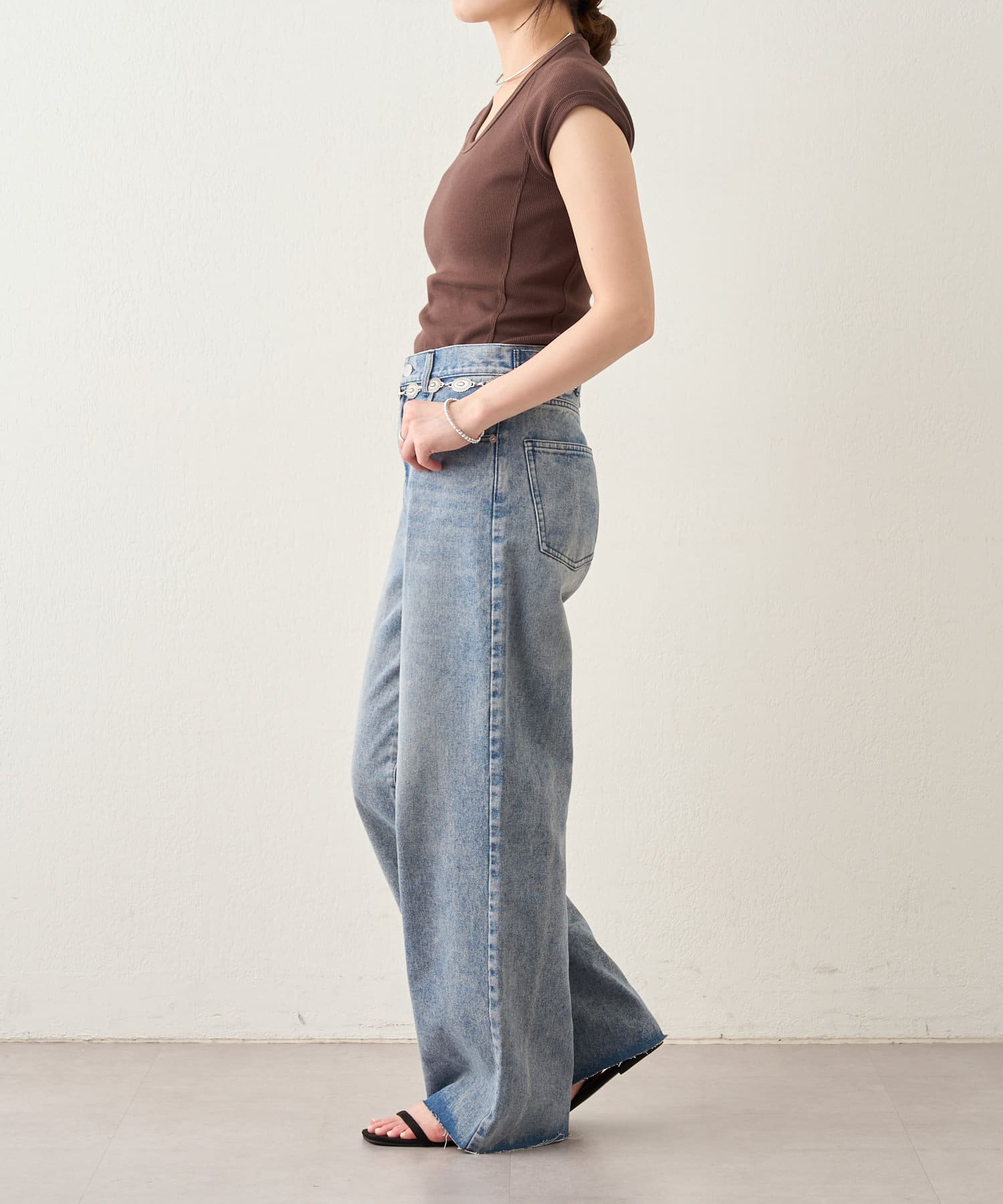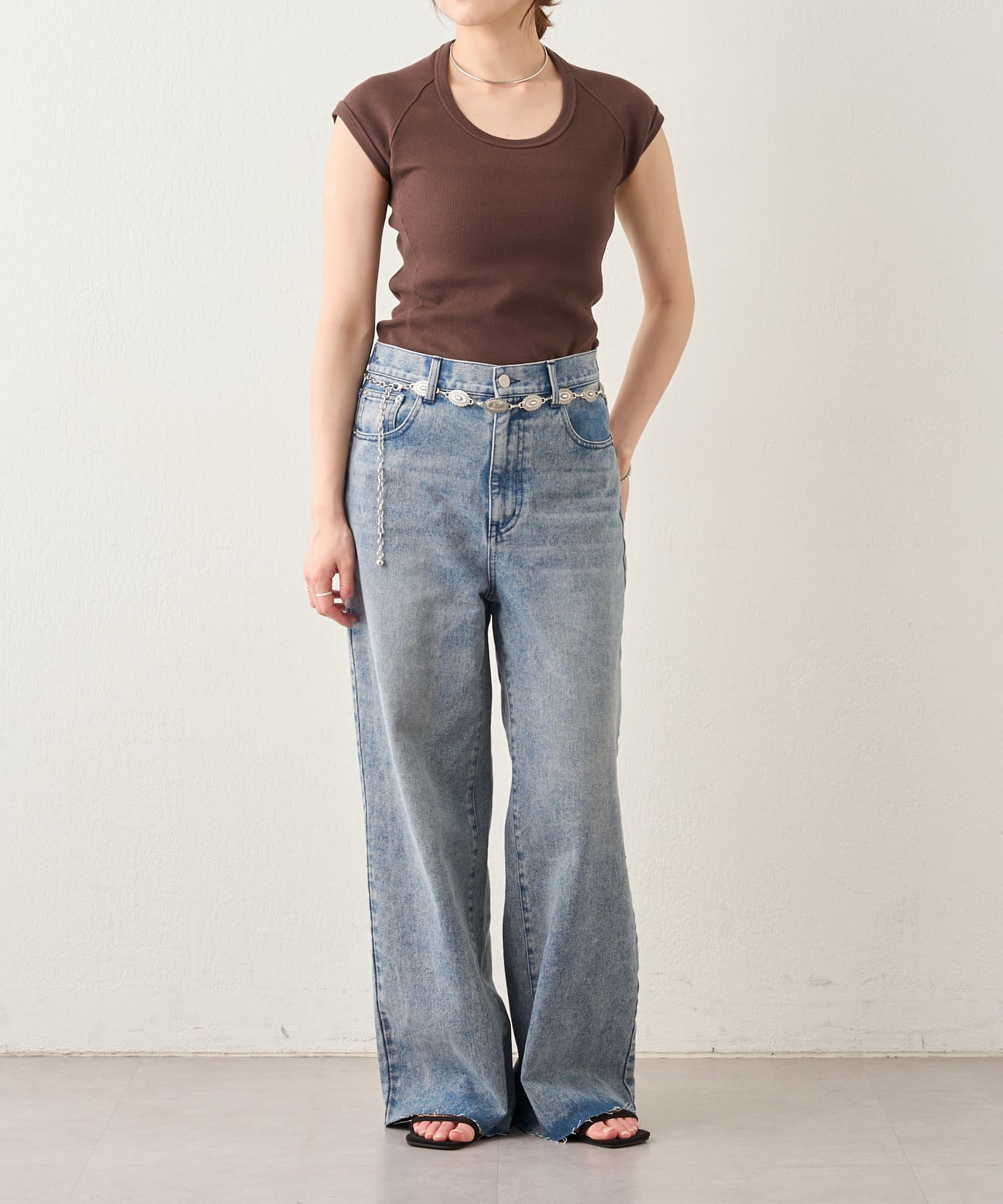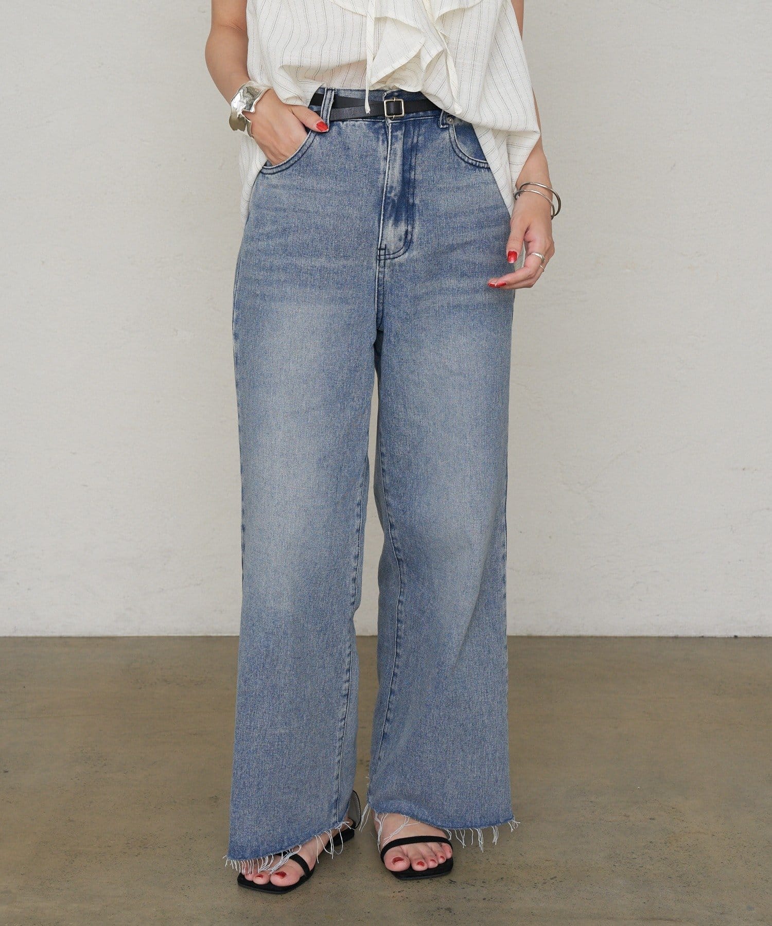薄手になっていくこれからの季節に、ワイドシルエットのデニムを合わせることで